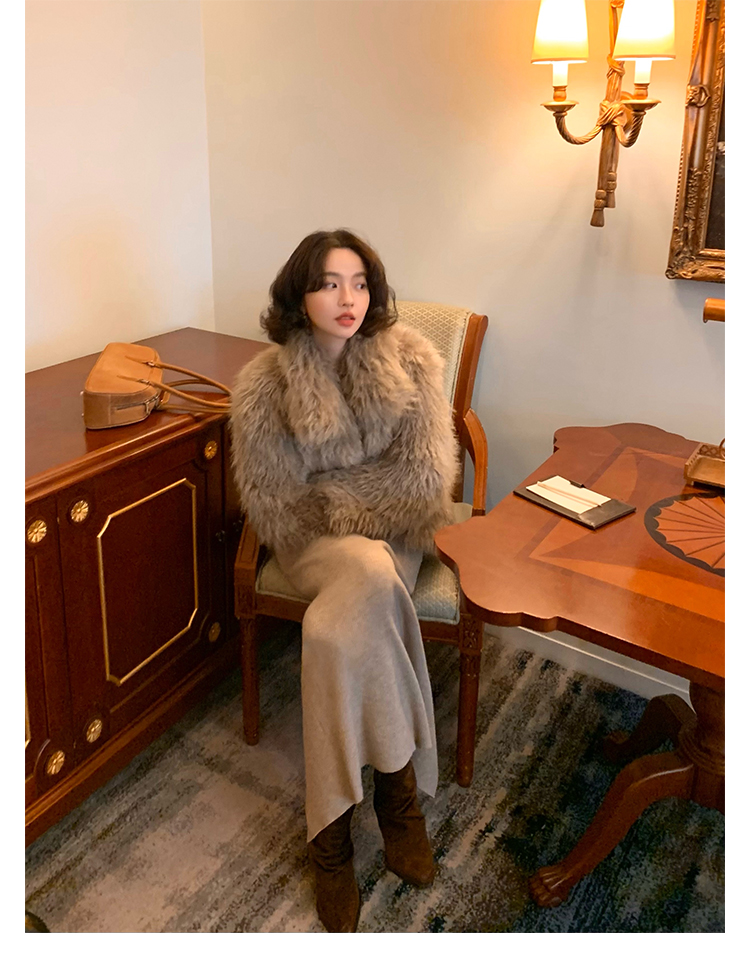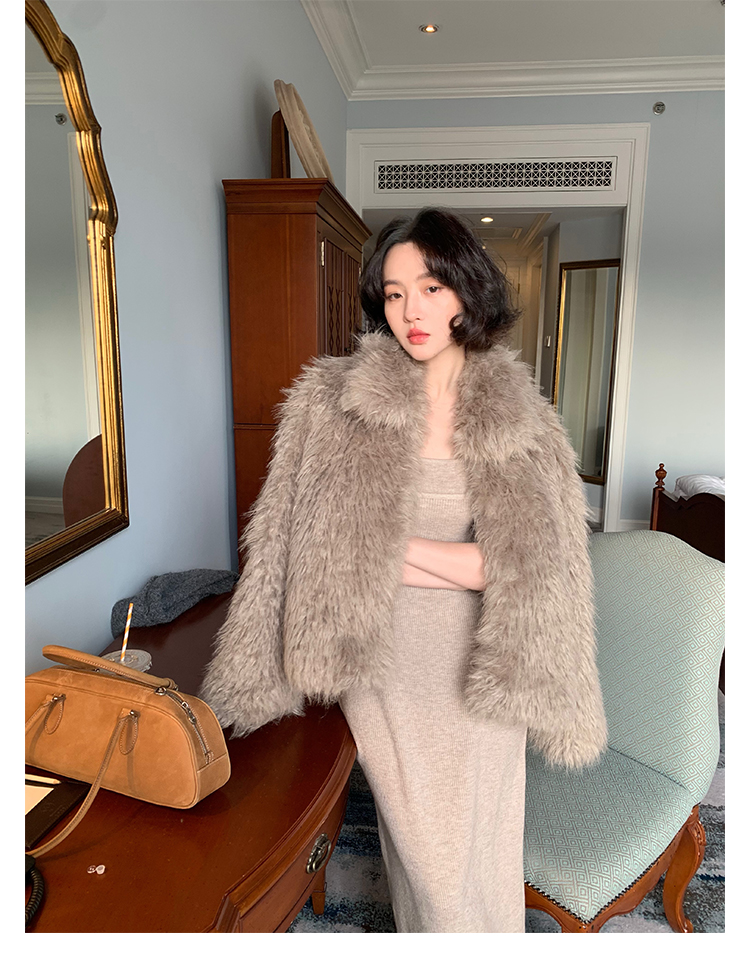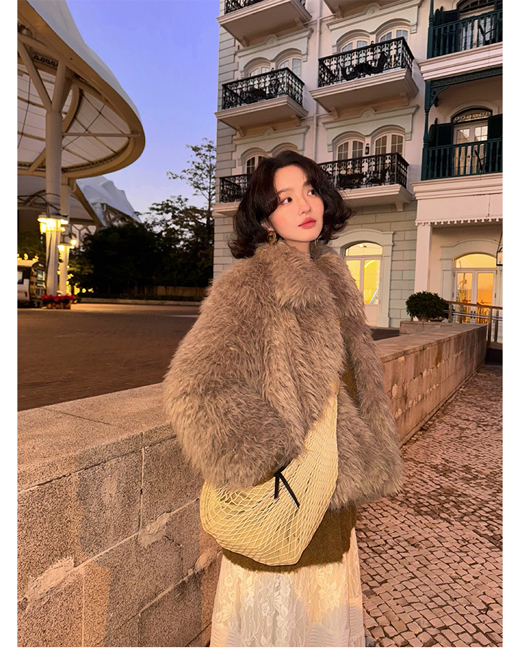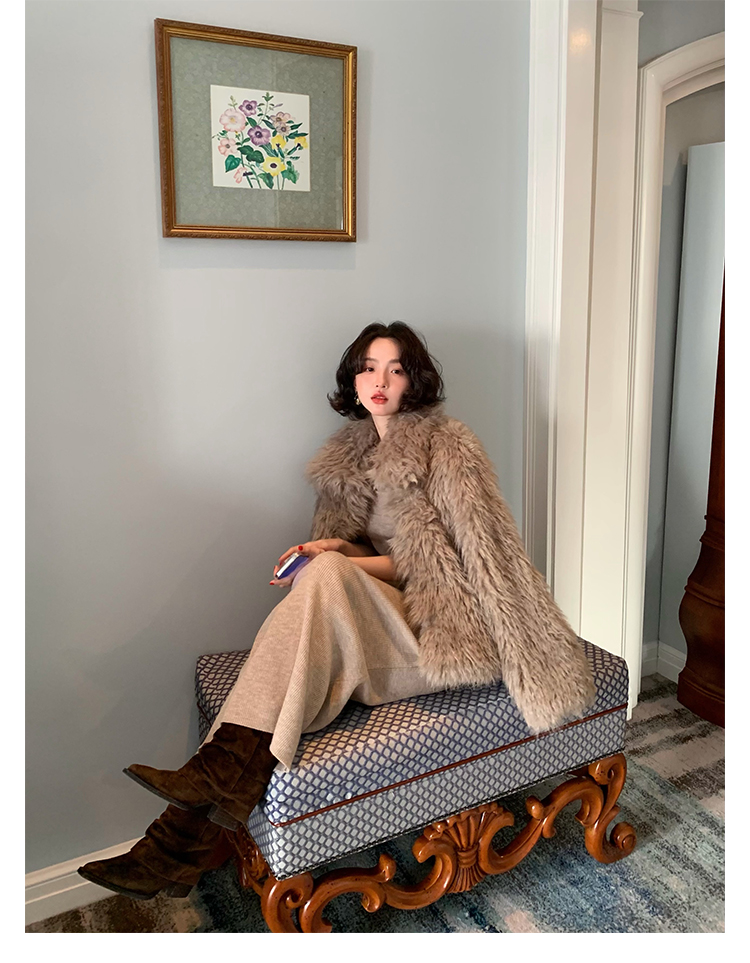 Luxury Faux Fur Coat with Retro Winter Elegance
