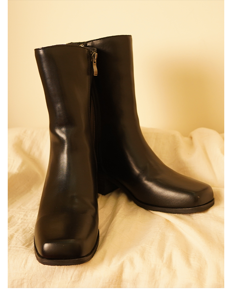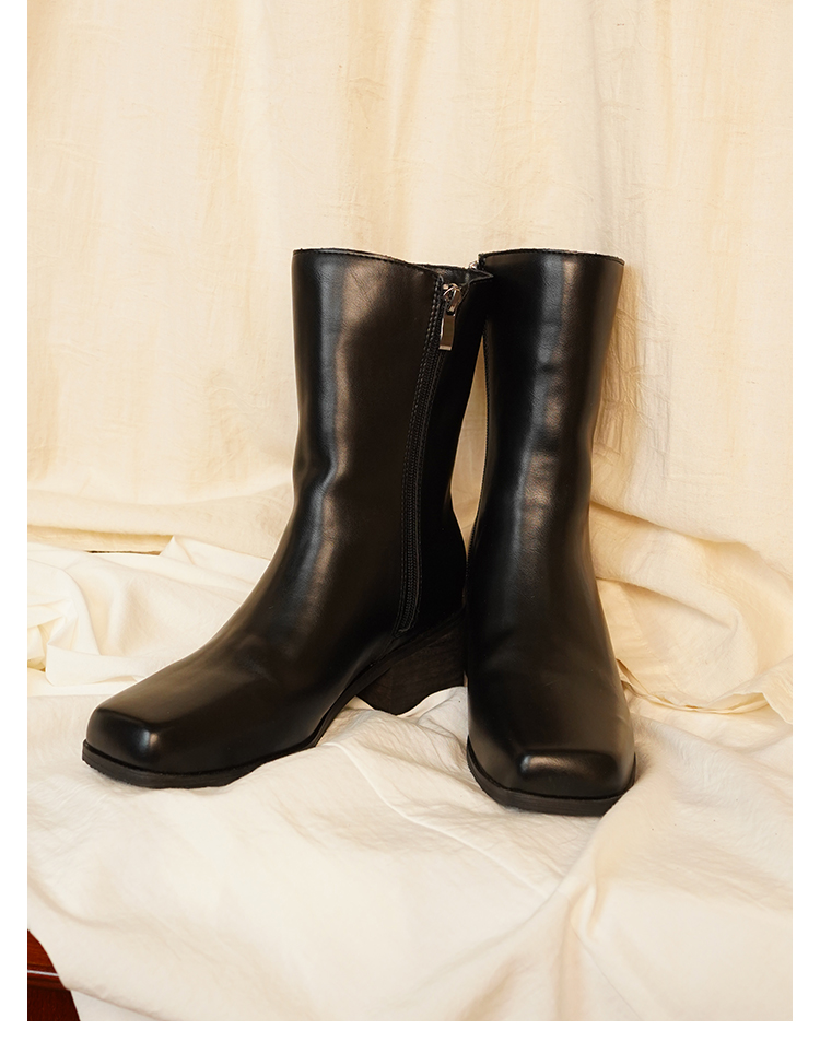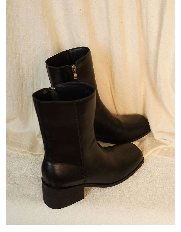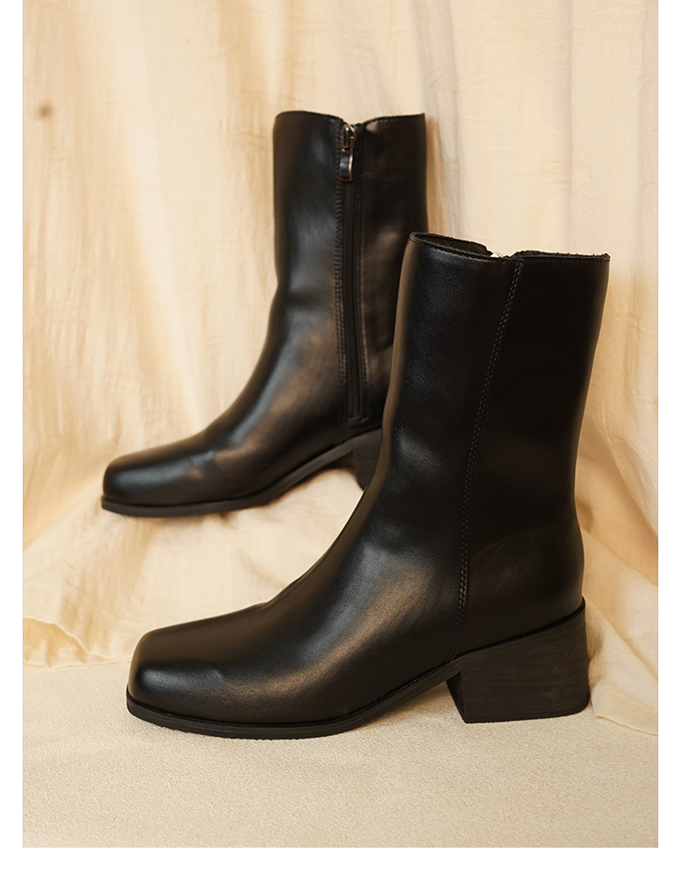 Retro Square-Toe Leather Mid-Calf Martin Boots – 4CM Block Heel