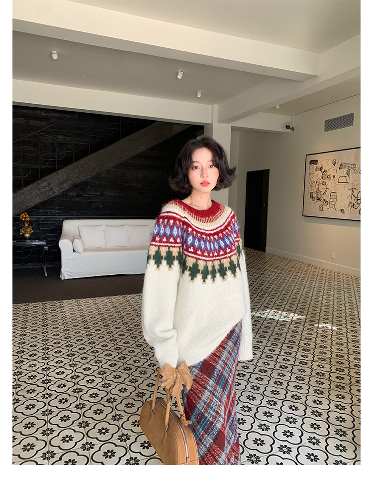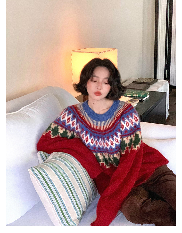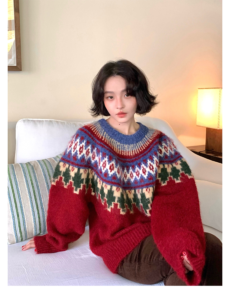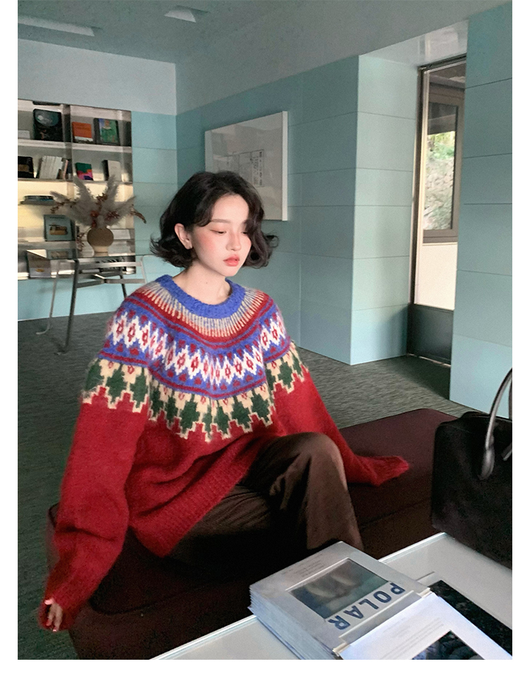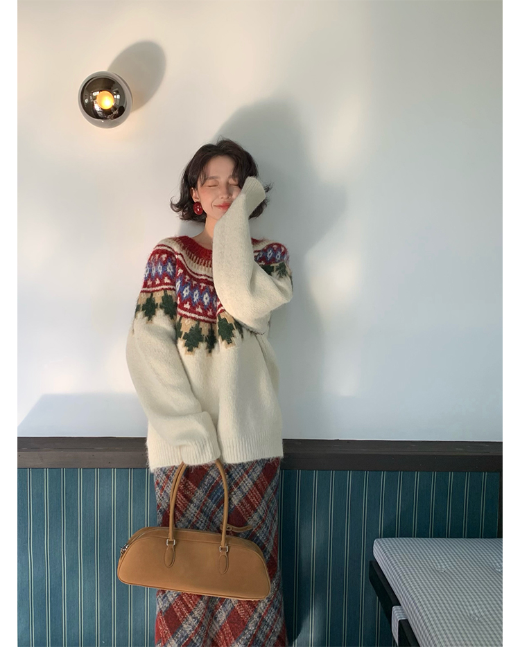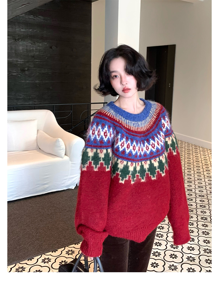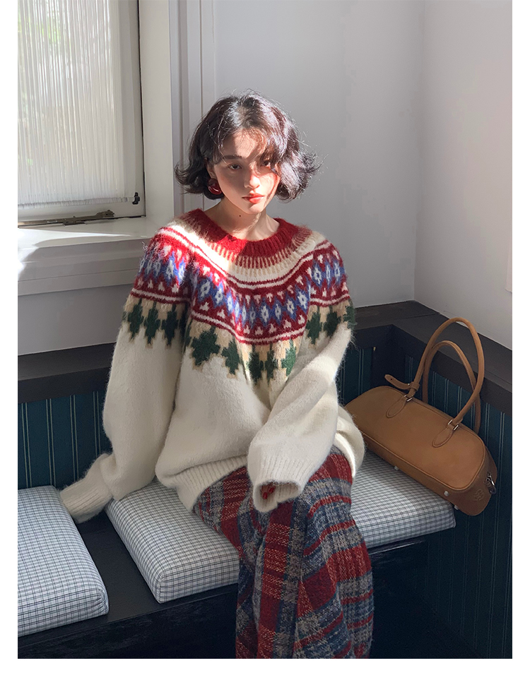 Retro Christmas Jacquard Sweater – Oversized Winter Warmth