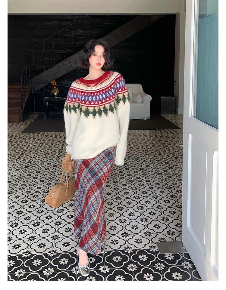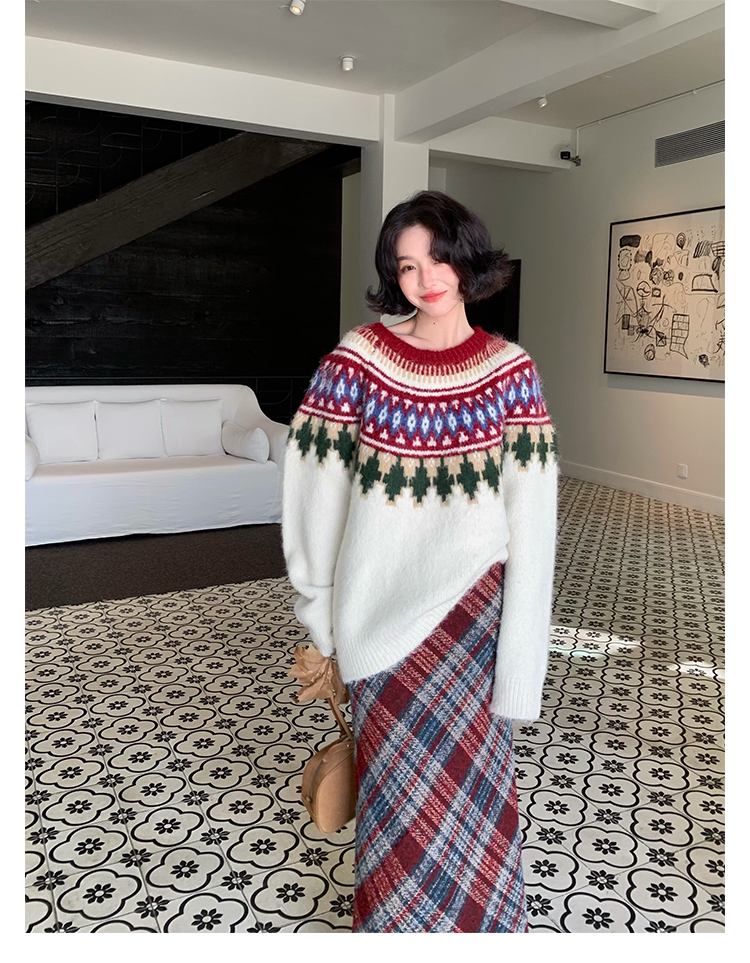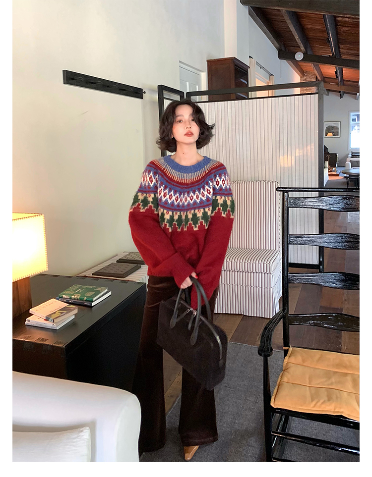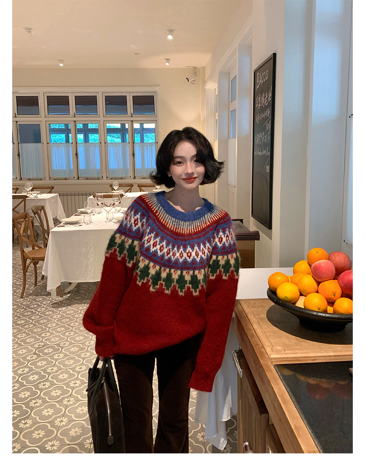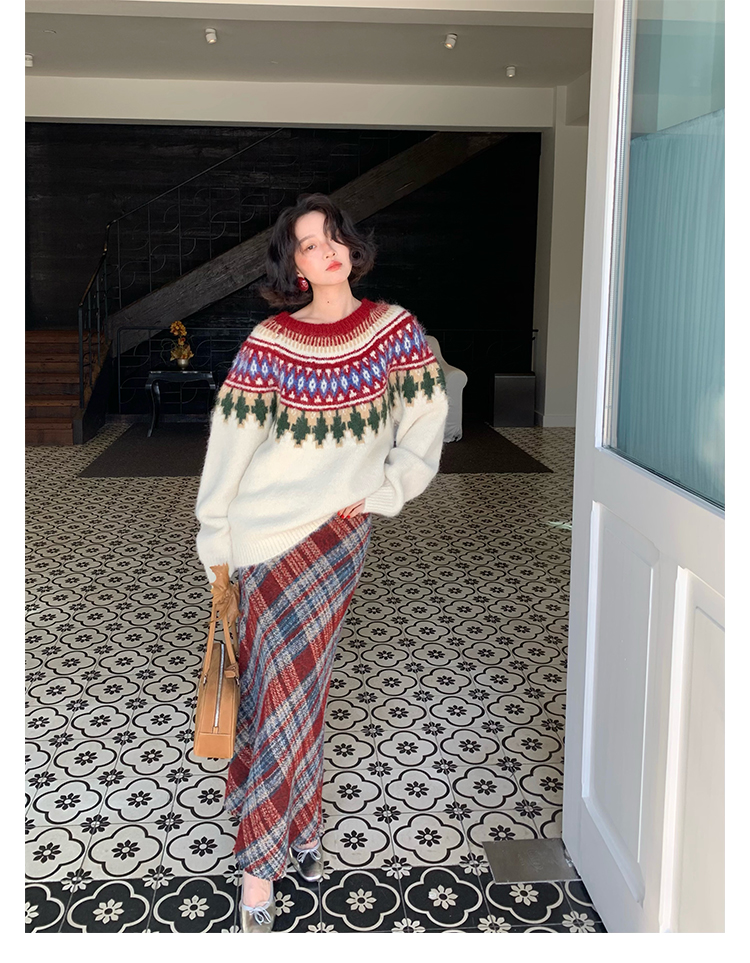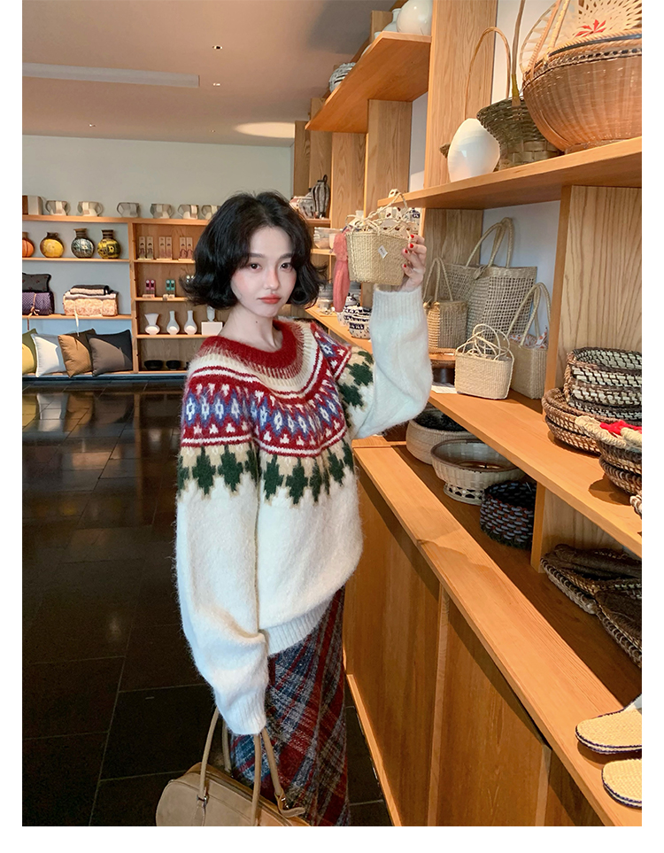 Retro Christmas Jacquard Sweater – Oversized Winter Warmth