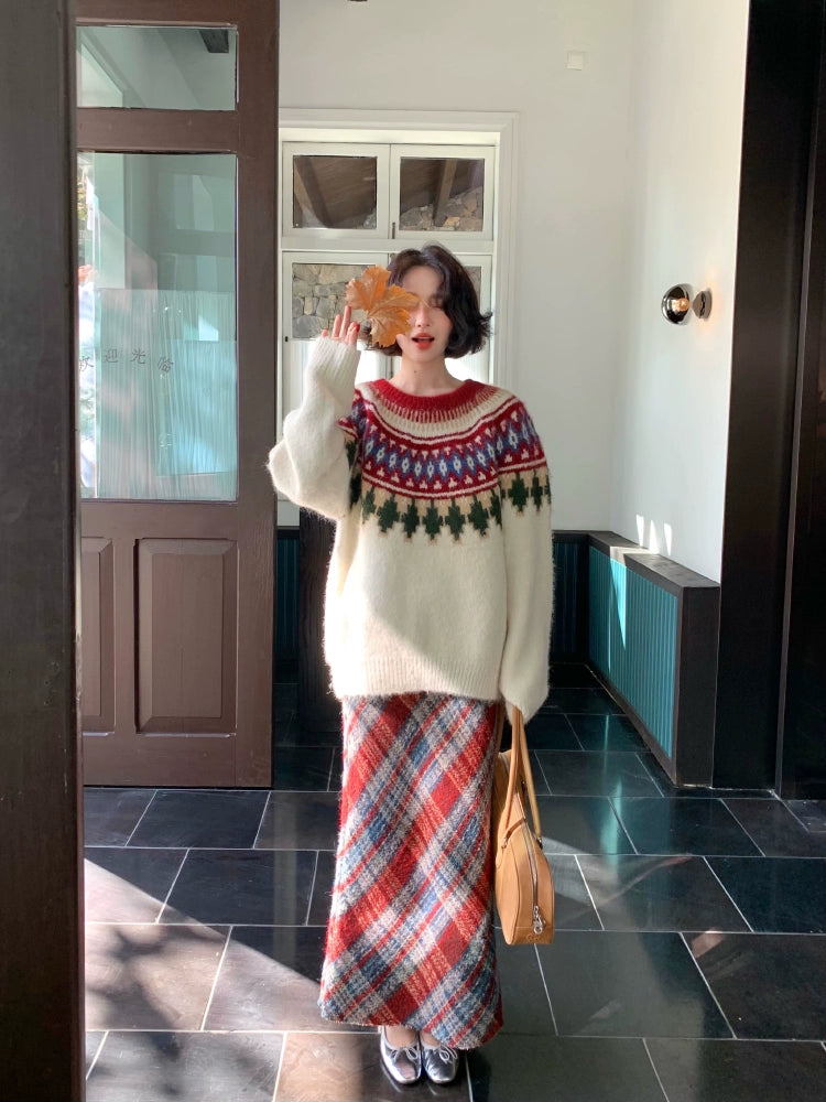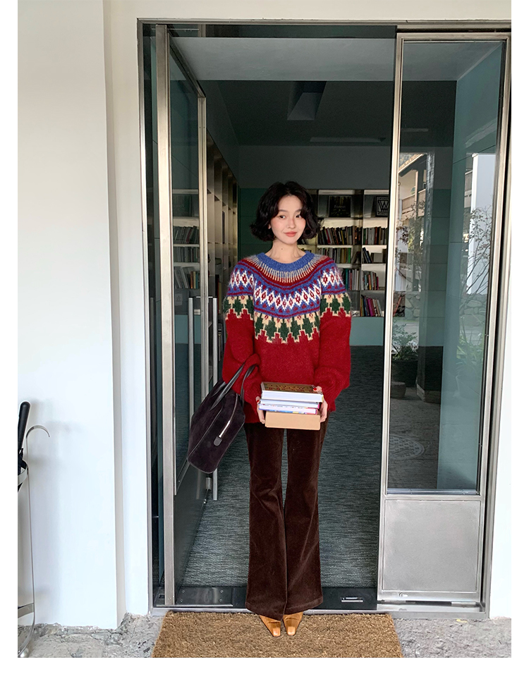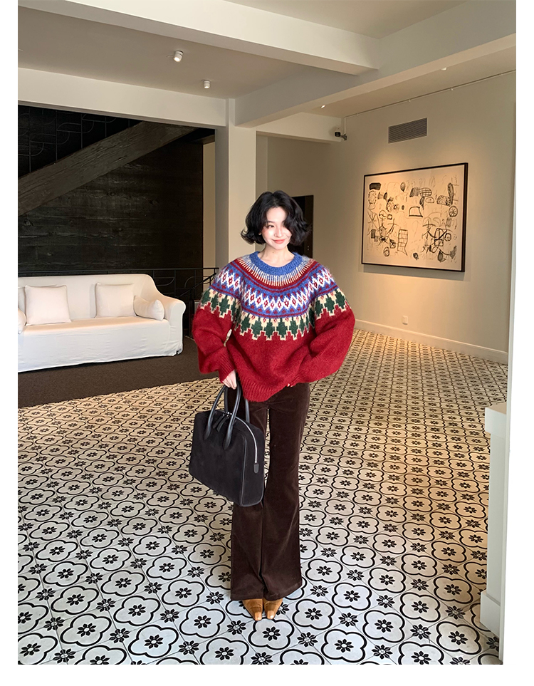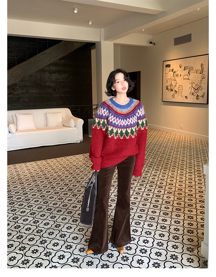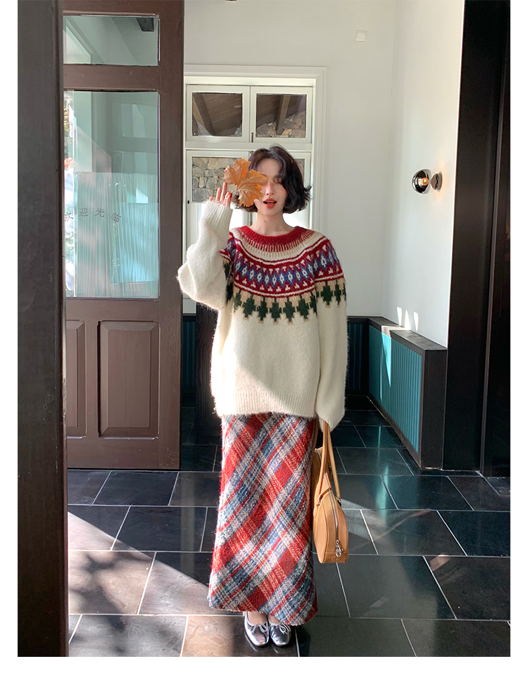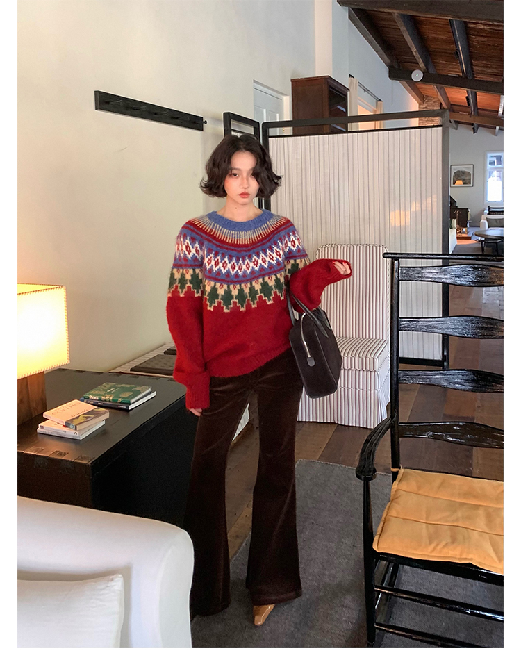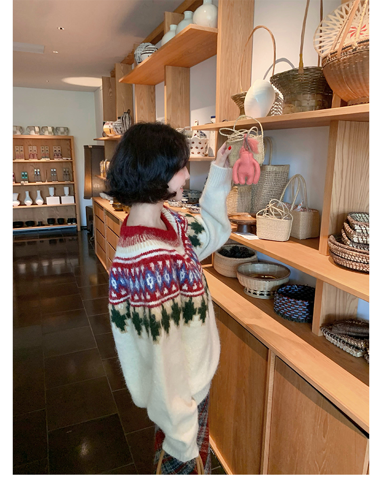 Retro Christmas Jacquard Sweater – Oversized Winter Warmth