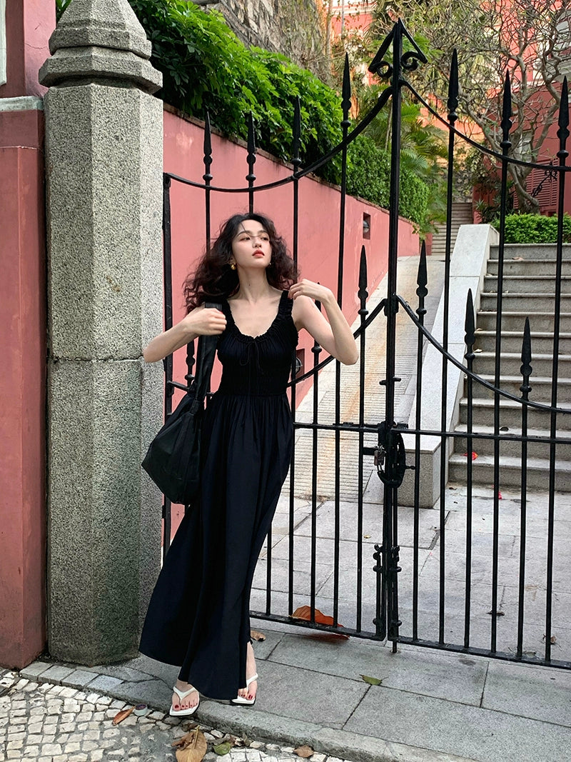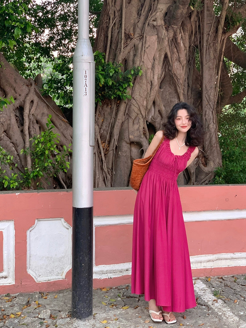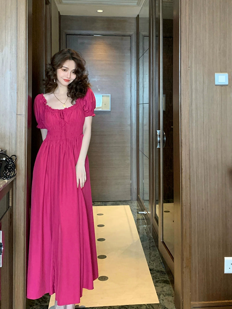 Rose Red Elegance: Summer's Ruffled Long Dress