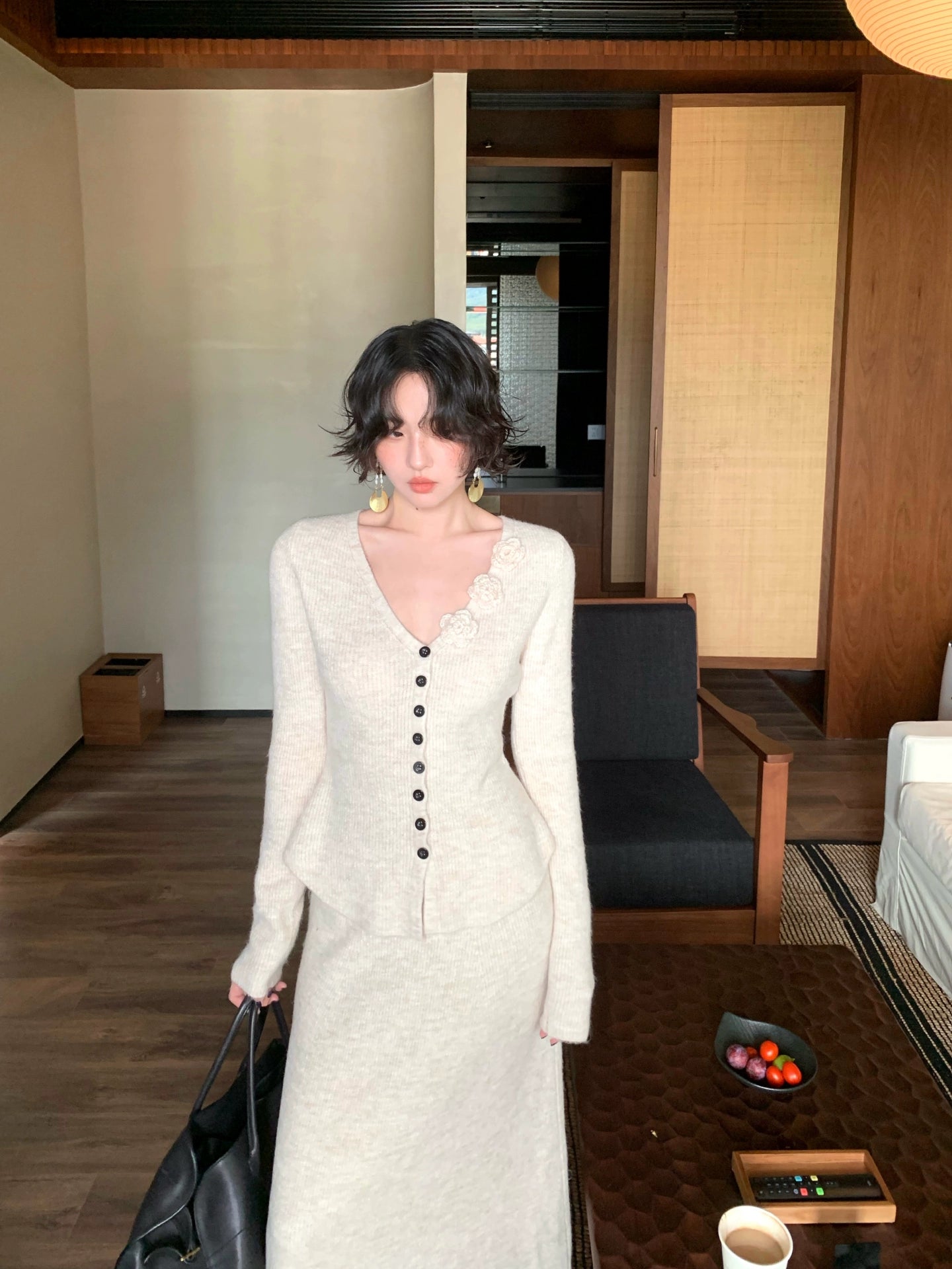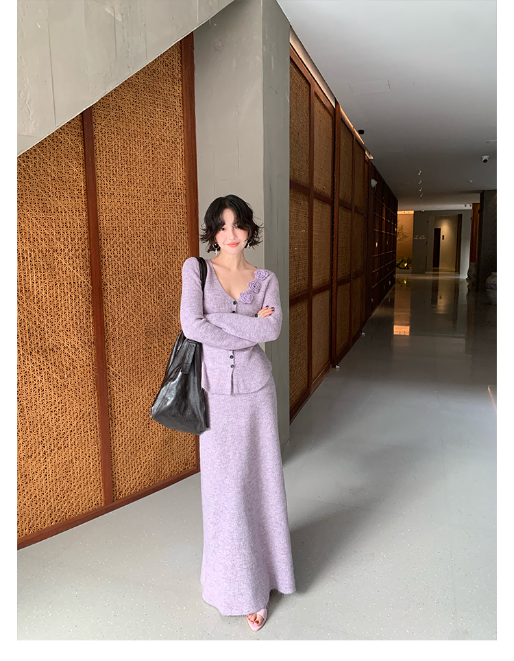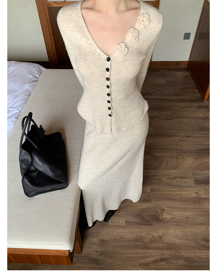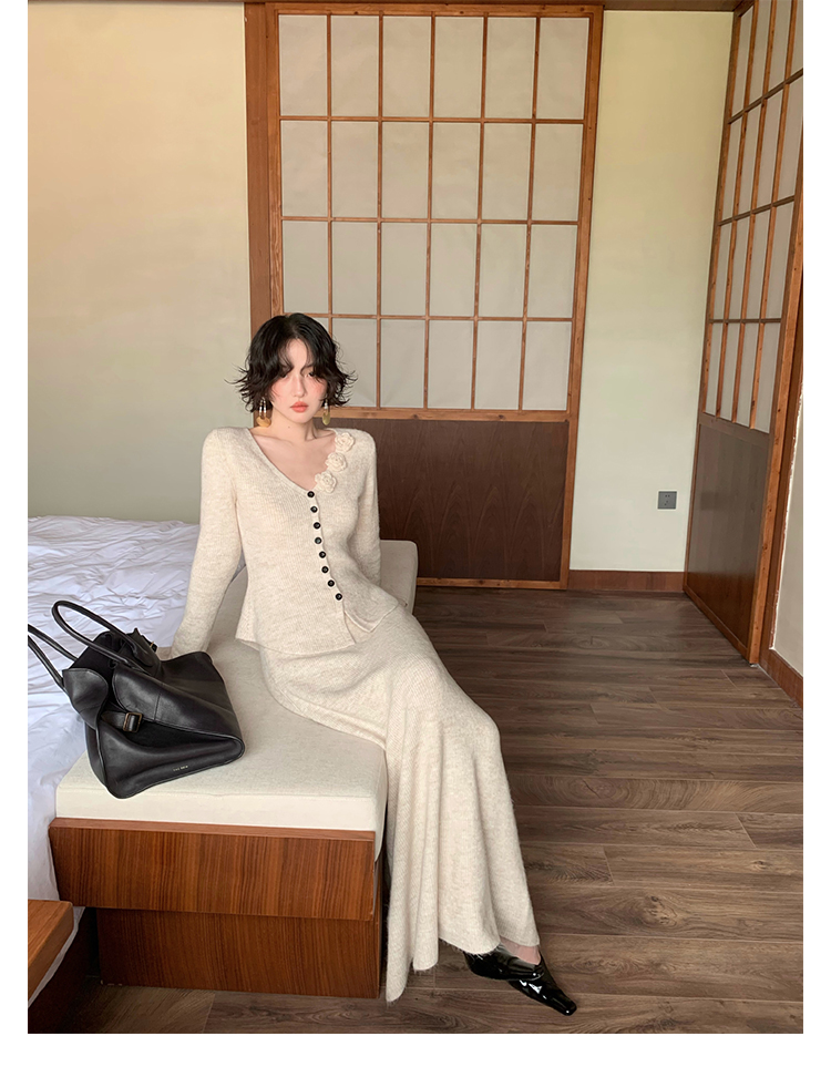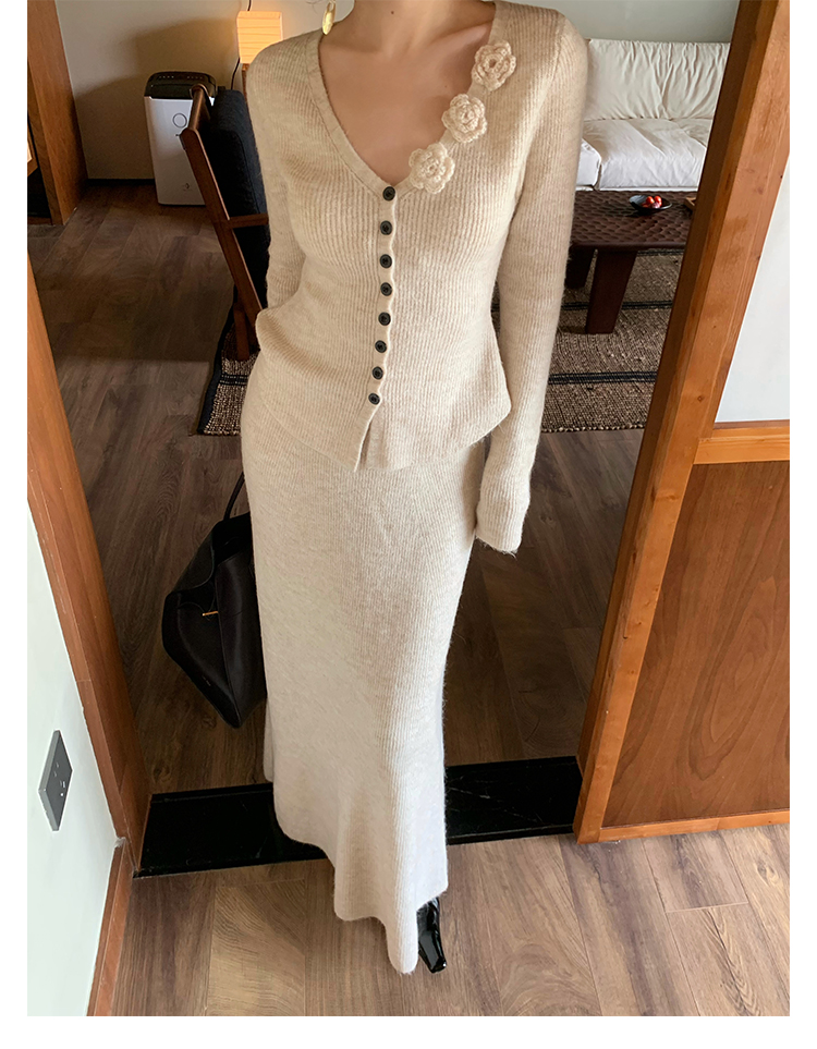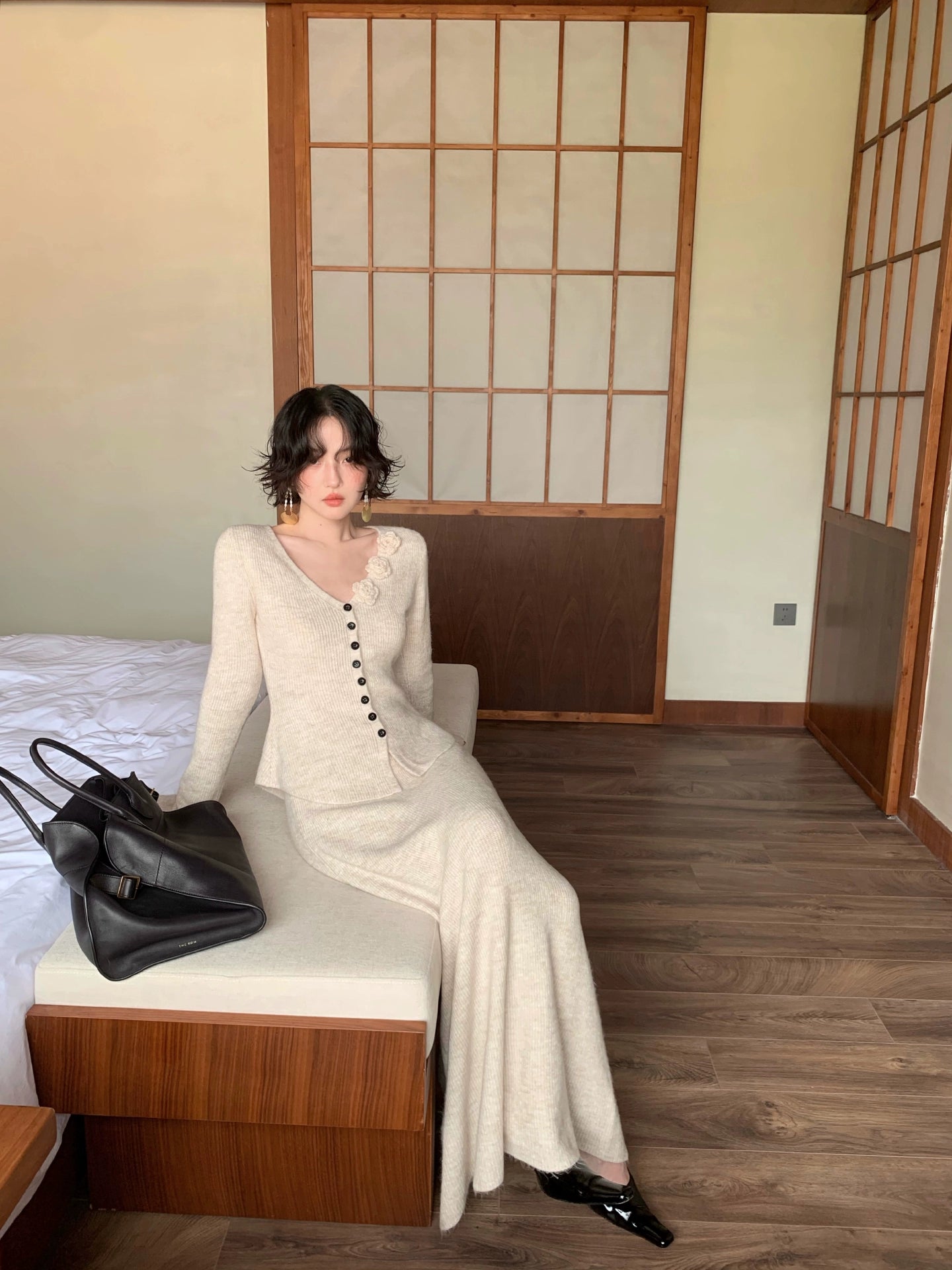 Three-Dimensional Flower Knit Top & Skirt Set – Retro AW 2025