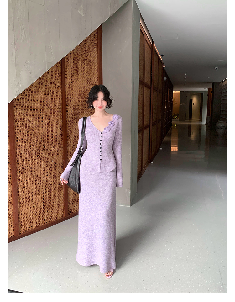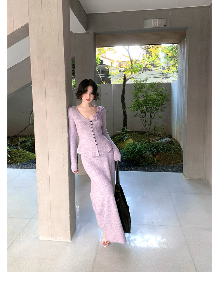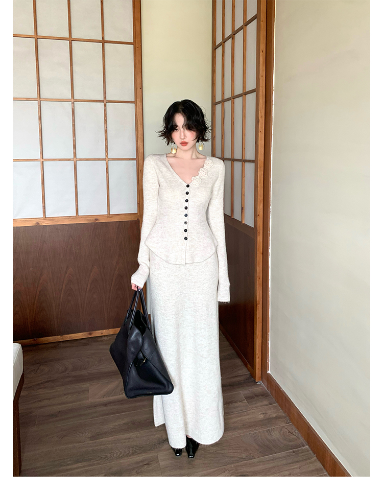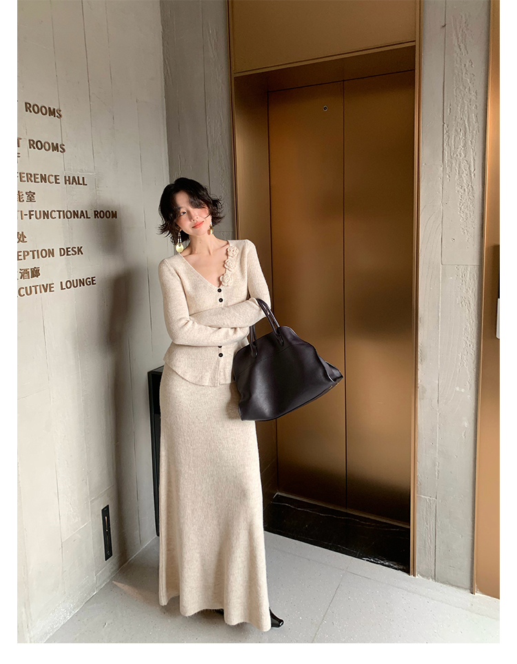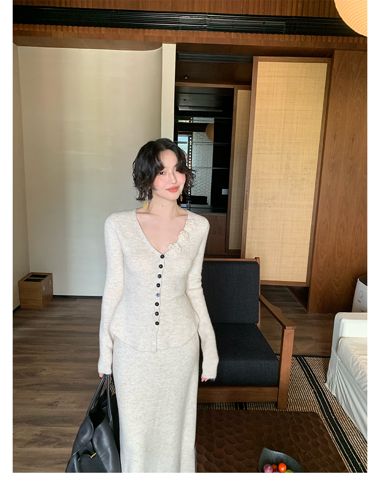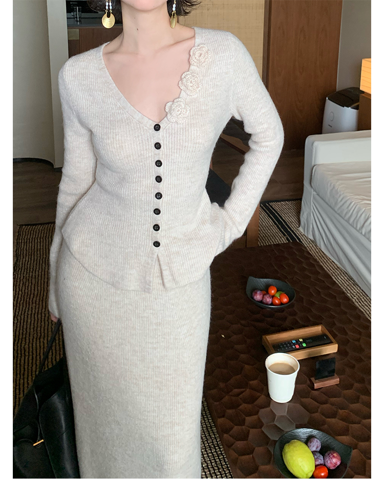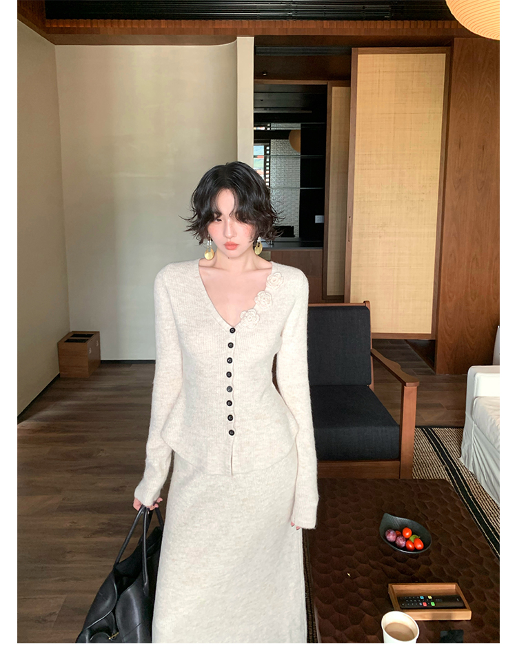 Three-Dimensional Flower Knit Top & Skirt Set – Retro AW 2025