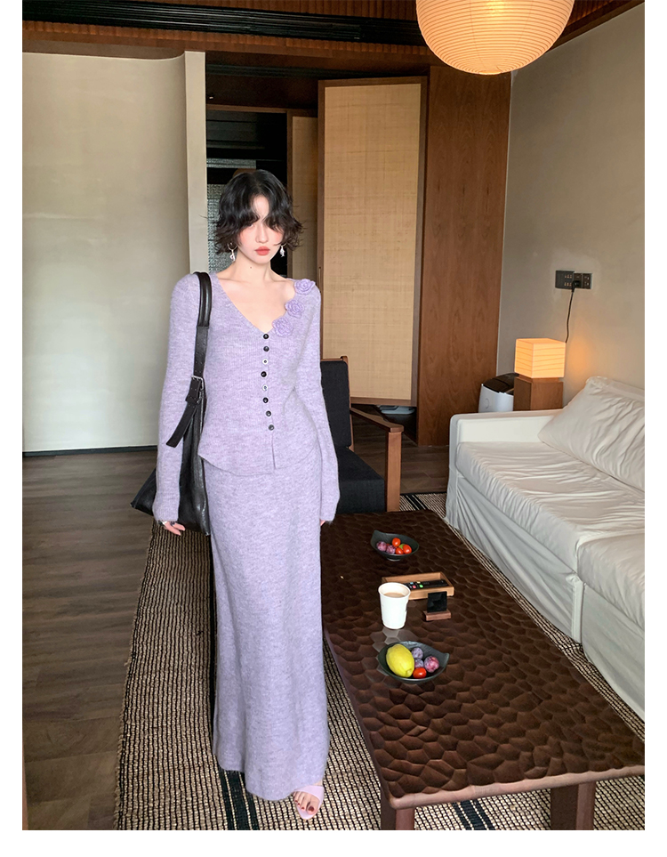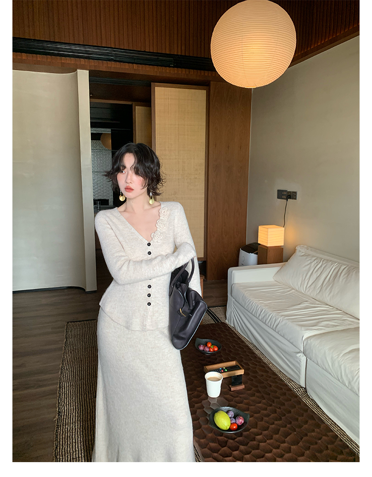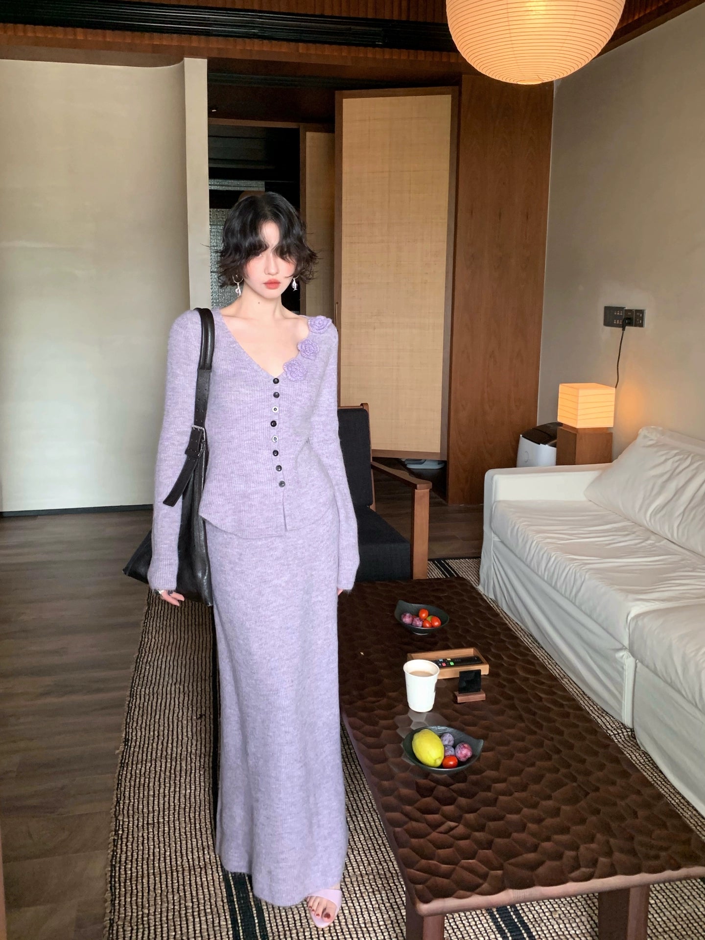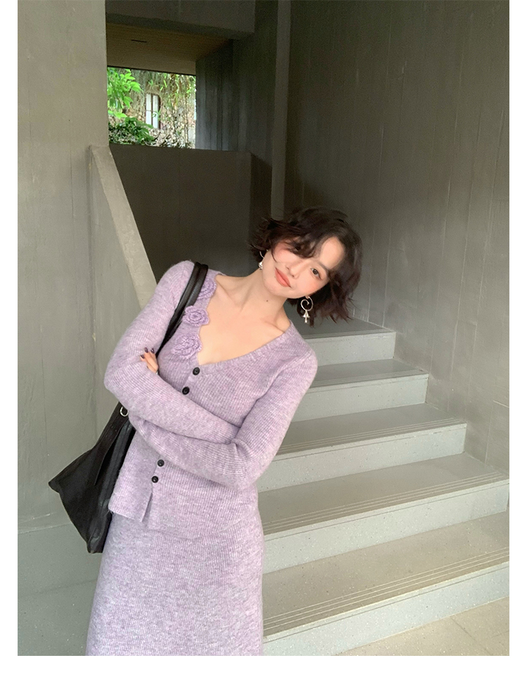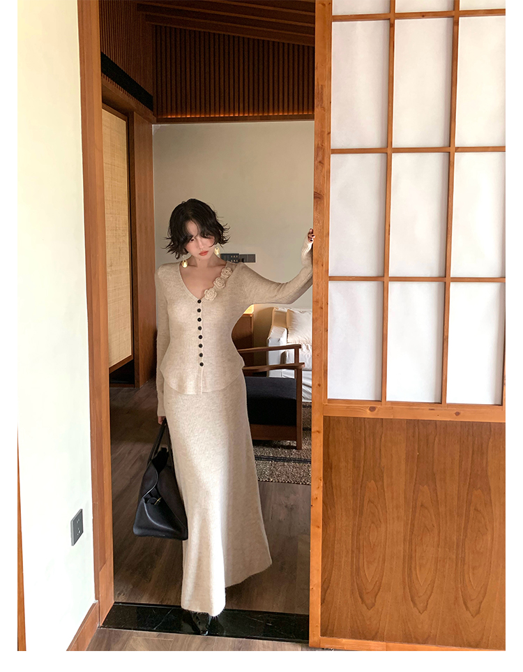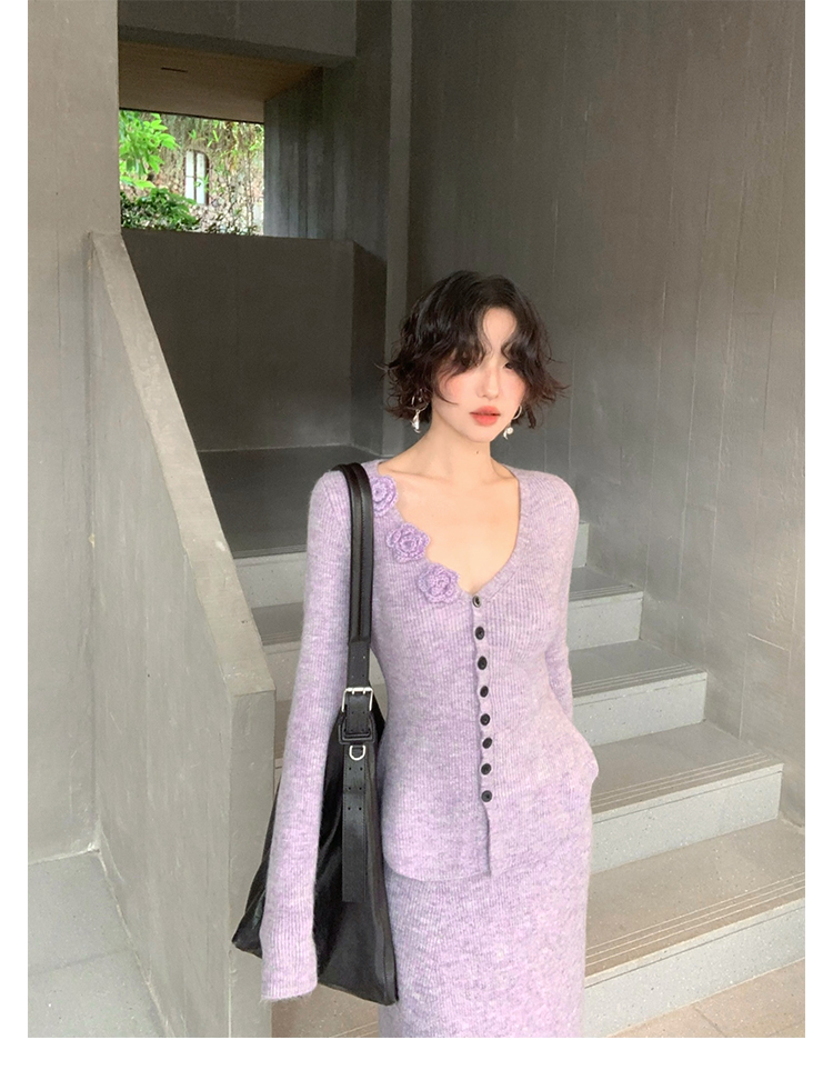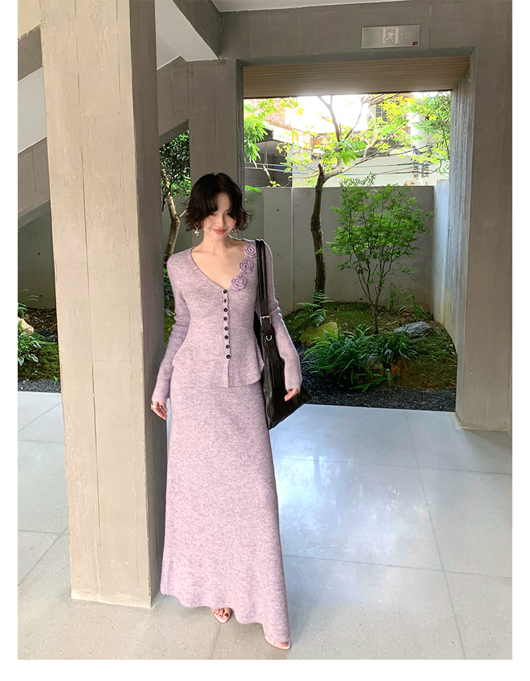Three-Dimensional Flower Knit Top & Skirt Set – Retro AW 2025