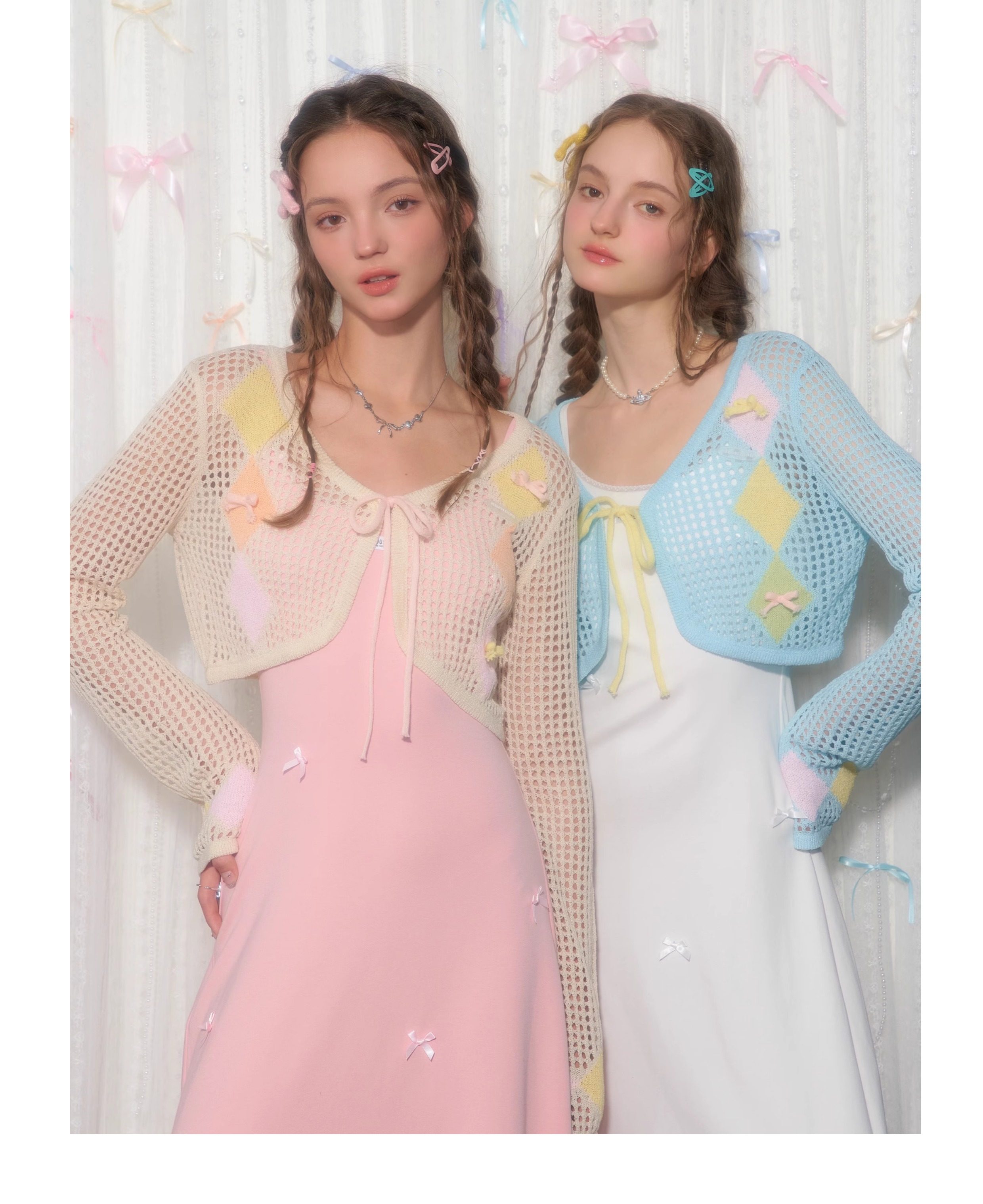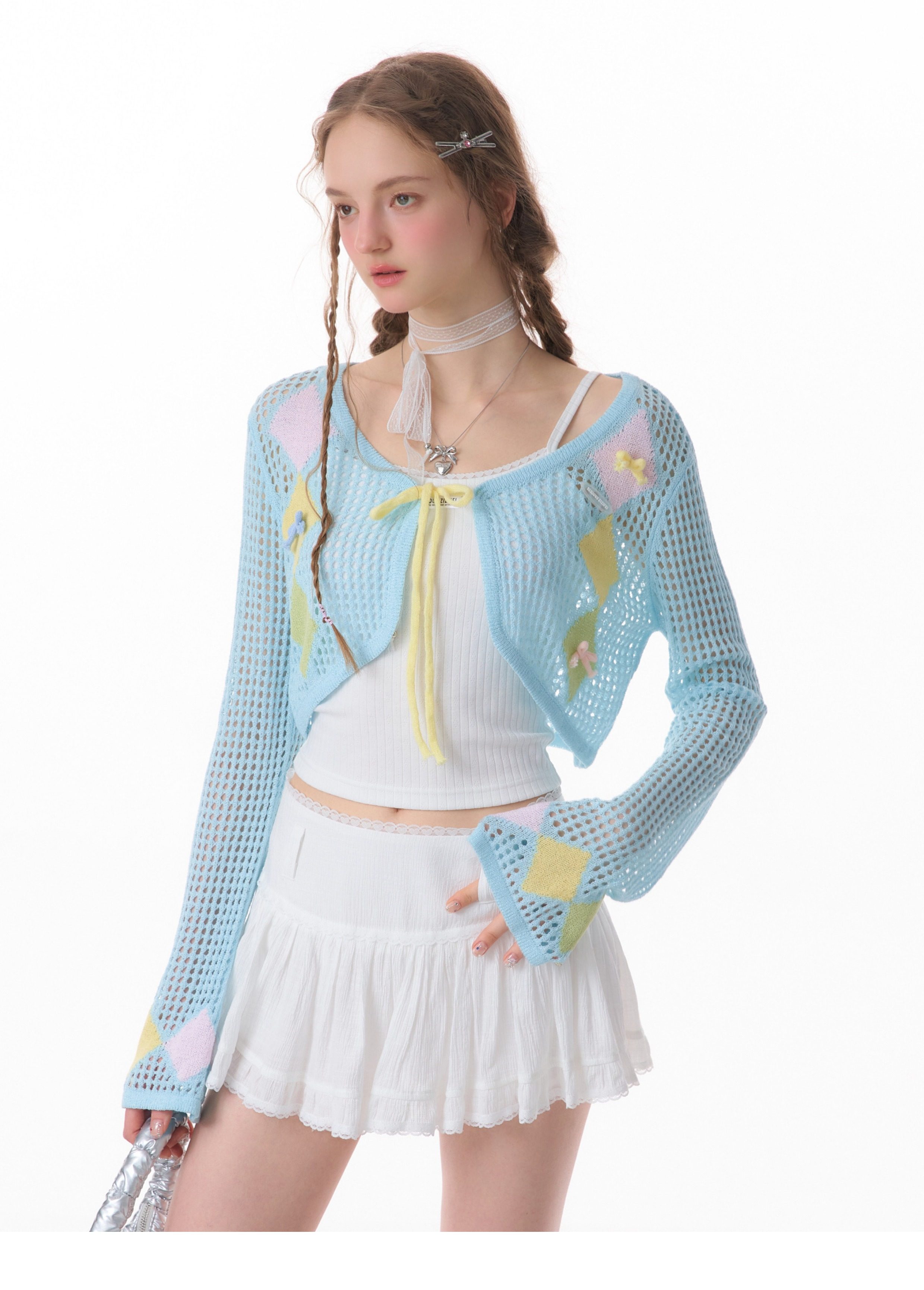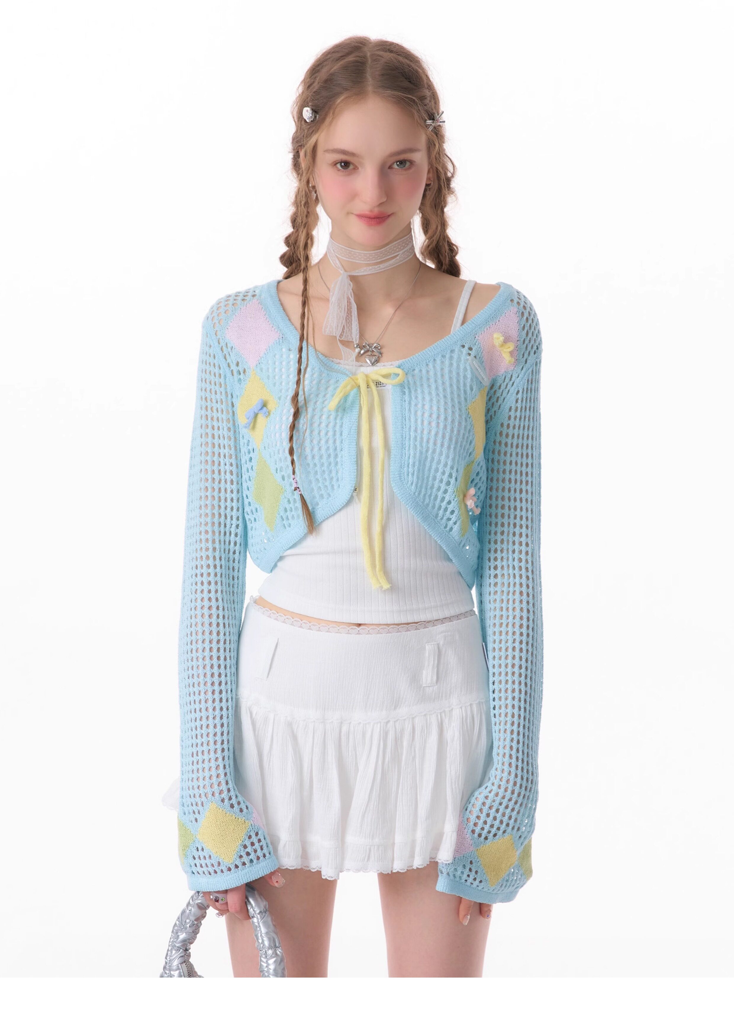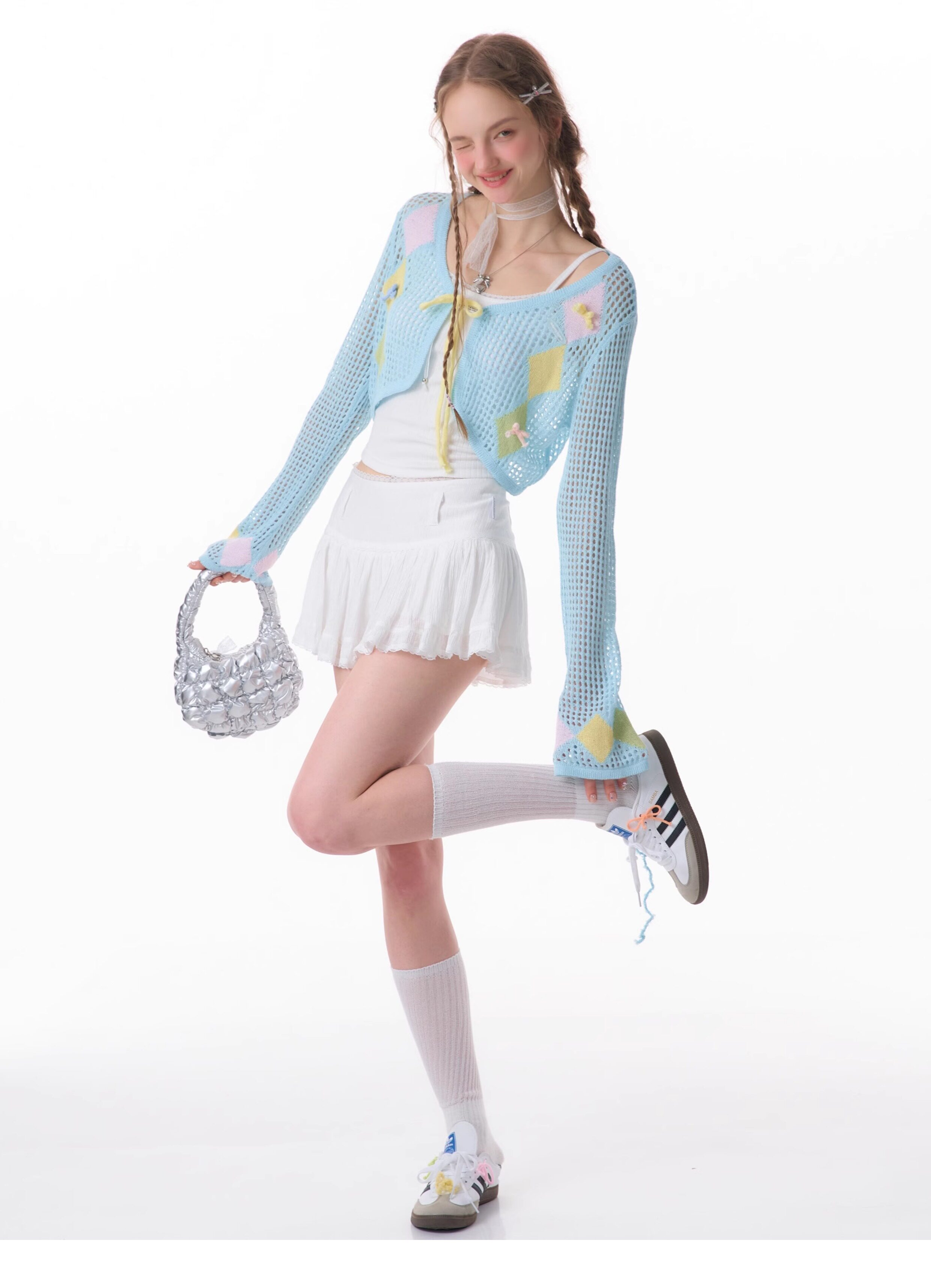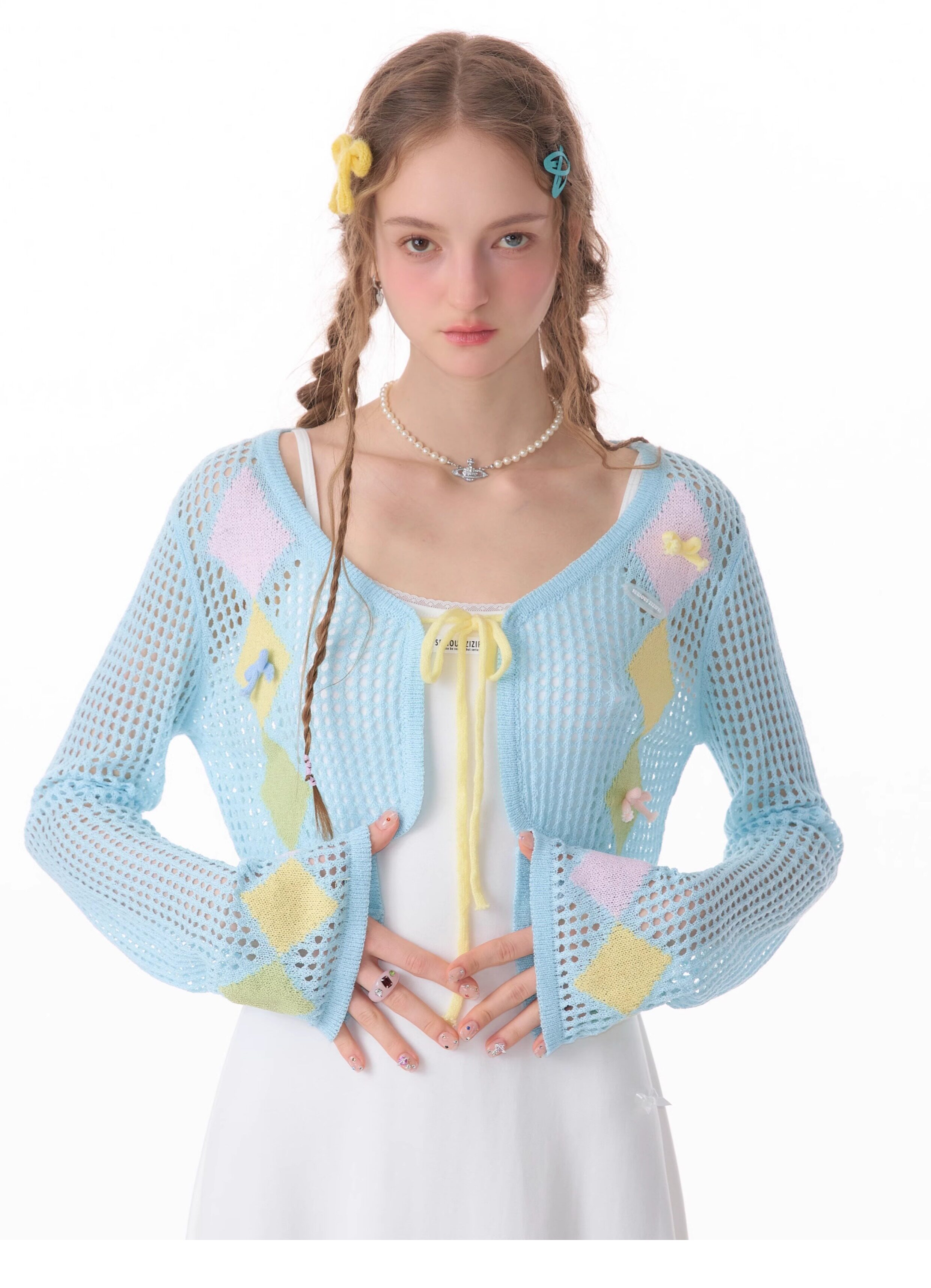 Bow Short Sleeve Hollow Knit Cardigan | Lightweight American Design for Summer