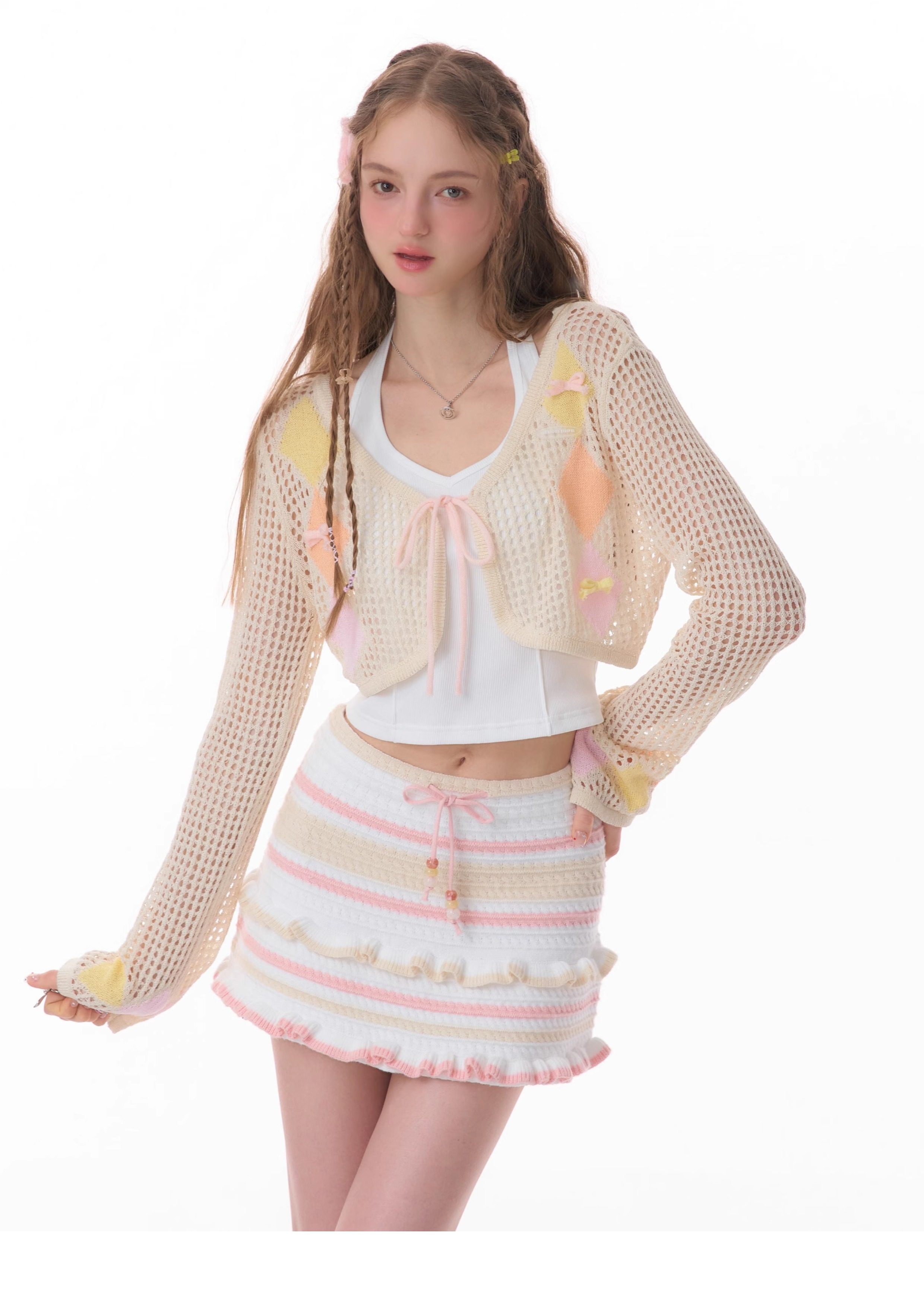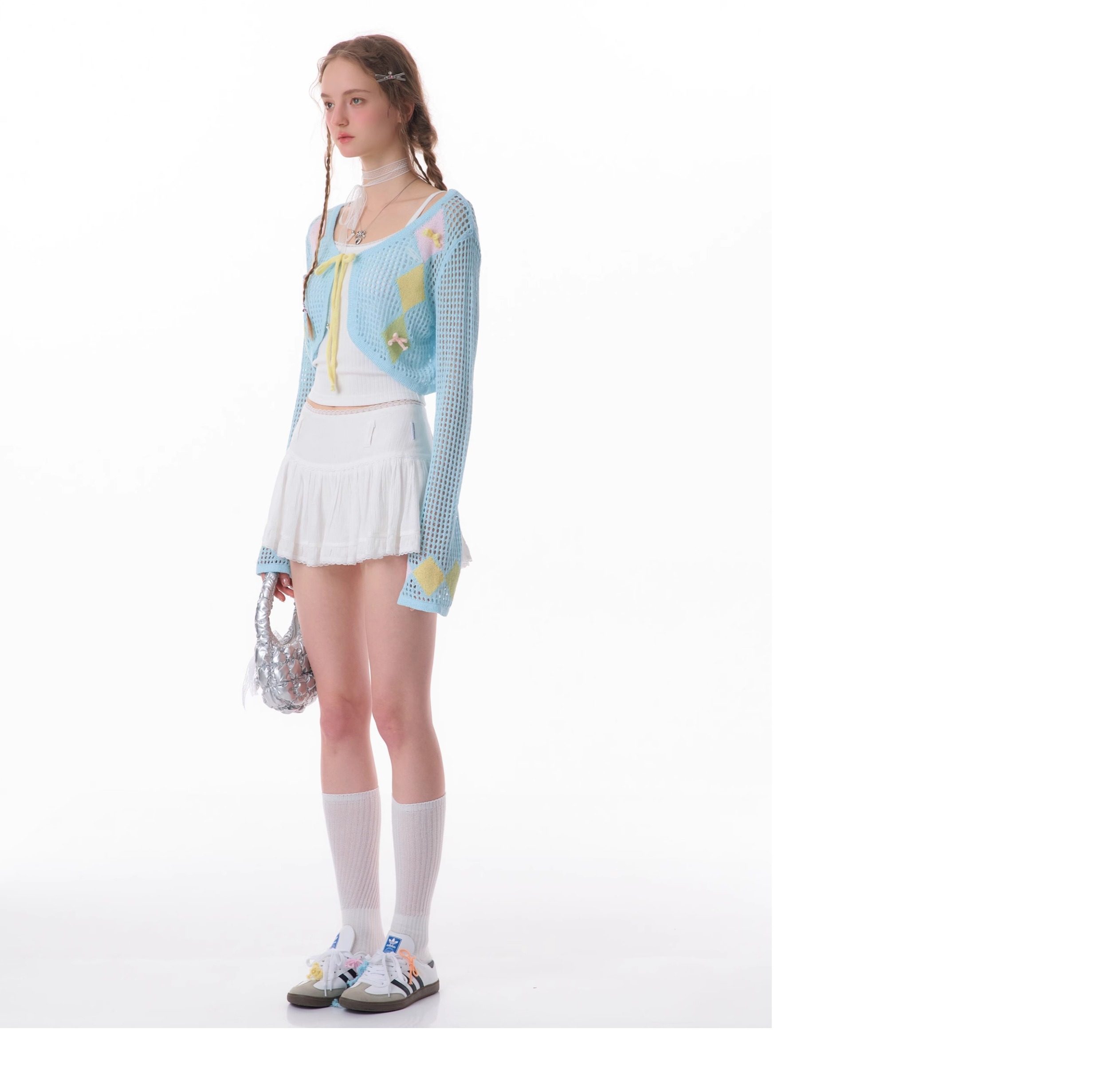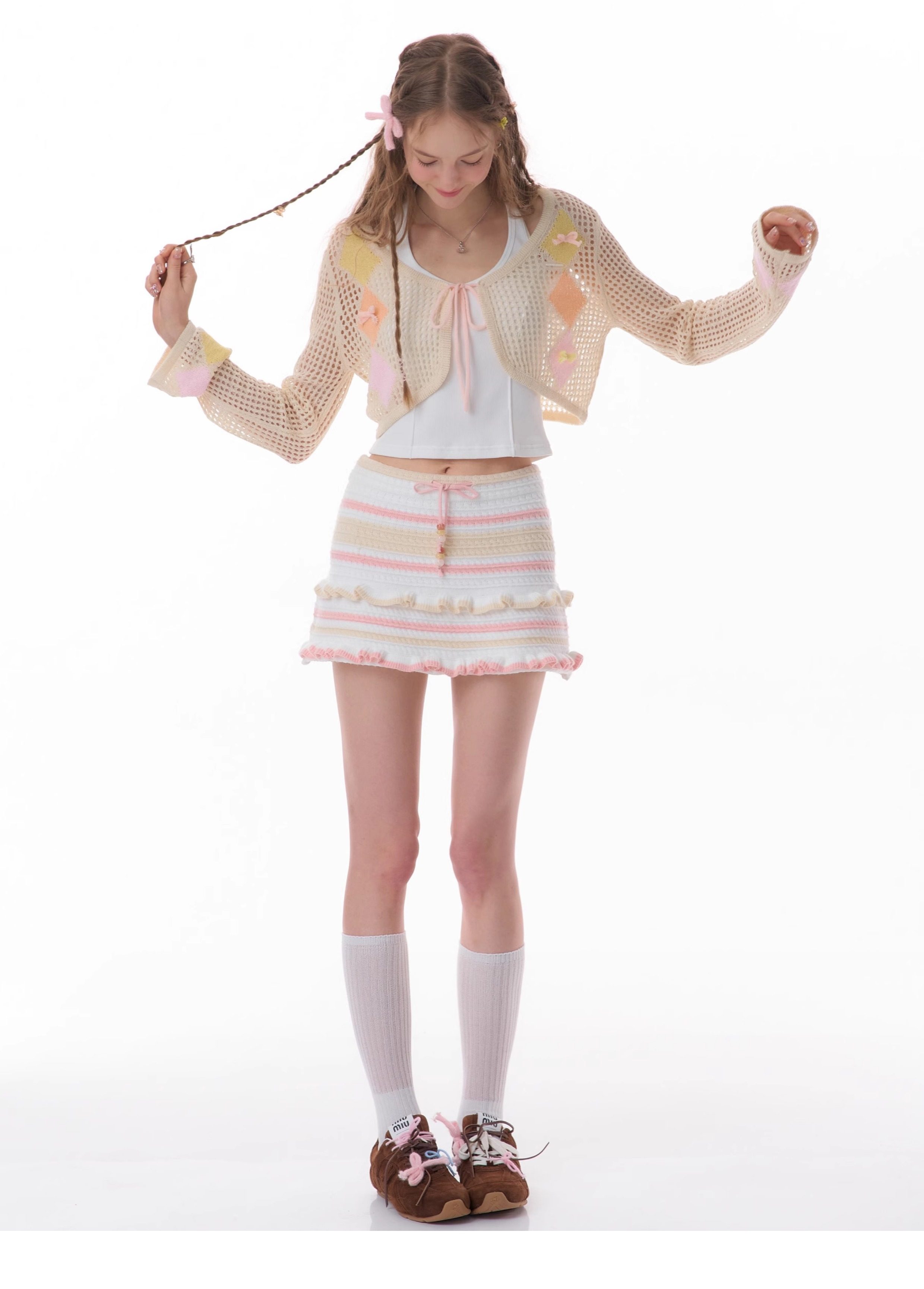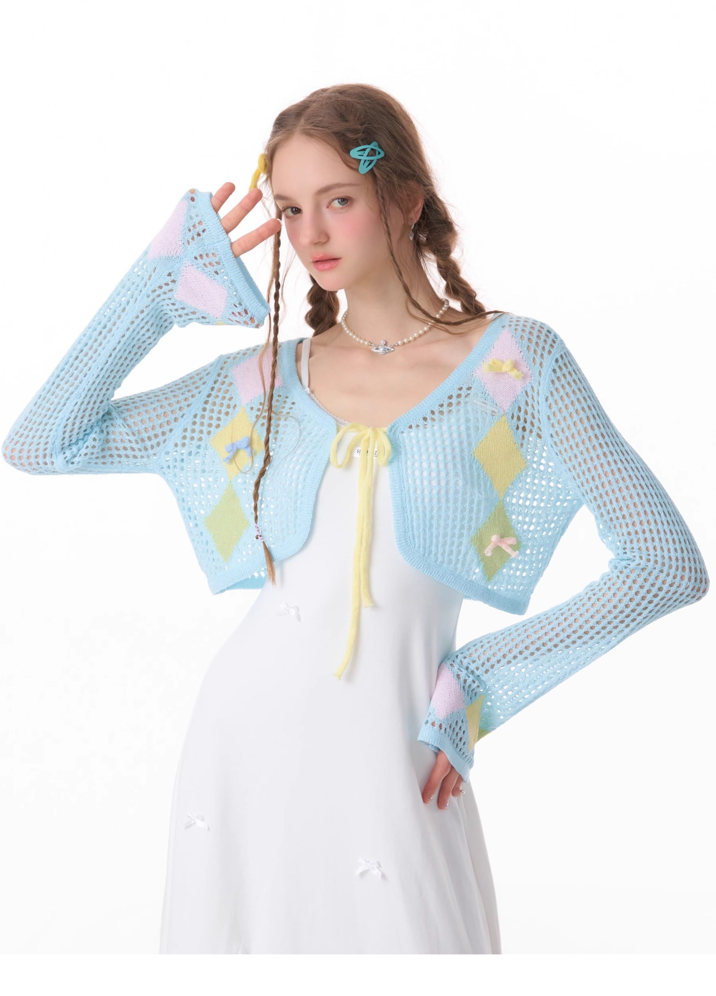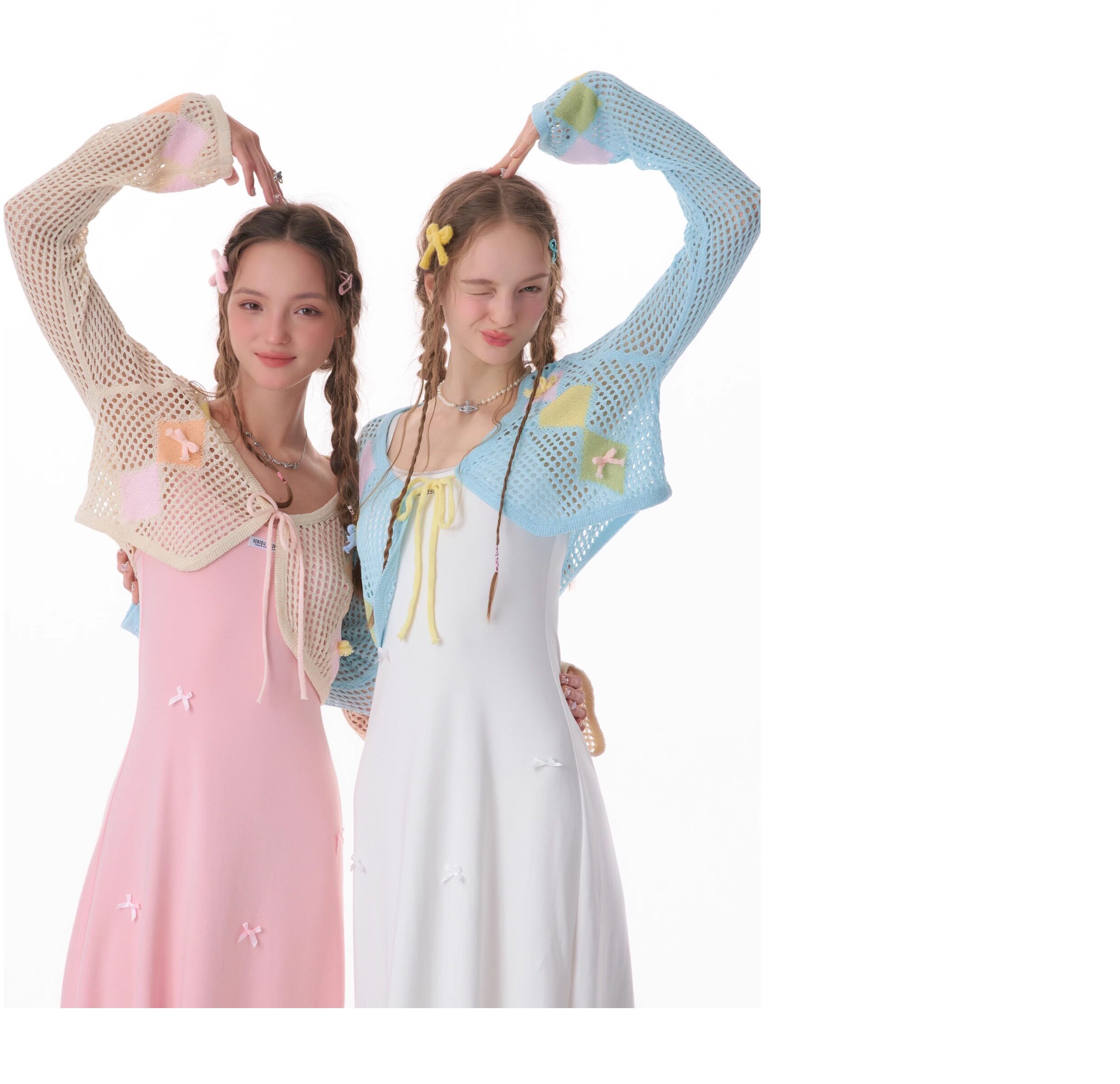 Bow Short Sleeve Hollow Knit Cardigan | Lightweight American Design for Summer