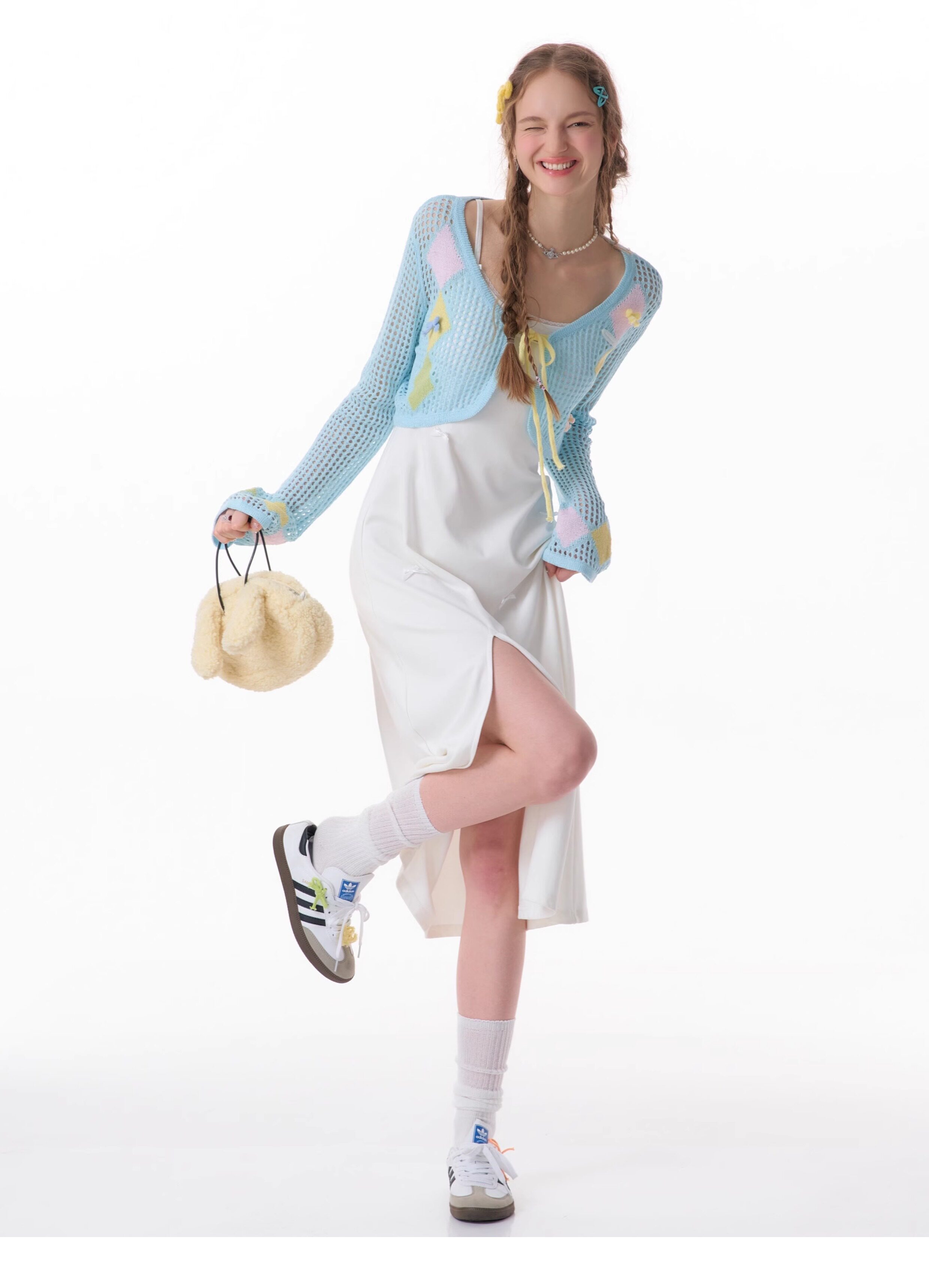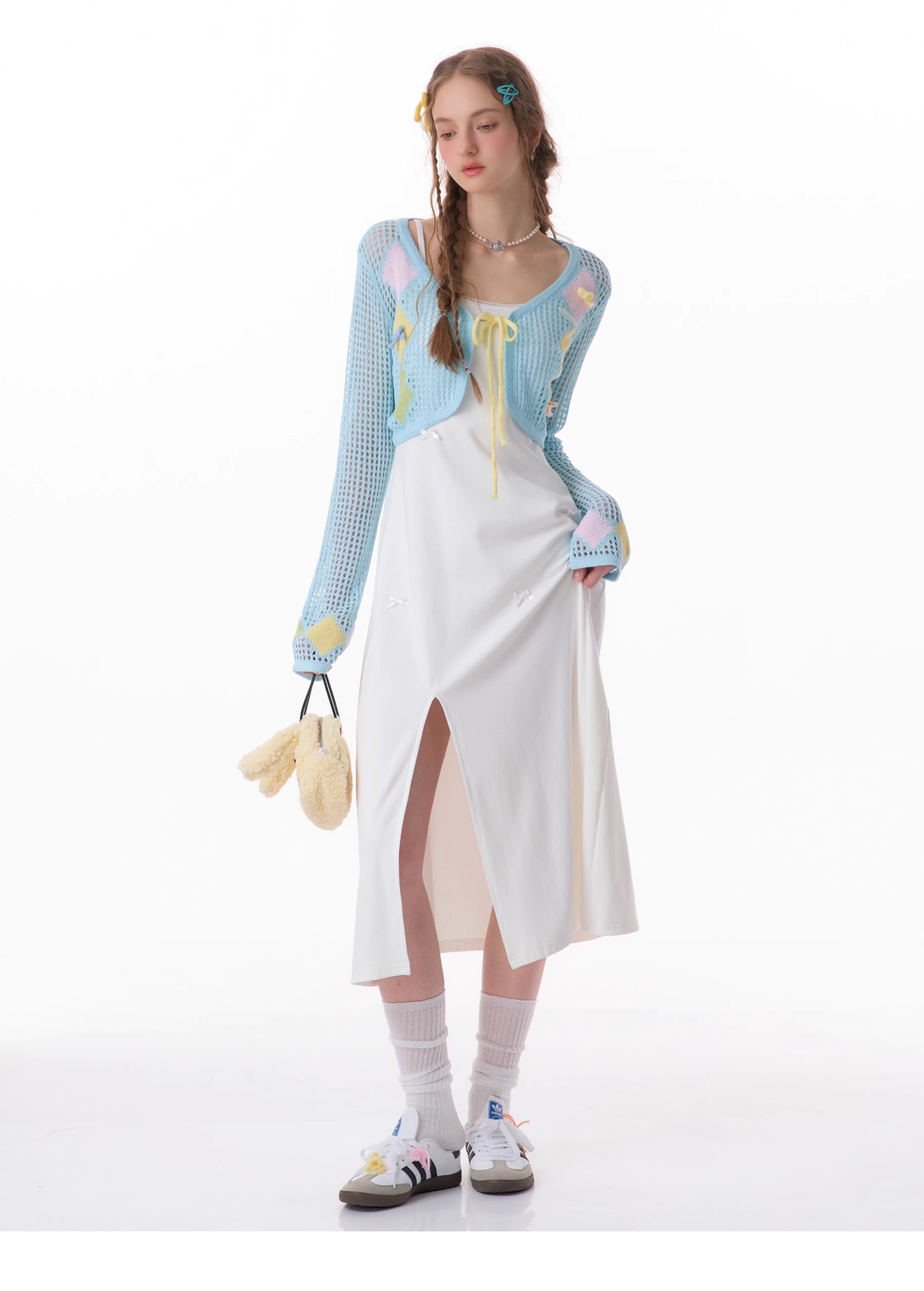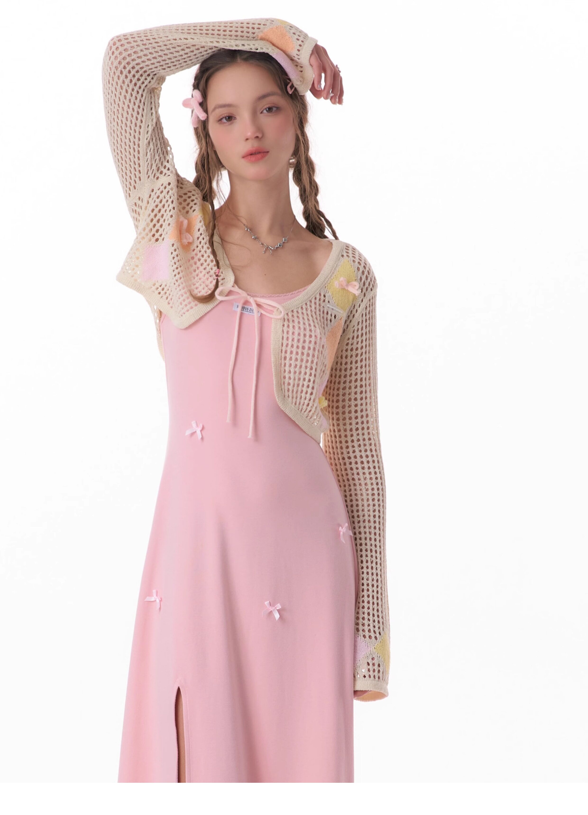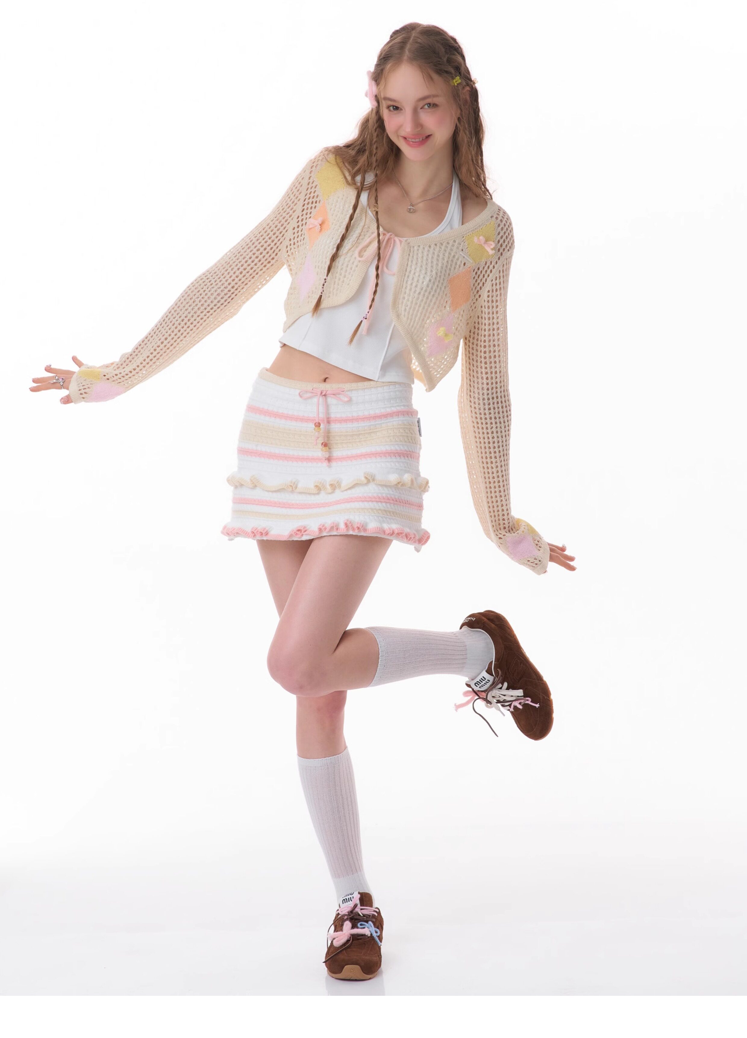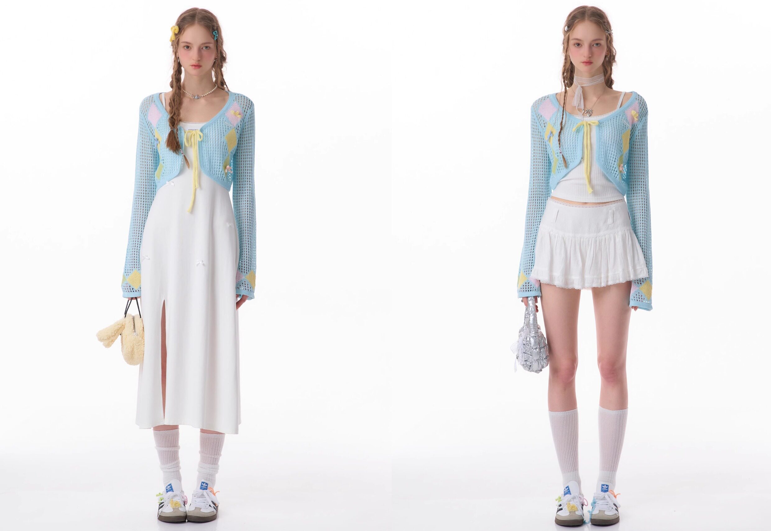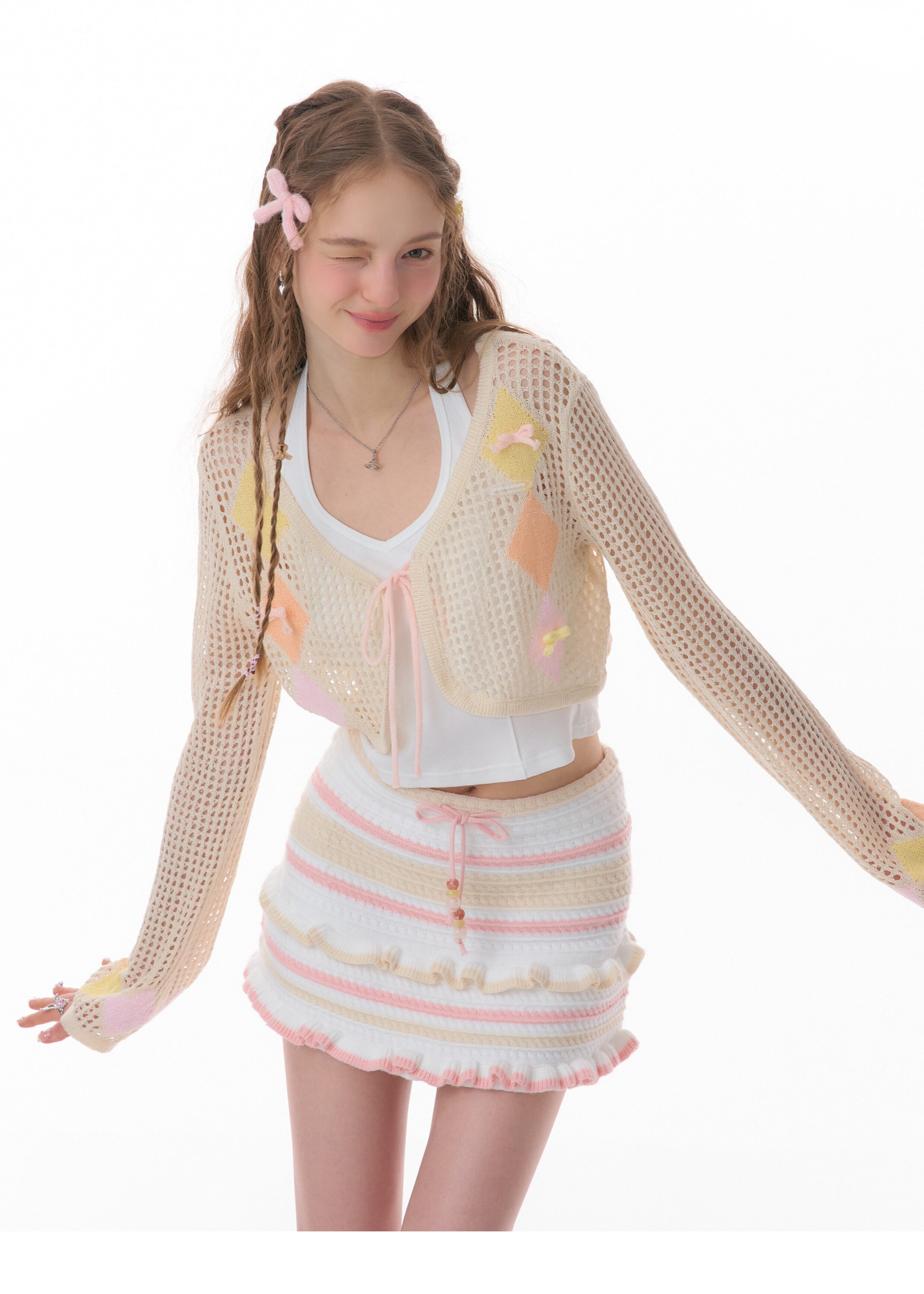 Bow Short Sleeve Hollow Knit Cardigan | Lightweight American Design for Summer