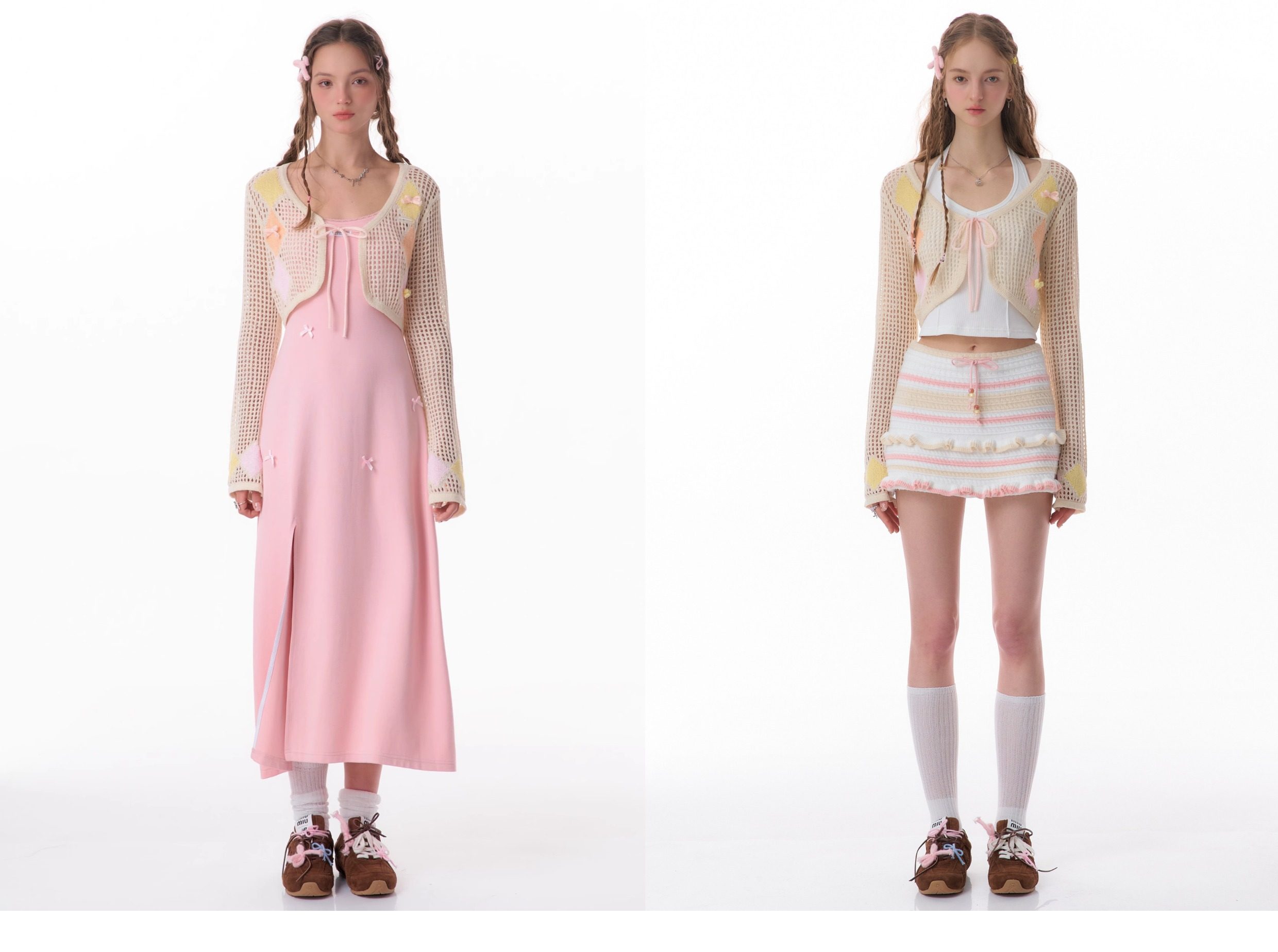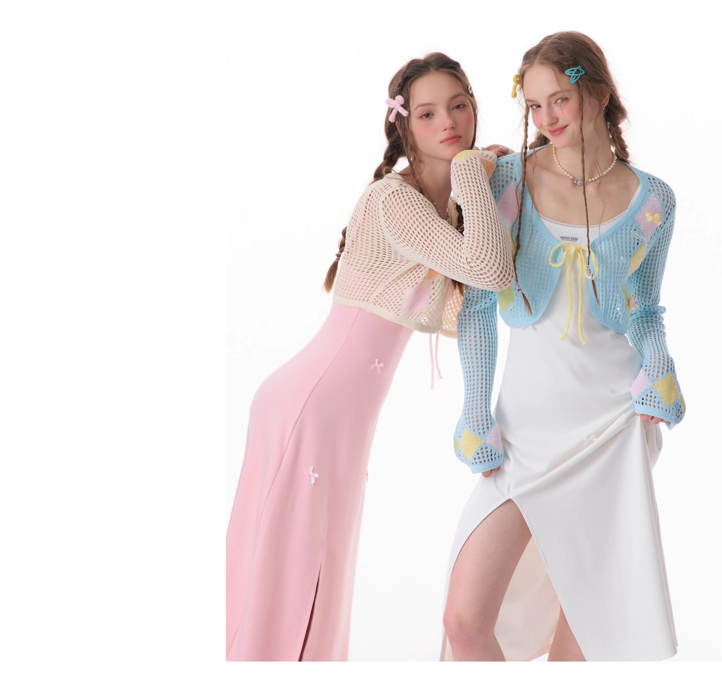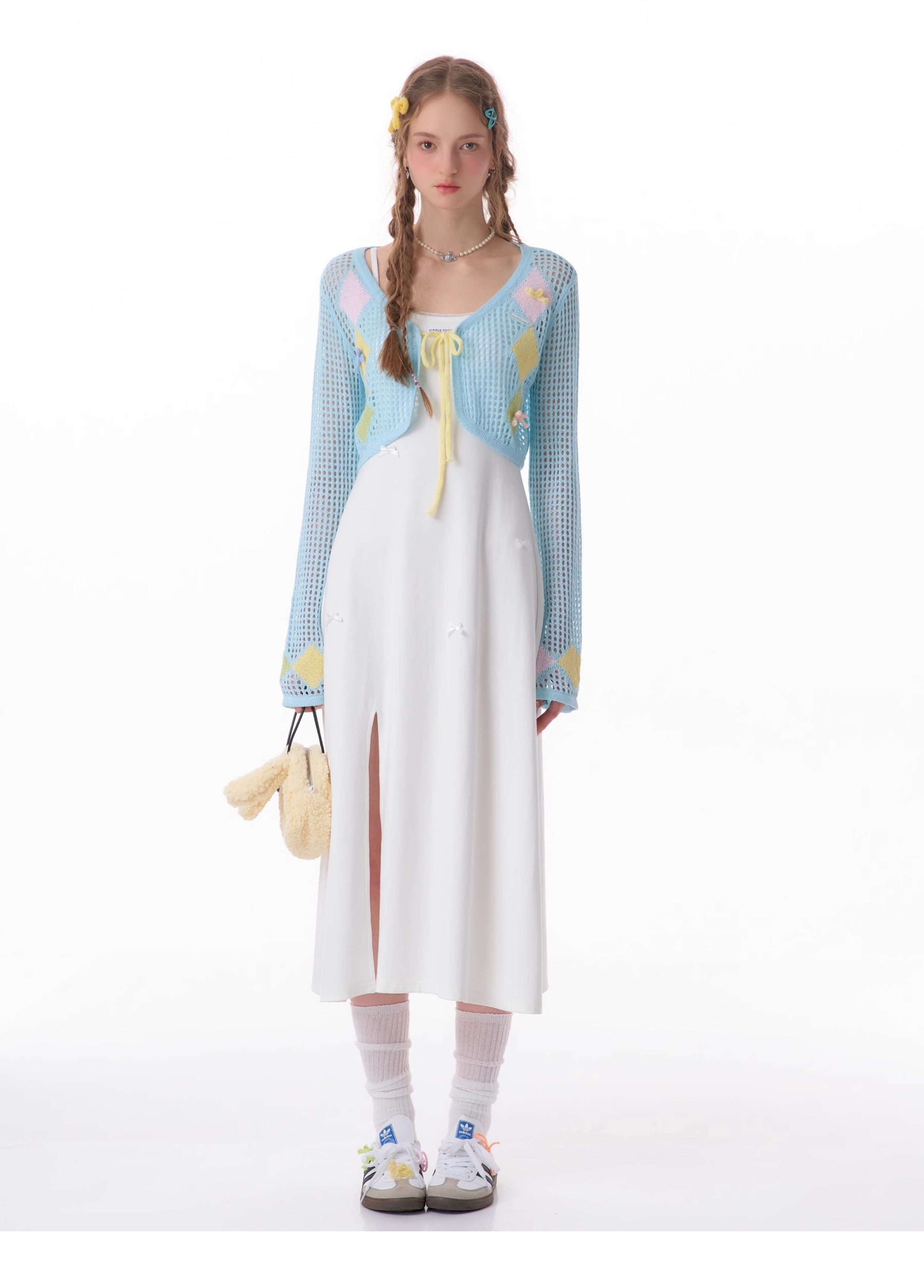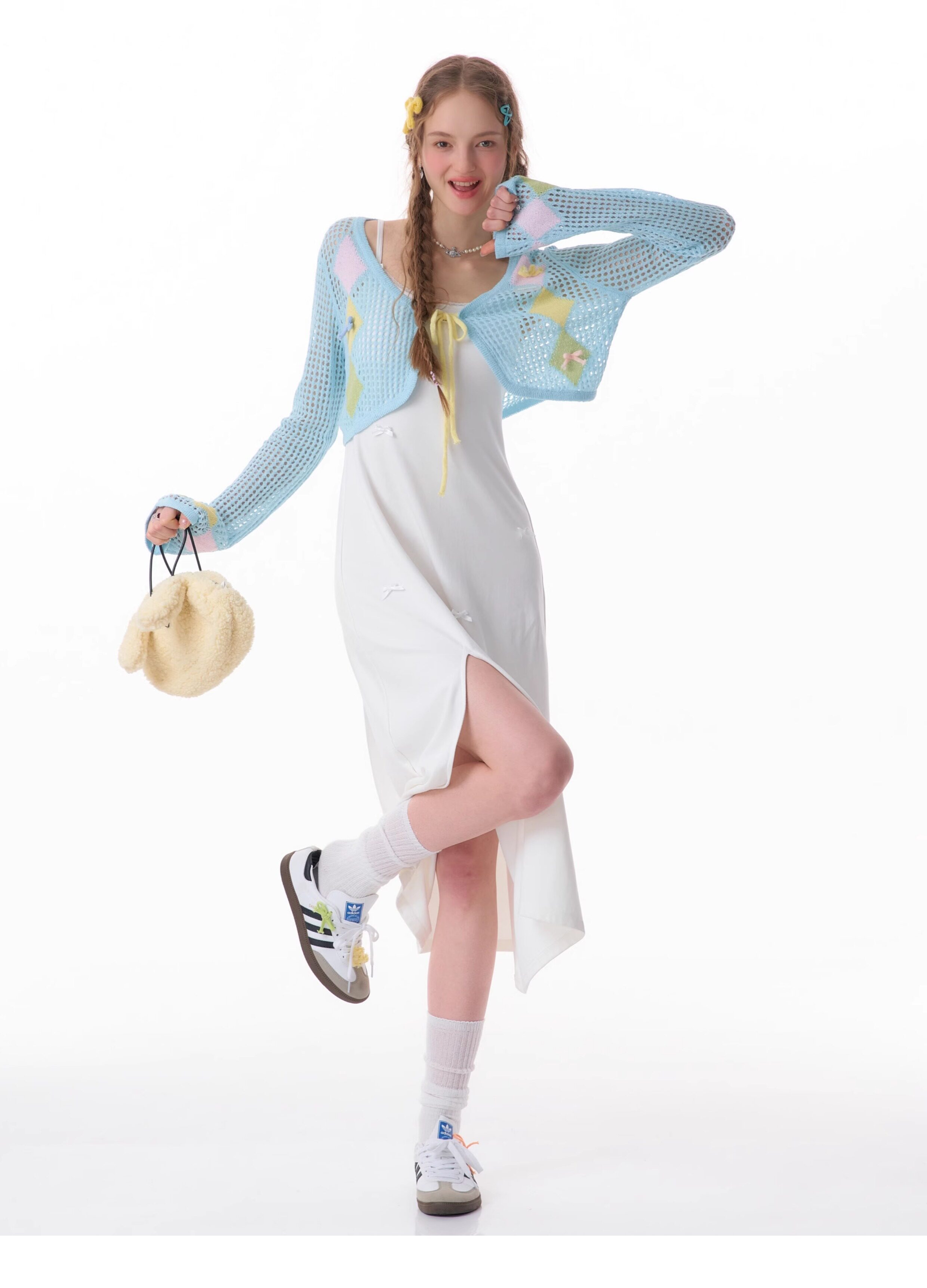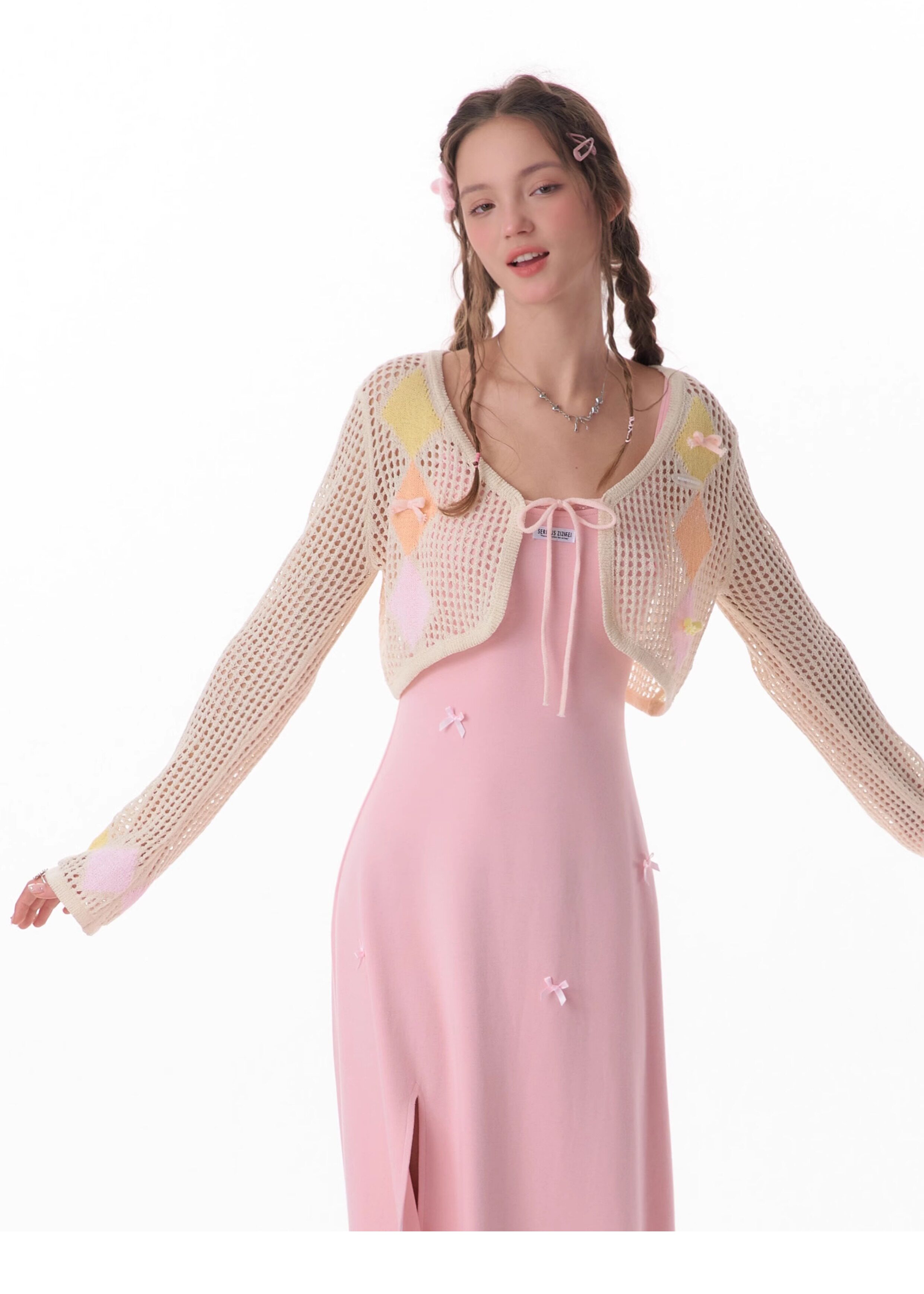 Bow Short Sleeve Hollow Knit Cardigan | Lightweight American Design for Summer