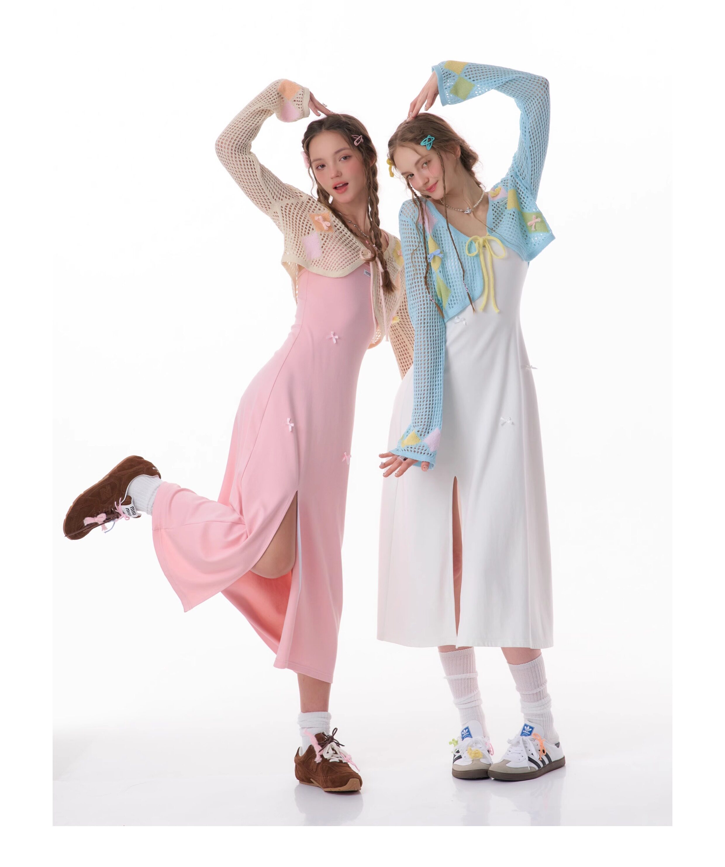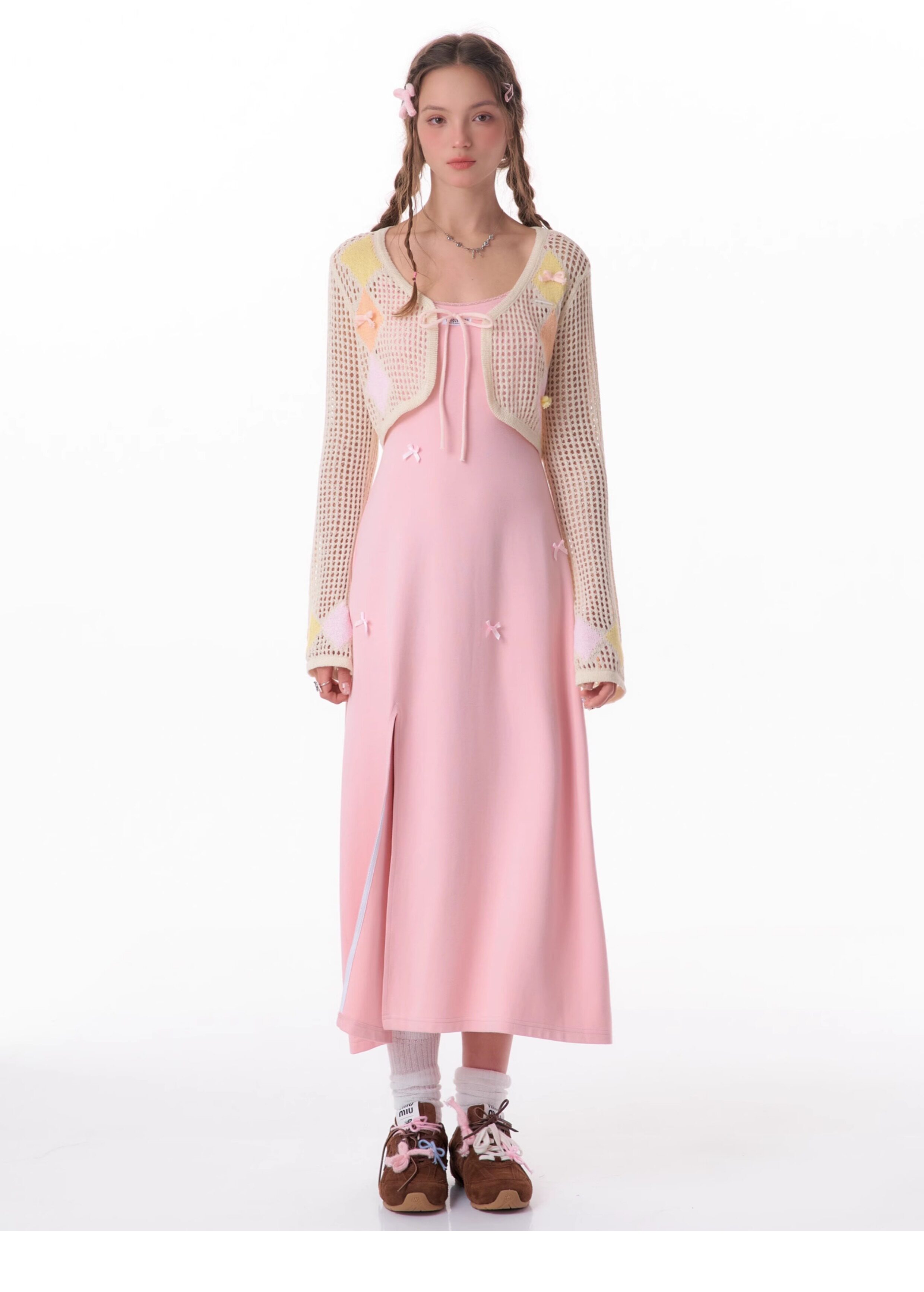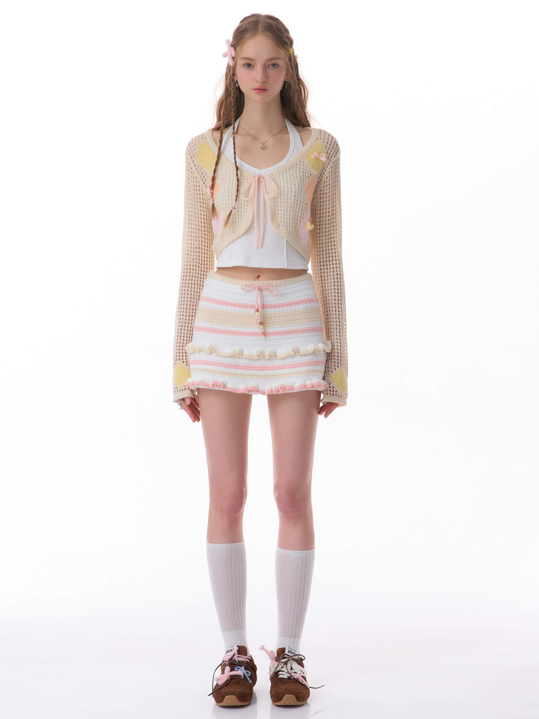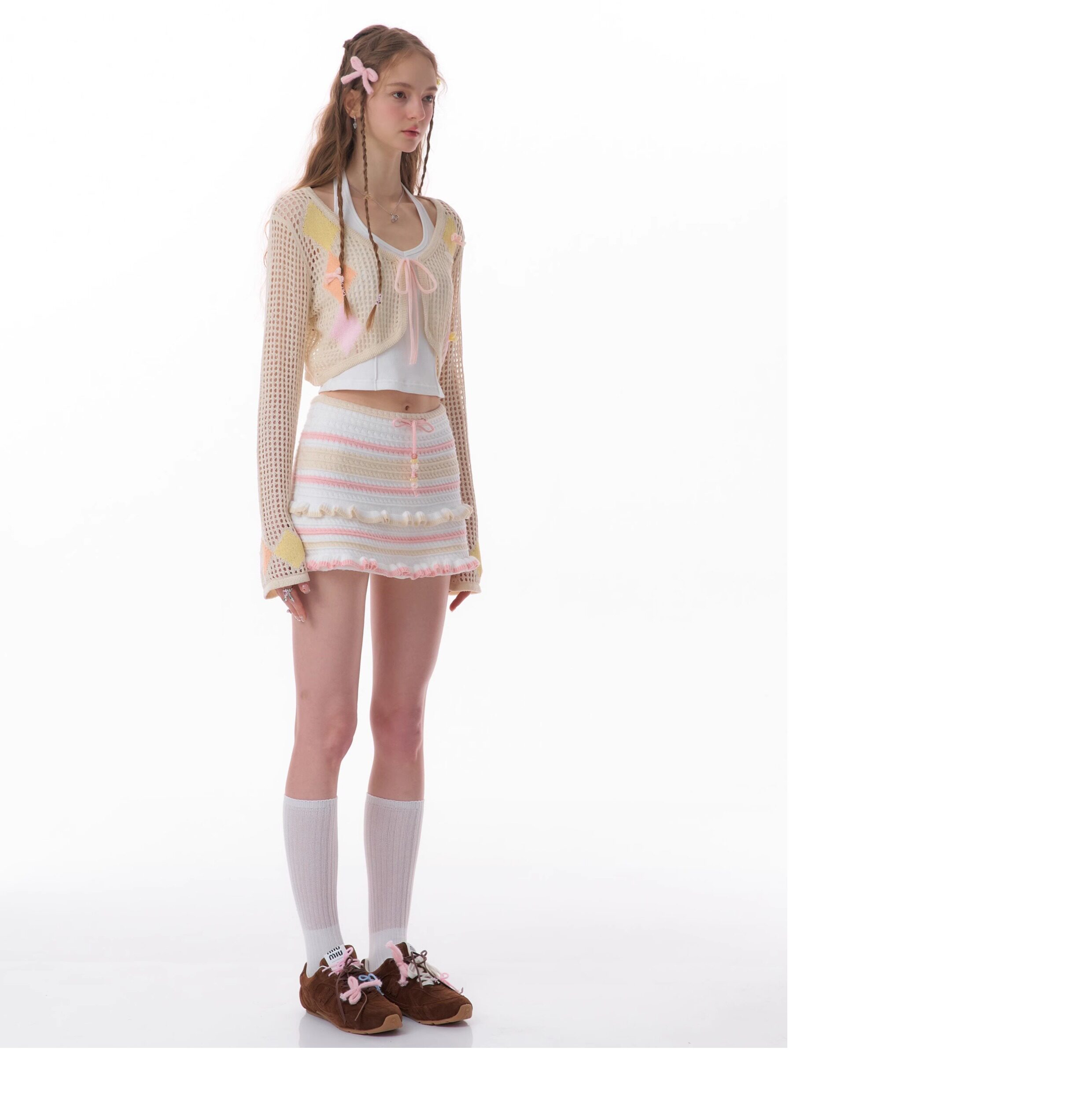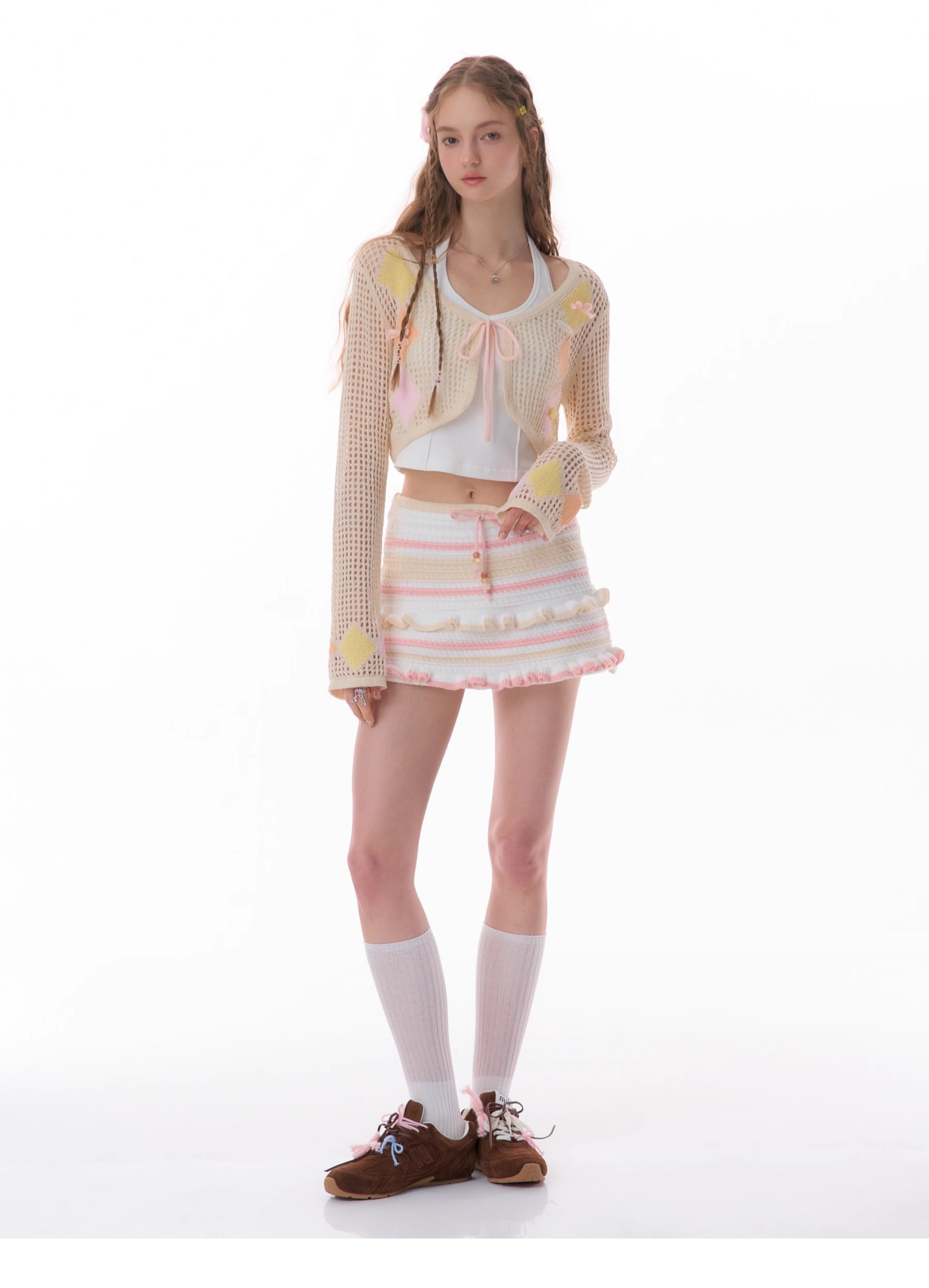 Bow Short Sleeve Hollow Knit Cardigan | Lightweight American Design for Summer