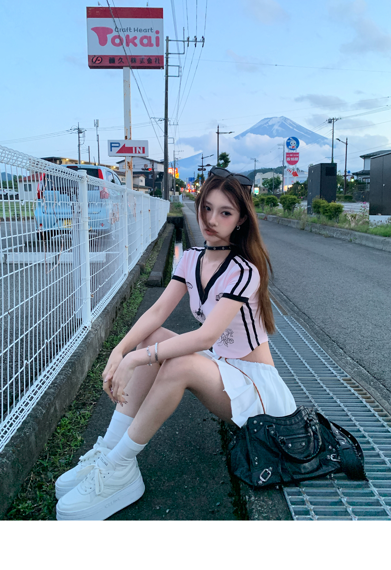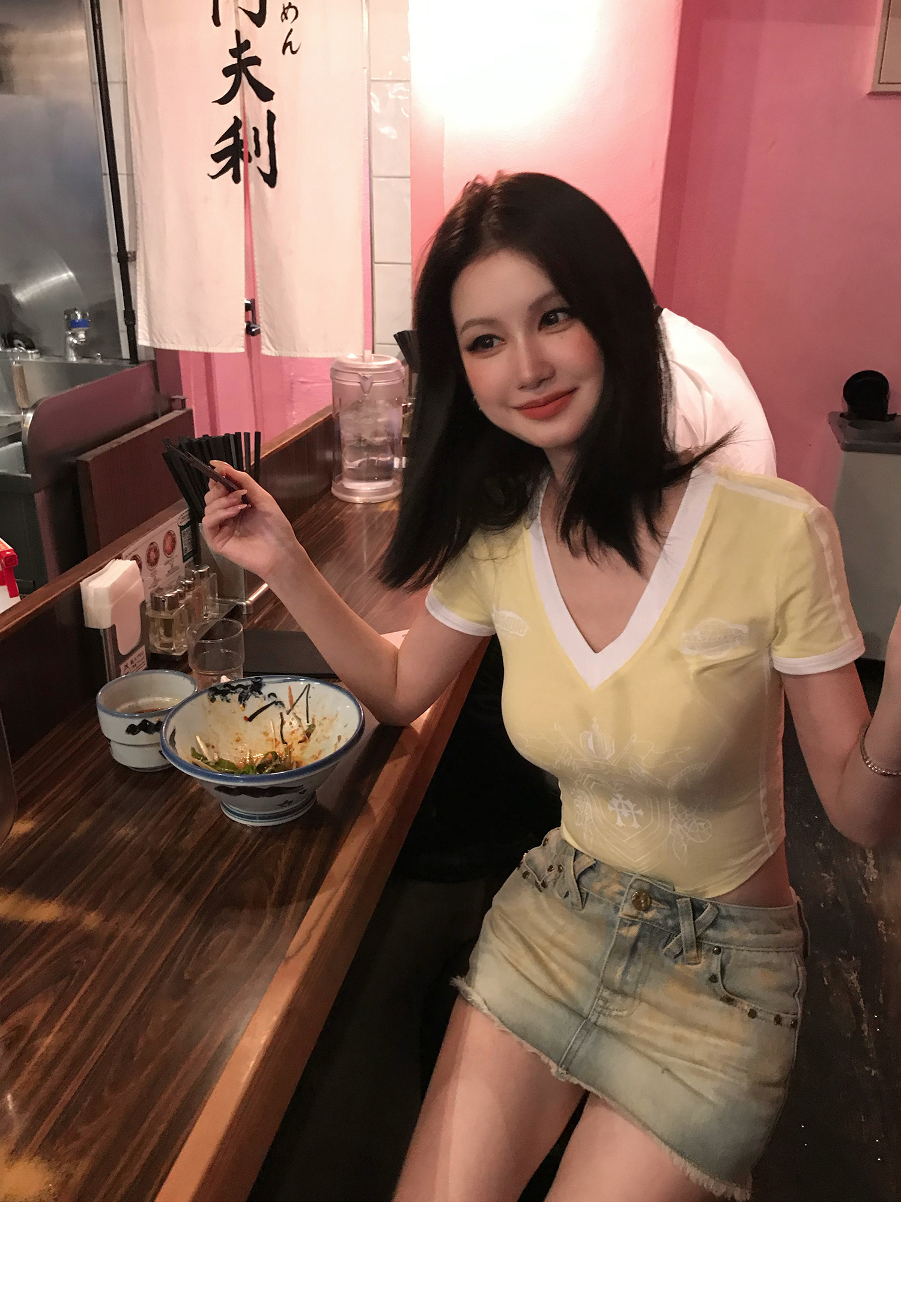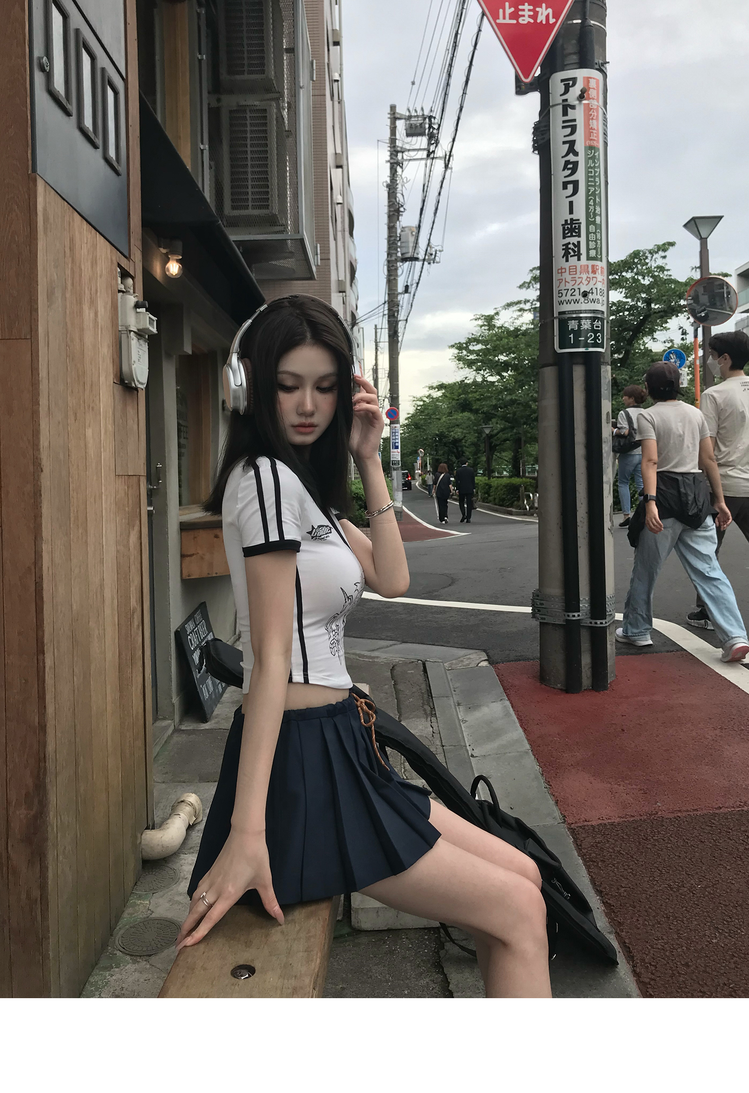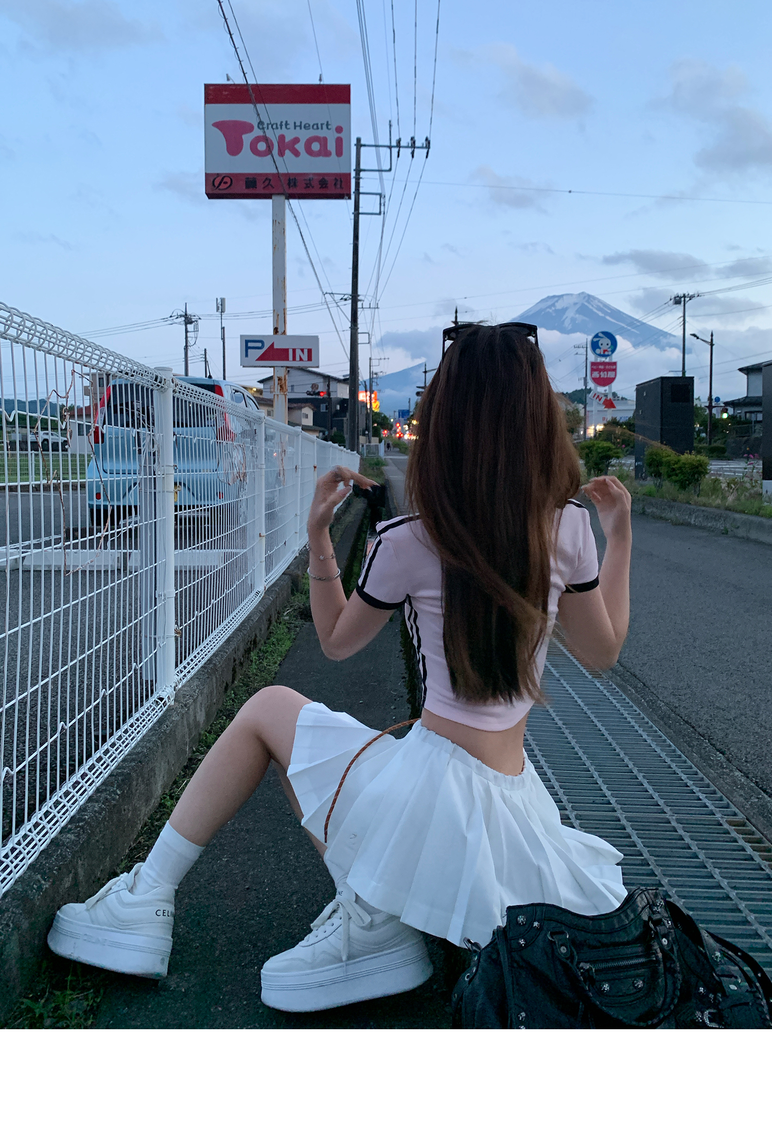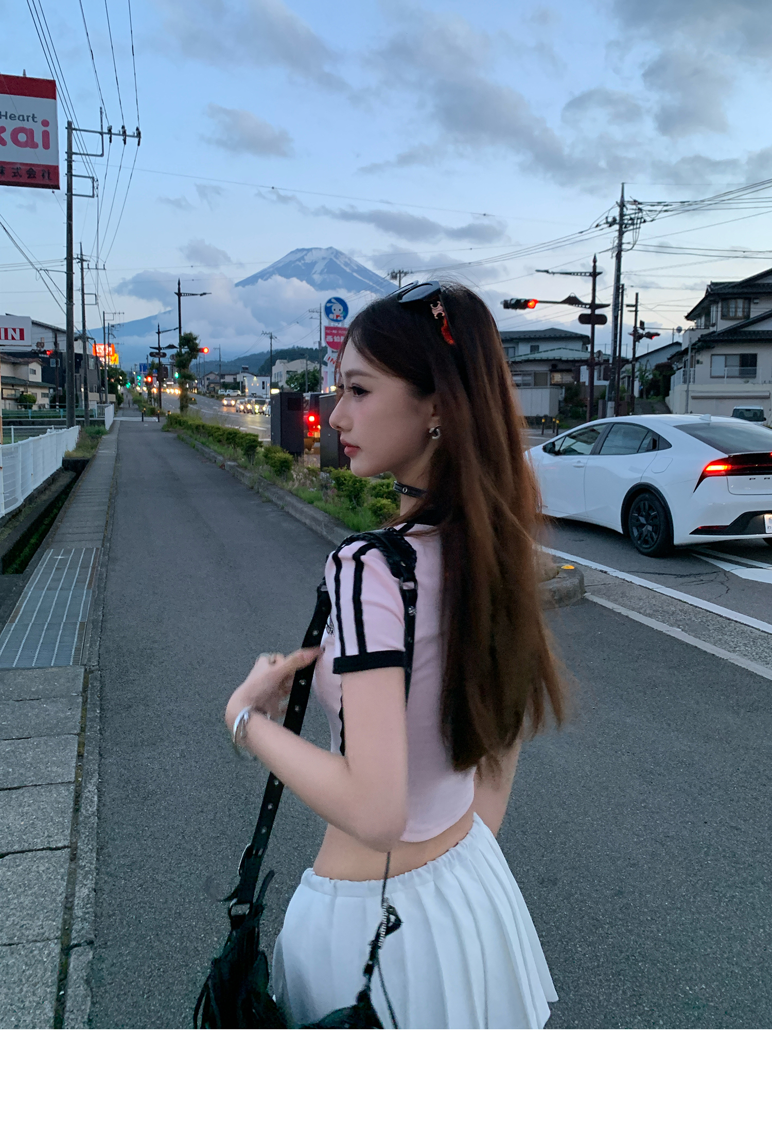 【Yoshino Taolesi】 Sports Hot Girl Short-Sleeve Color Block Top - Summer Style