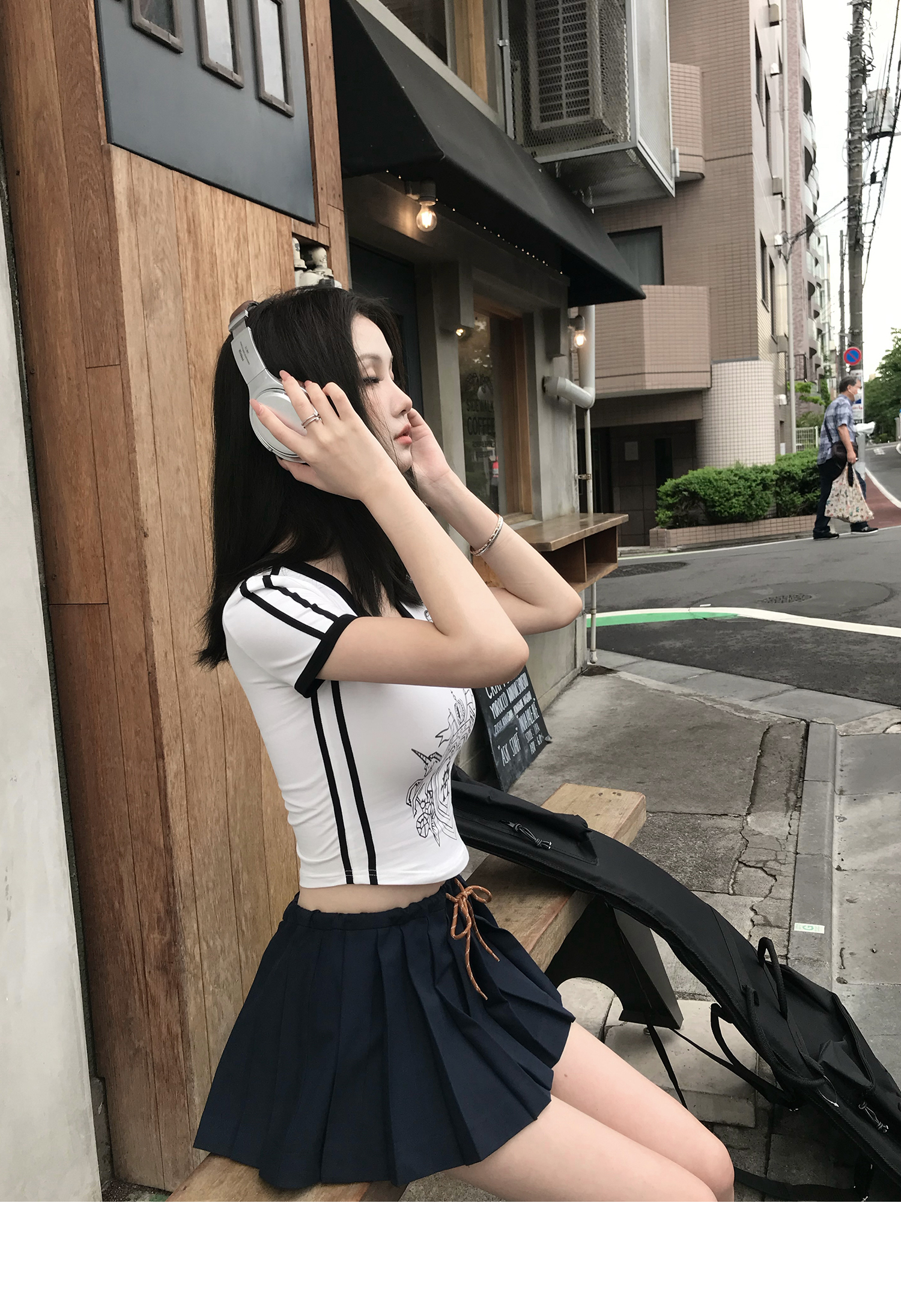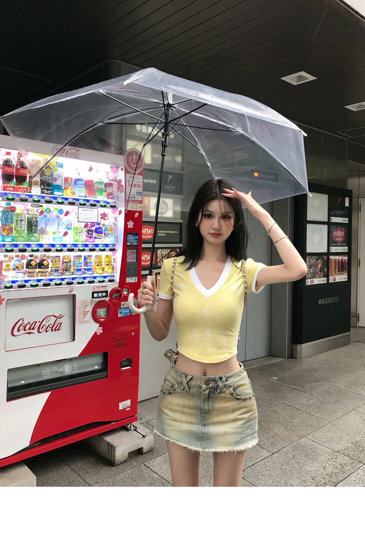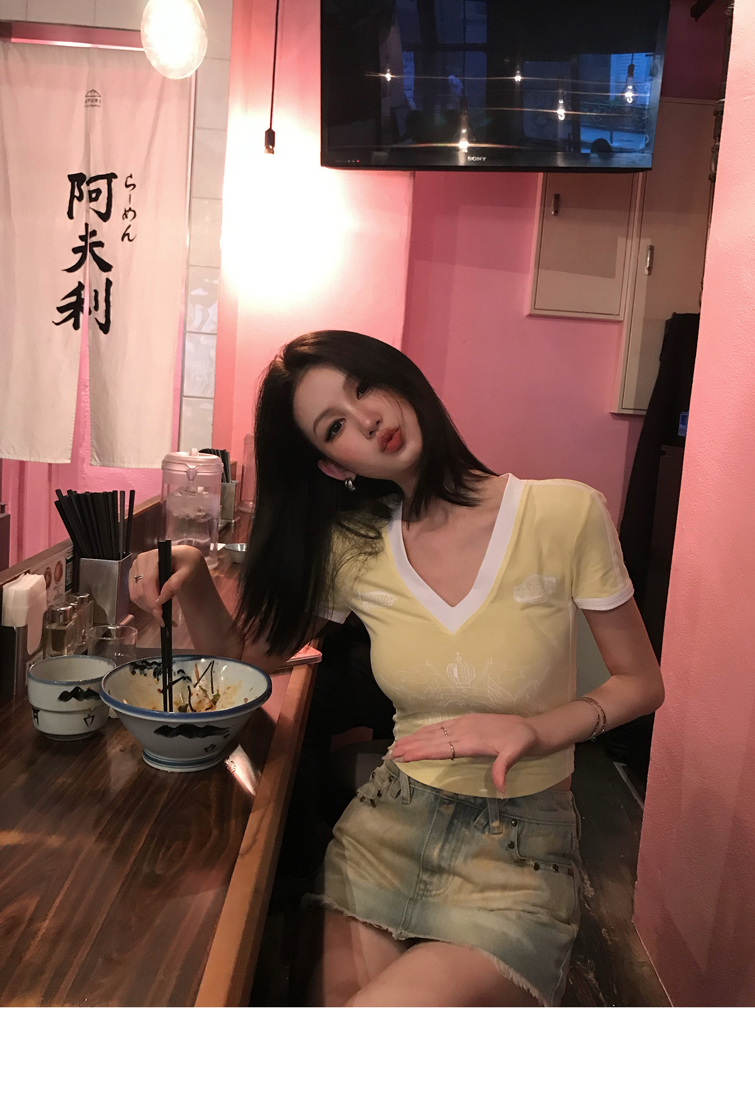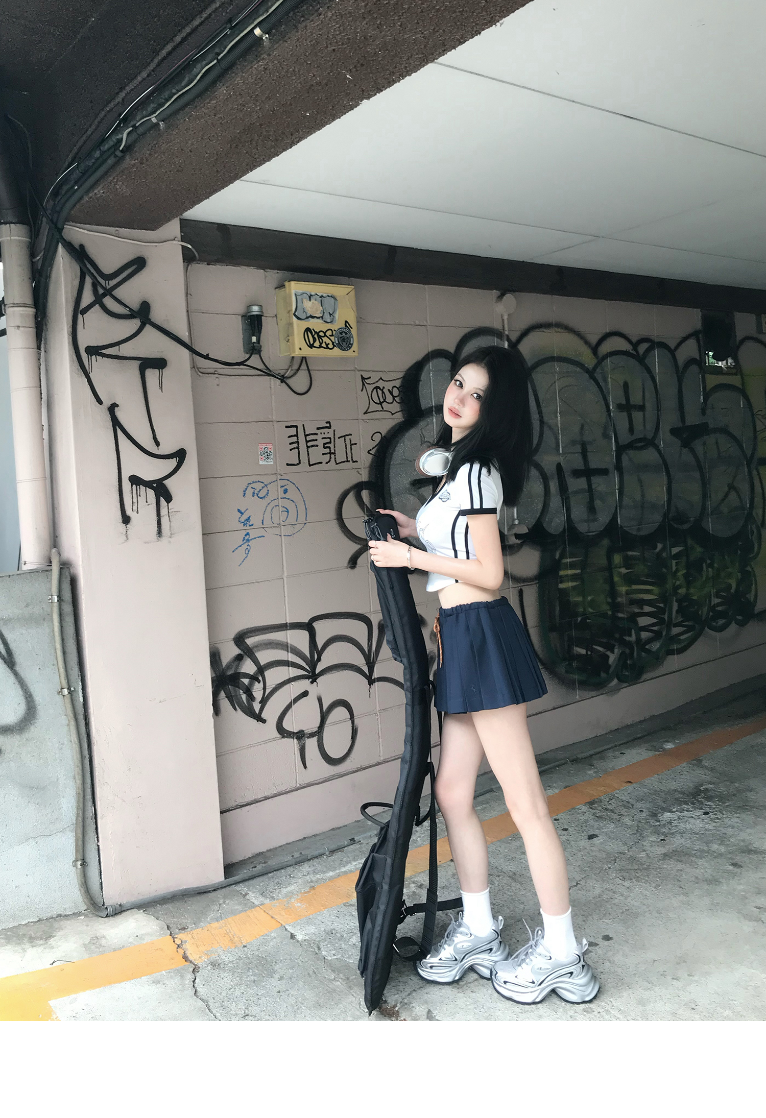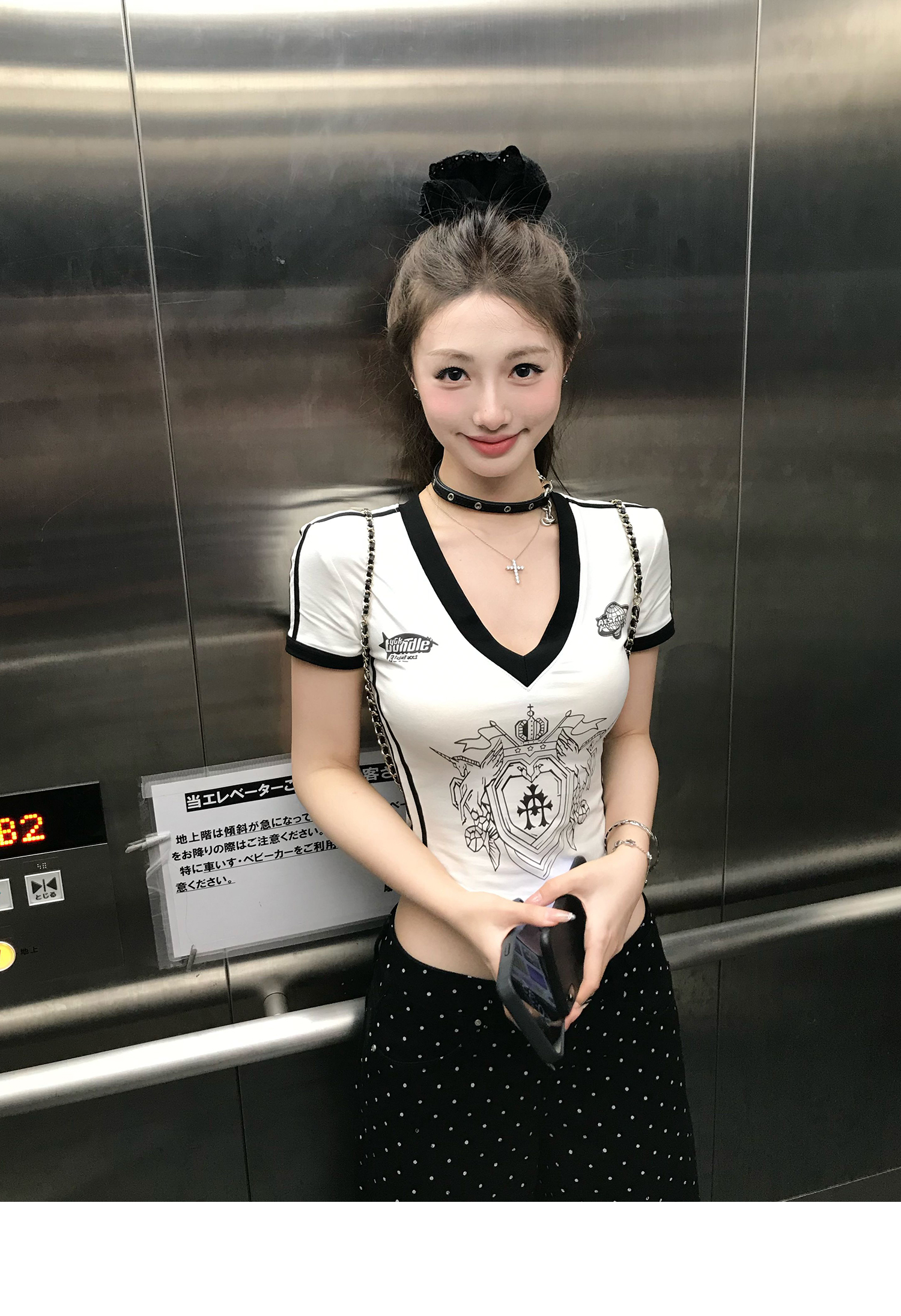 【Yoshino Taolesi】 Sports Hot Girl Short-Sleeve Color Block Top - Summer Style