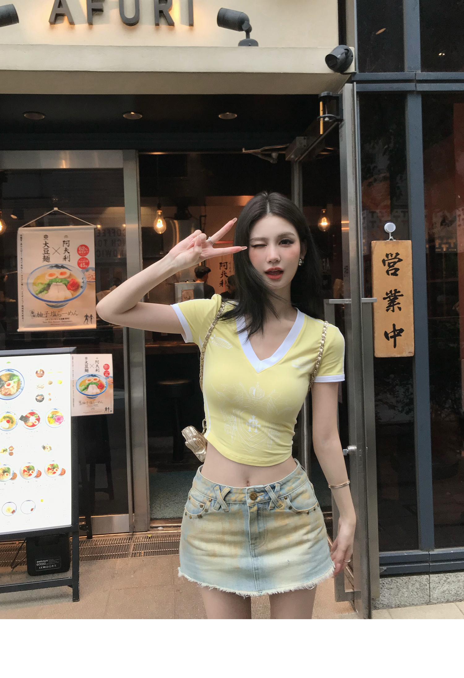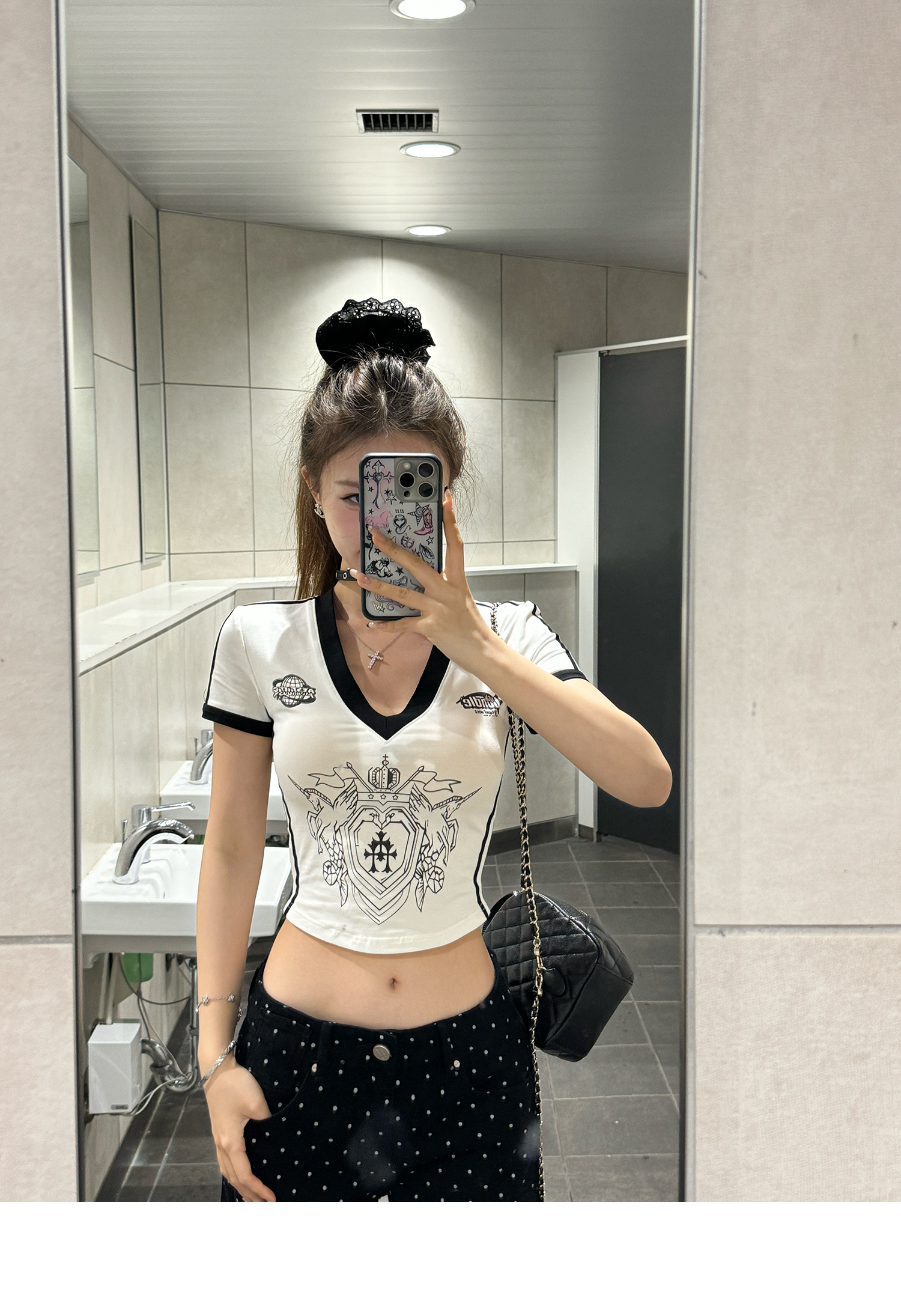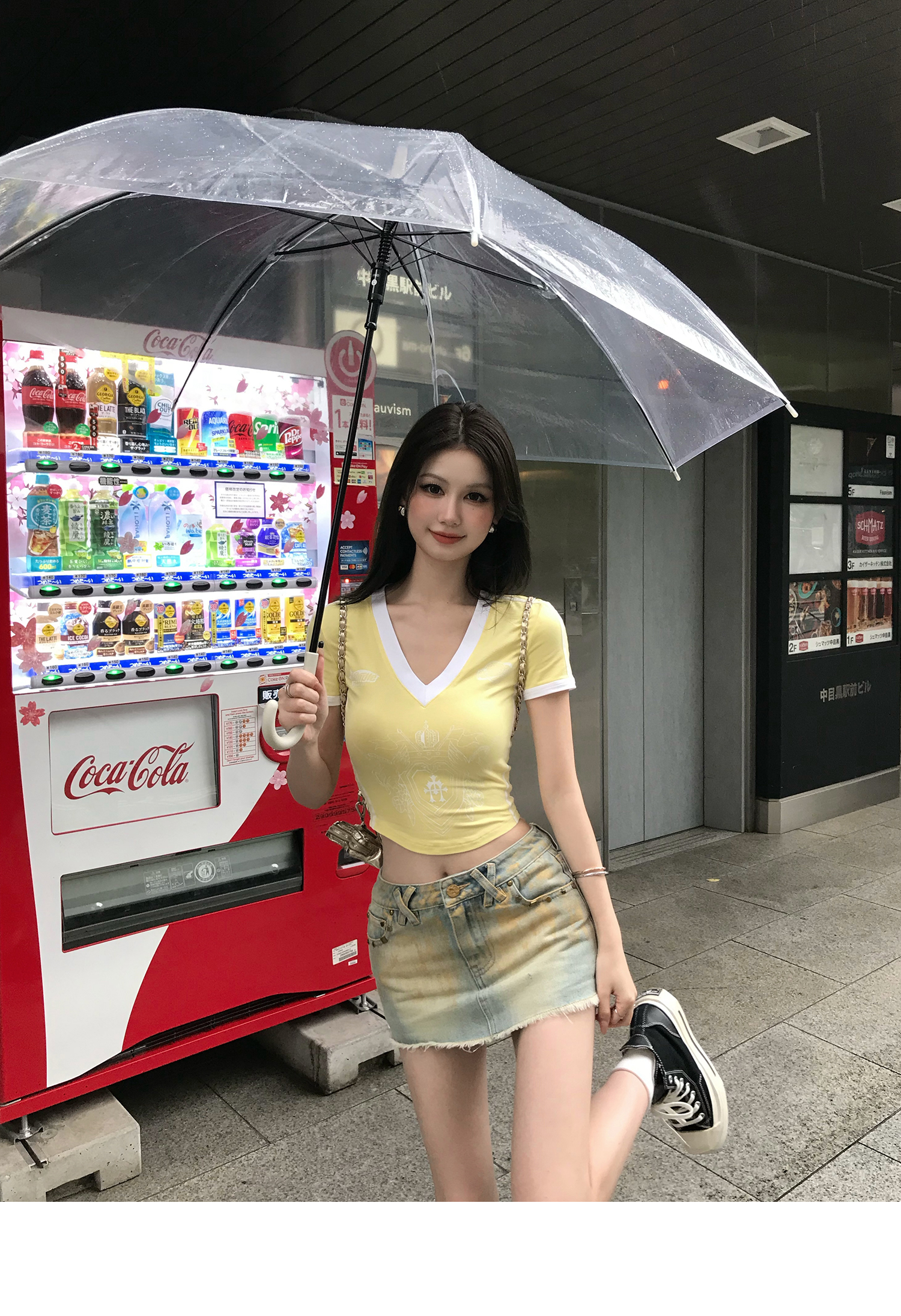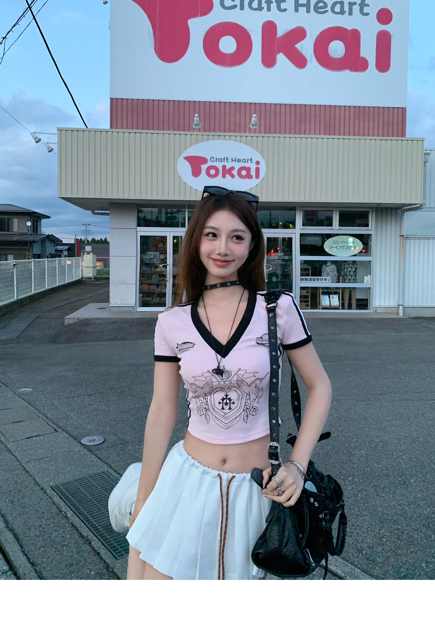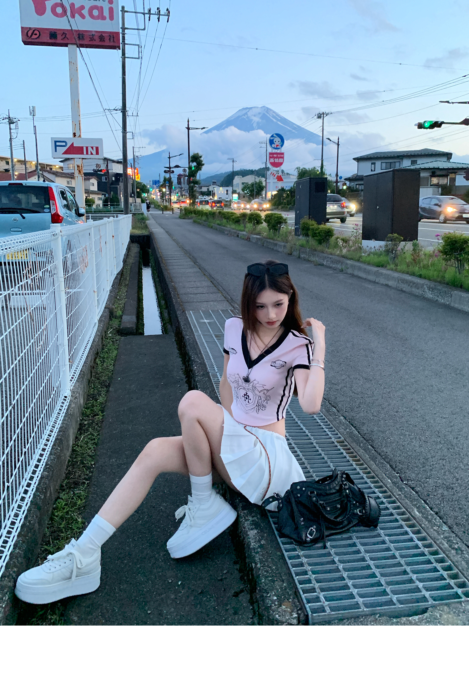 【Yoshino Taolesi】 Sports Hot Girl Short-Sleeve Color Block Top - Summer Style