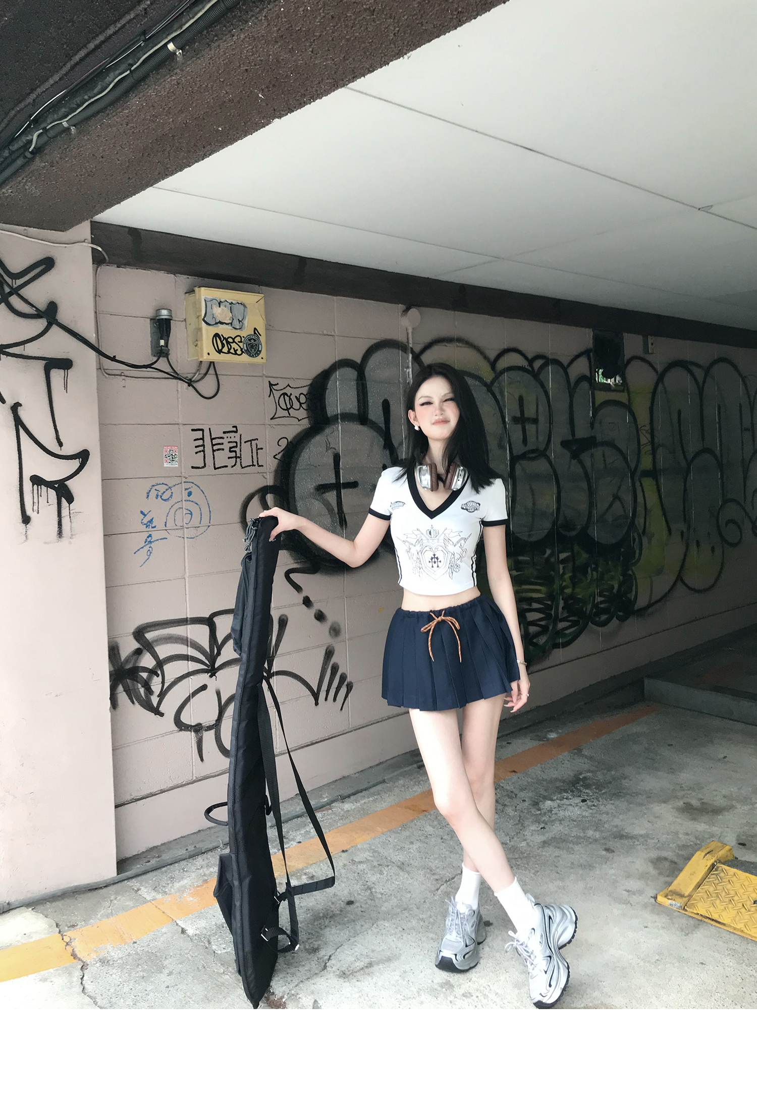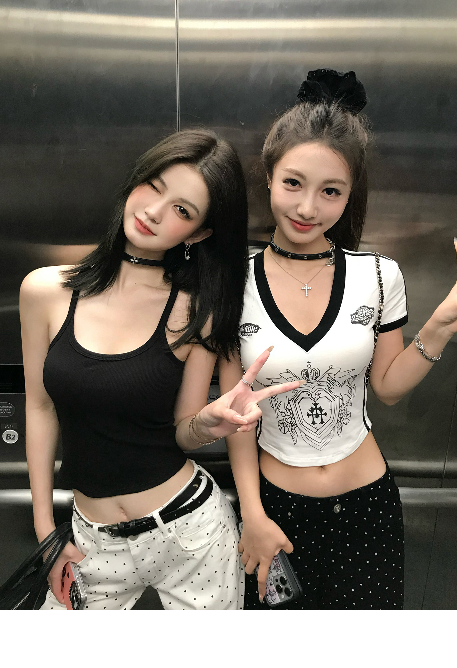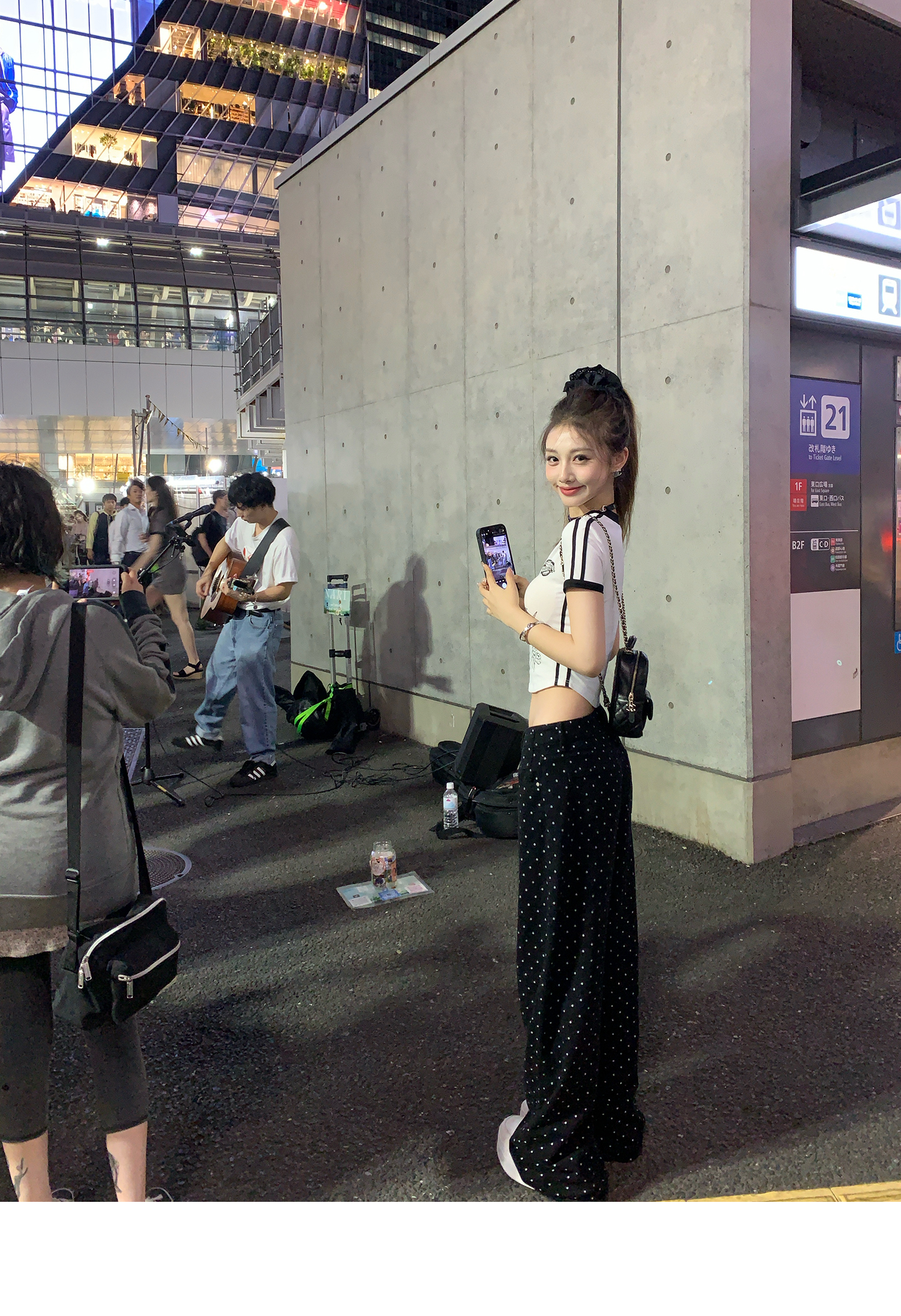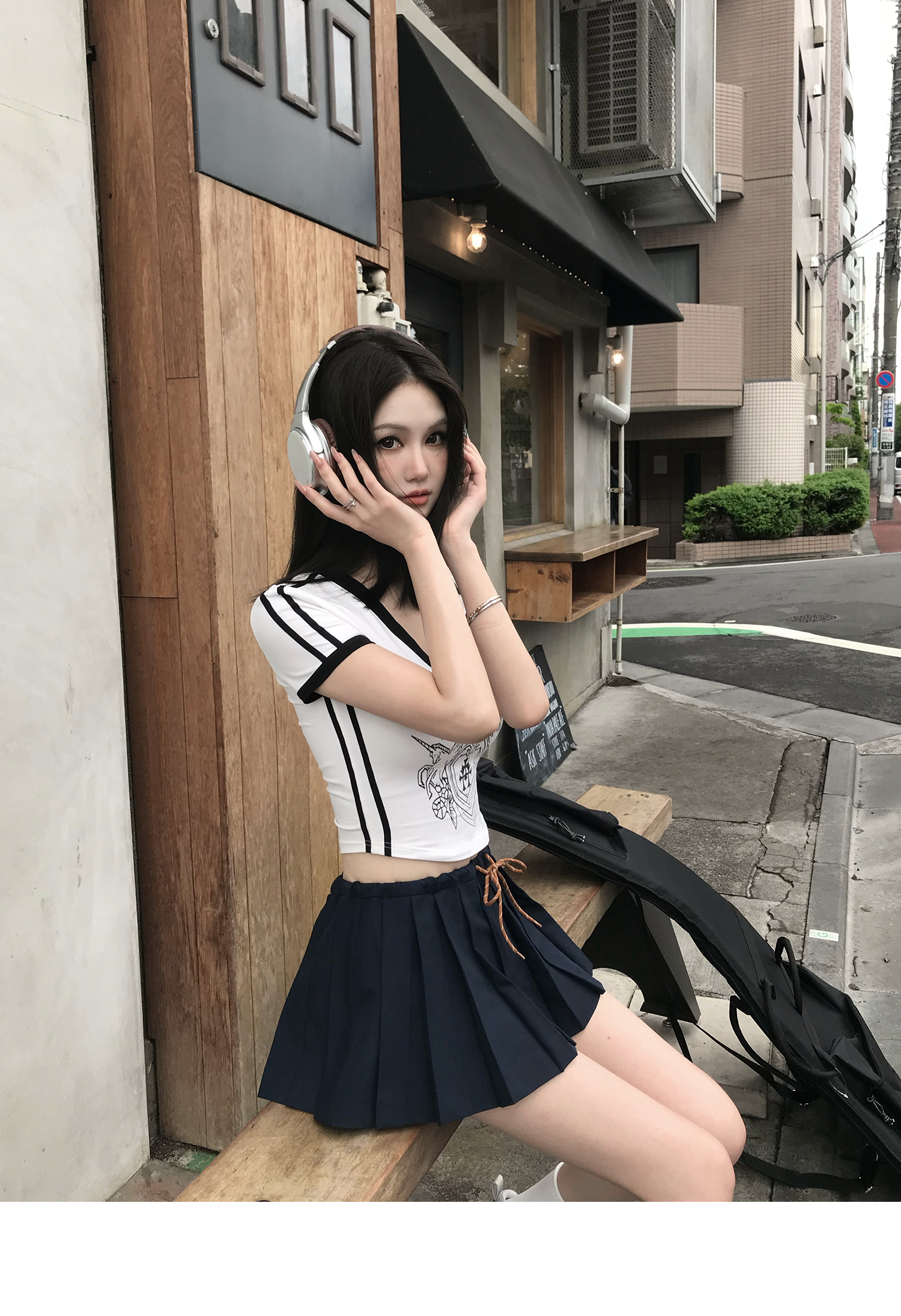 【Yoshino Taolesi】 Sports Hot Girl Short-Sleeve Color Block Top - Summer Style