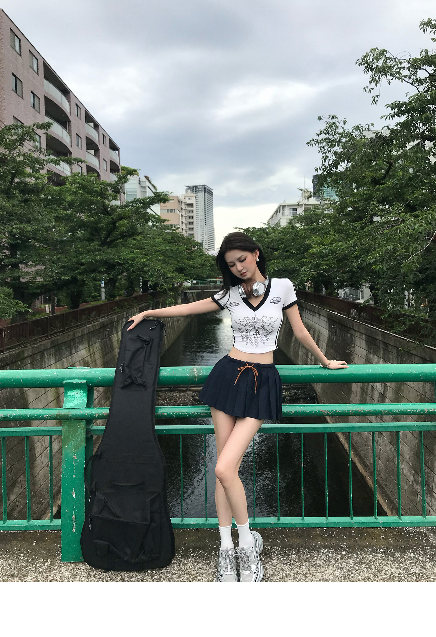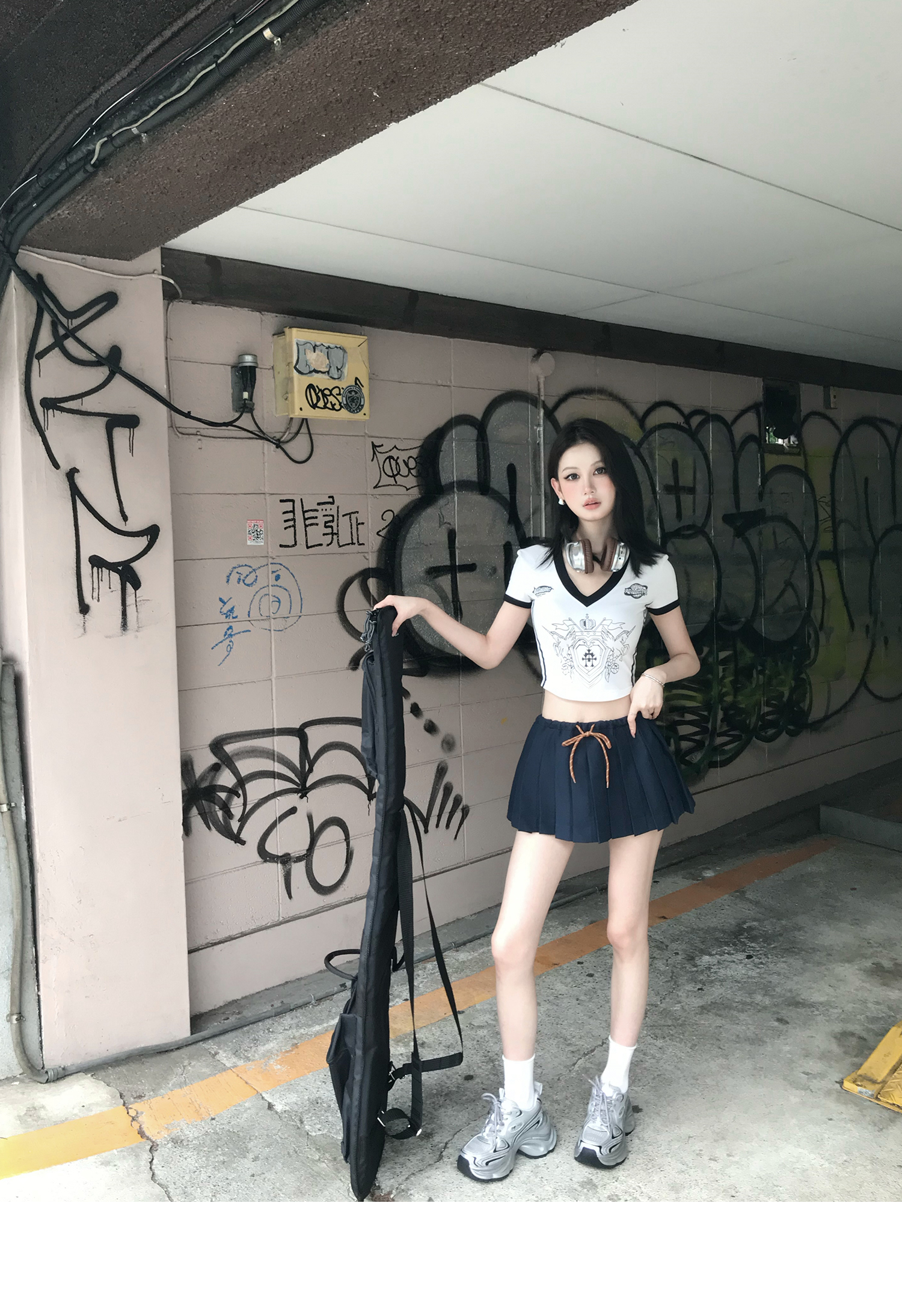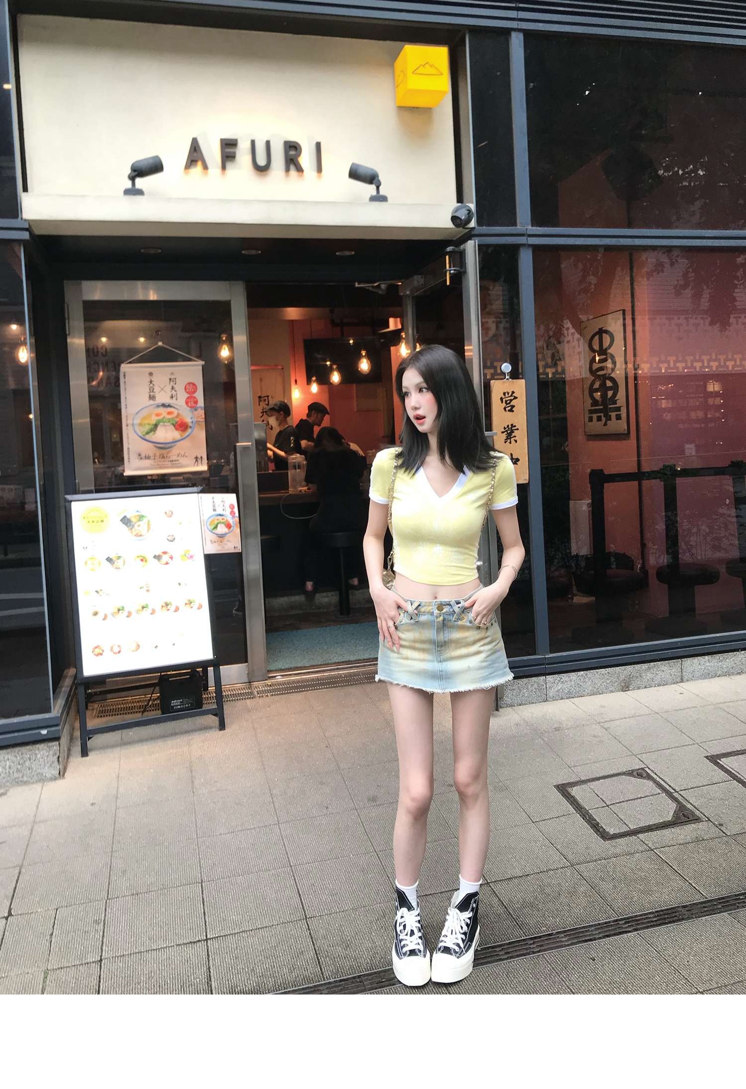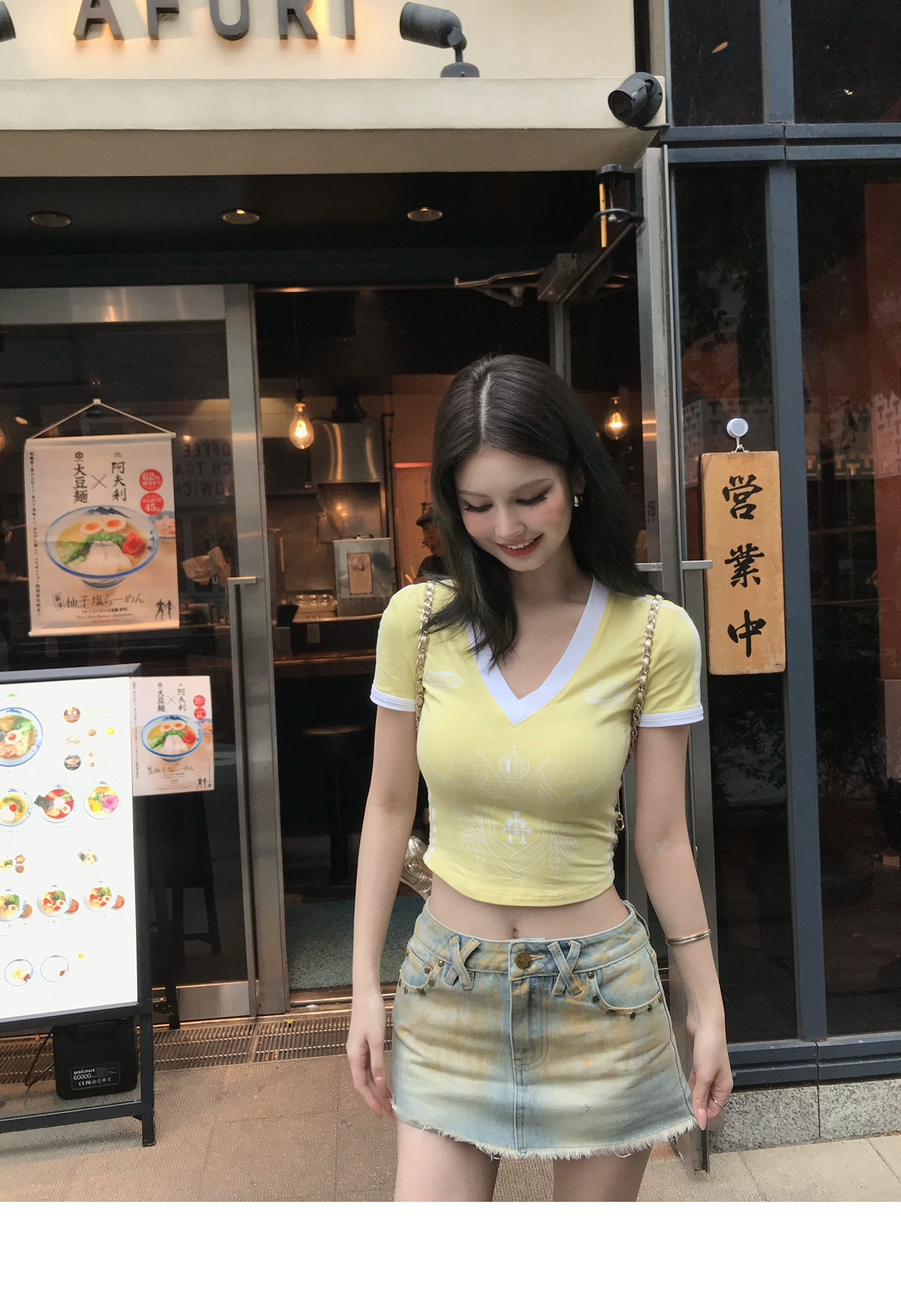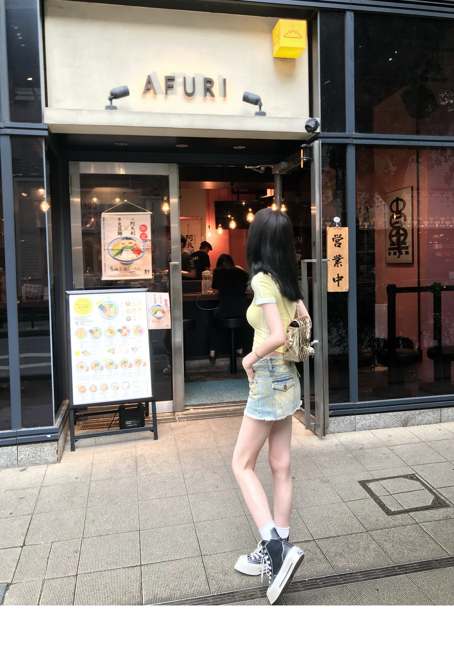 【Yoshino Taolesi】 Sports Hot Girl Short-Sleeve Color Block Top - Summer Style