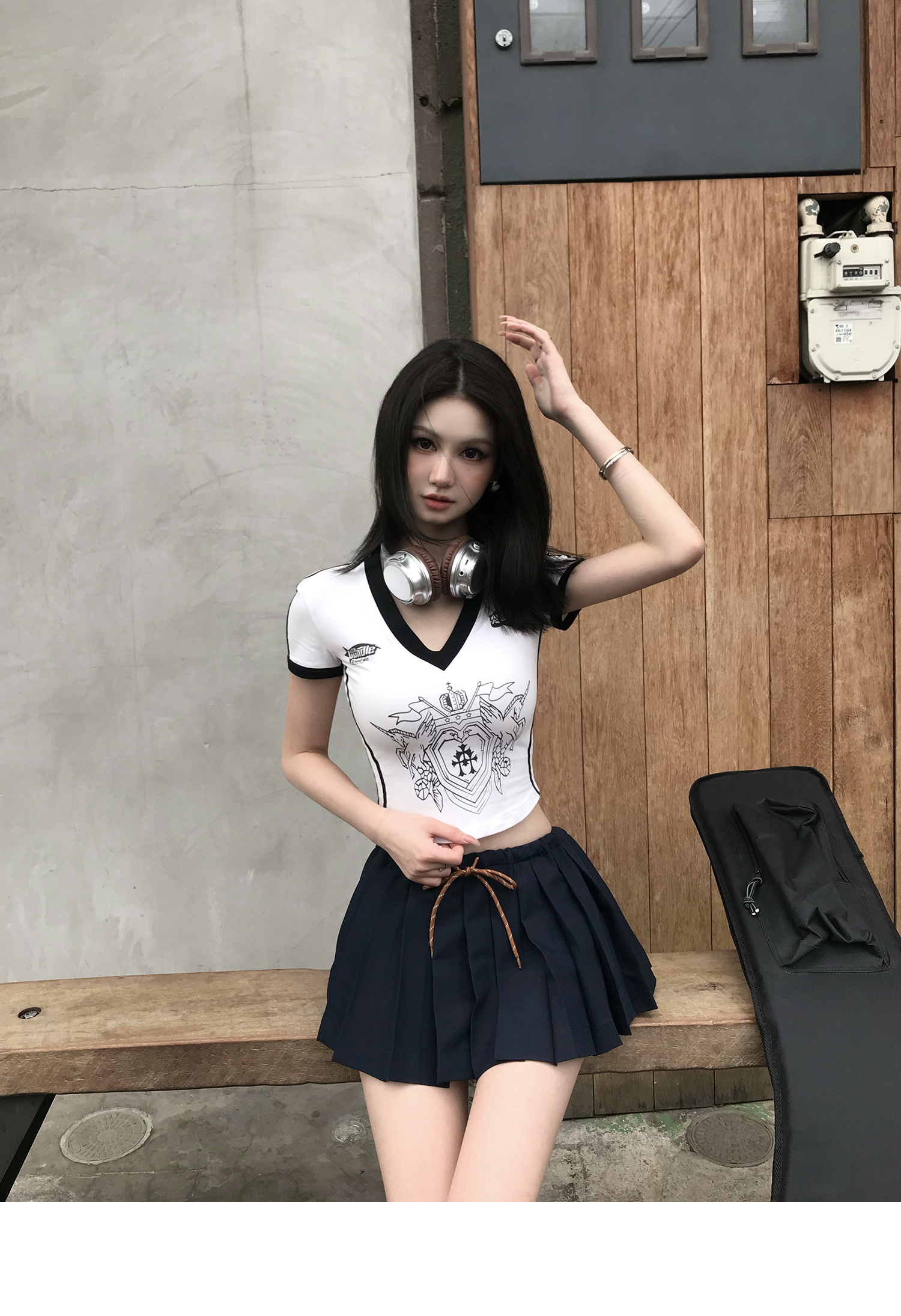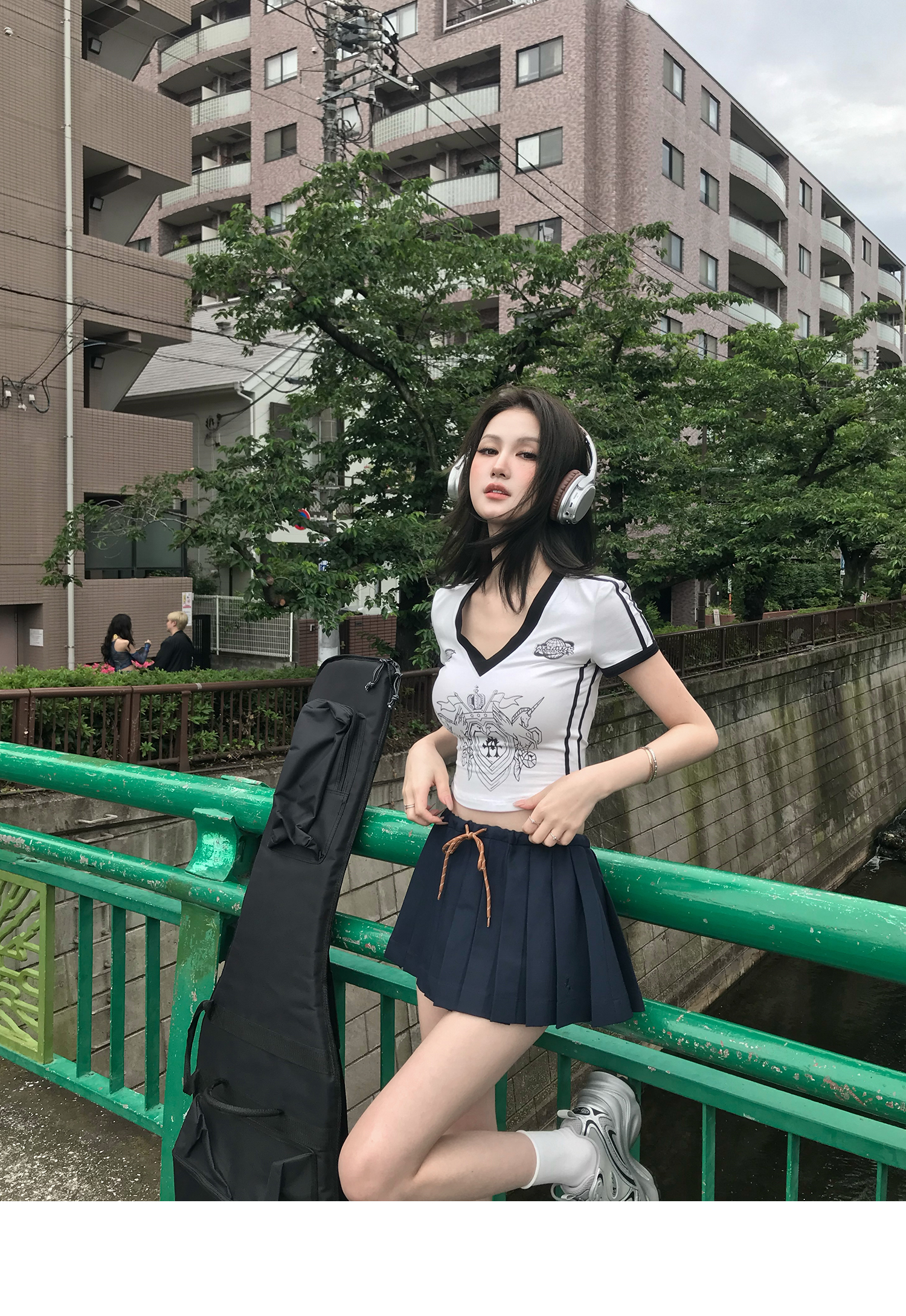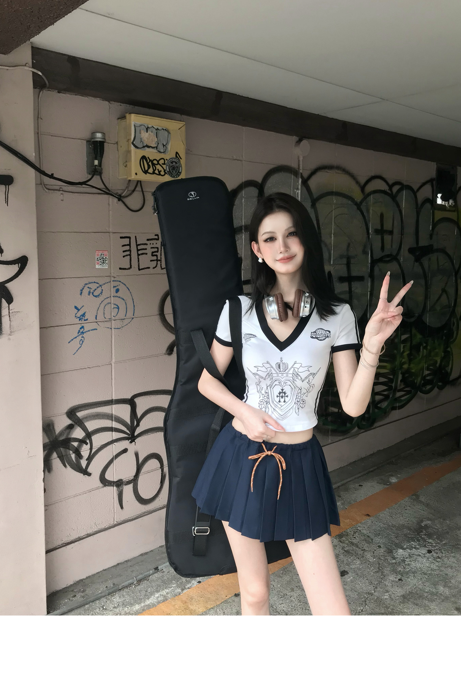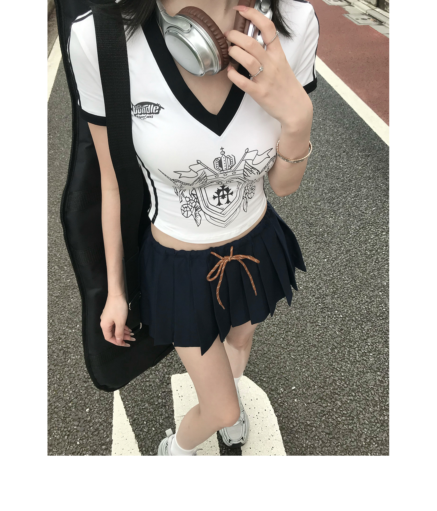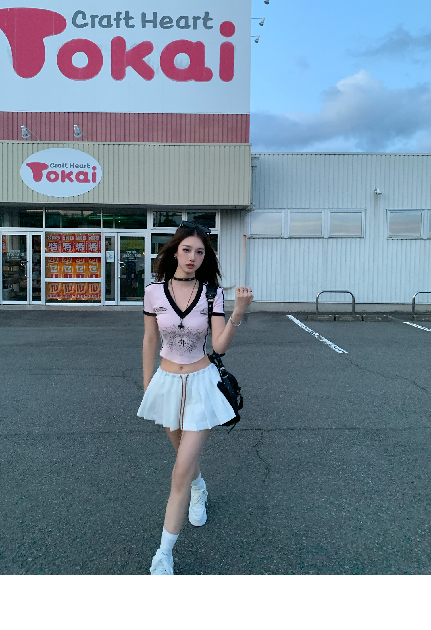 【Yoshino Taolesi】 Sports Hot Girl Short-Sleeve Color Block Top - Summer Style