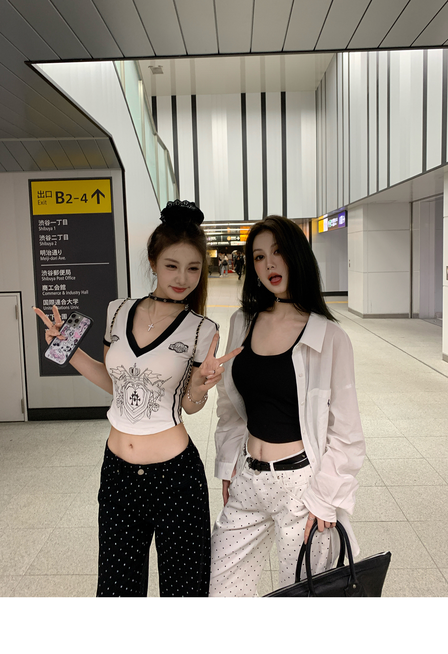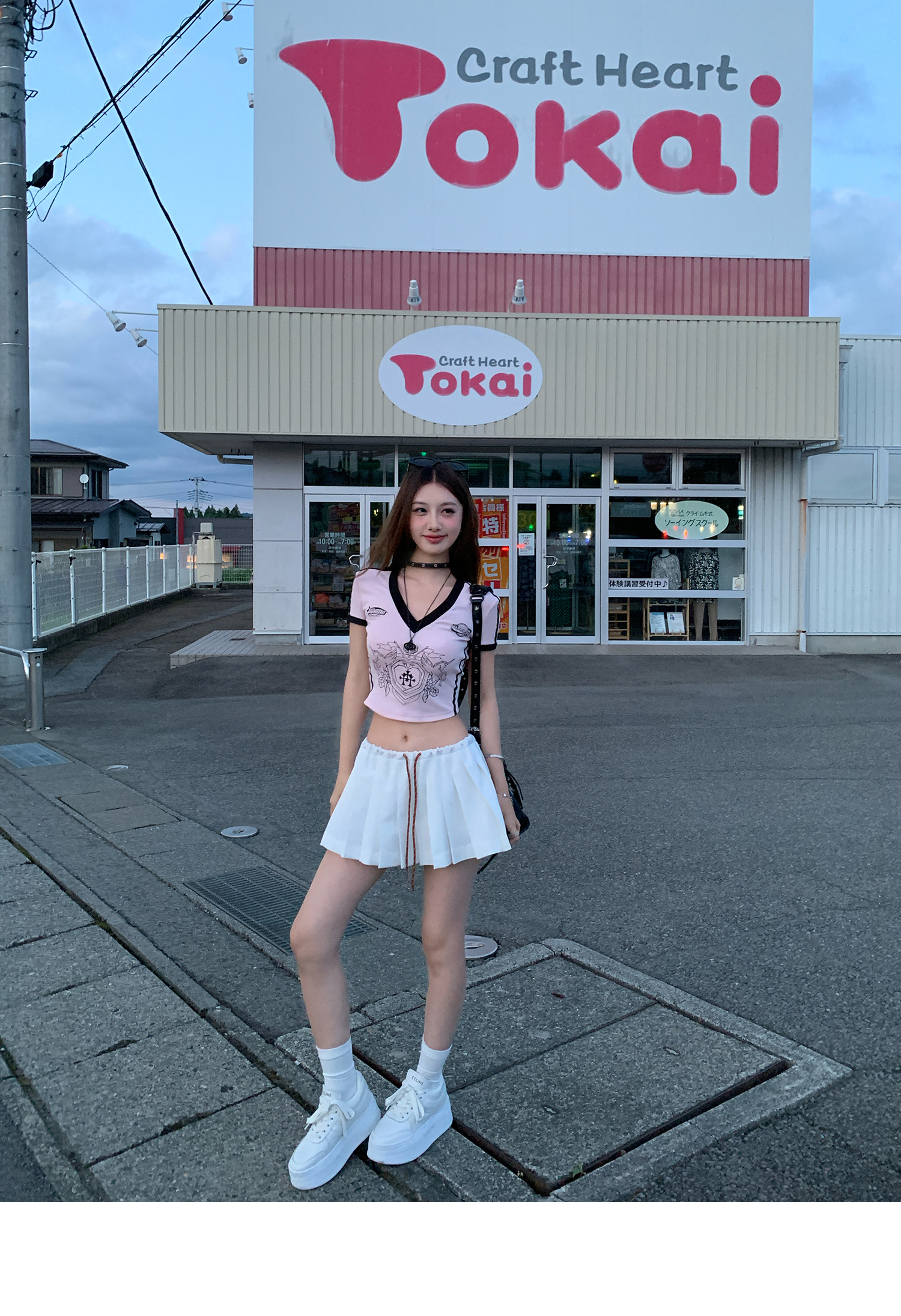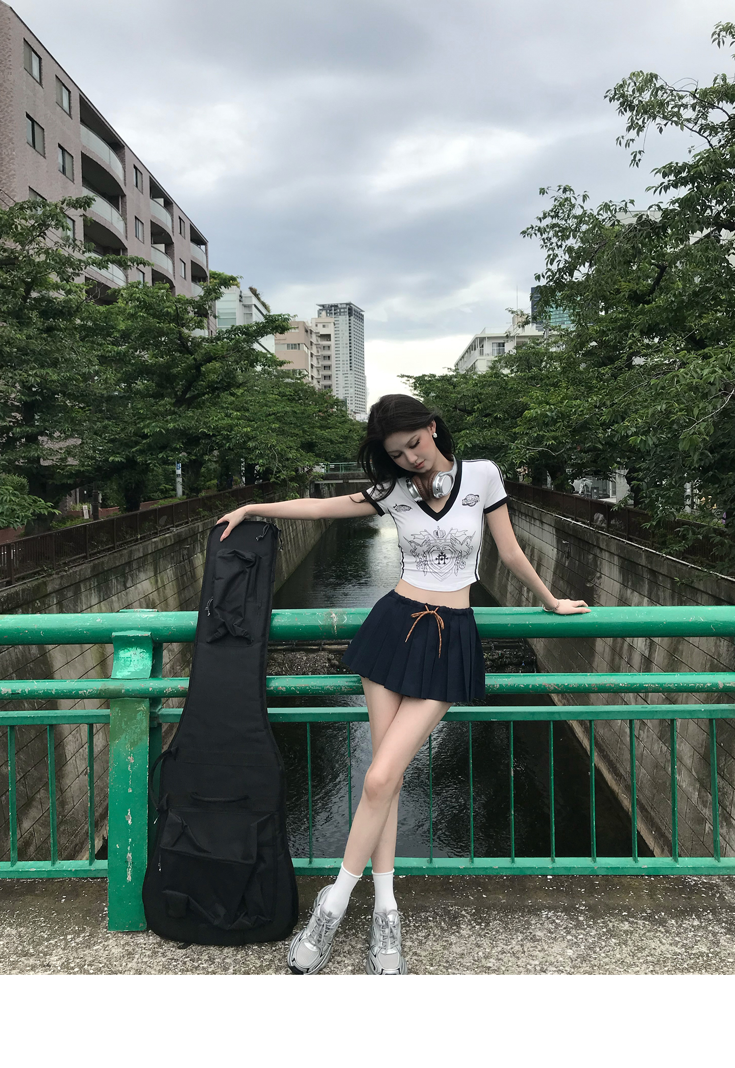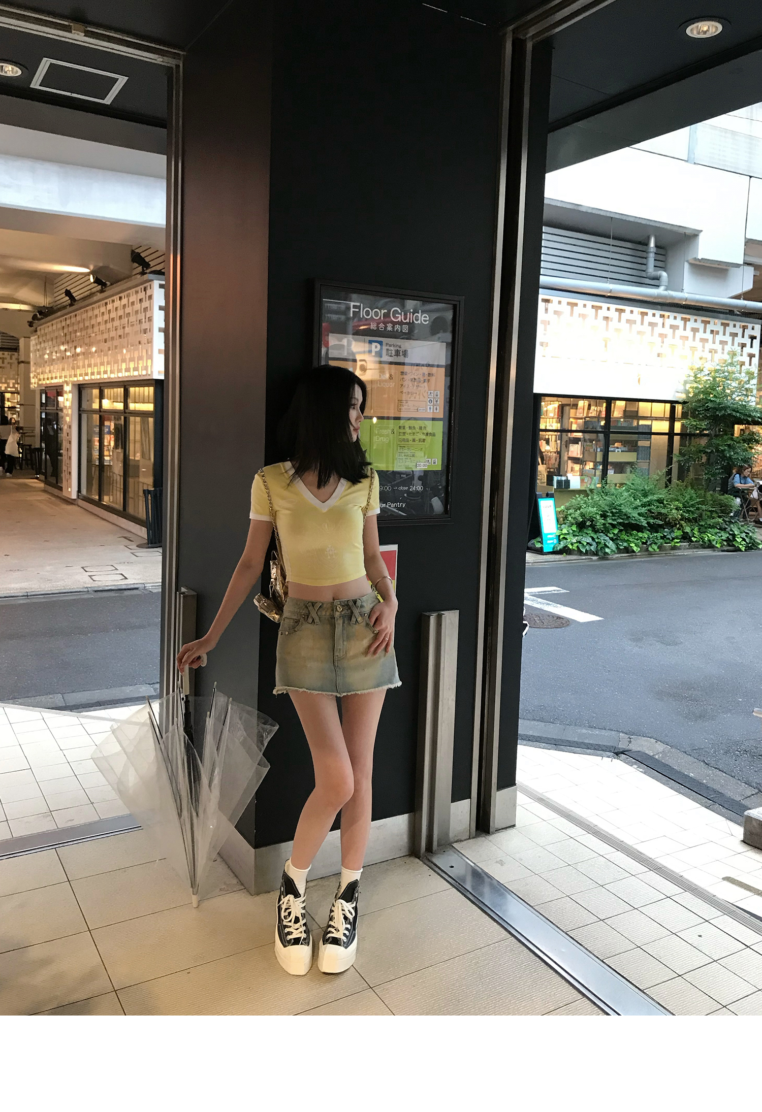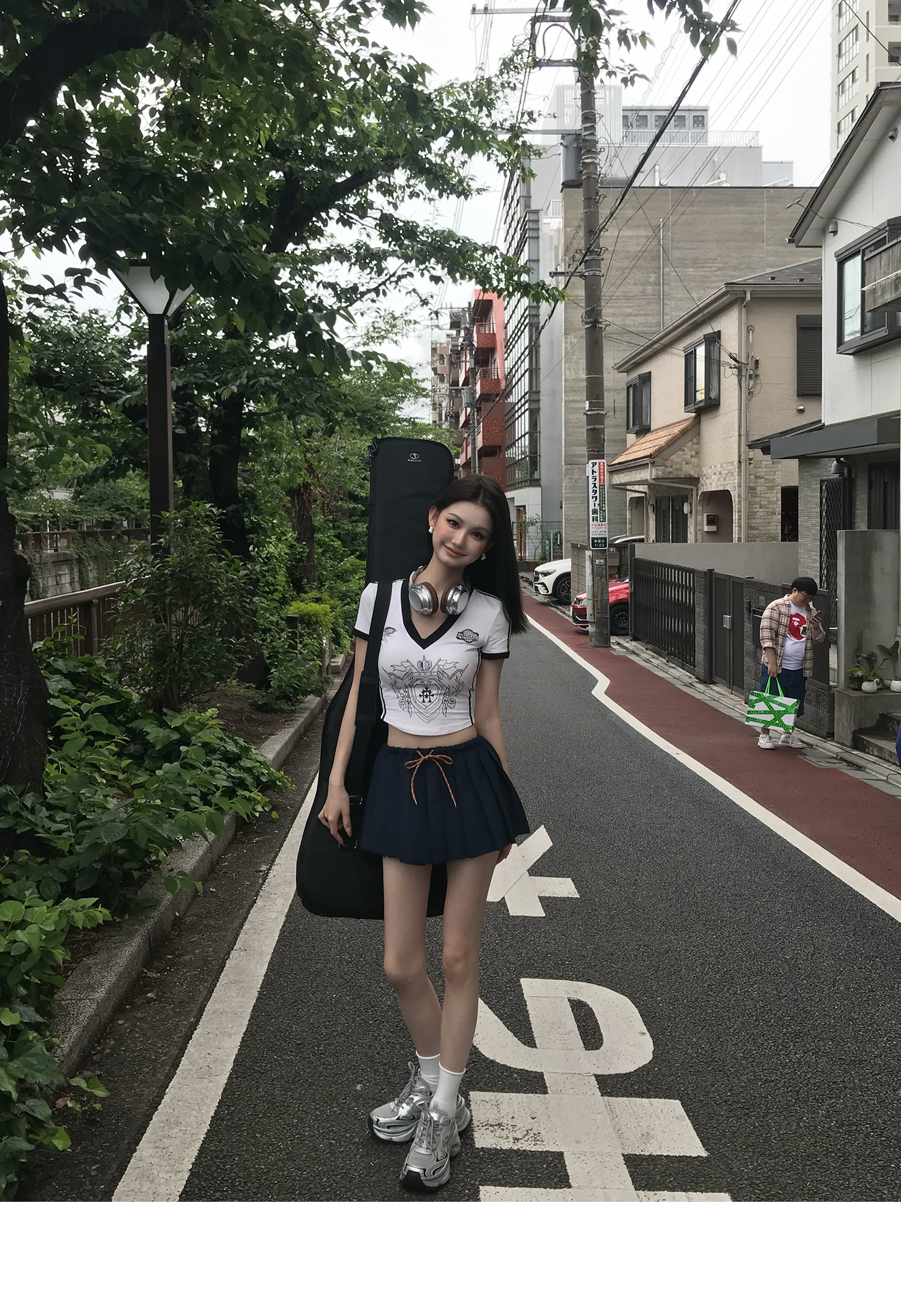 【Yoshino Taolesi】 Sports Hot Girl Short-Sleeve Color Block Top - Summer Style