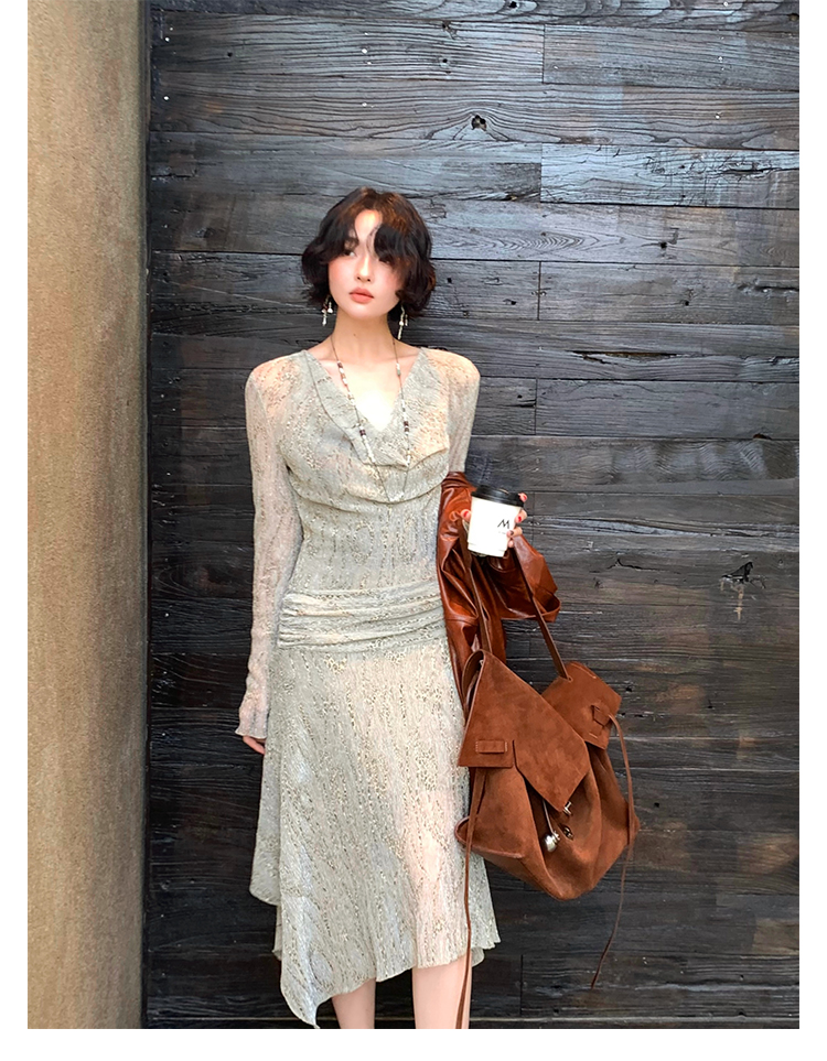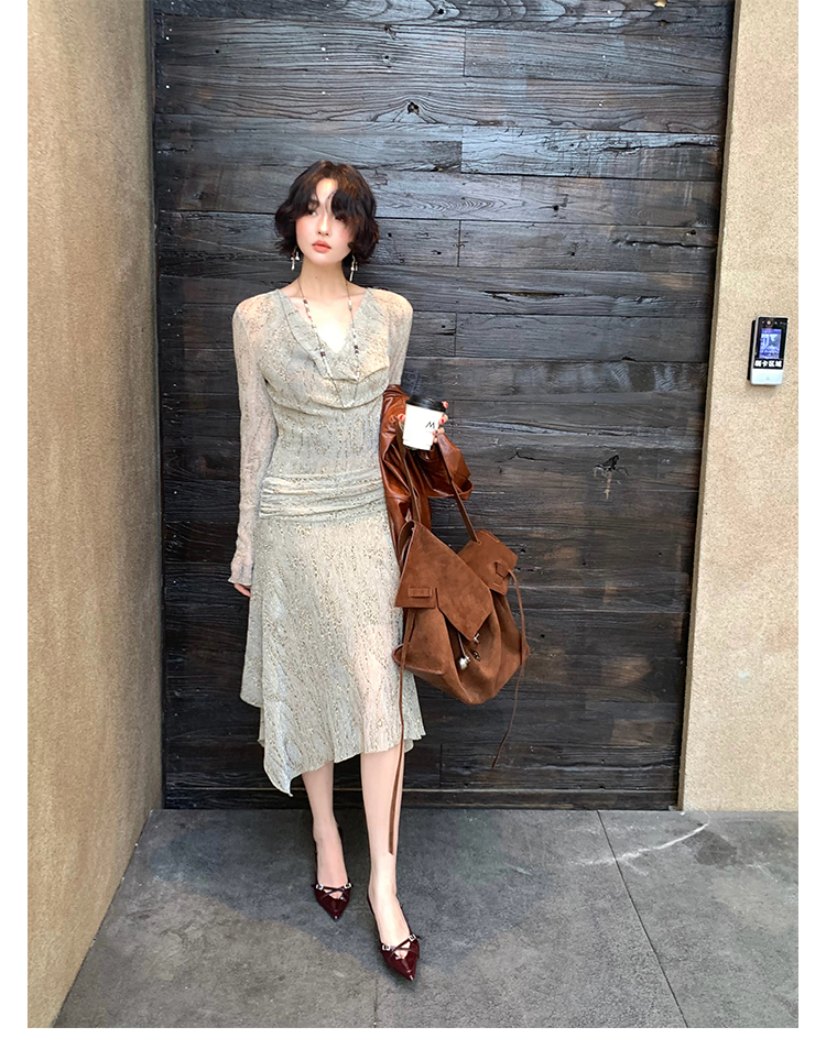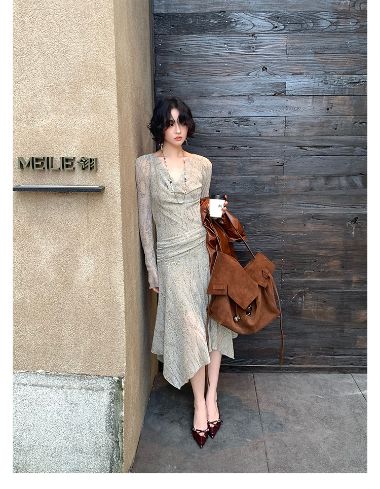 Afternoon Refinement Asymmetrical Hem Mini Dress – Retro Swing Neck Design