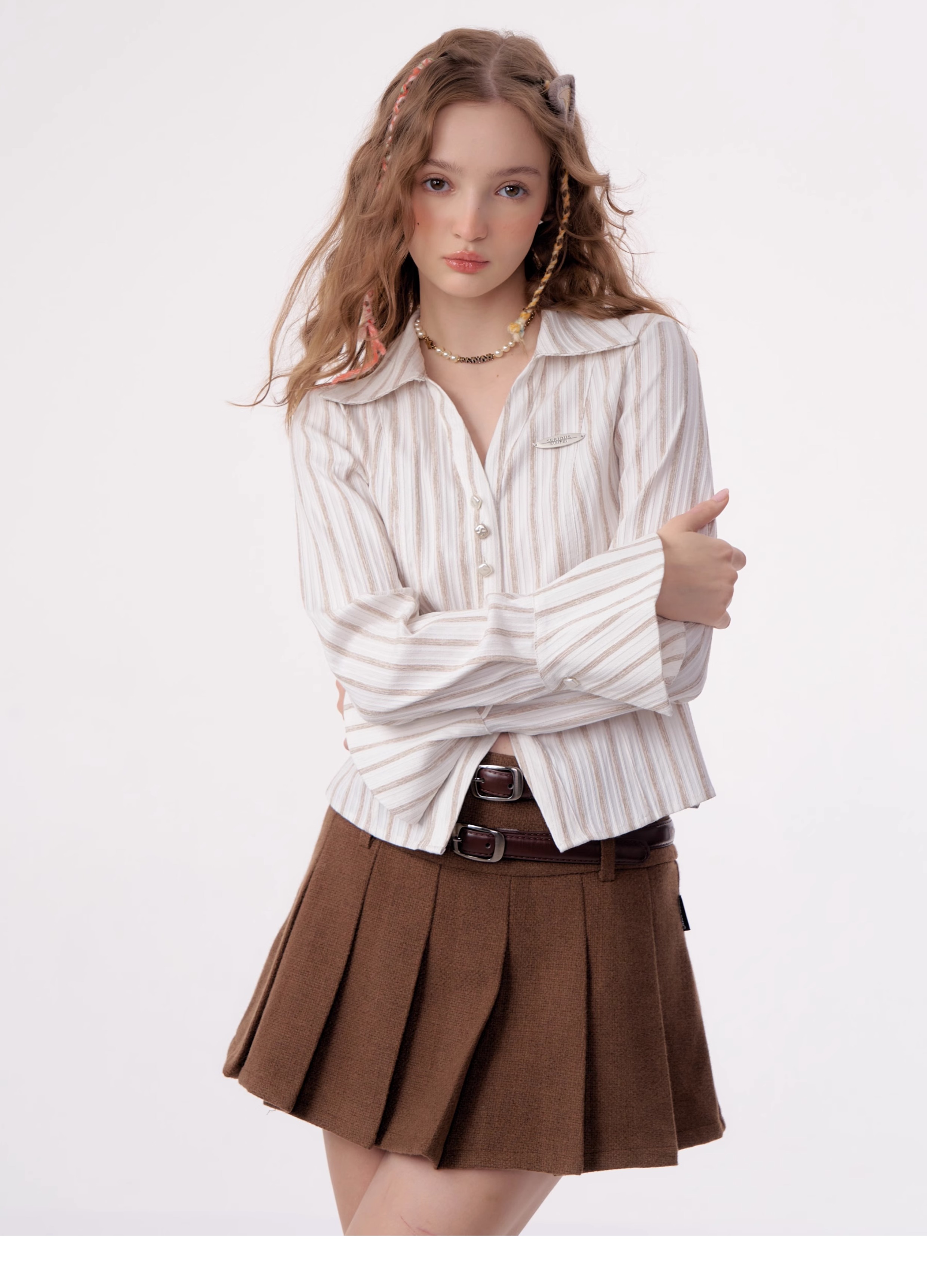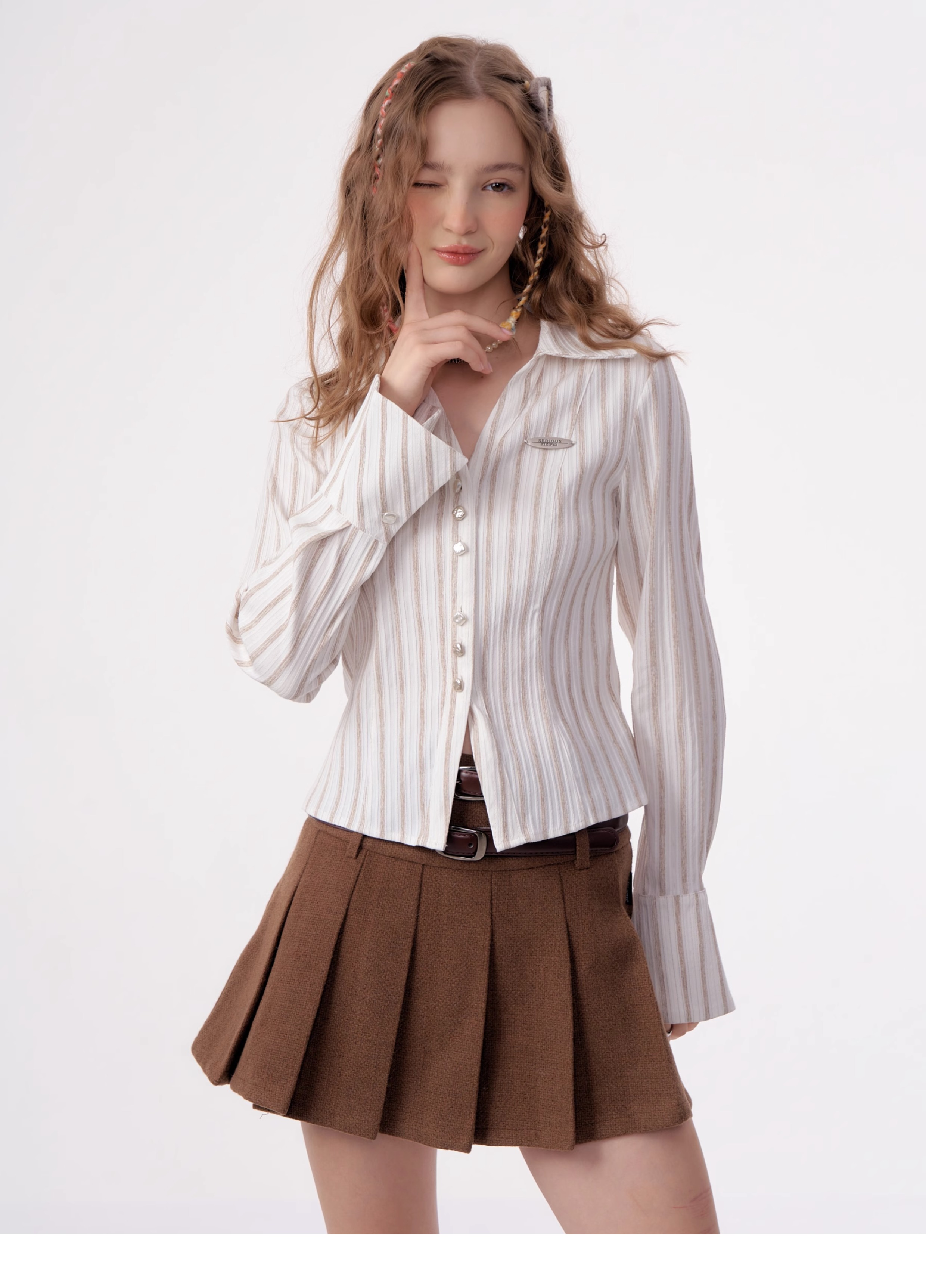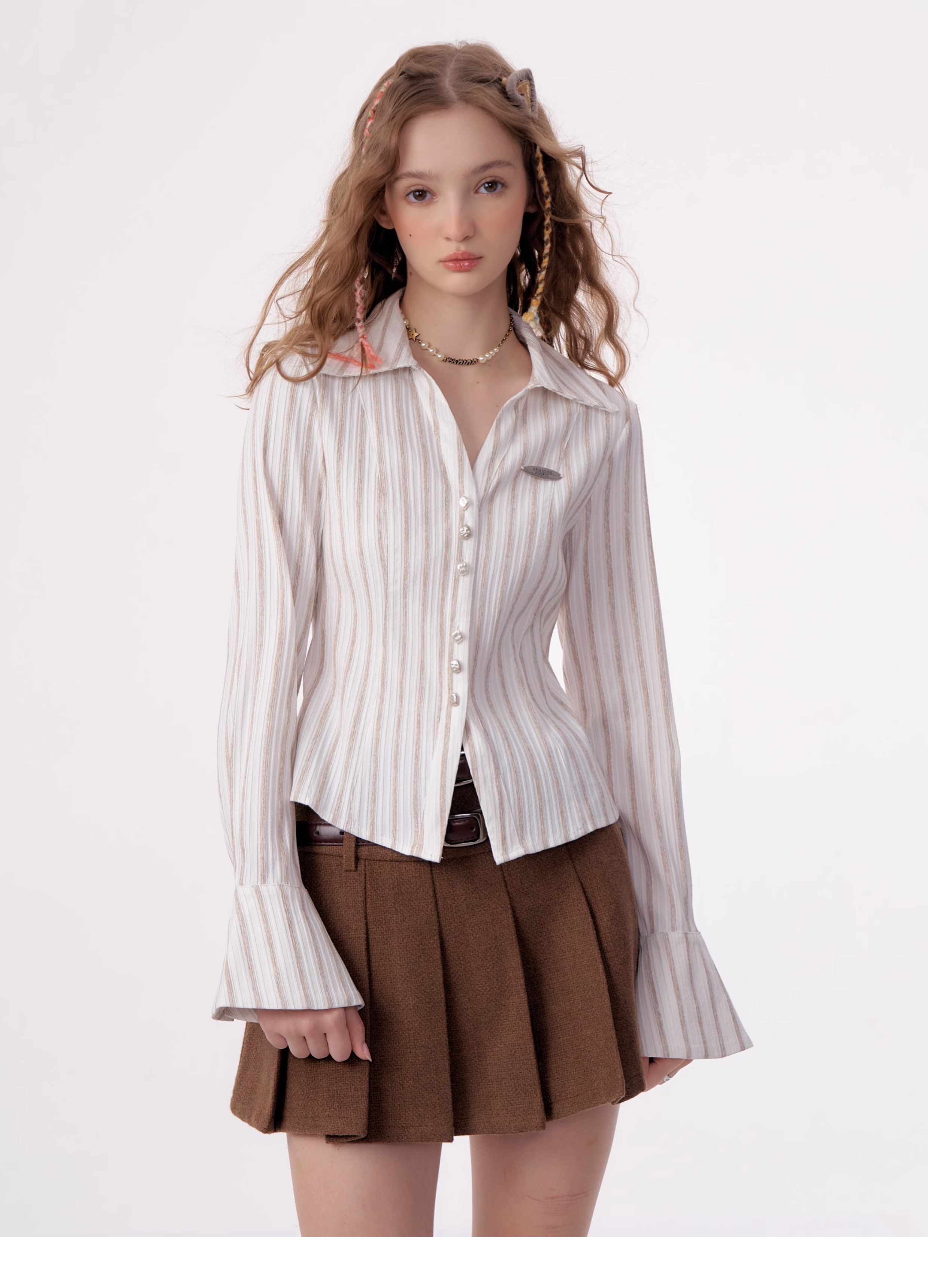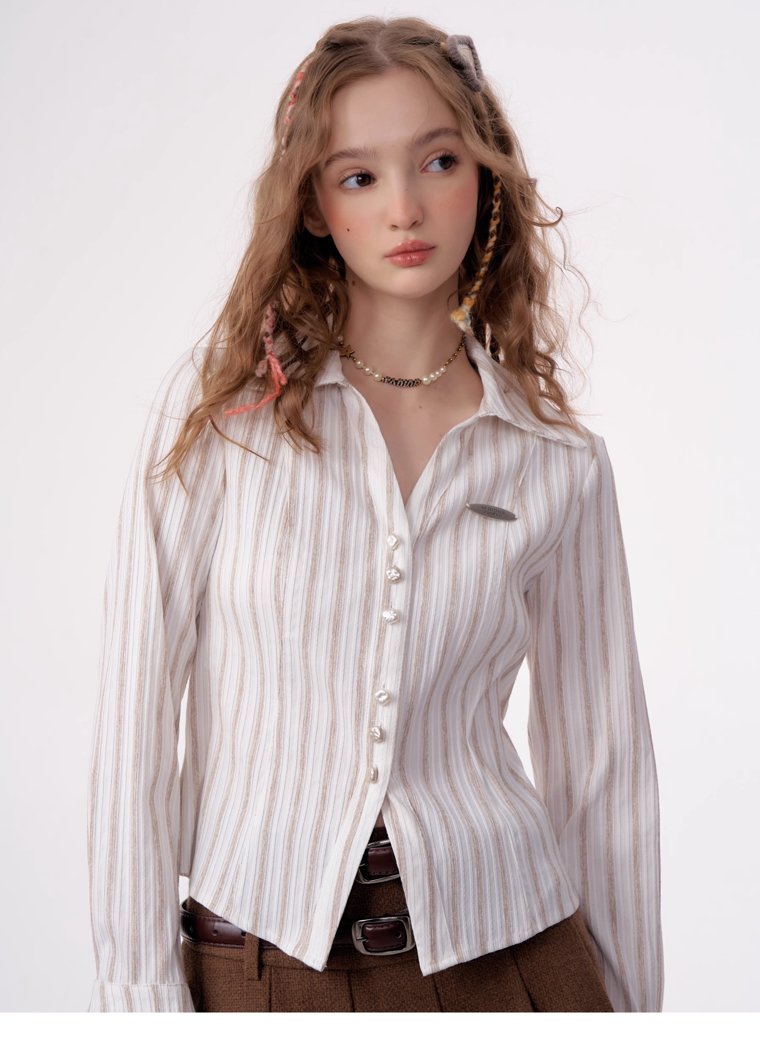 Высококлассная рубашка приталенного кроя в полоску | Повседневный топ с длинными рукавами в американском ретро на осень/зиму