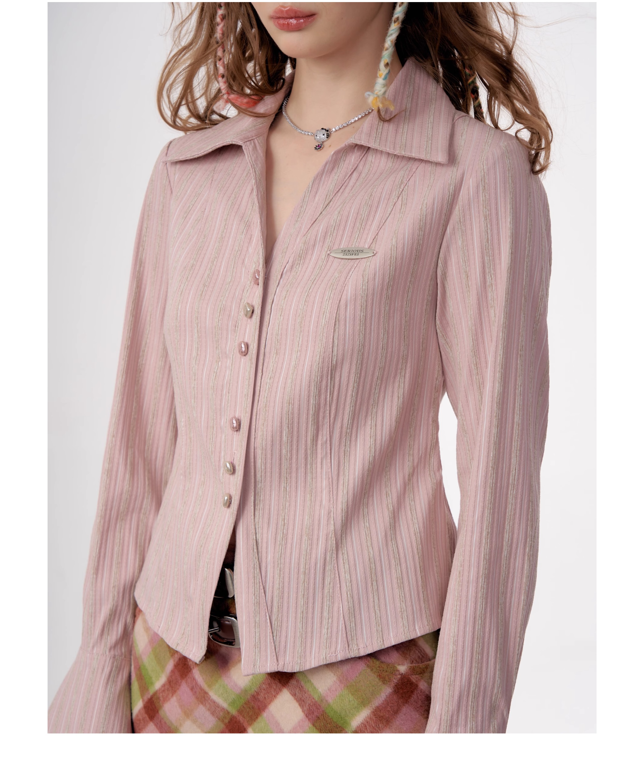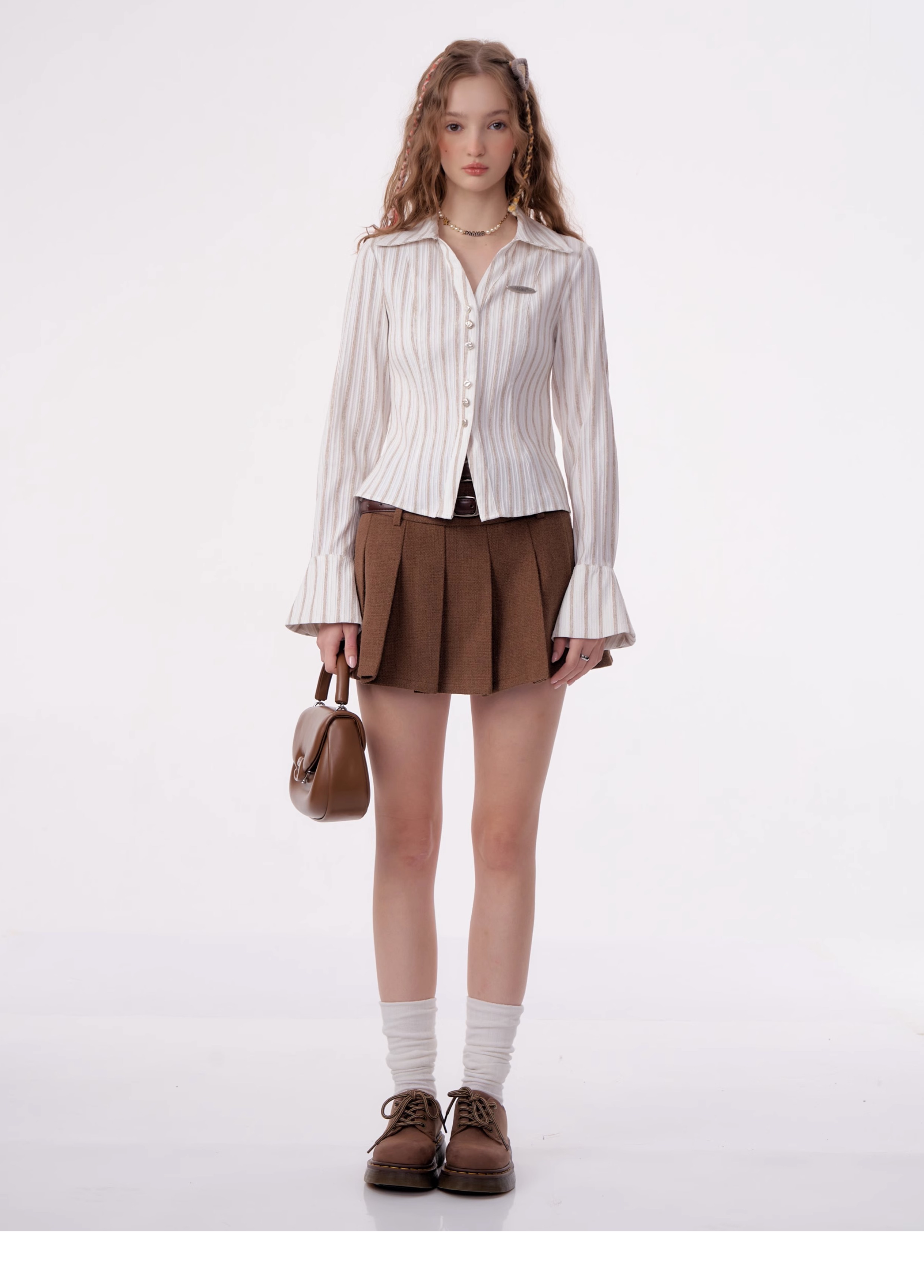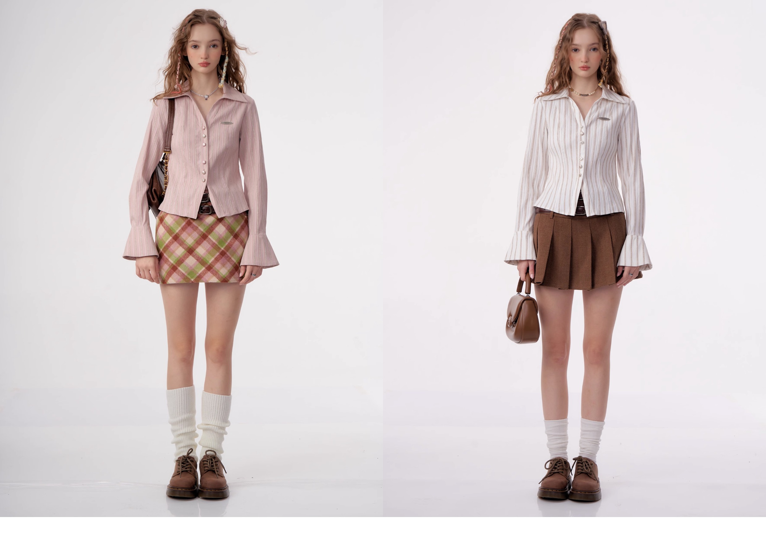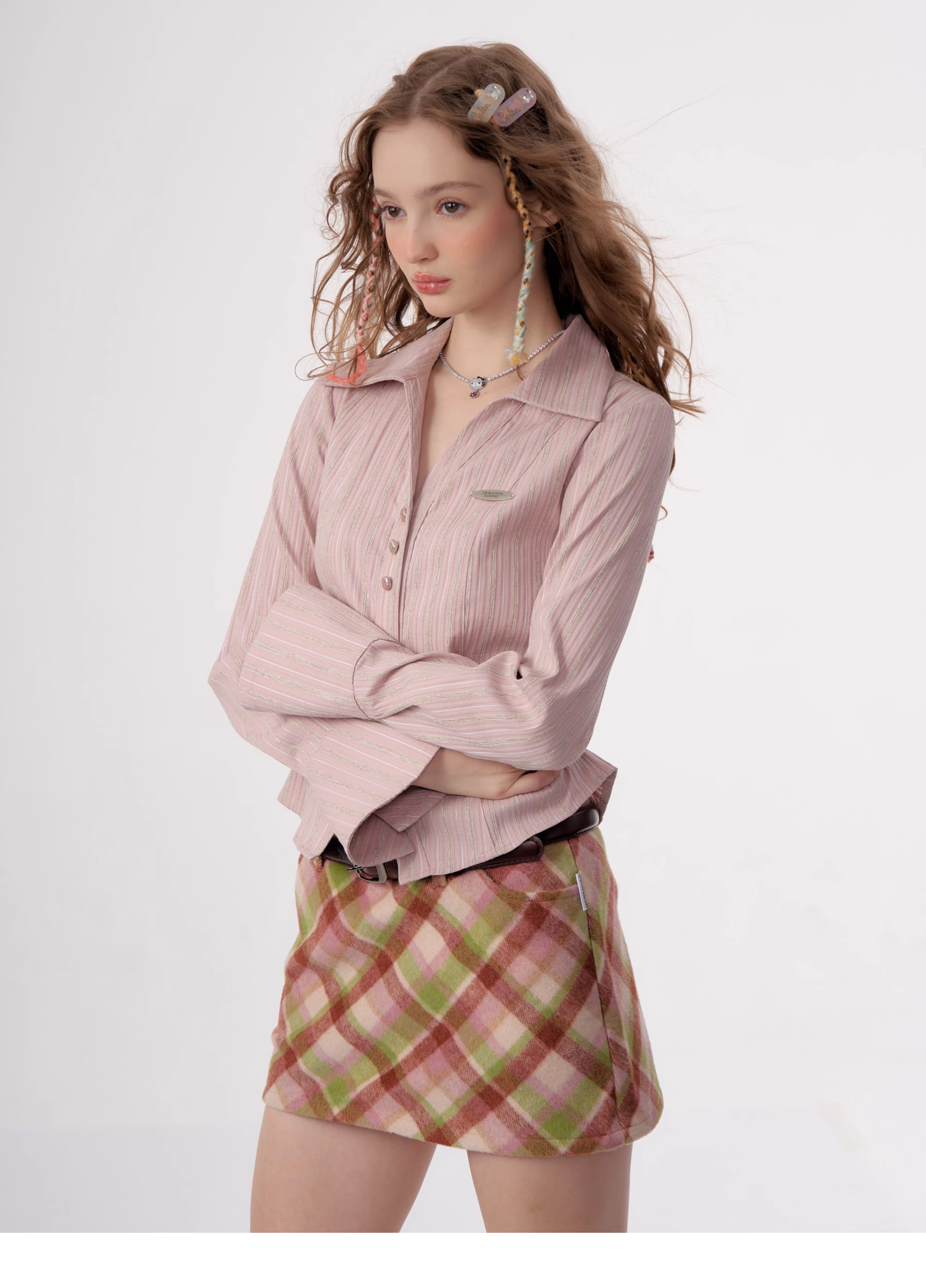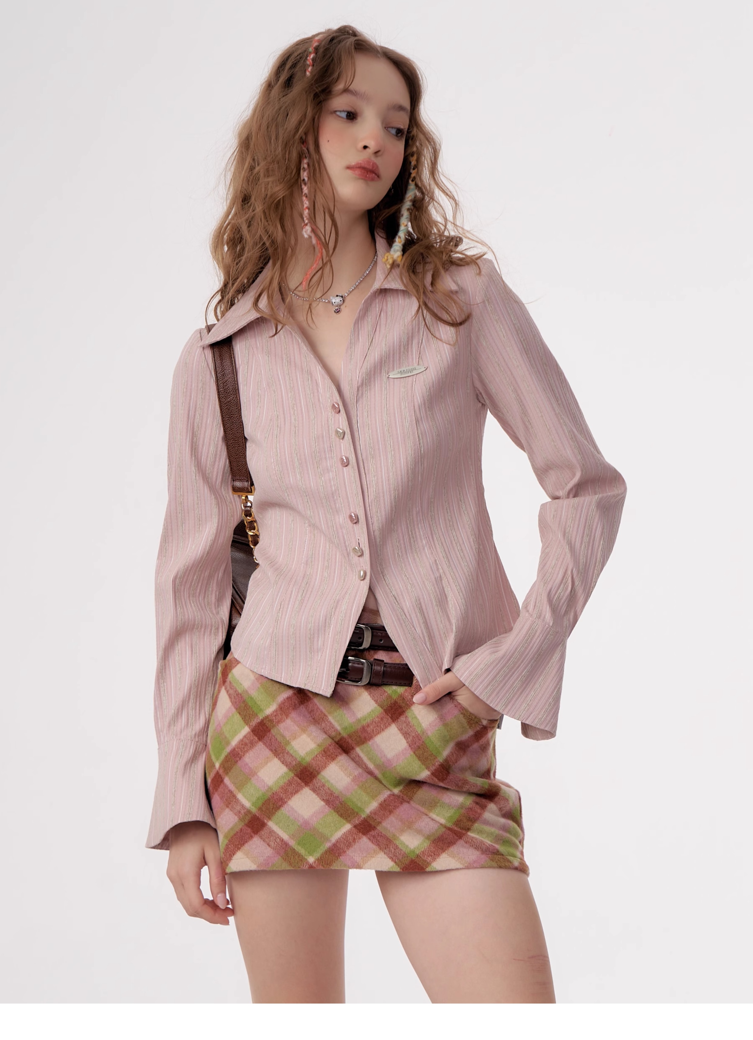 Высококлассная рубашка приталенного кроя в полоску | Повседневный топ с длинными рукавами в американском ретро на осень/зиму
