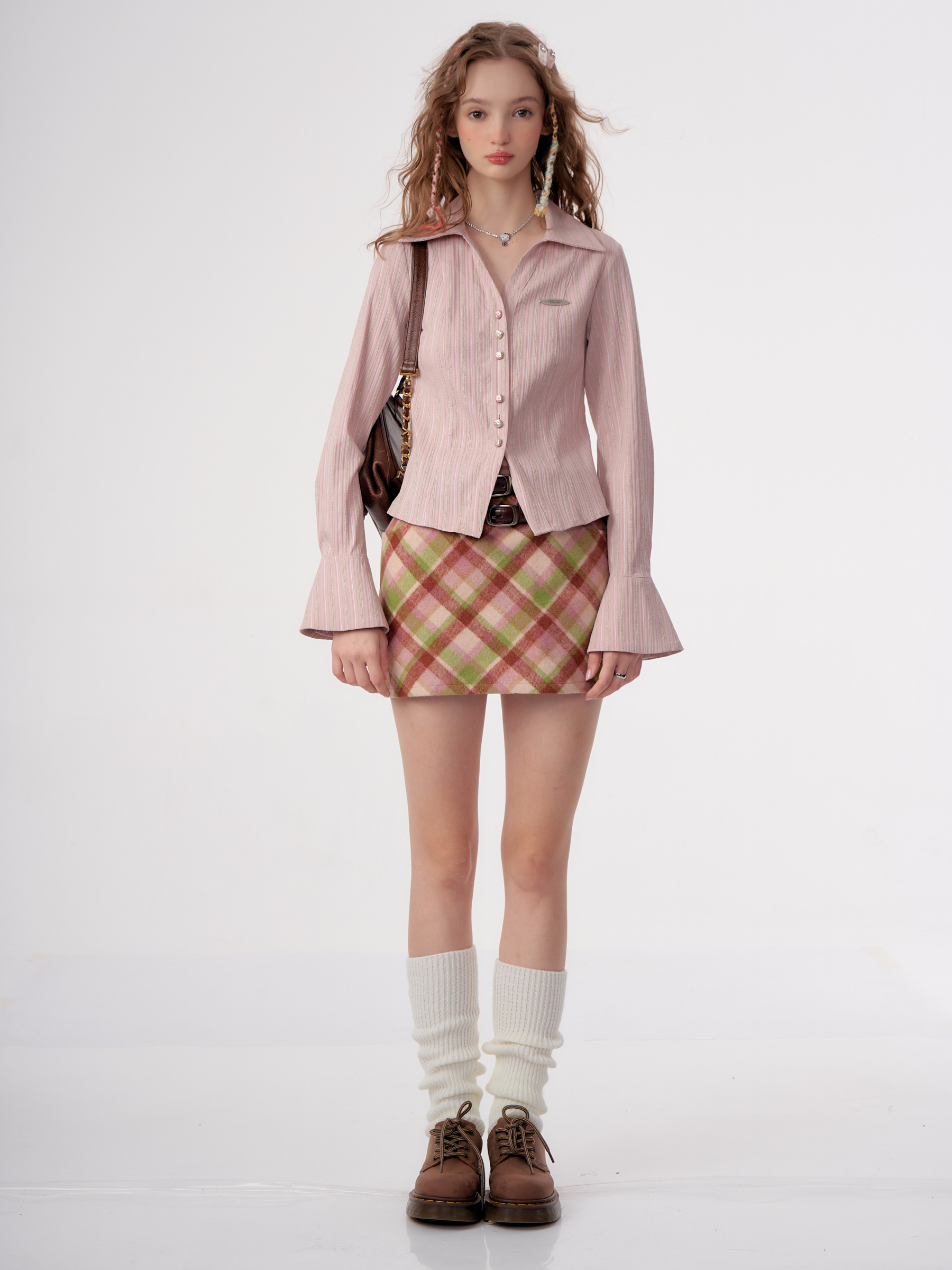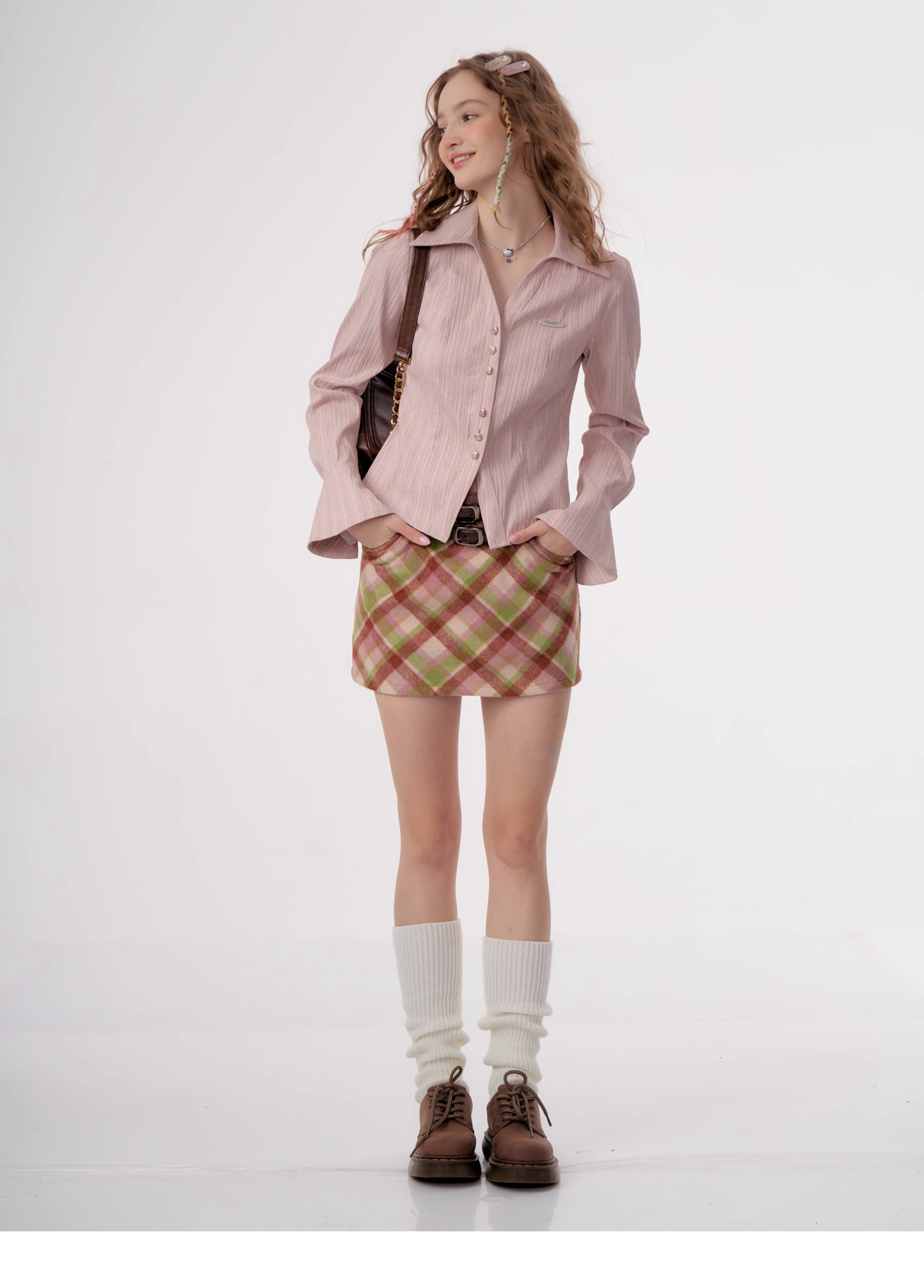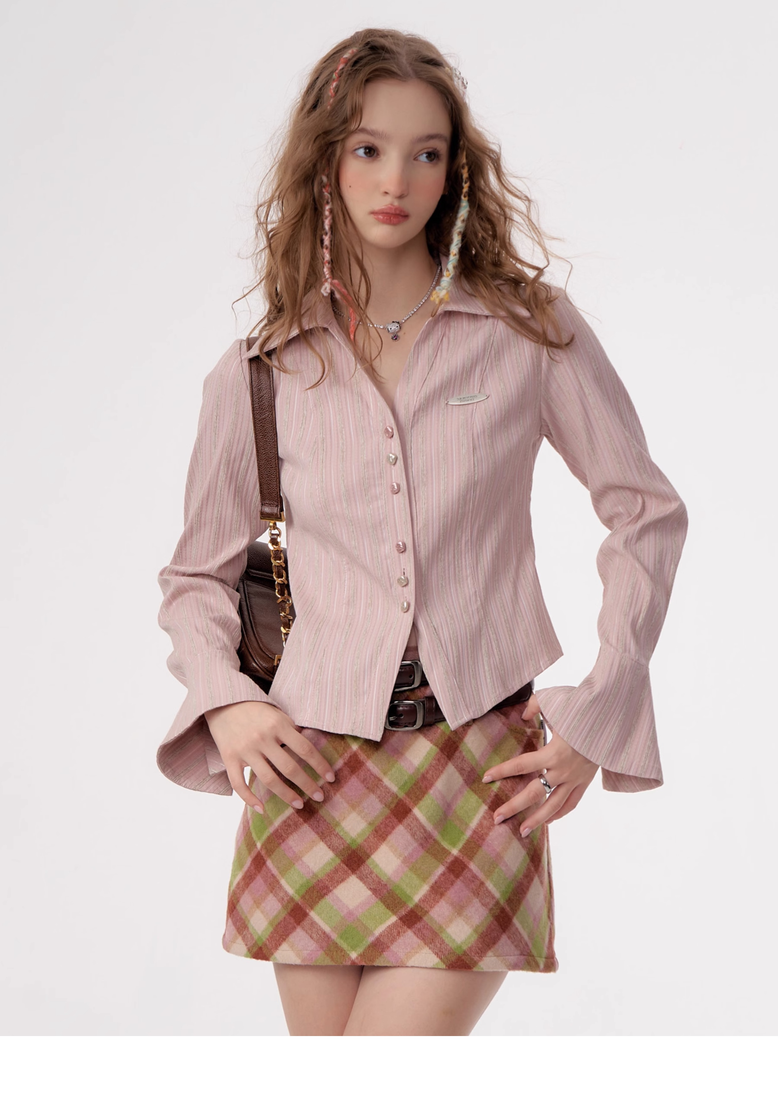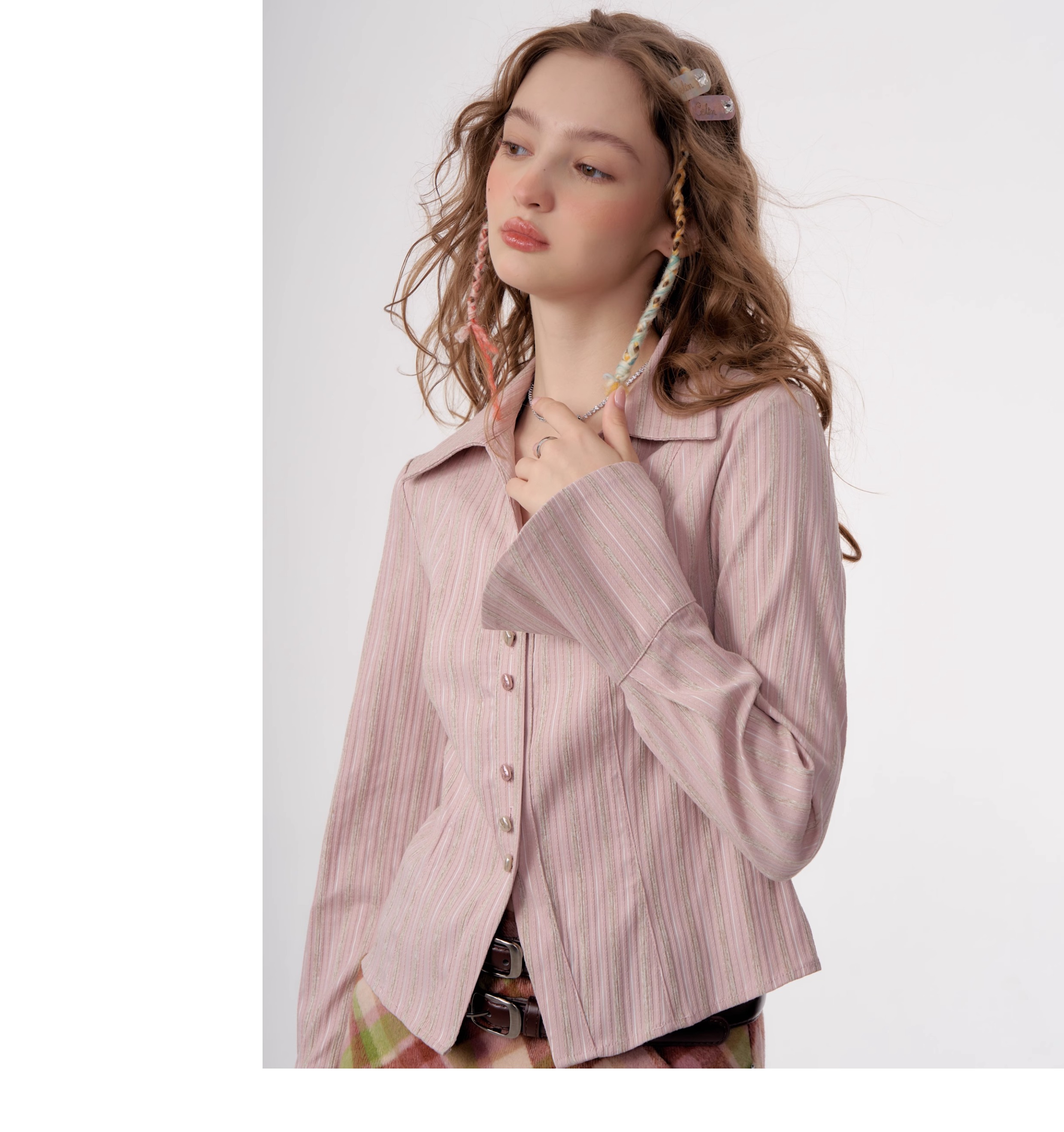 Высококлассная рубашка приталенного кроя в полоску | Повседневный топ с длинными рукавами в американском ретро на осень/зиму