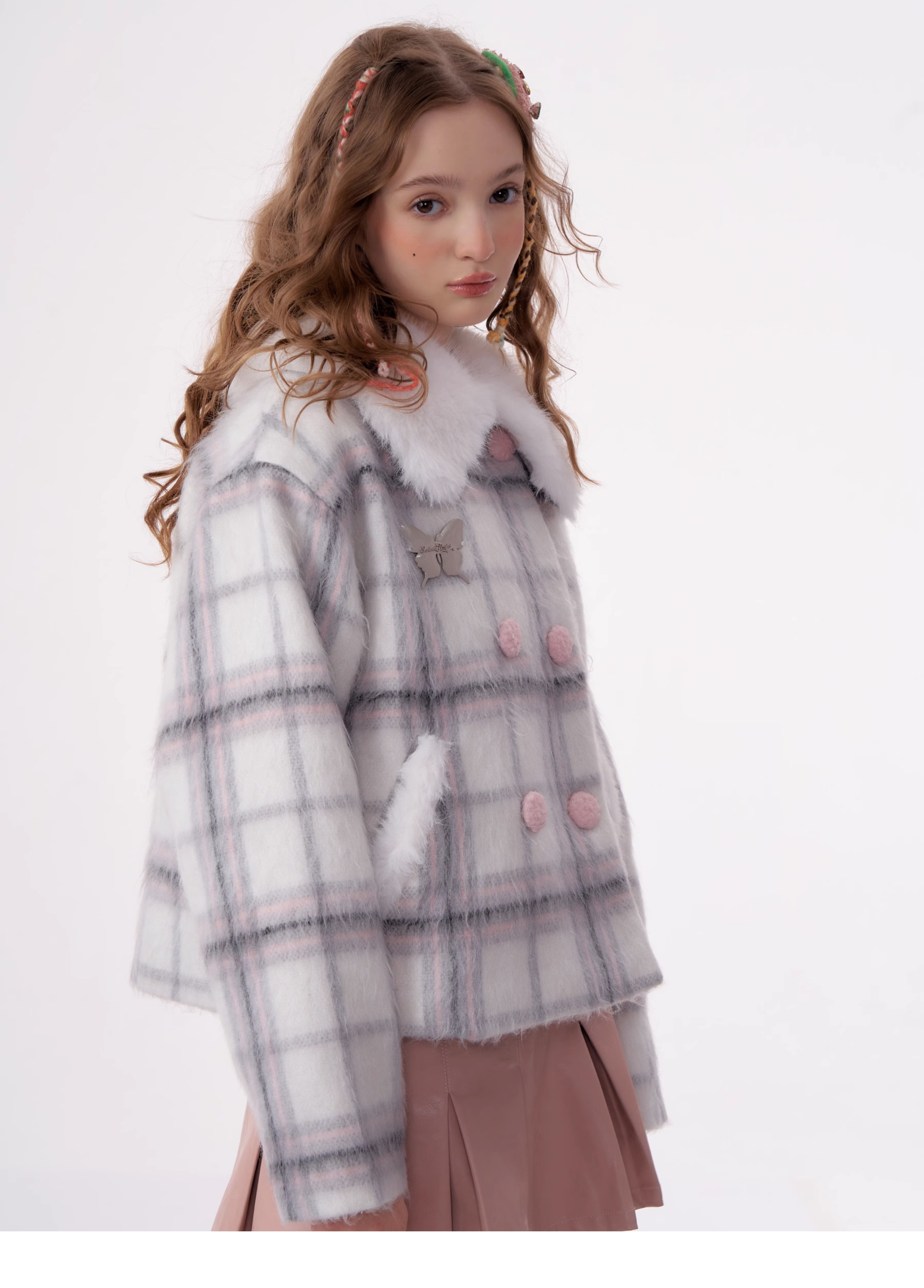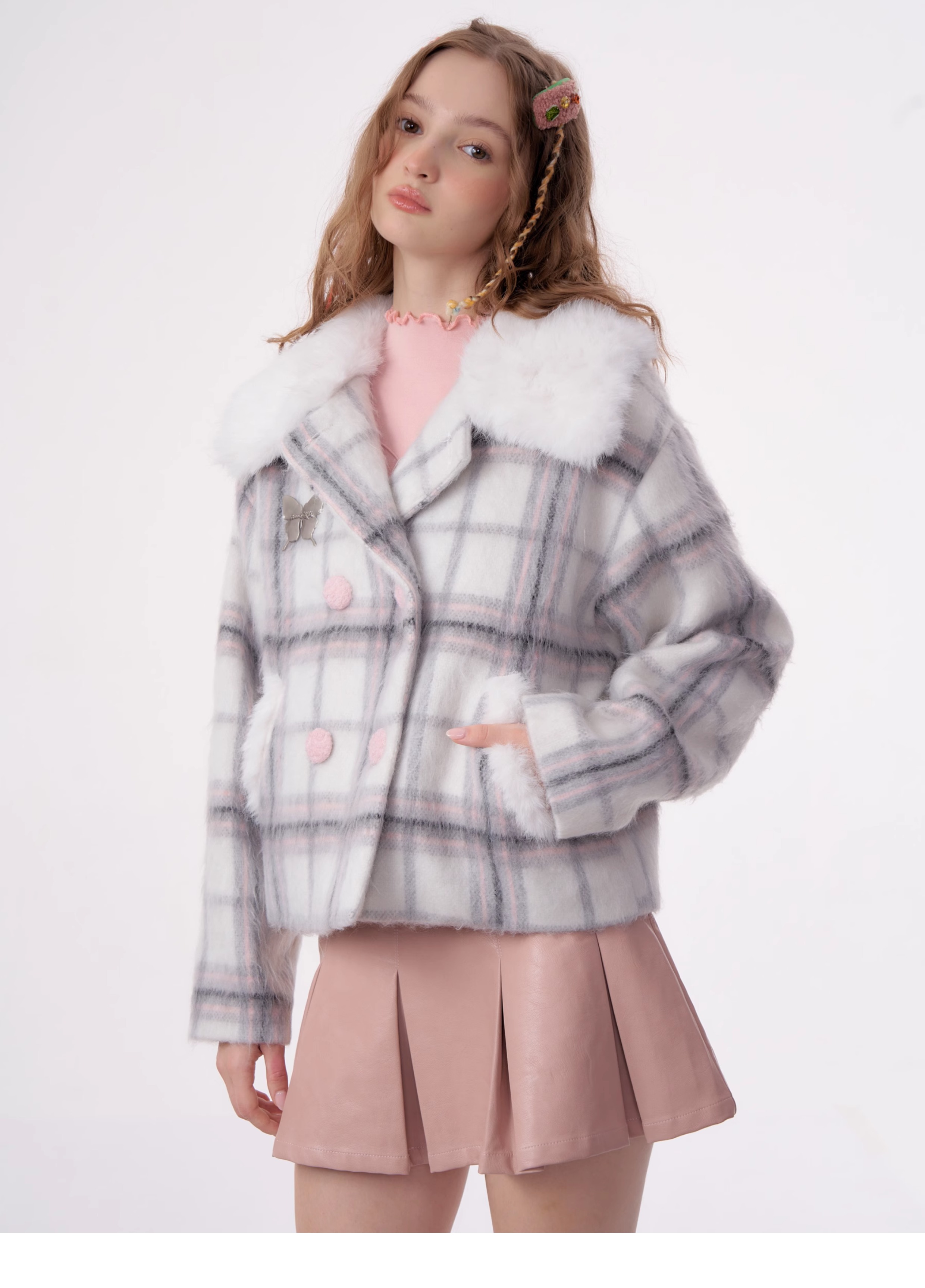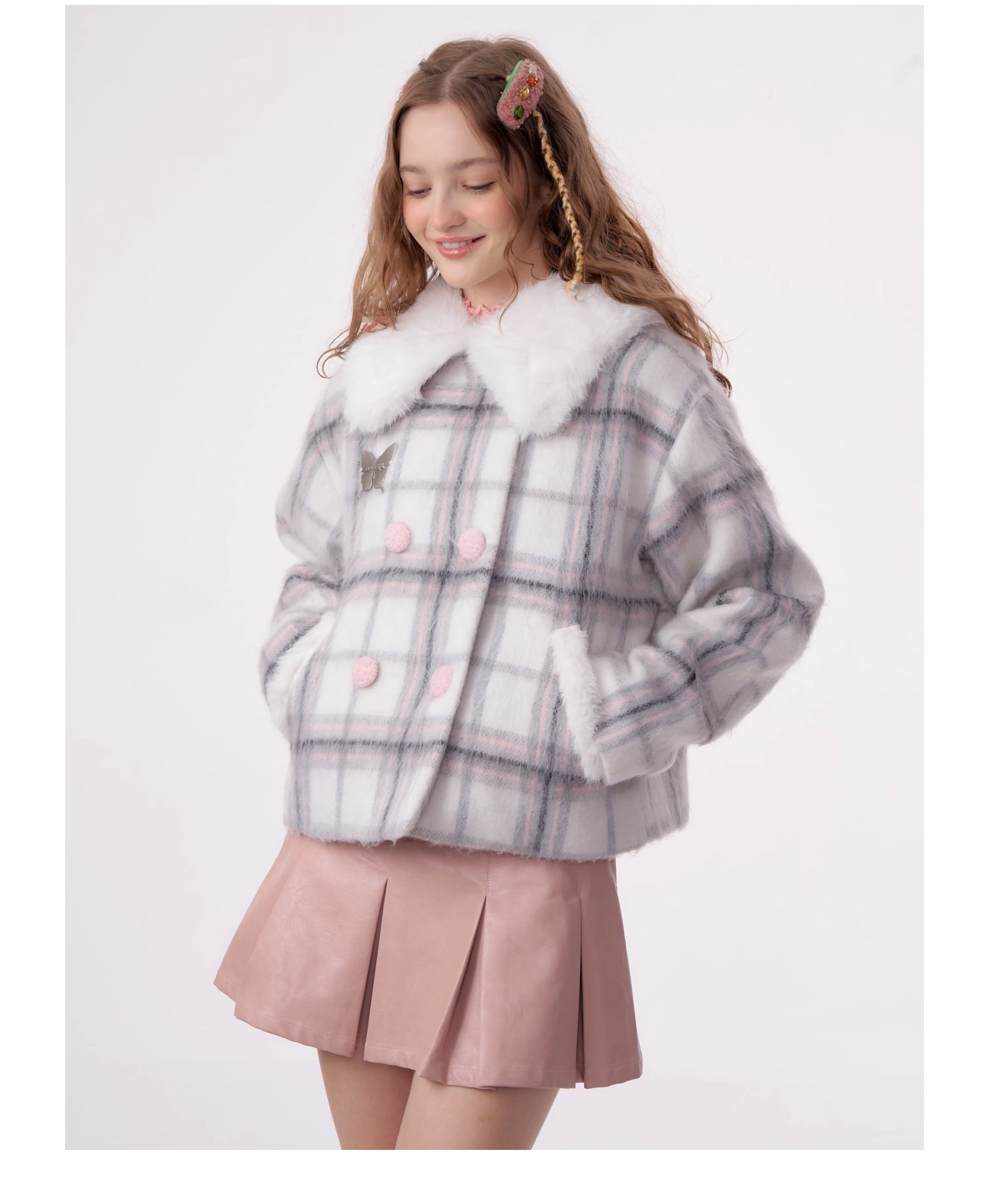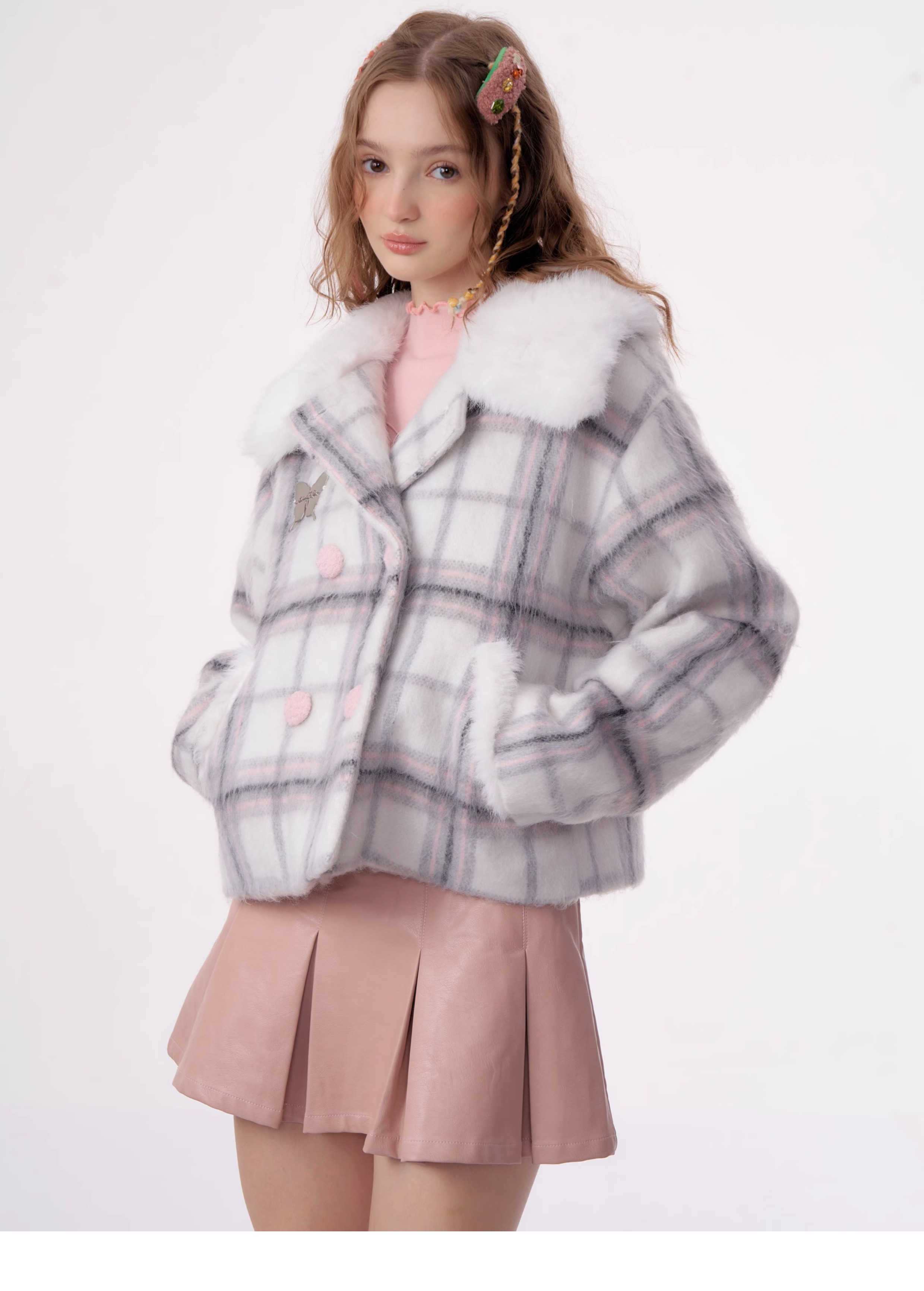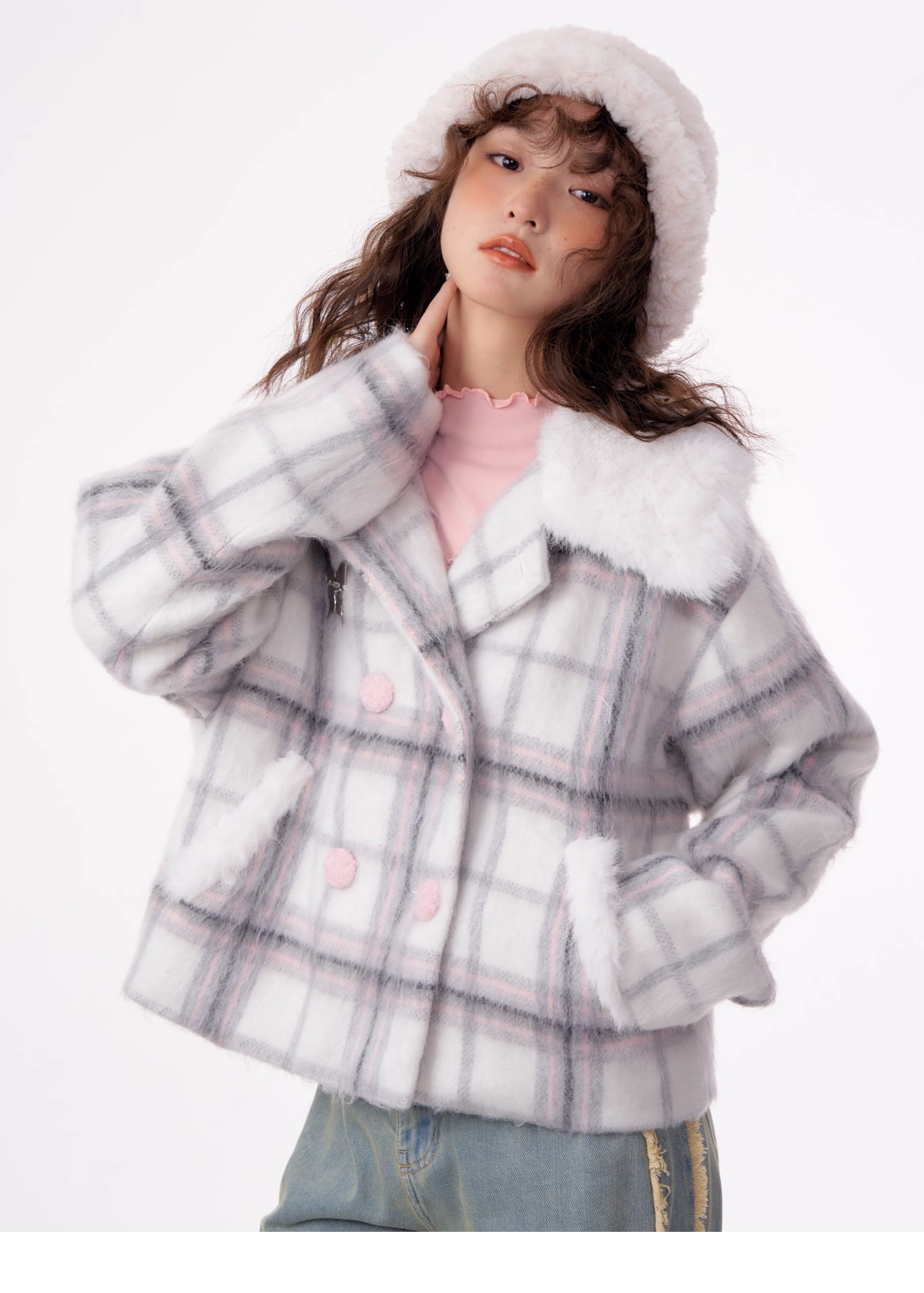 Шерстяная куртка с клетчатым кожаным воротником | Толстый бархатный дизайн в стиле ретро для осени/зимы