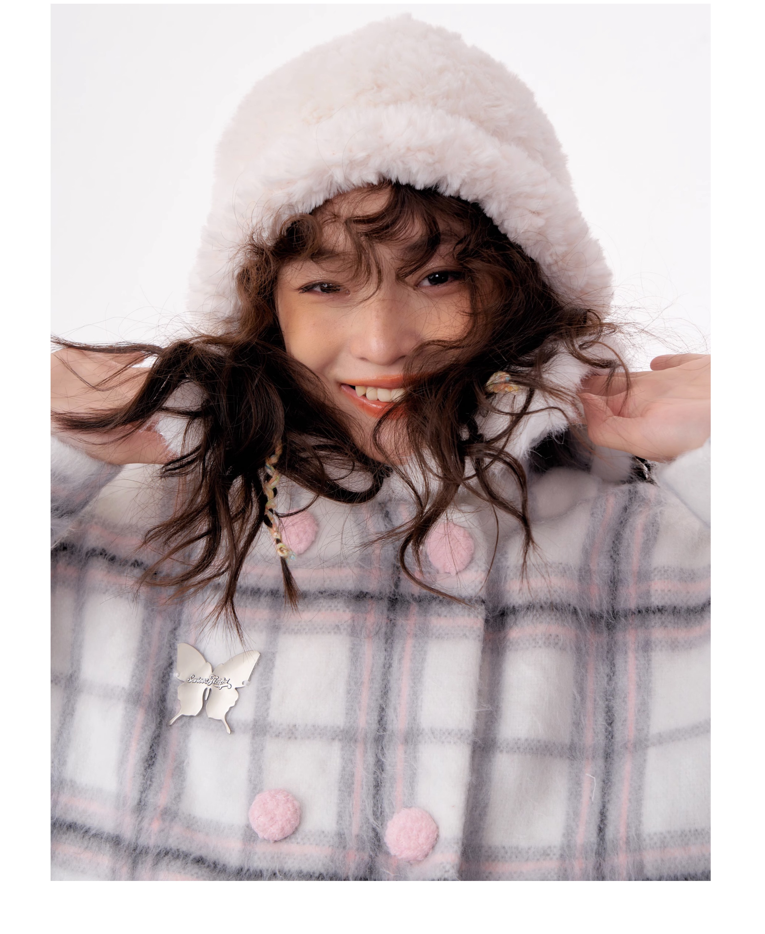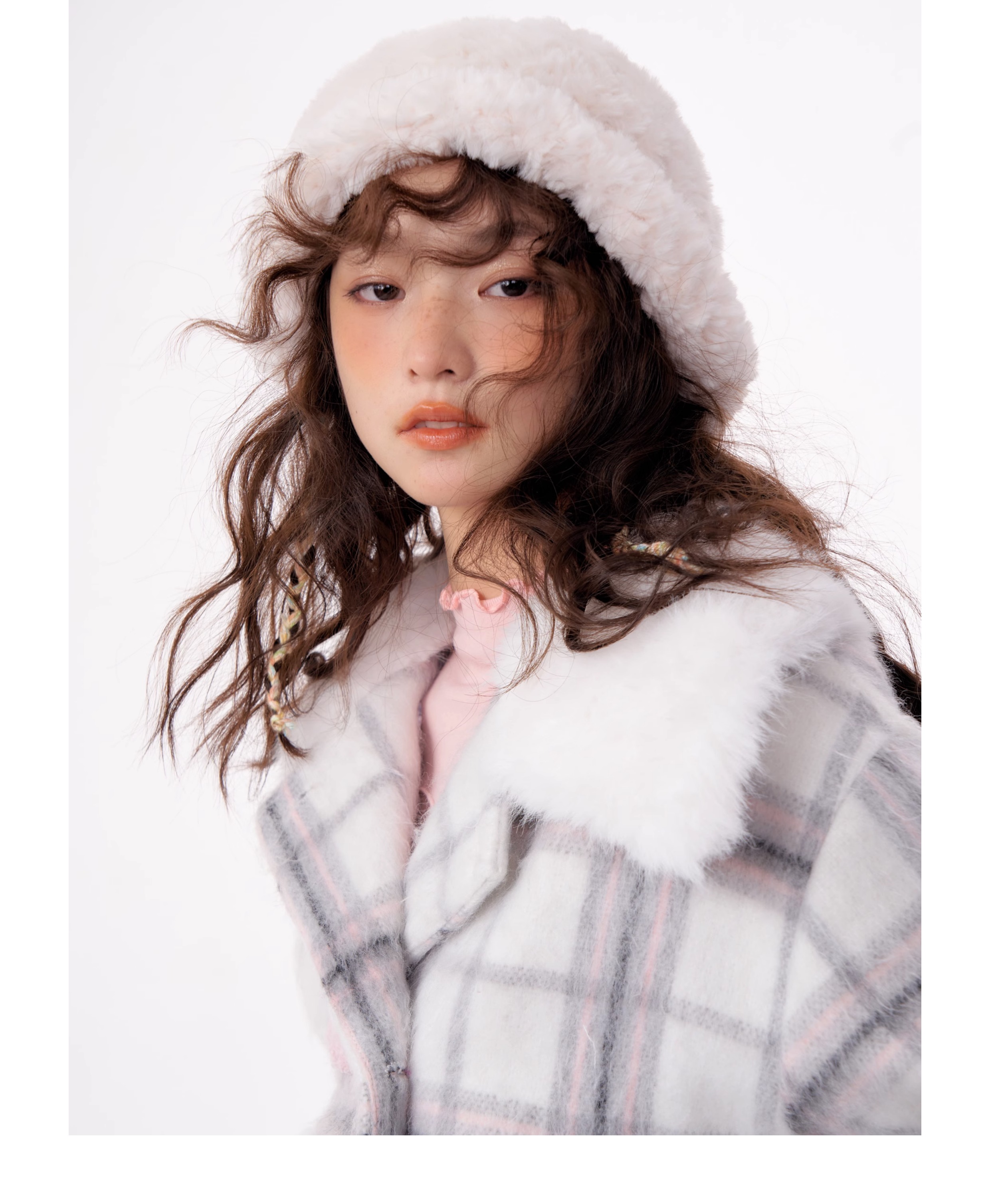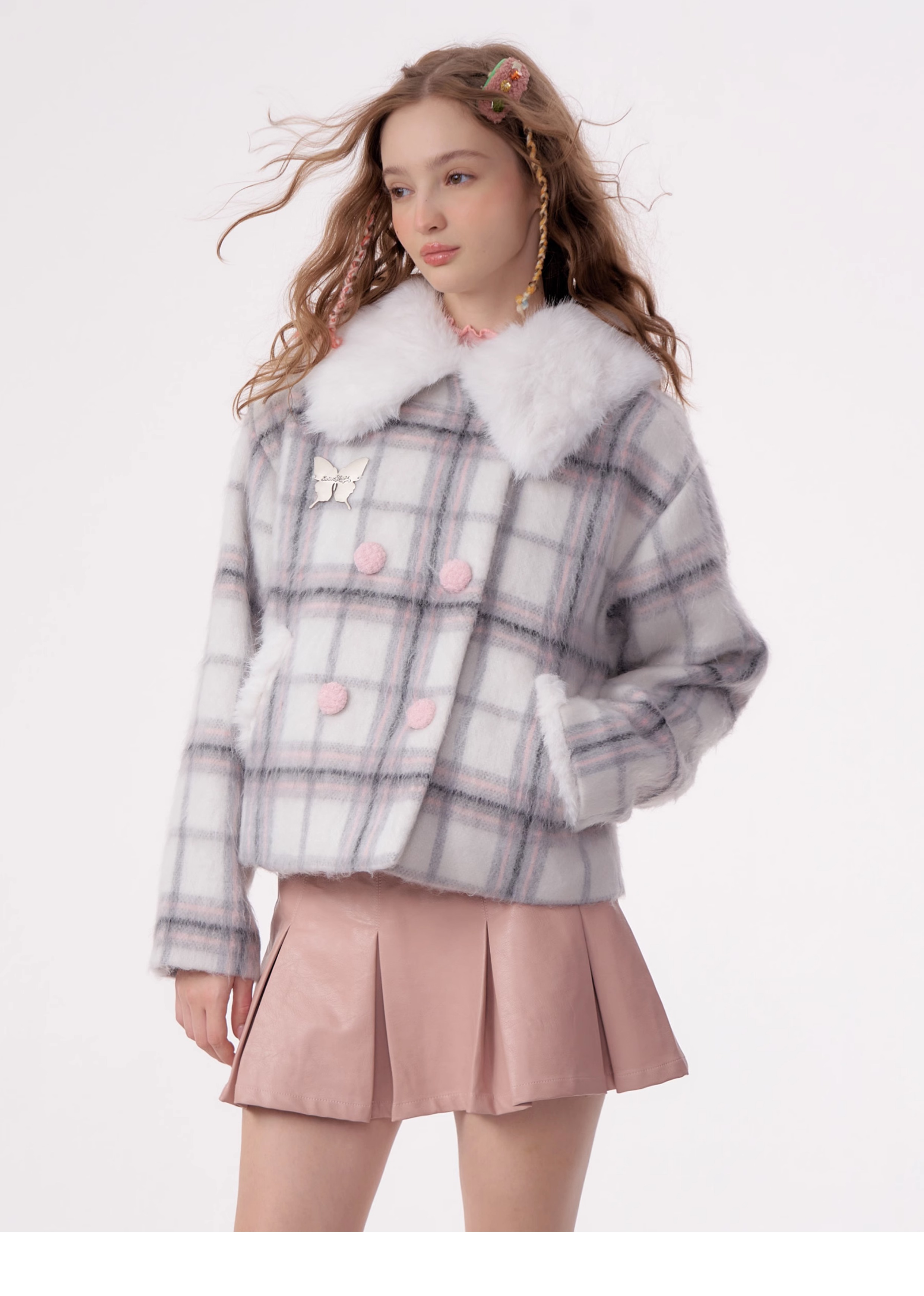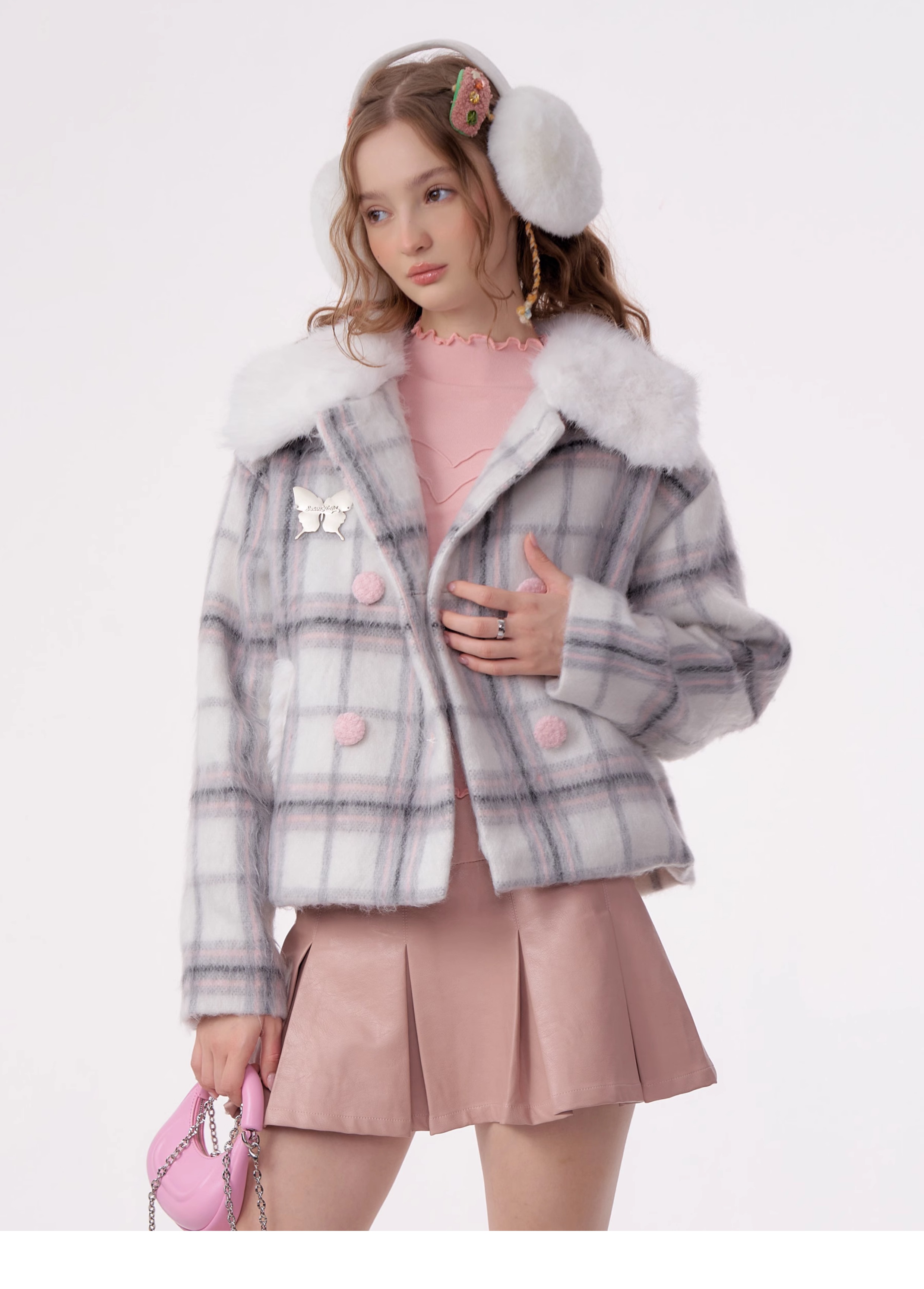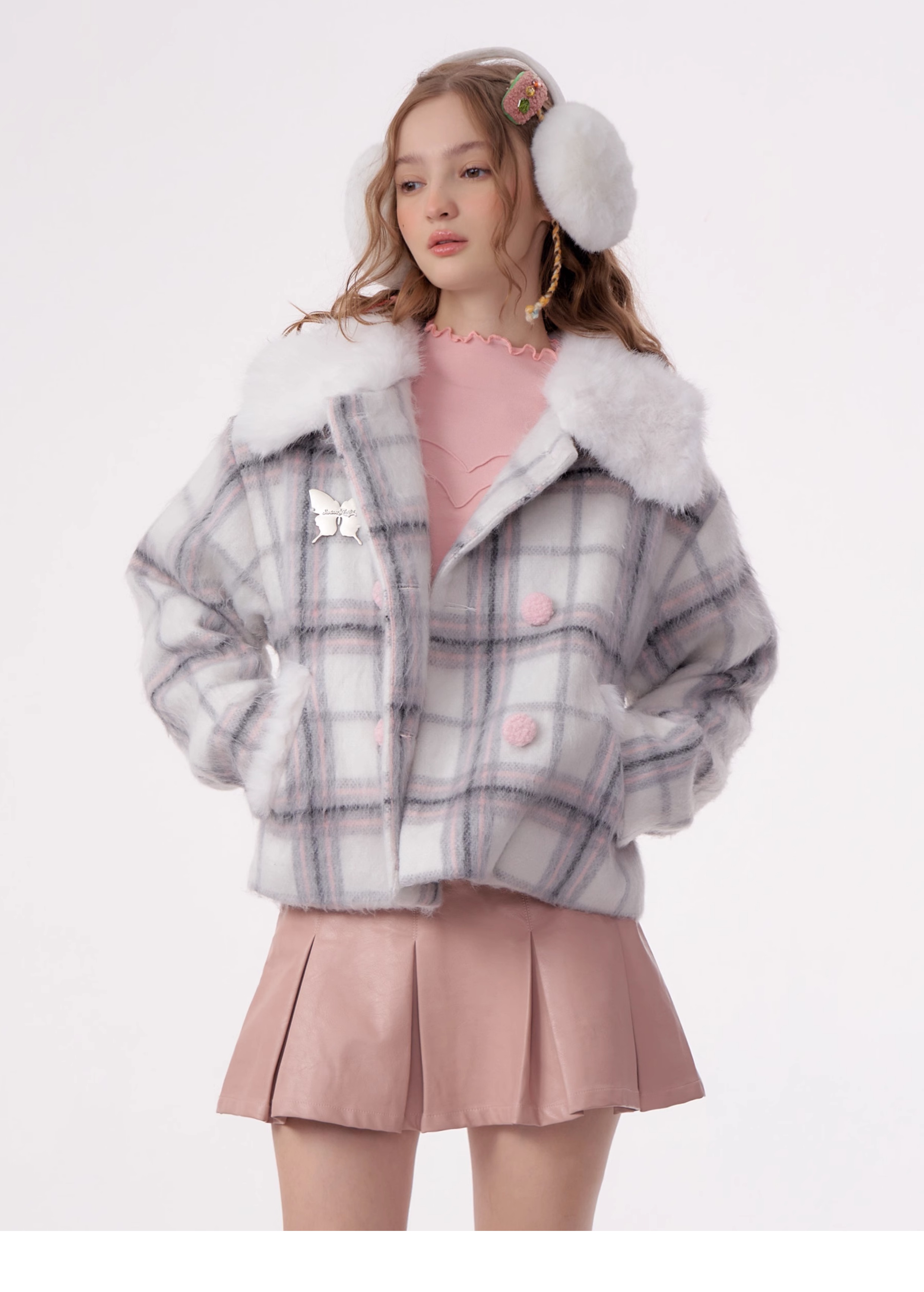 Шерстяная куртка с клетчатым кожаным воротником | Толстый бархатный дизайн в стиле ретро для осени/зимы