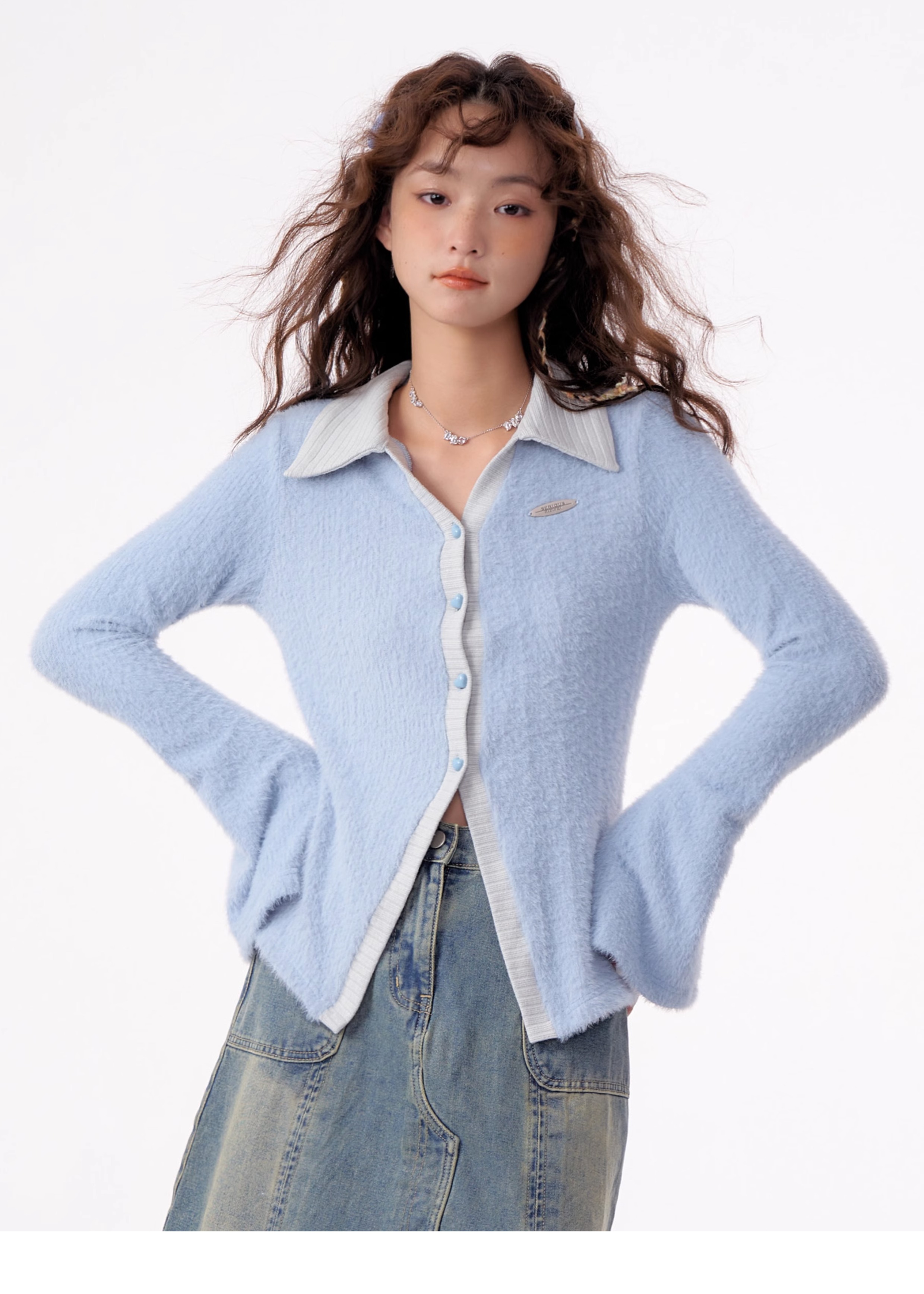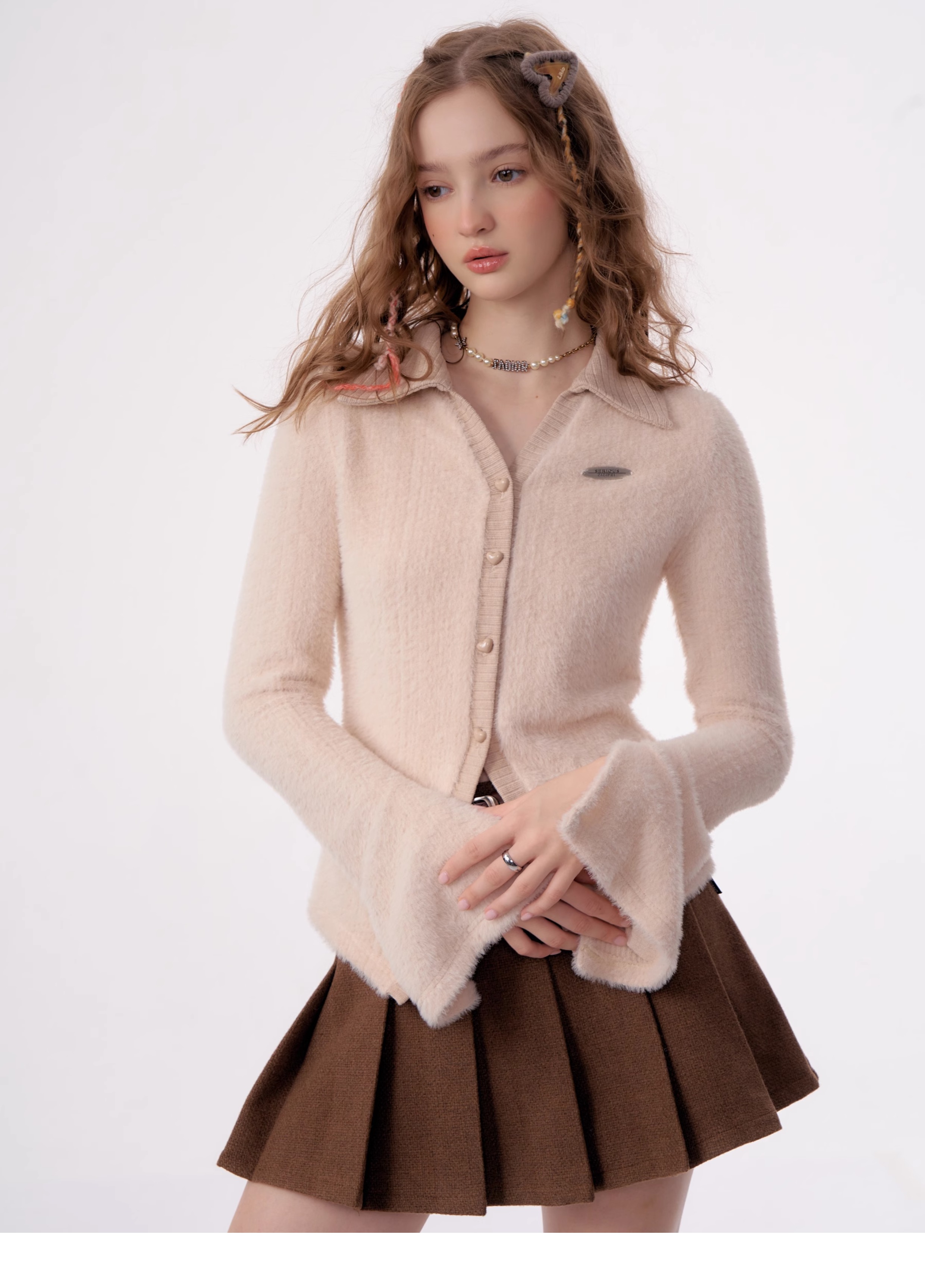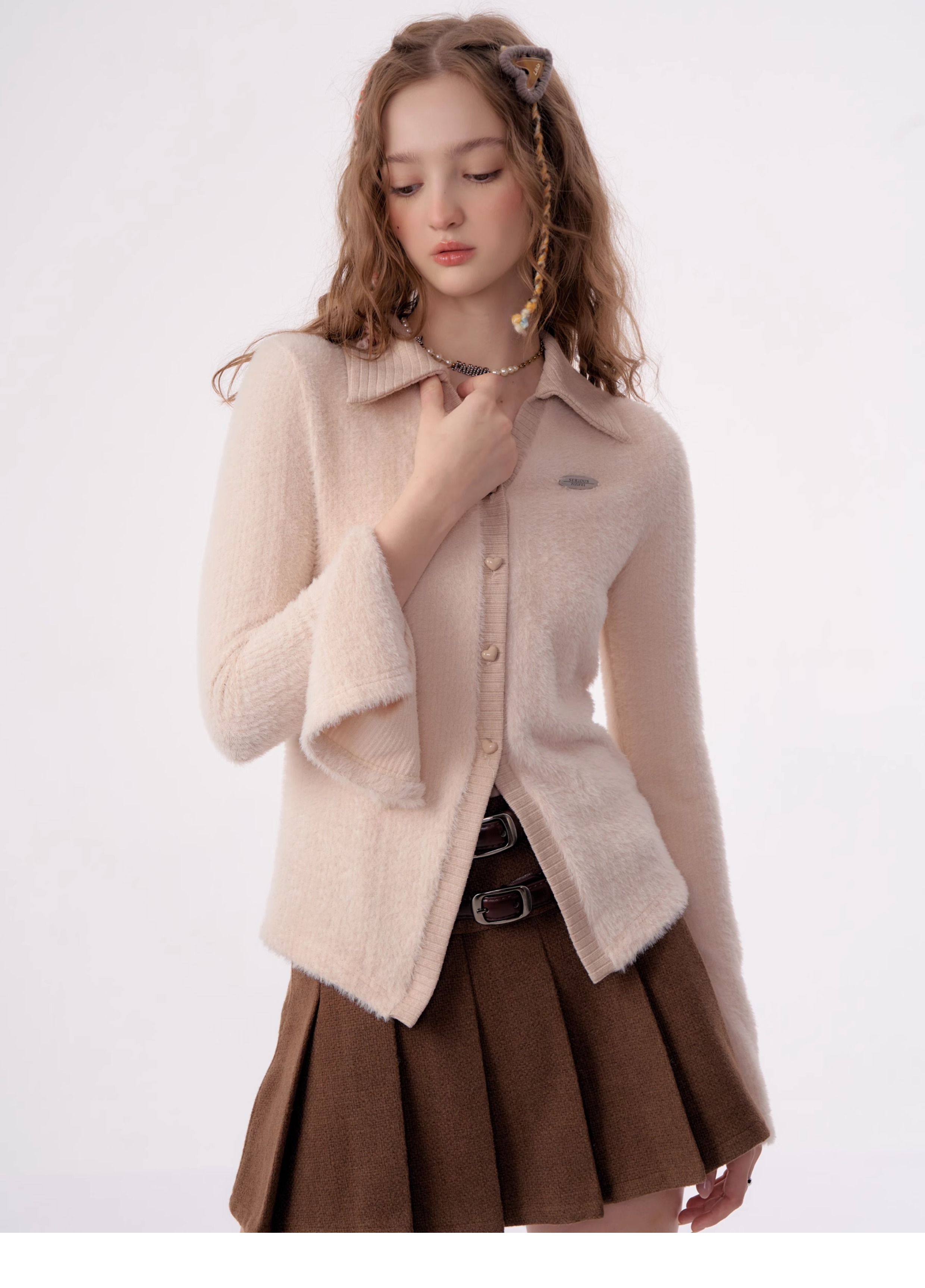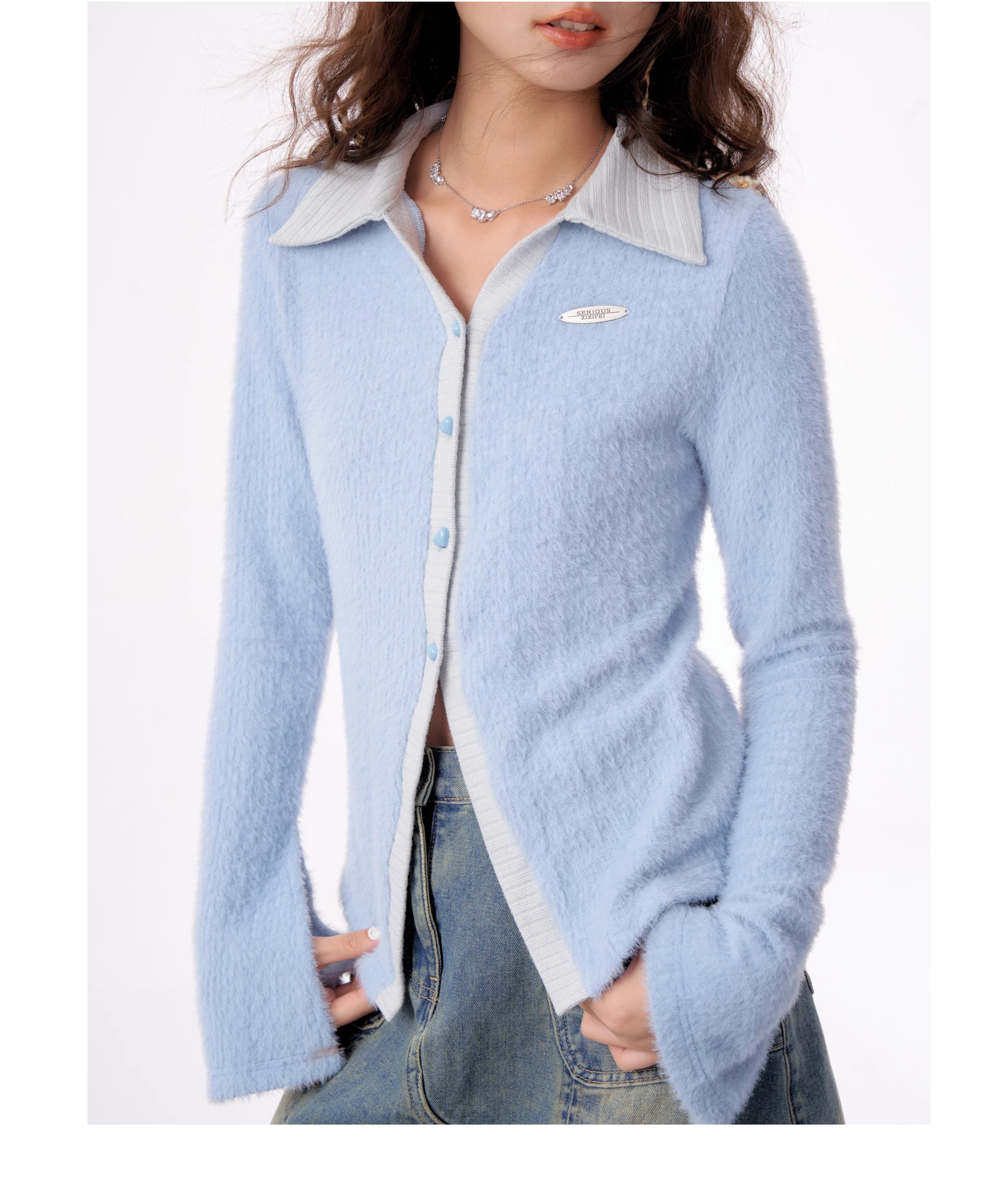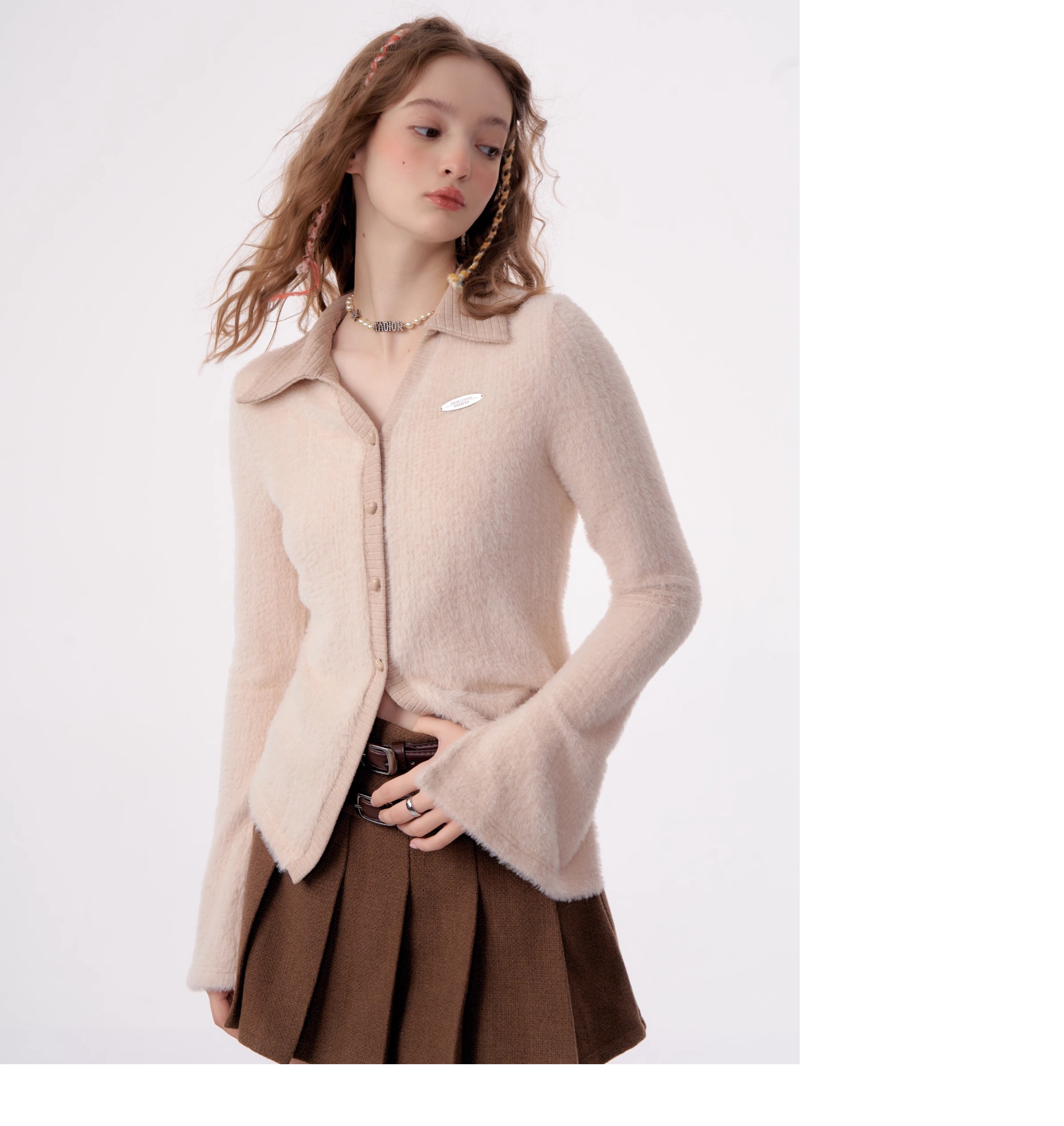Кардиган с длинными рукавами и воротником-поло | Женский вязаный топ в стиле ретро на осень/зиму