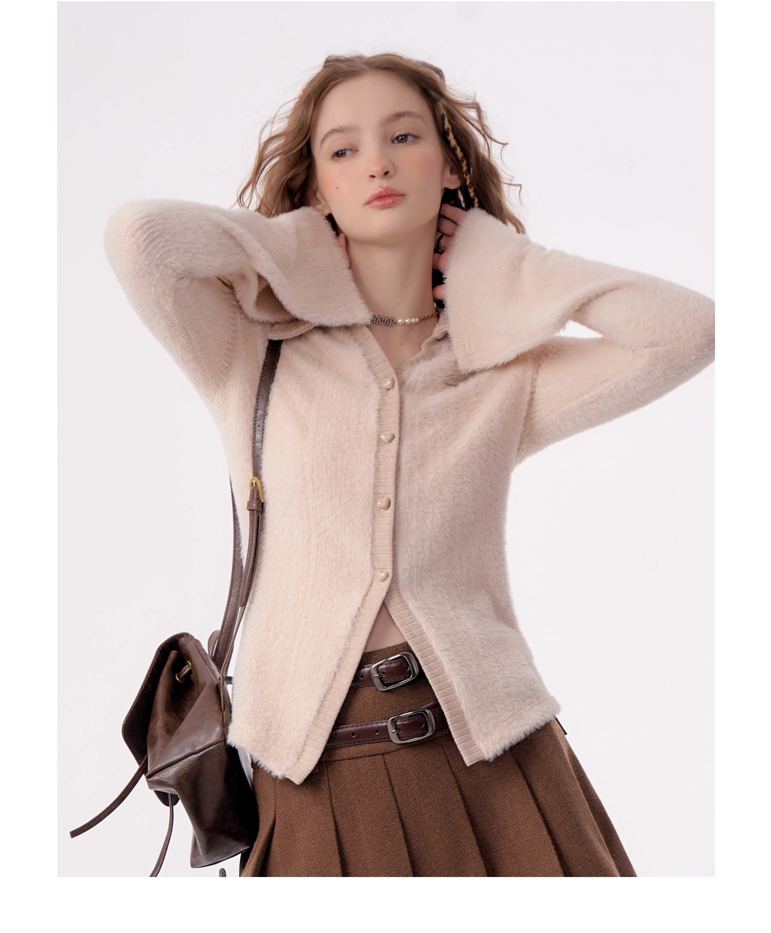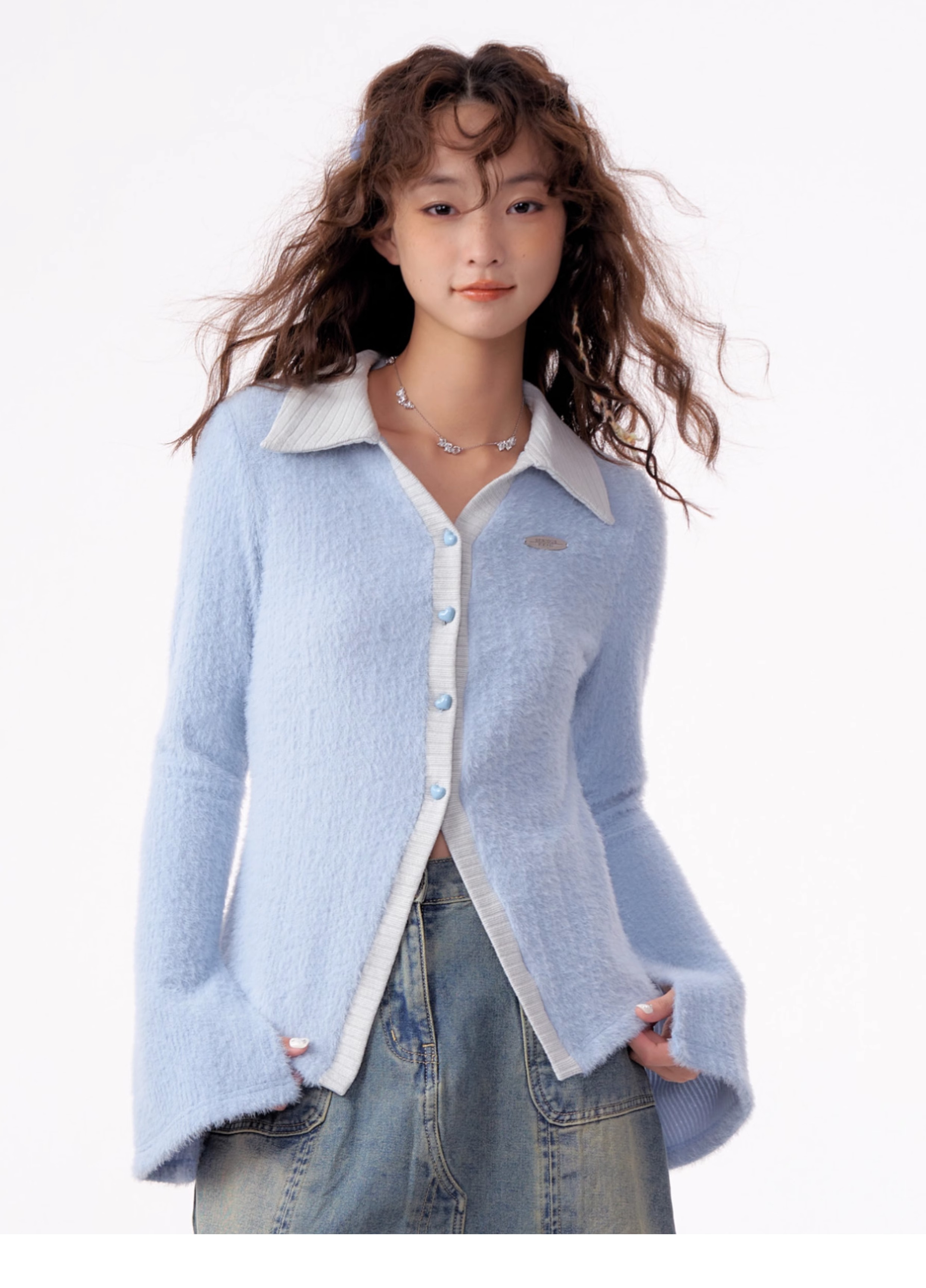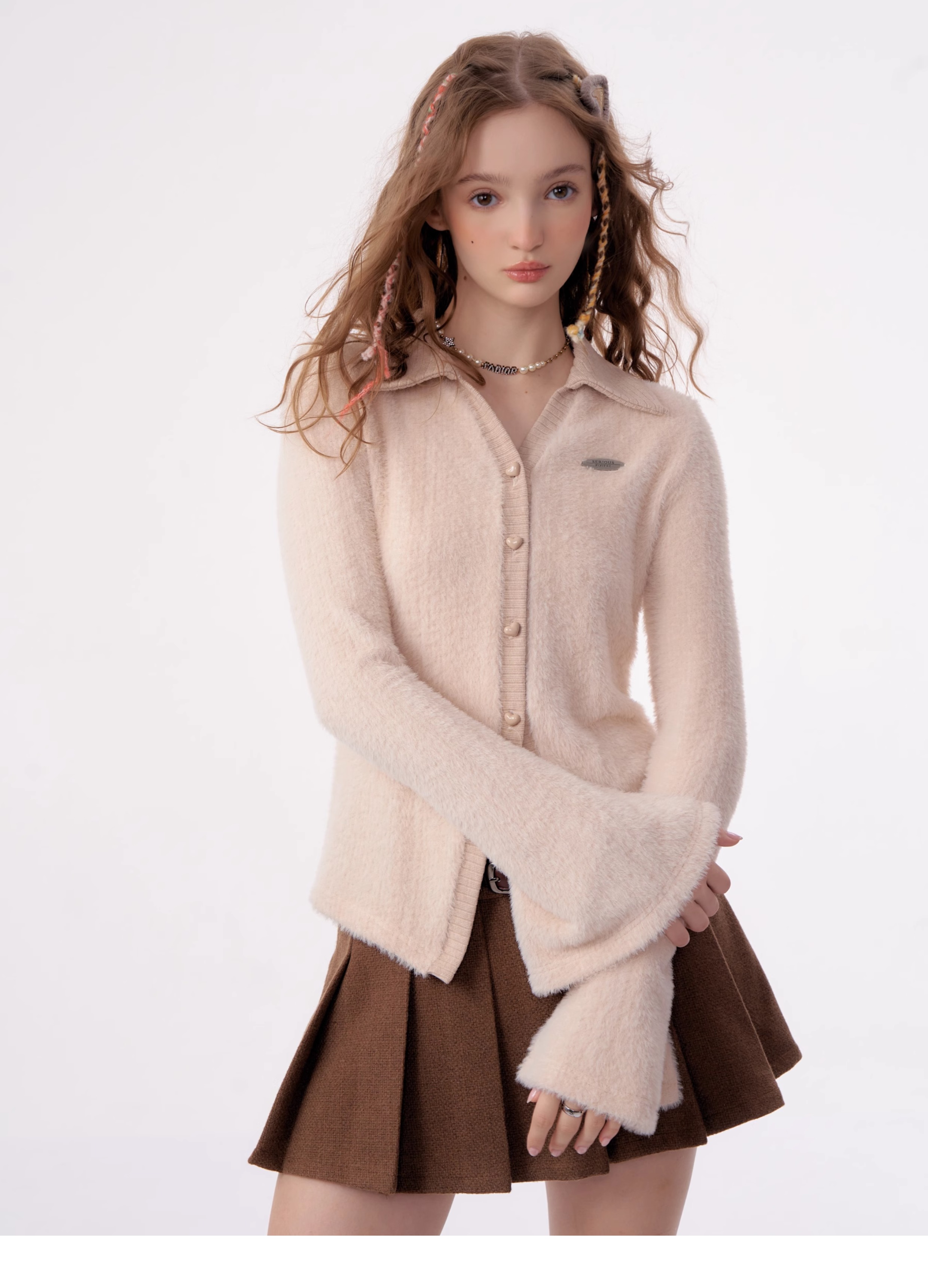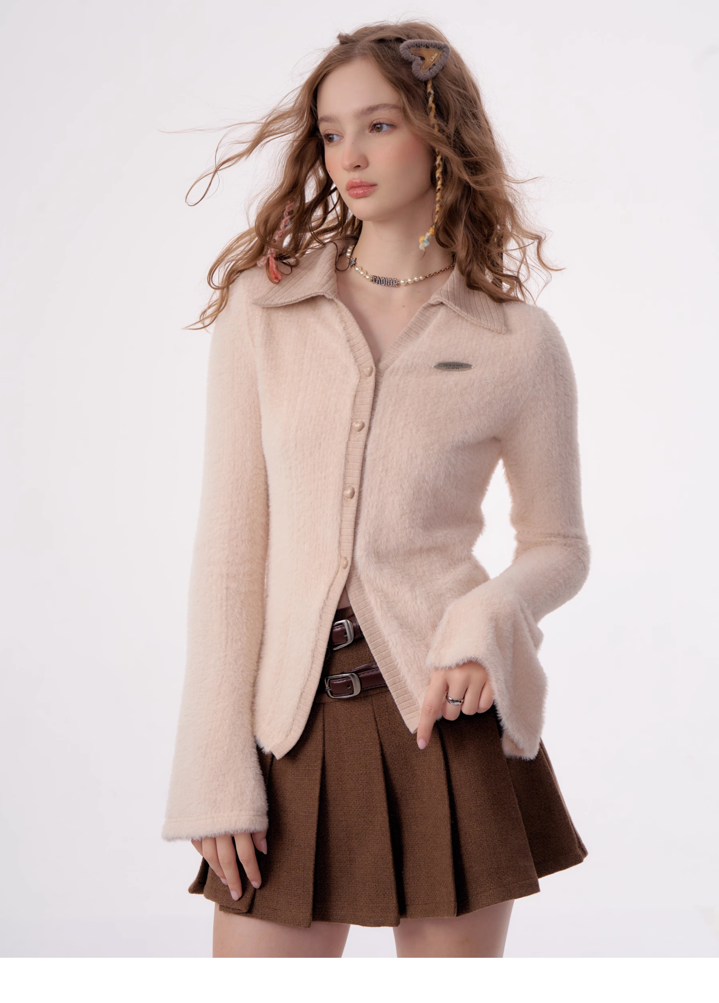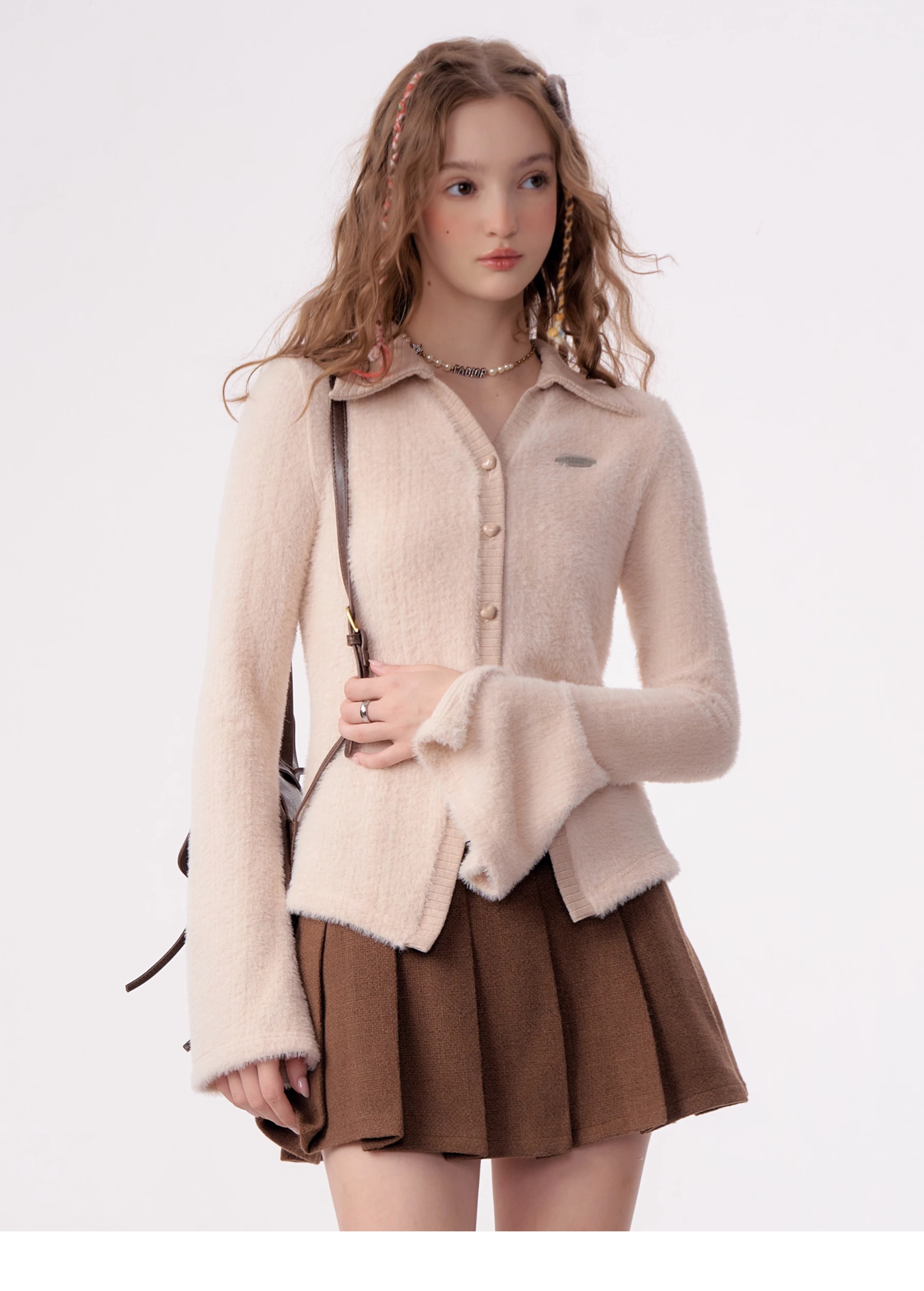 Кардиган с длинными рукавами и воротником-поло | Женский вязаный топ в стиле ретро на осень/зиму