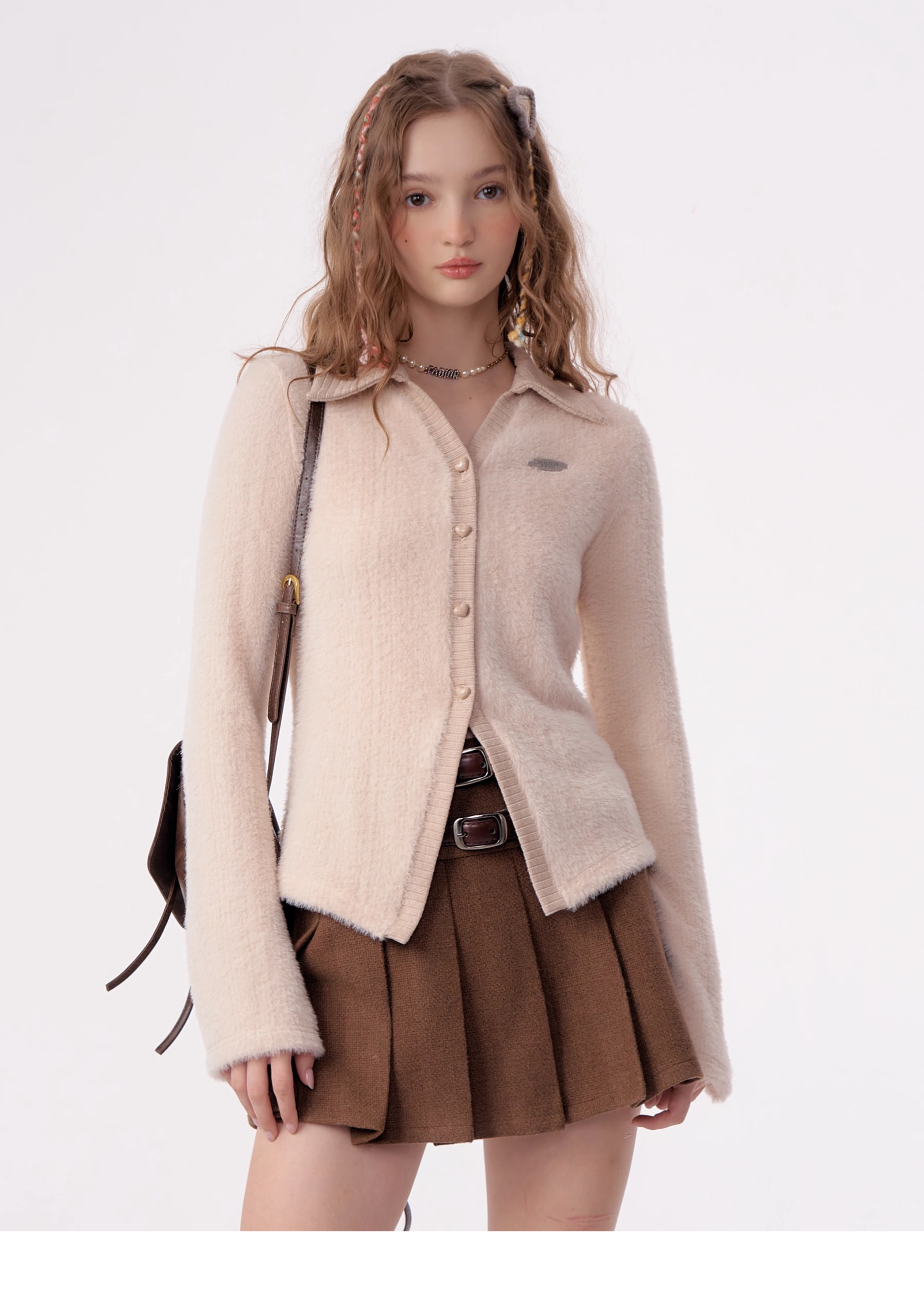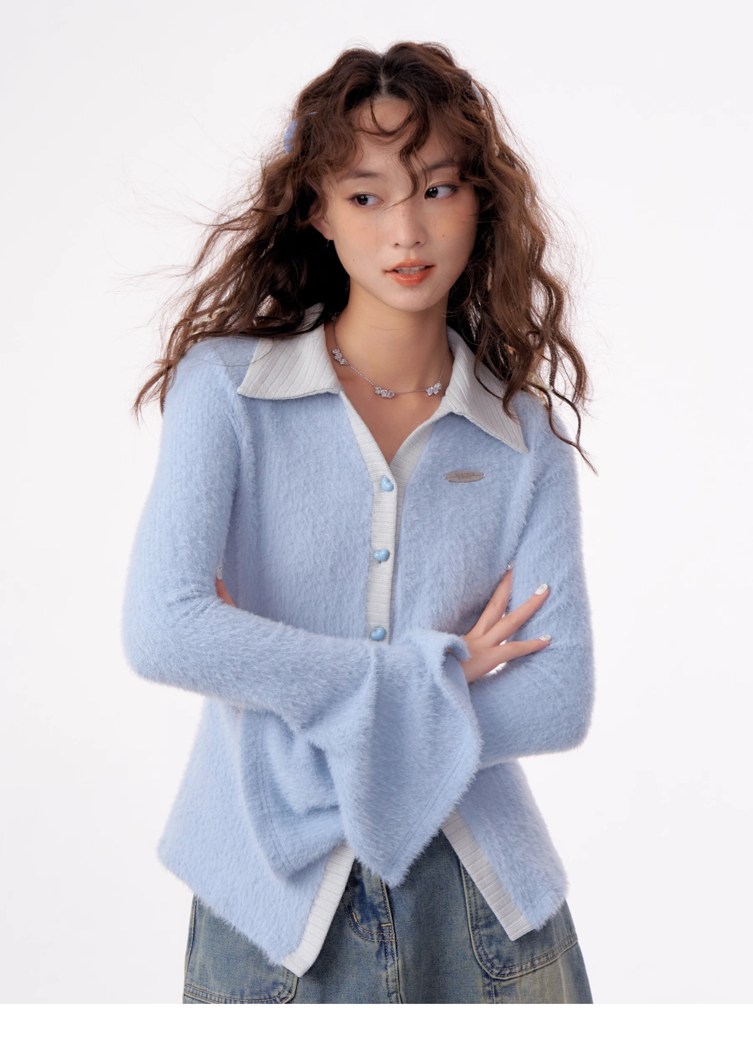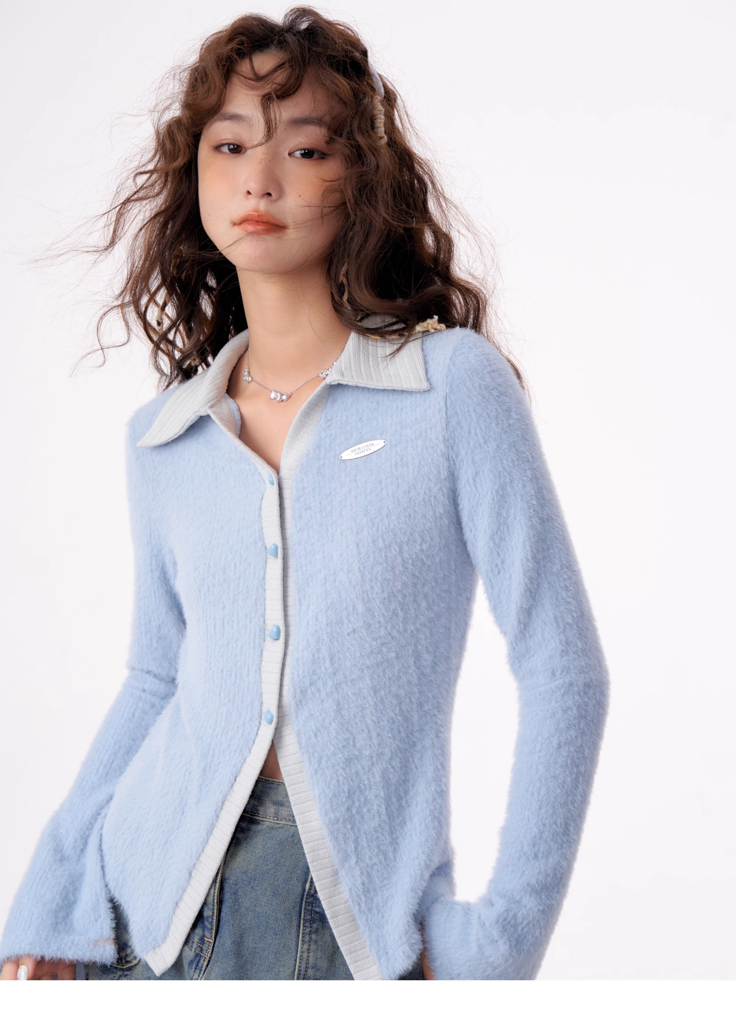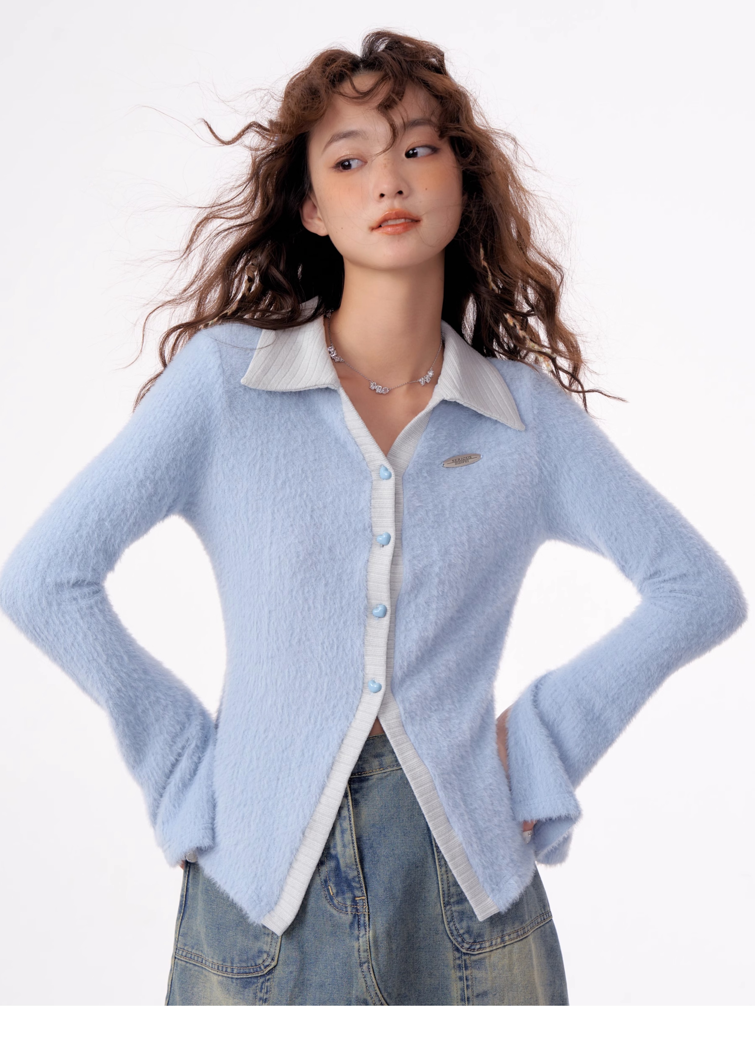 Кардиган с длинными рукавами и воротником-поло | Женский вязаный топ в стиле ретро на осень/зиму