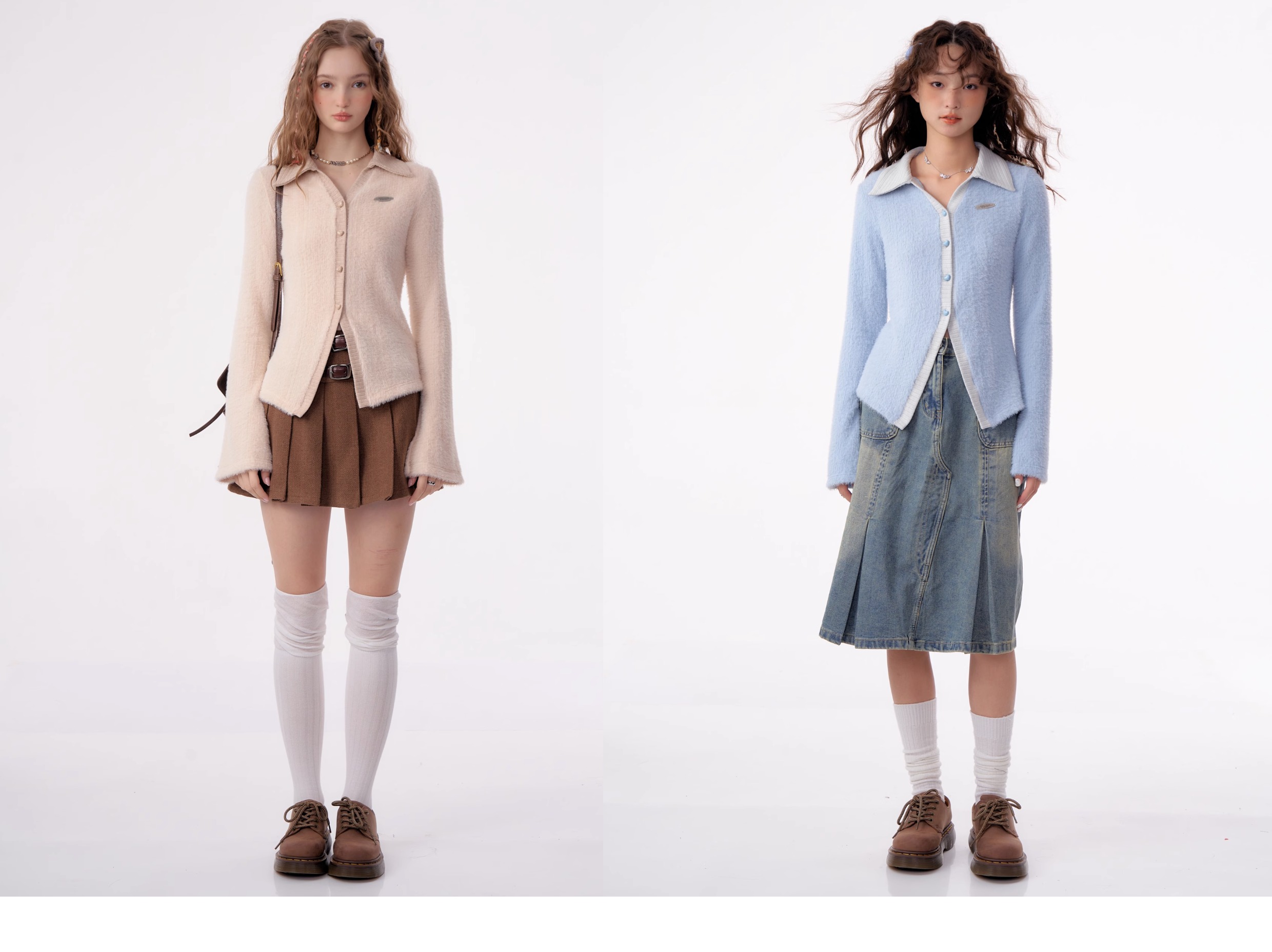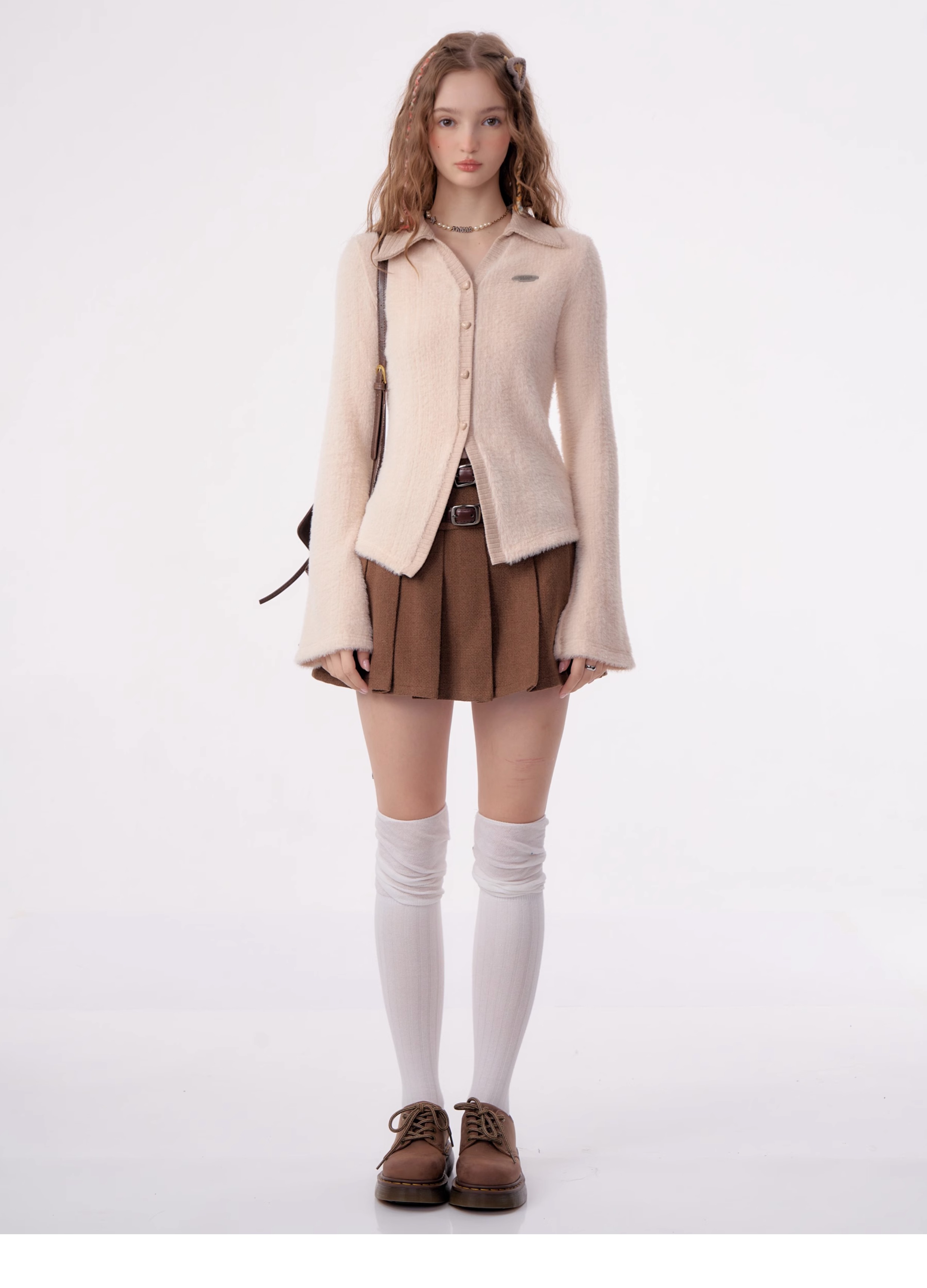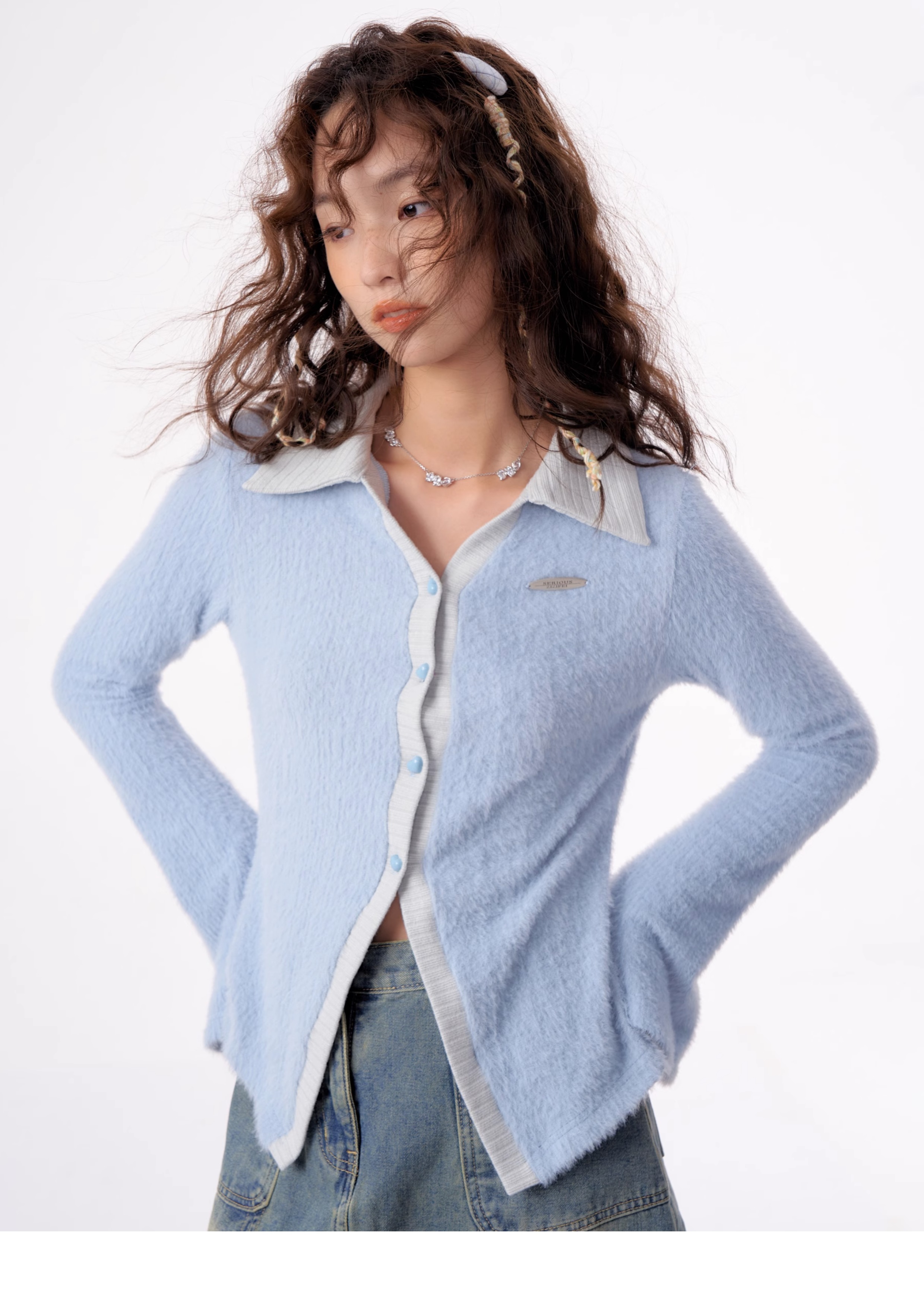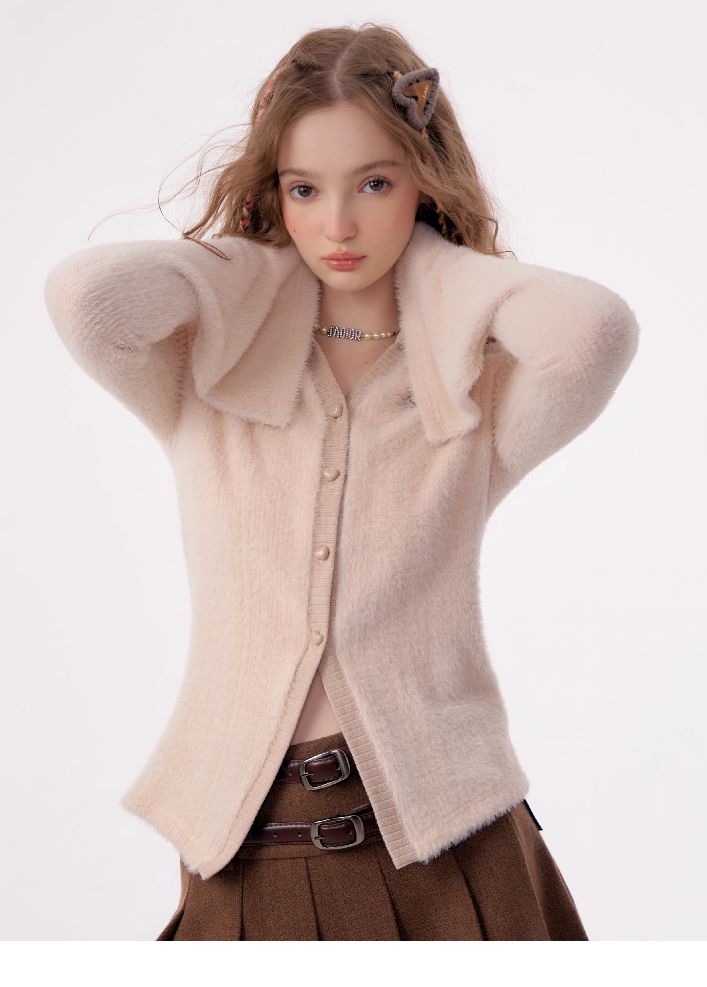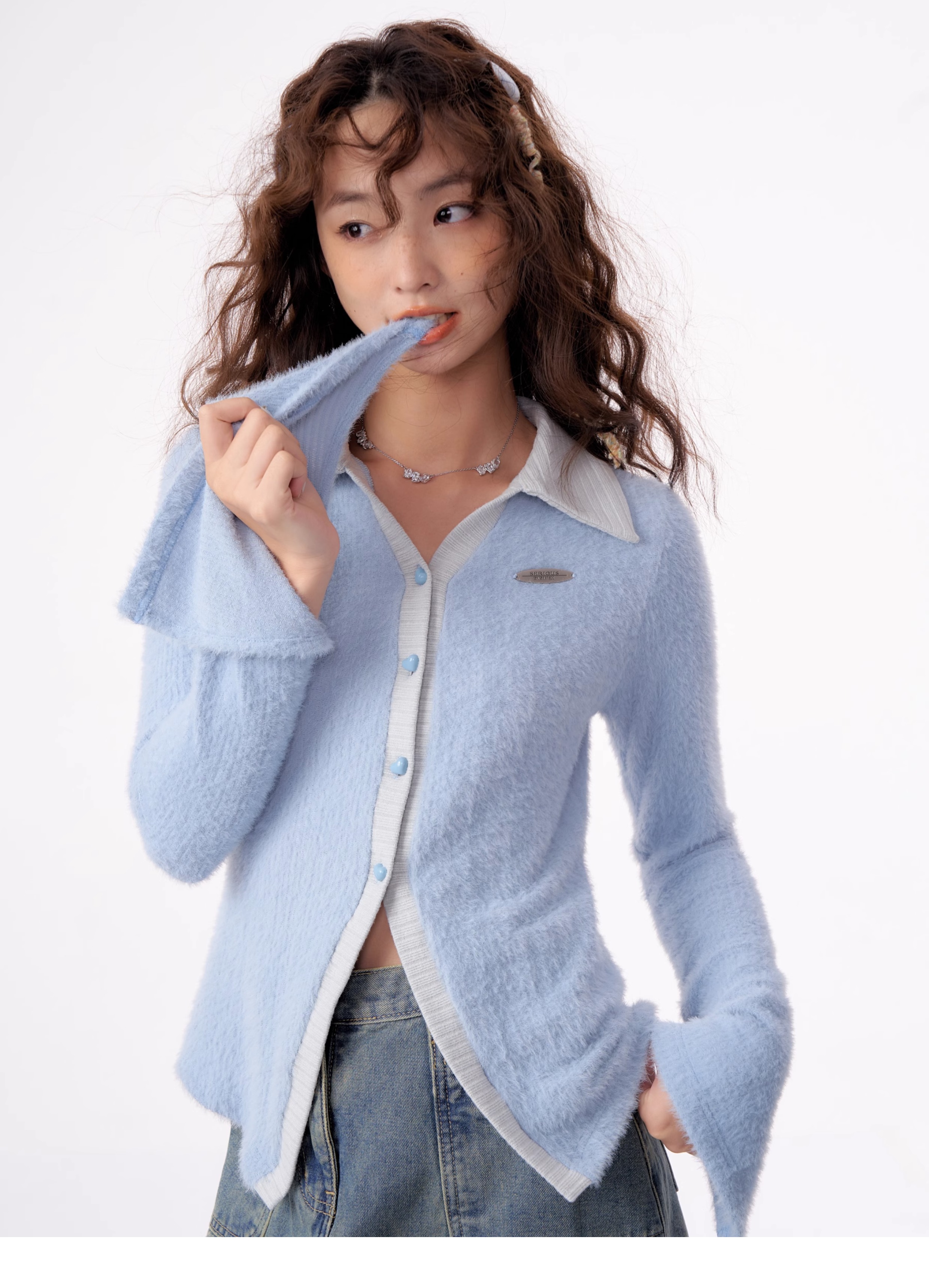 Кардиган с длинными рукавами и воротником-поло | Женский вязаный топ в стиле ретро на осень/зиму
