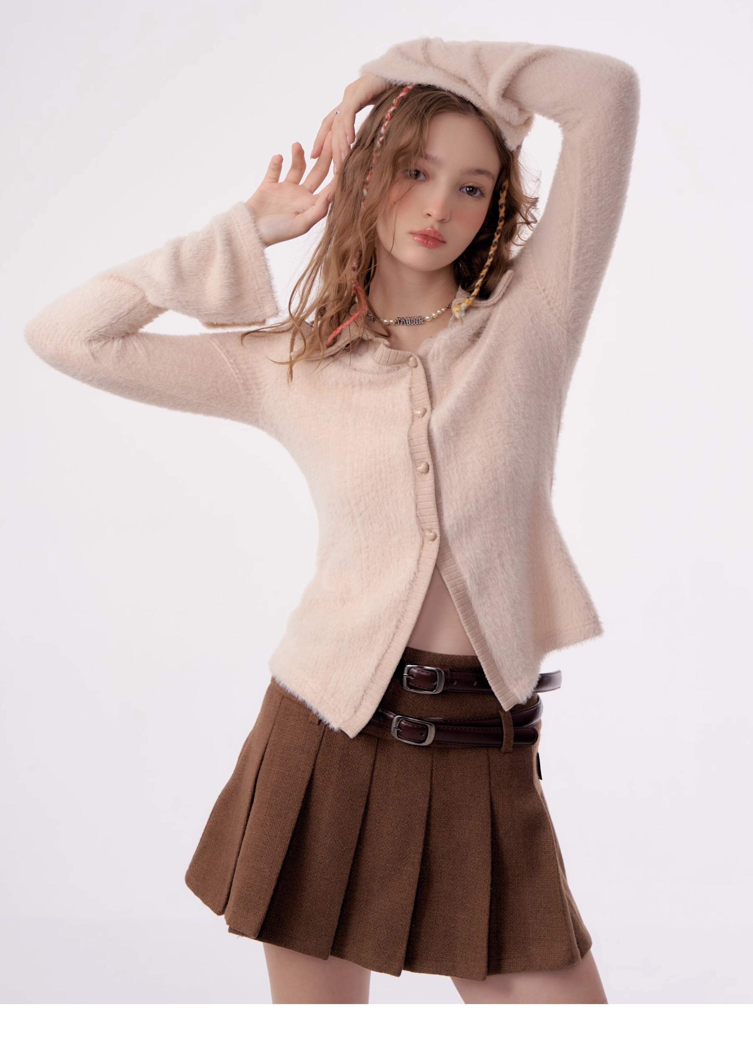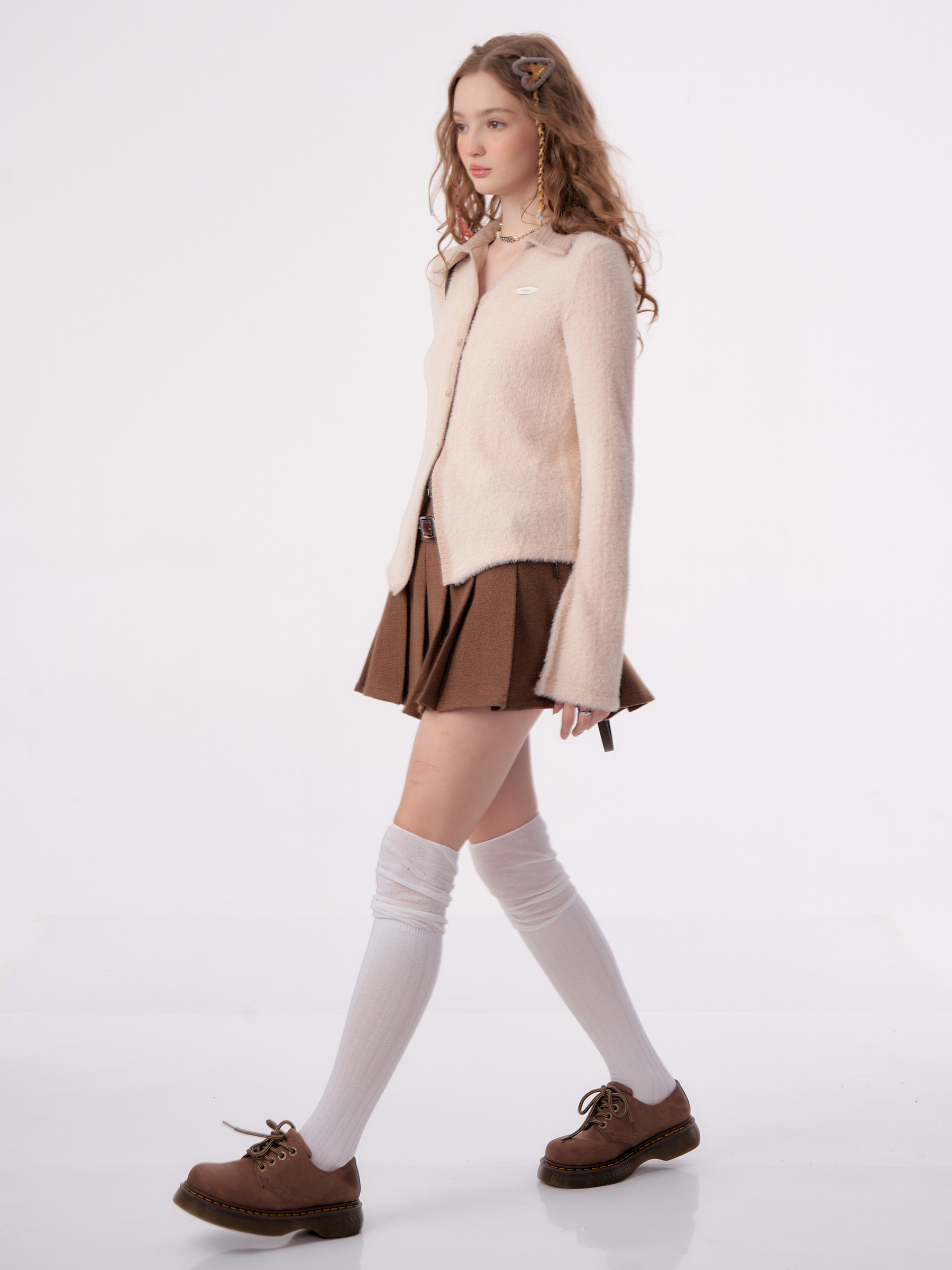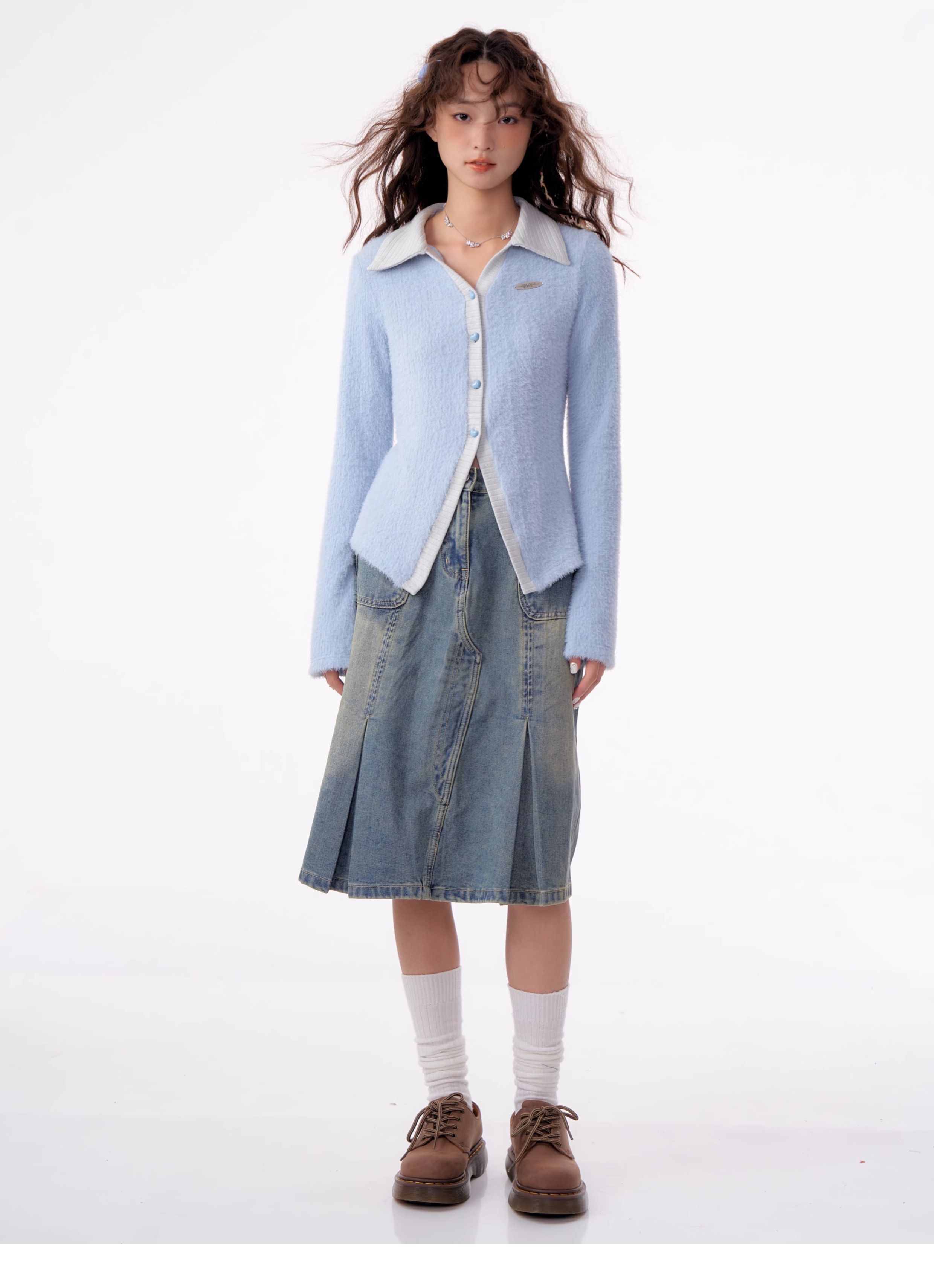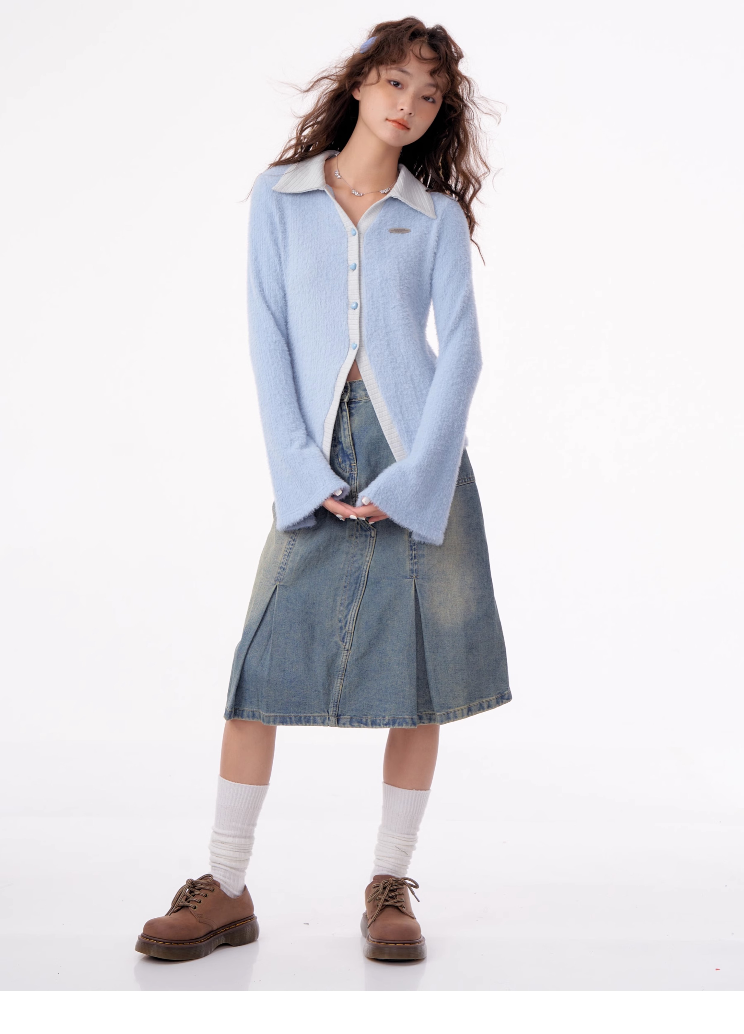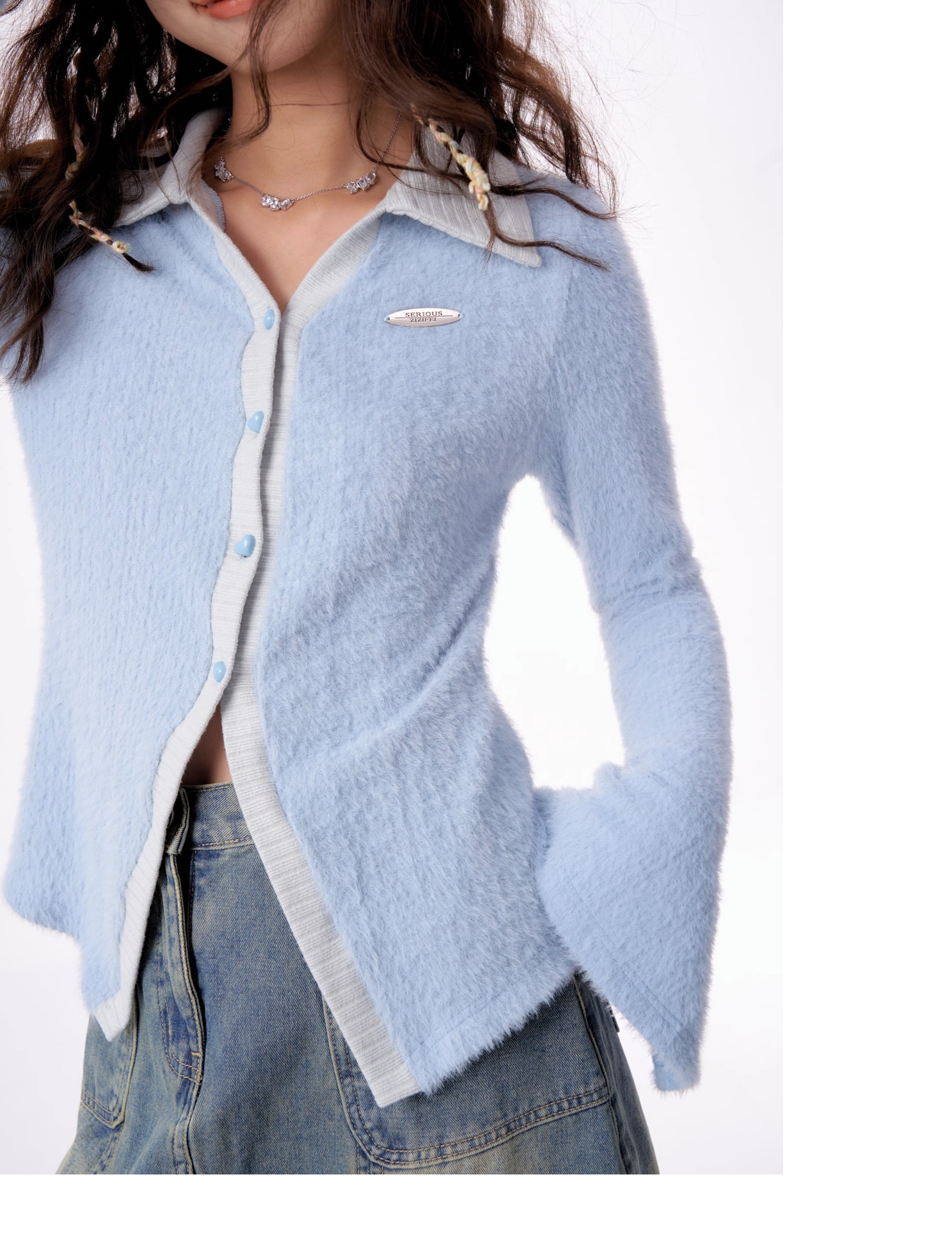 Кардиган с длинными рукавами и воротником-поло | Женский вязаный топ в стиле ретро на осень/зиму