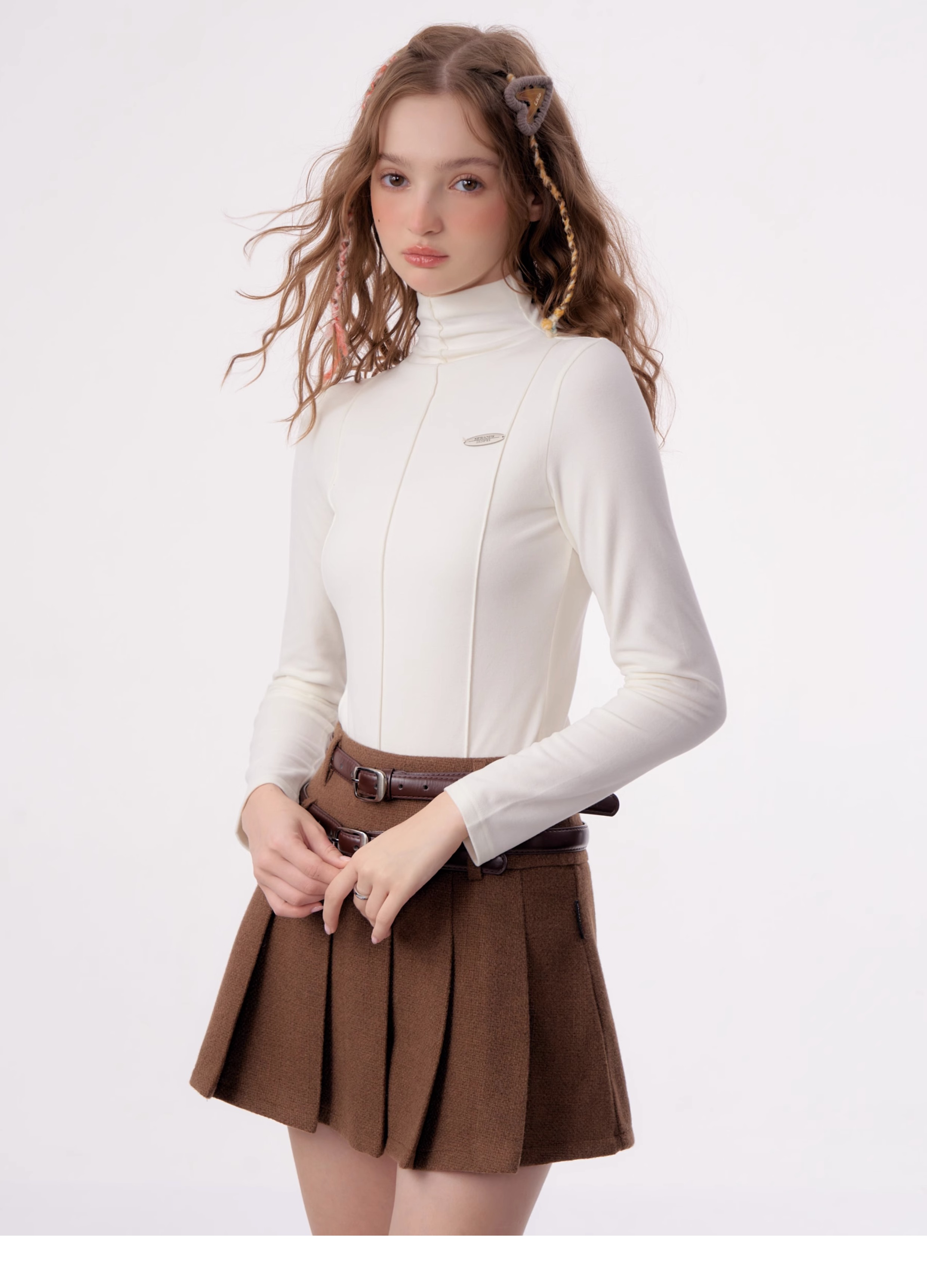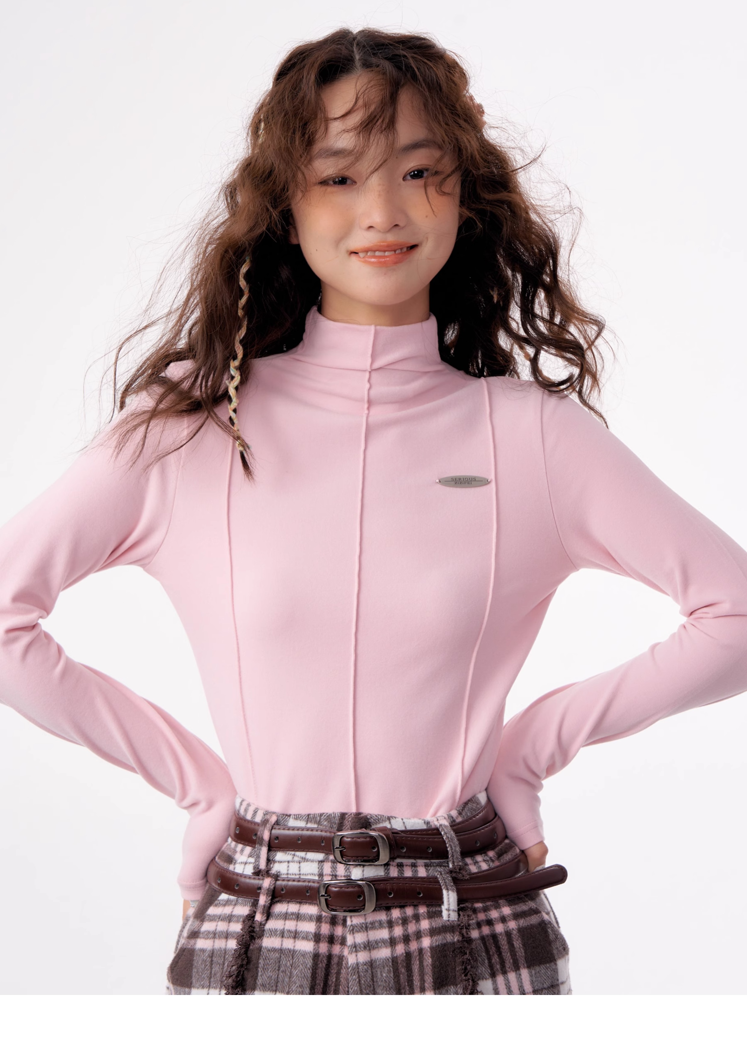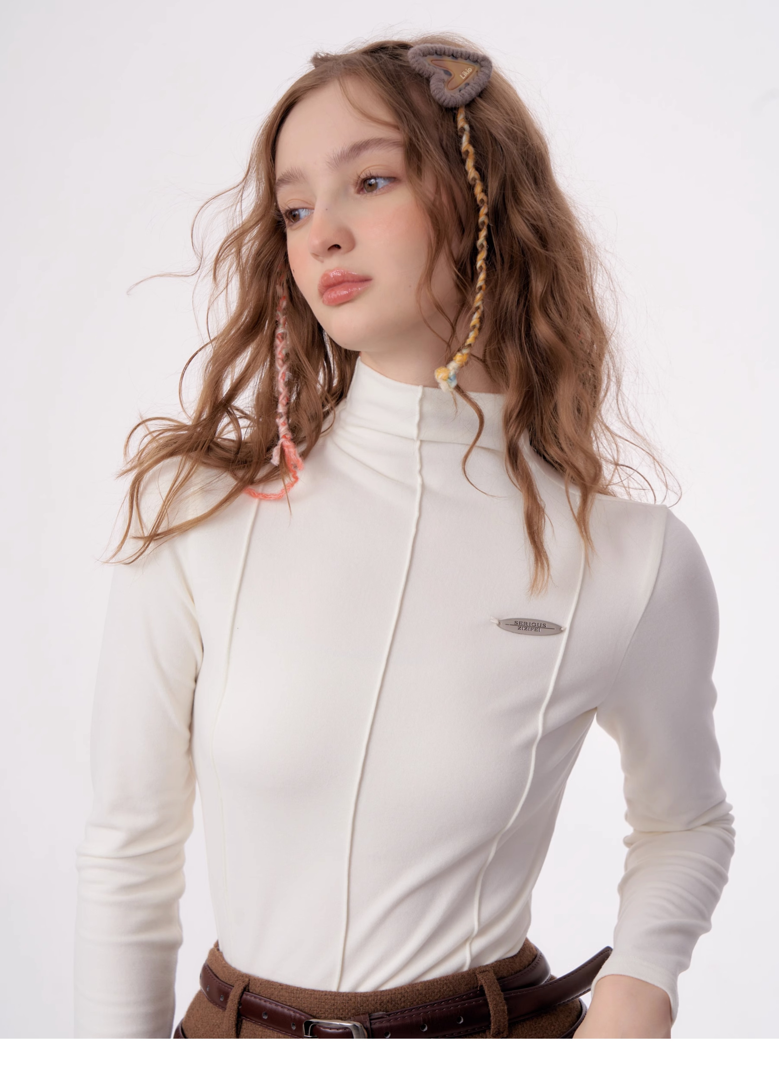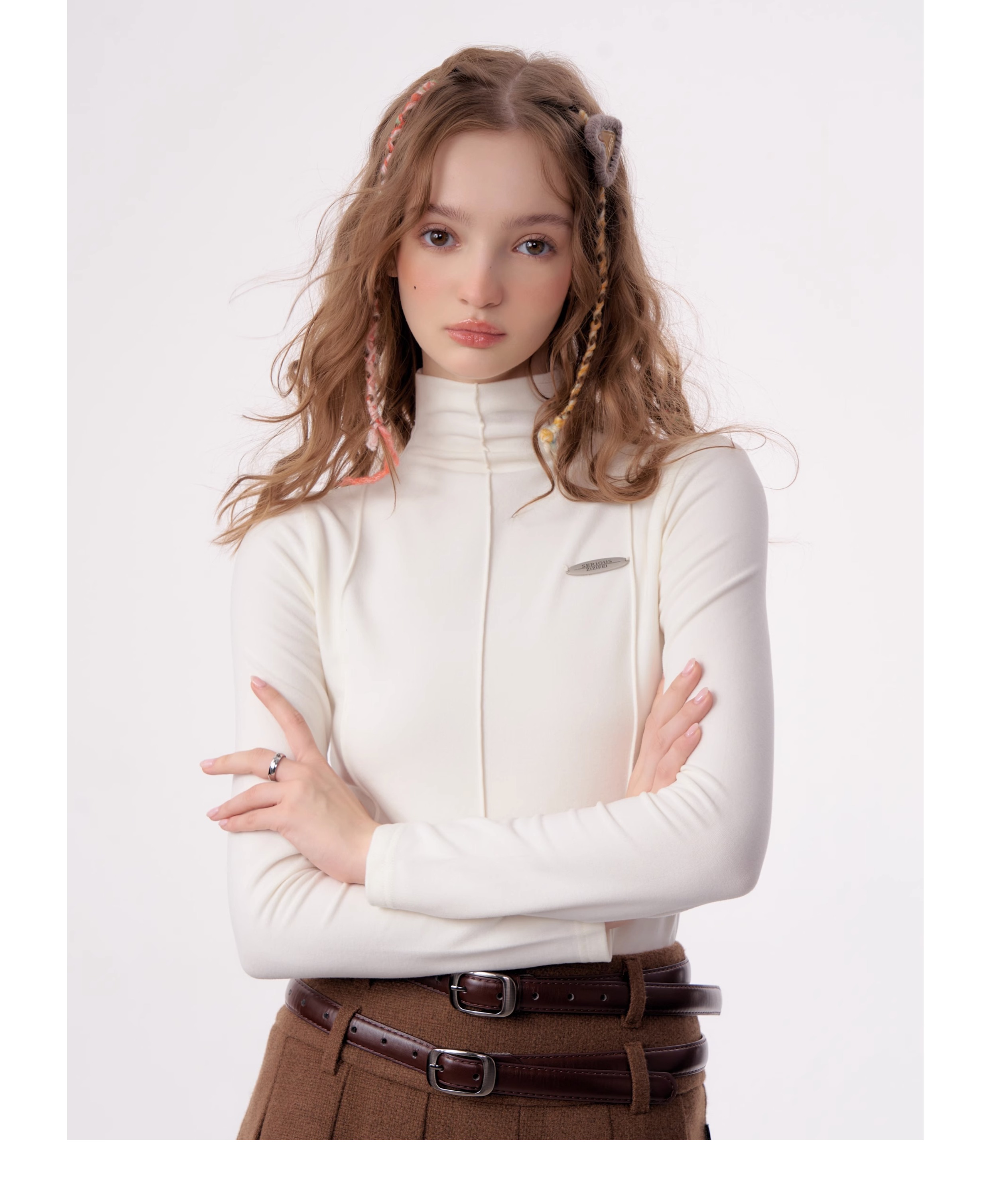 Плотный вязаный топ с длинными рукавами | Приталенный крой с высоким воротником в стиле ретро для осени/зимы