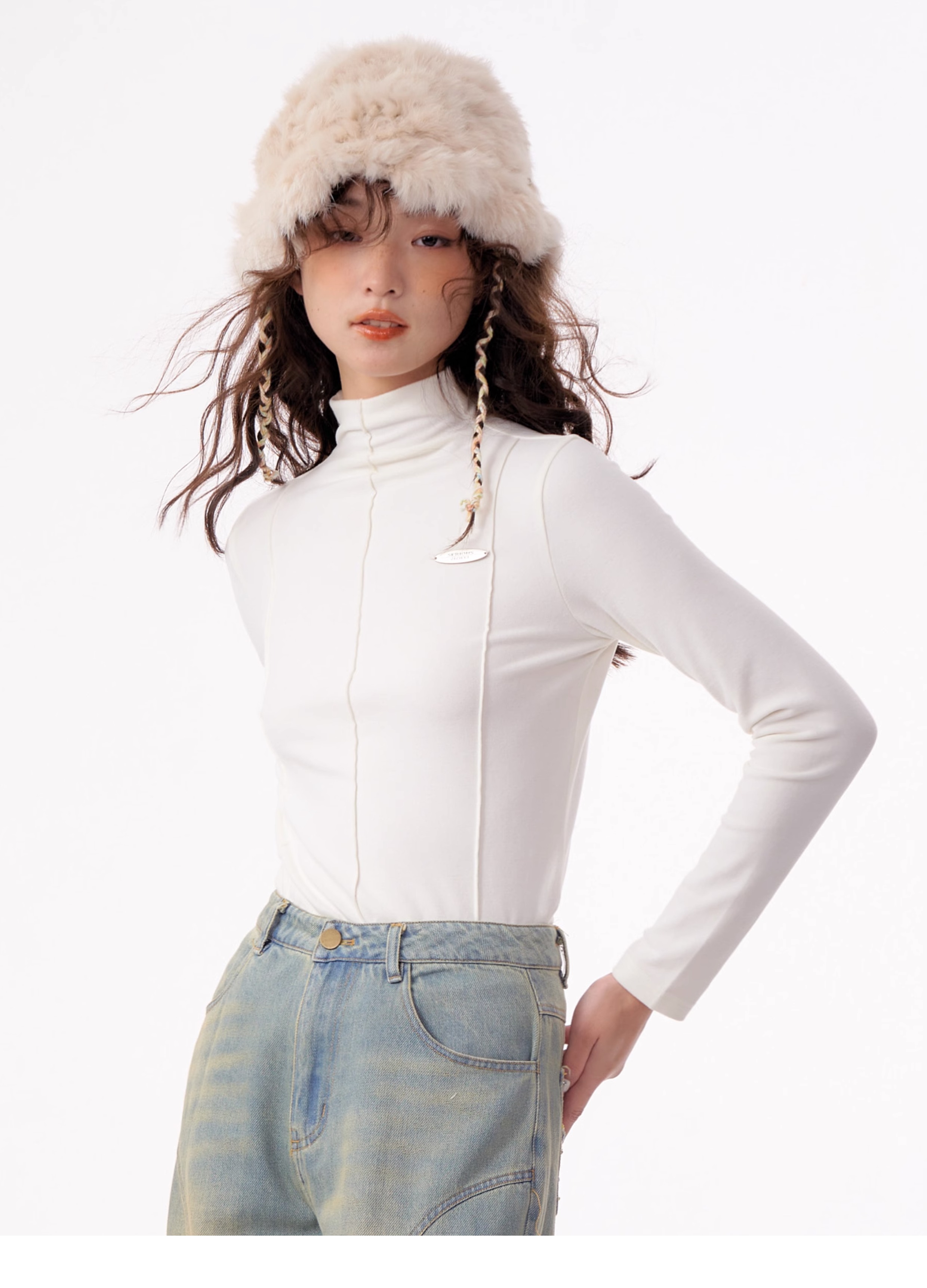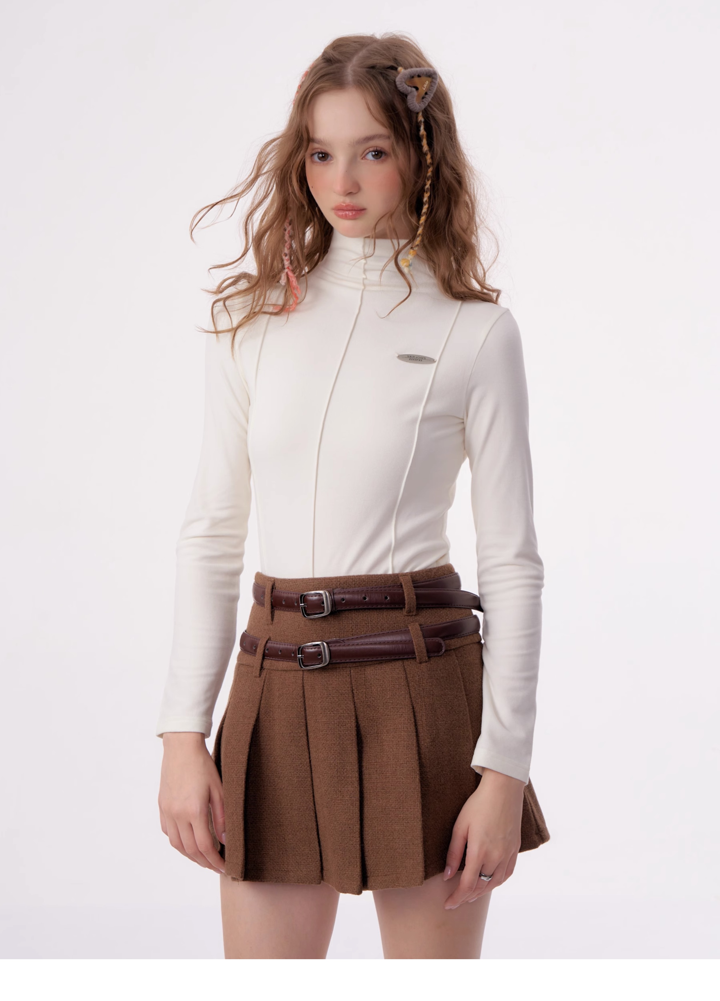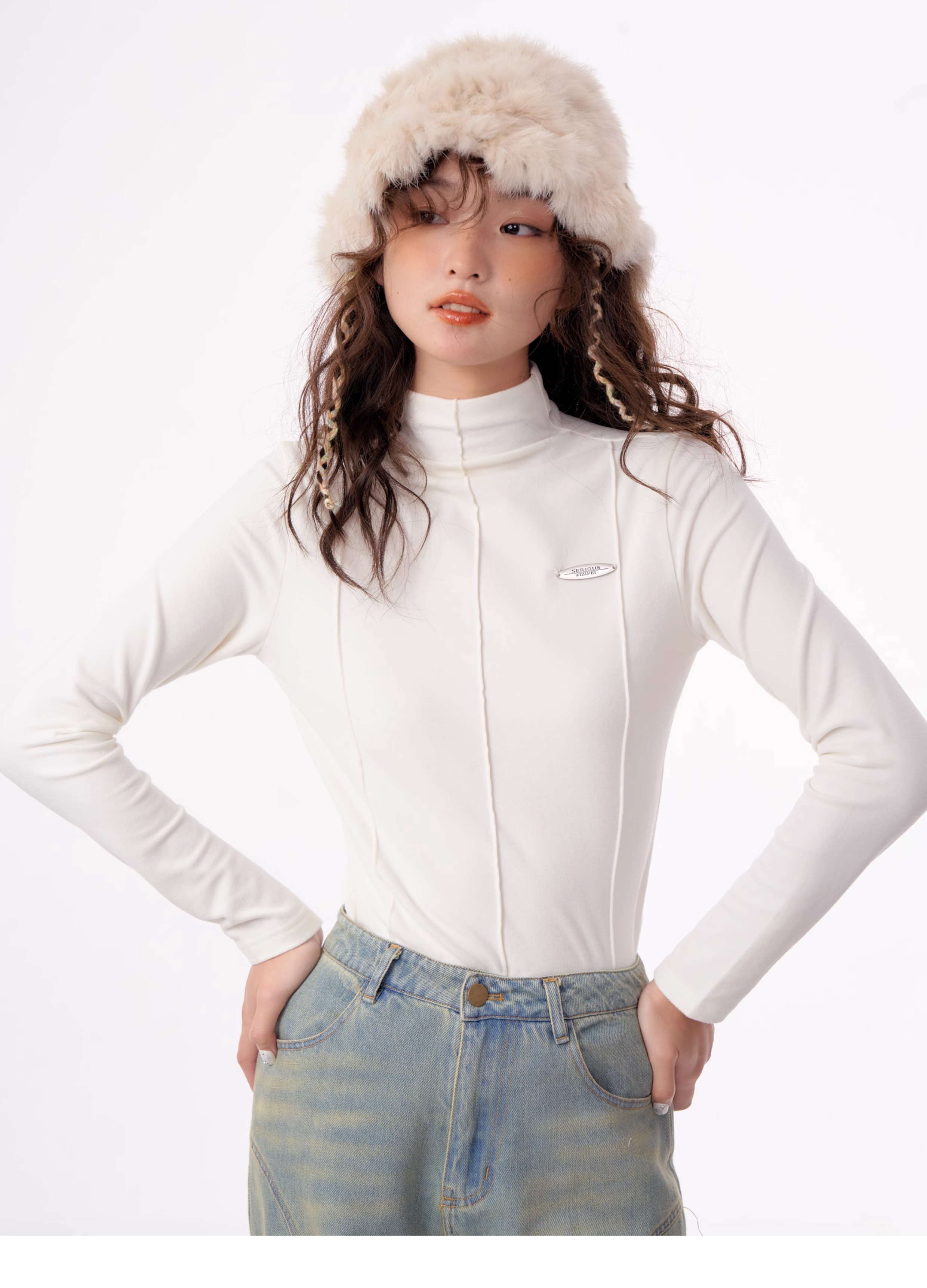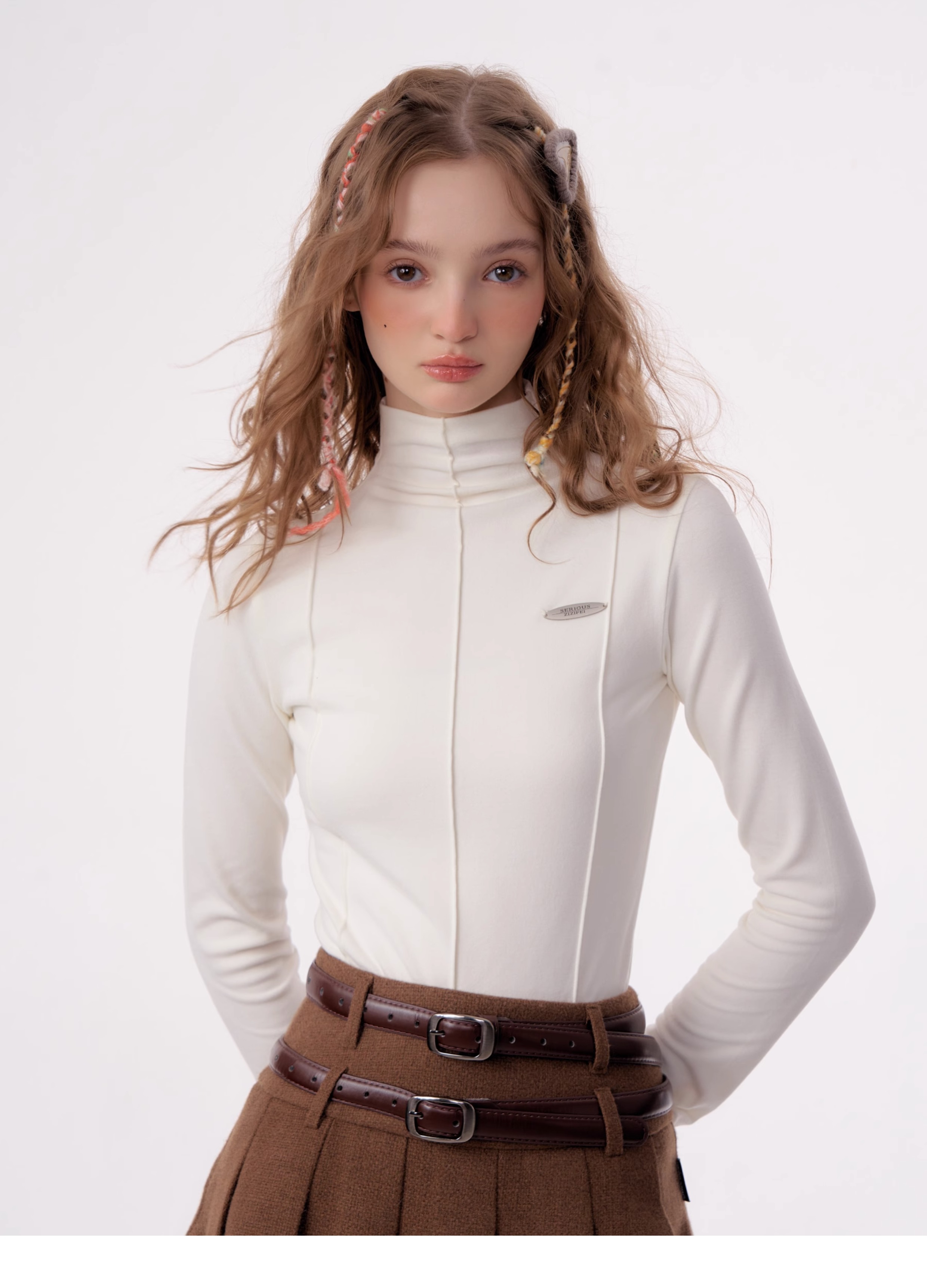 Плотный вязаный топ с длинными рукавами | Приталенный крой с высоким воротником в стиле ретро для осени/зимы