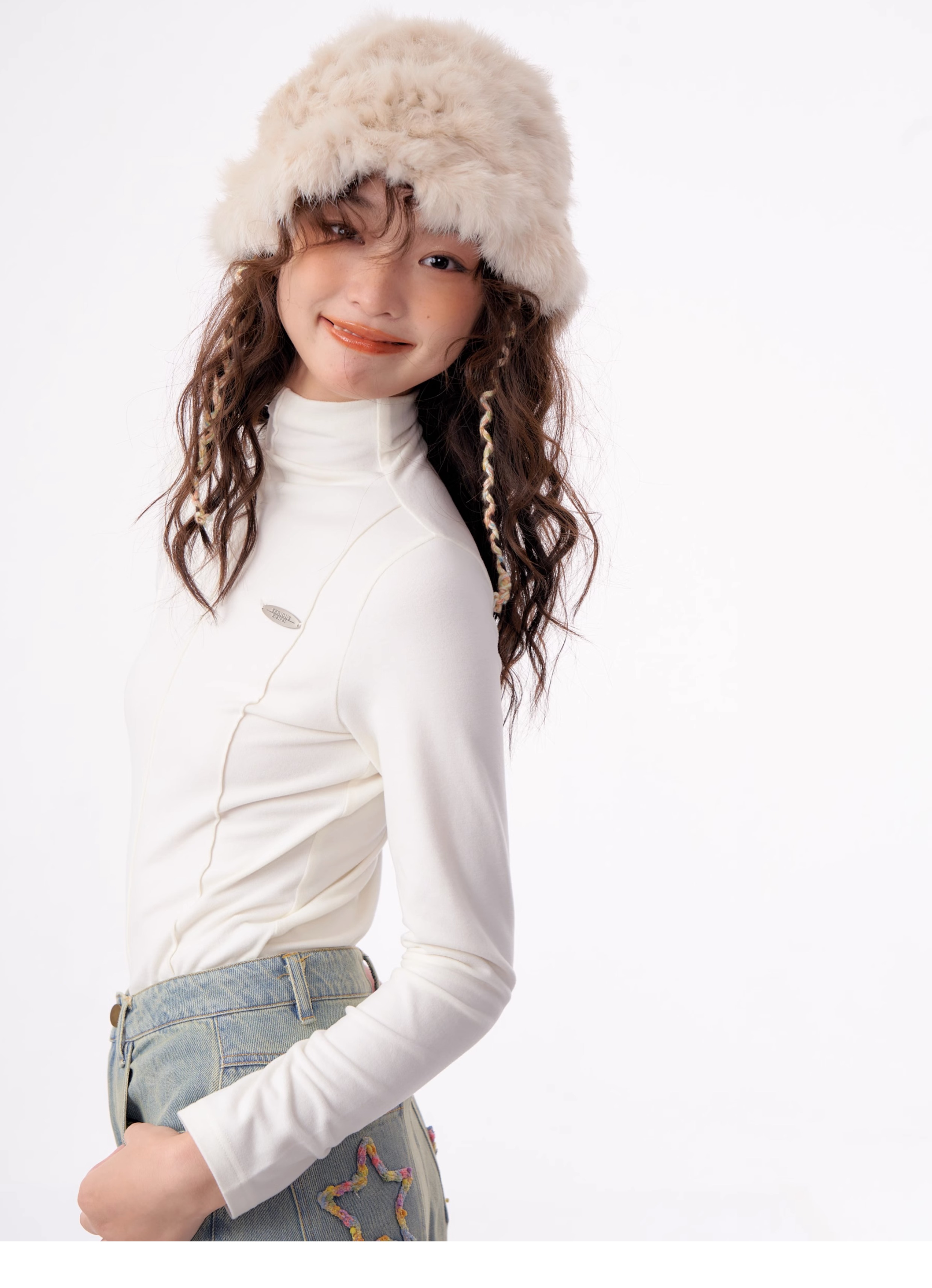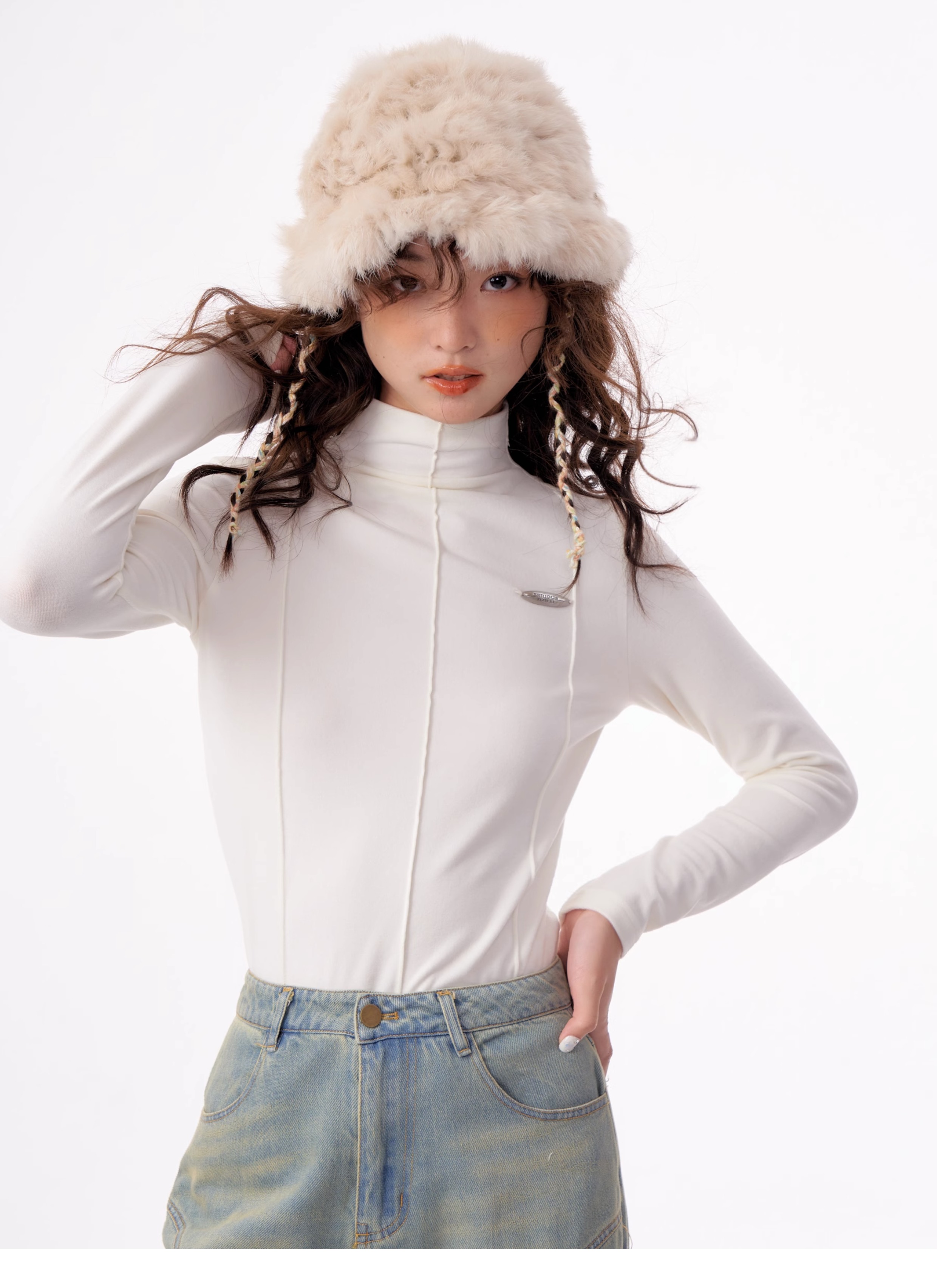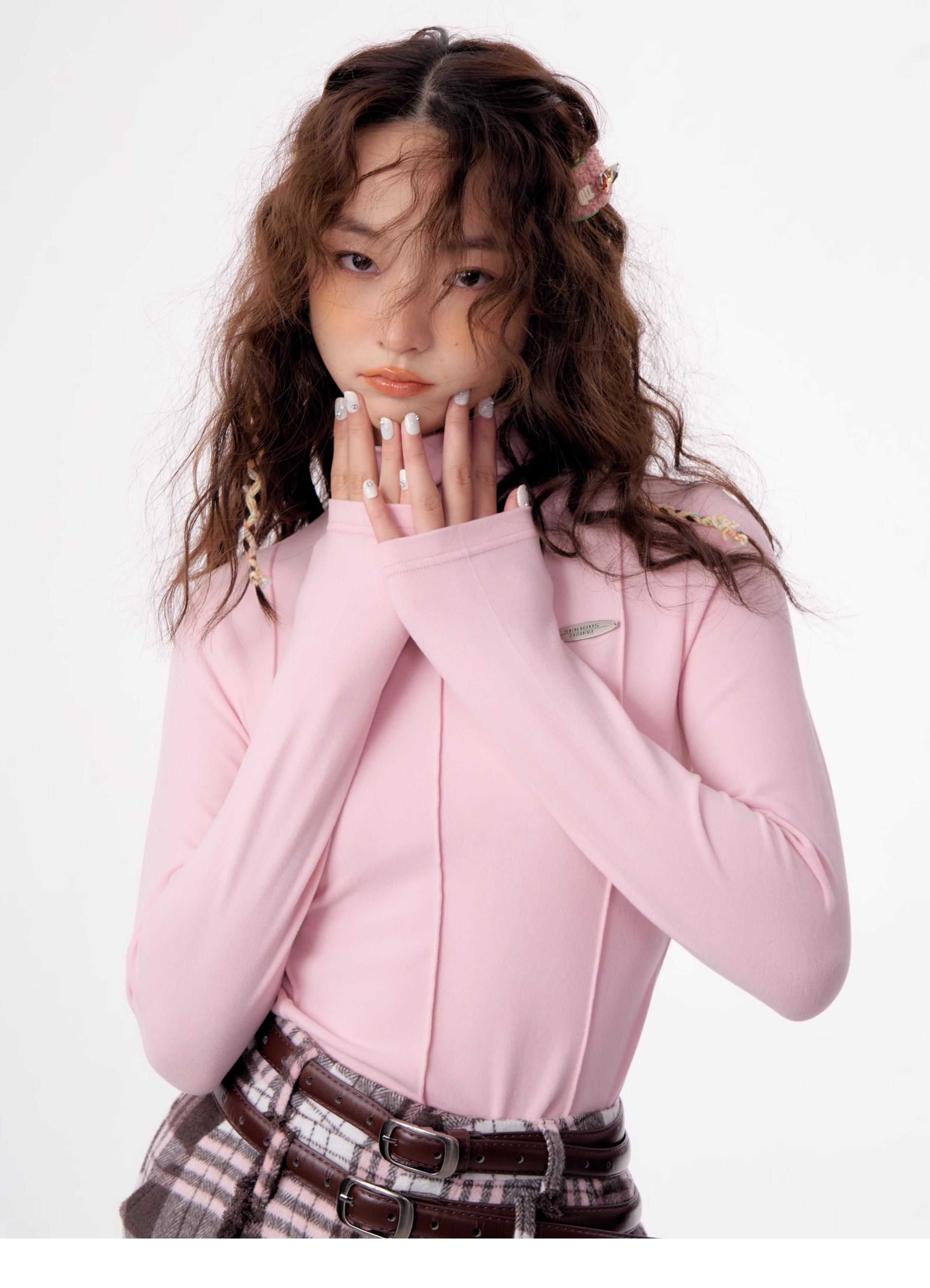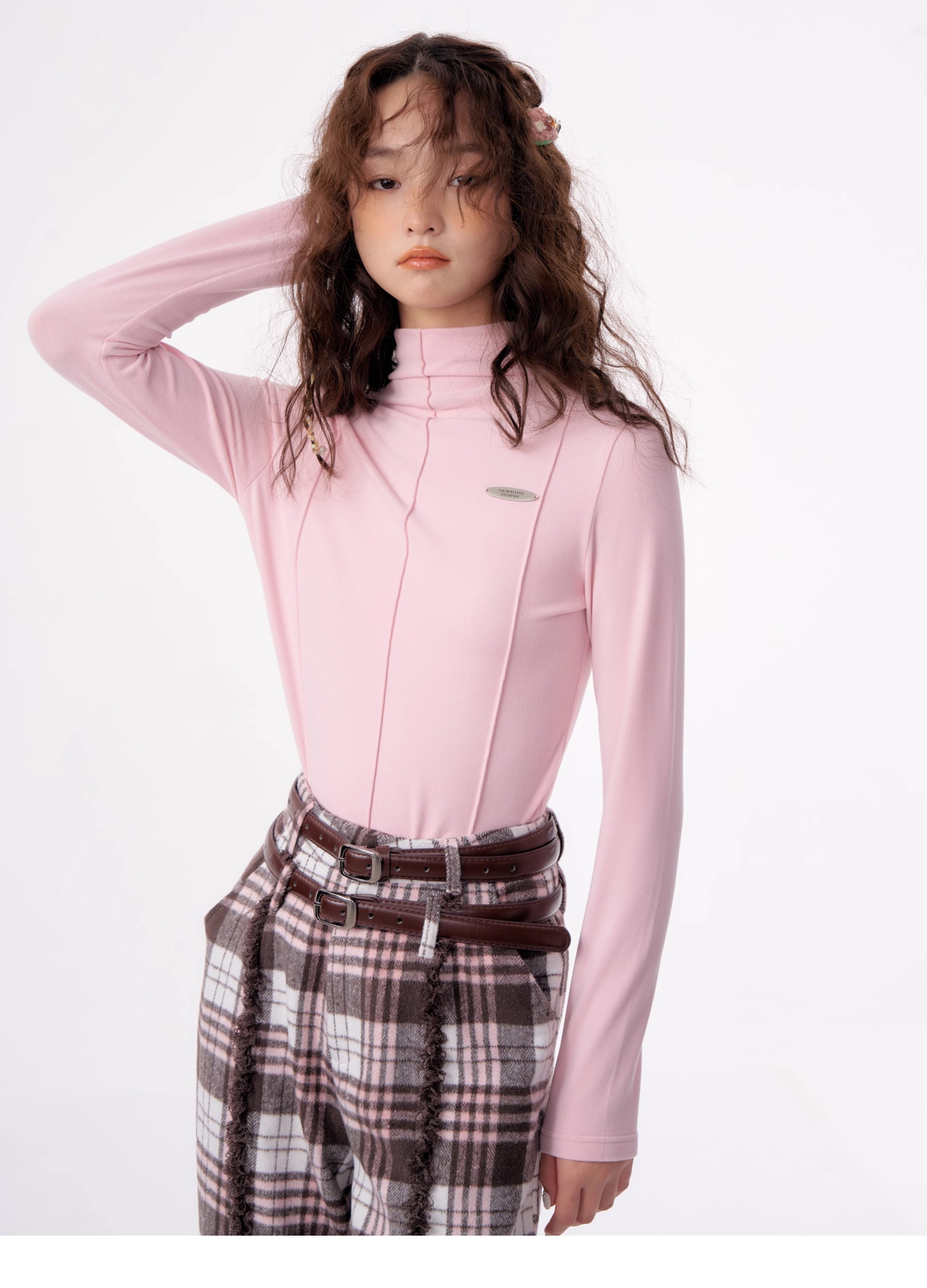Плотный вязаный топ с длинными рукавами | Приталенный крой с высоким воротником в стиле ретро для осени/зимы