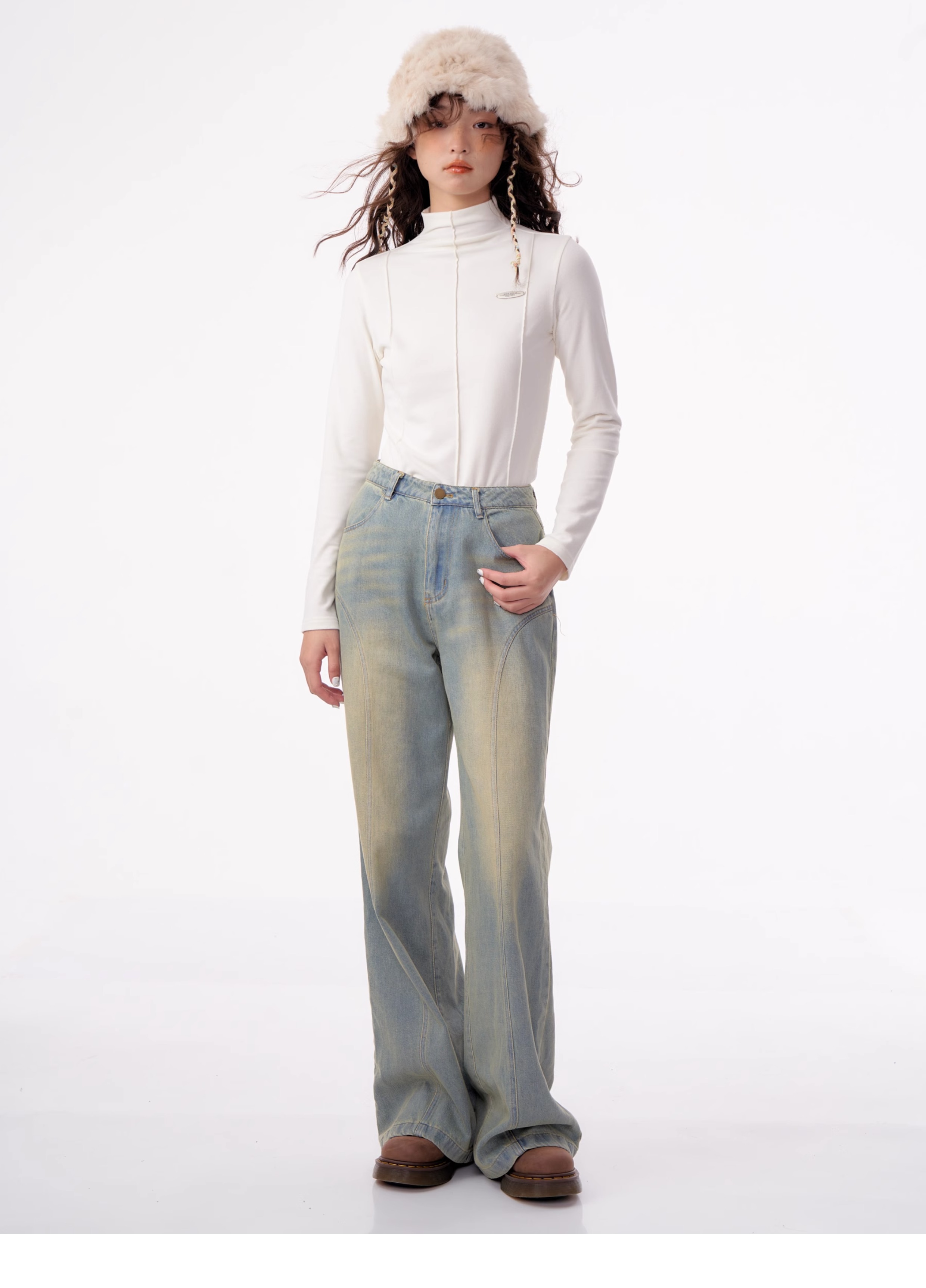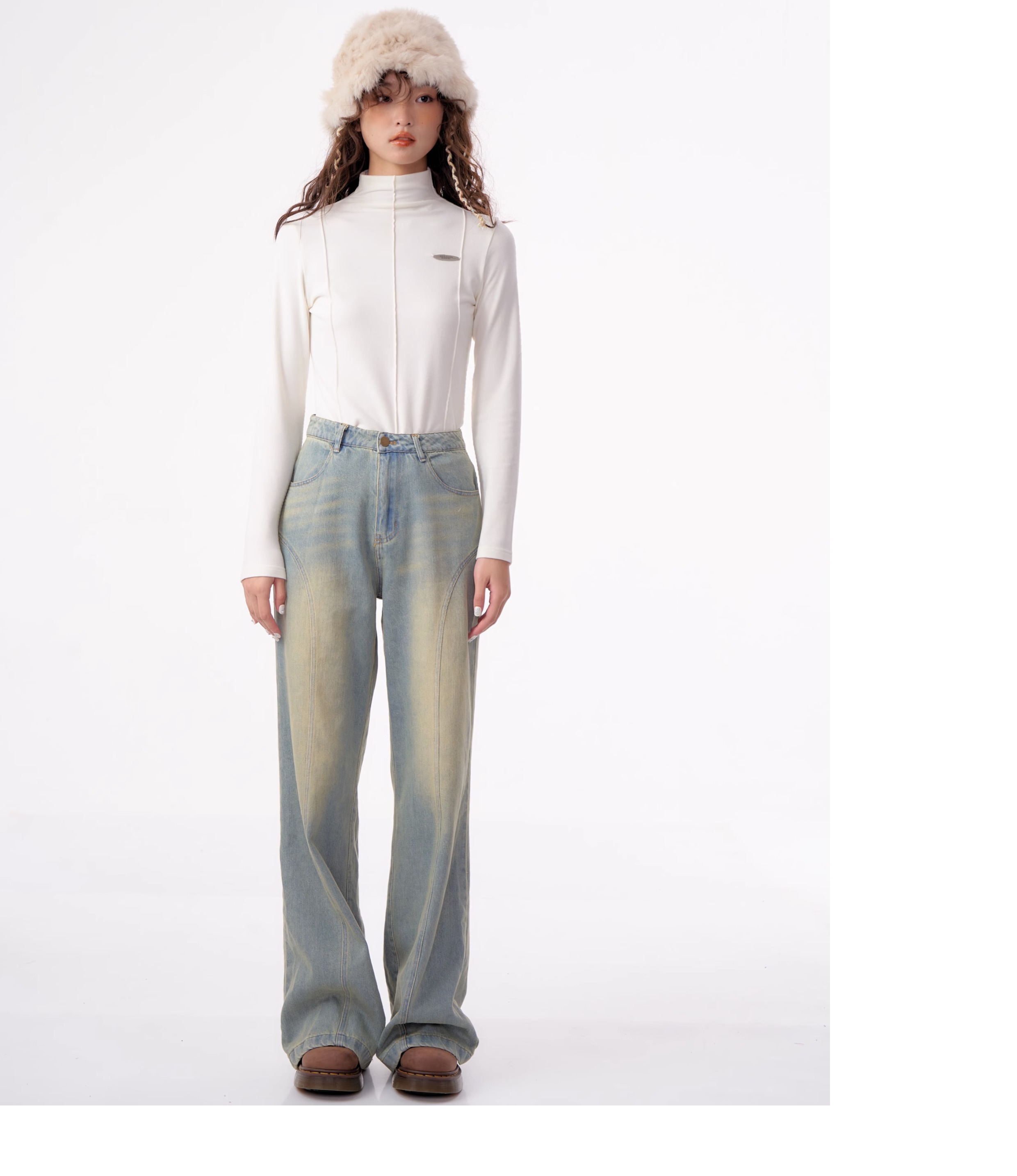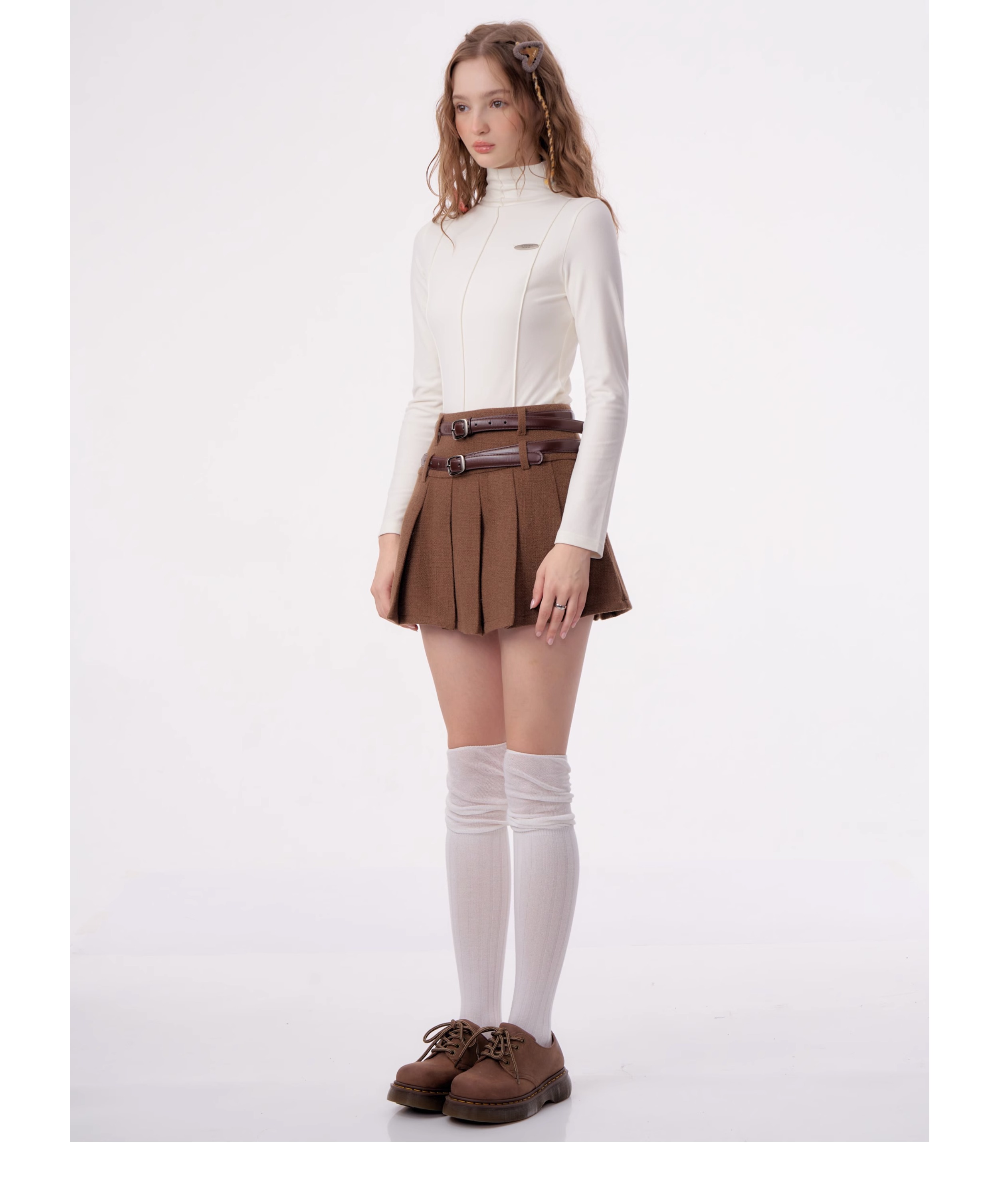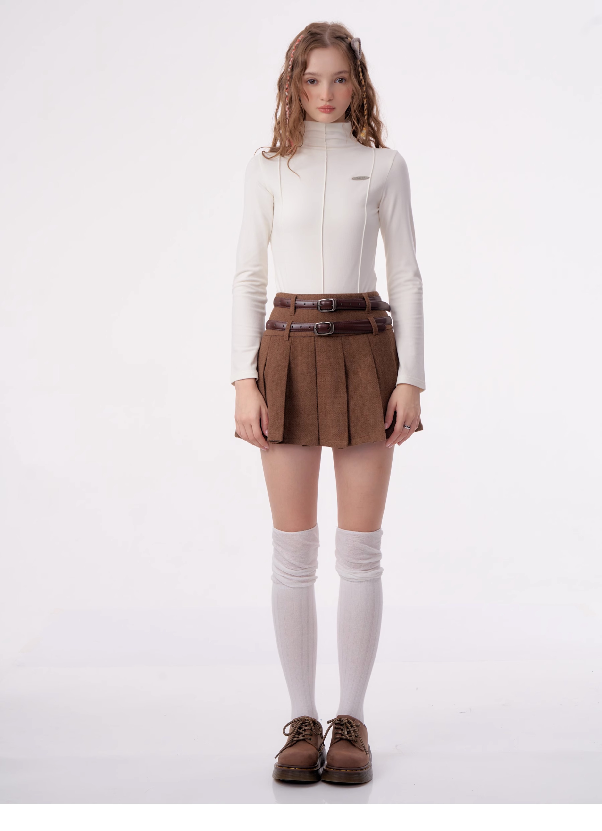 Плотный вязаный топ с длинными рукавами | Приталенный крой с высоким воротником в стиле ретро для осени/зимы