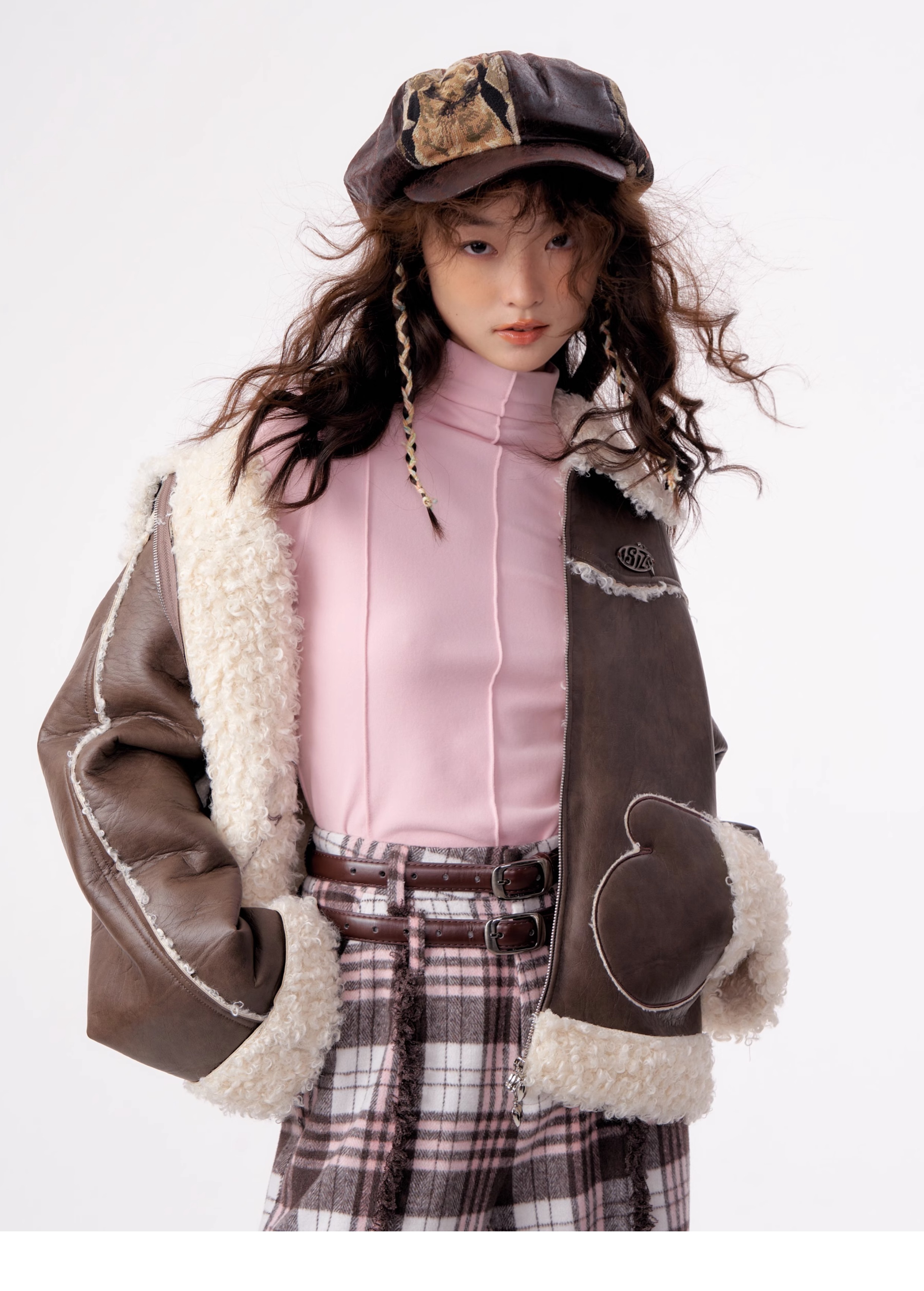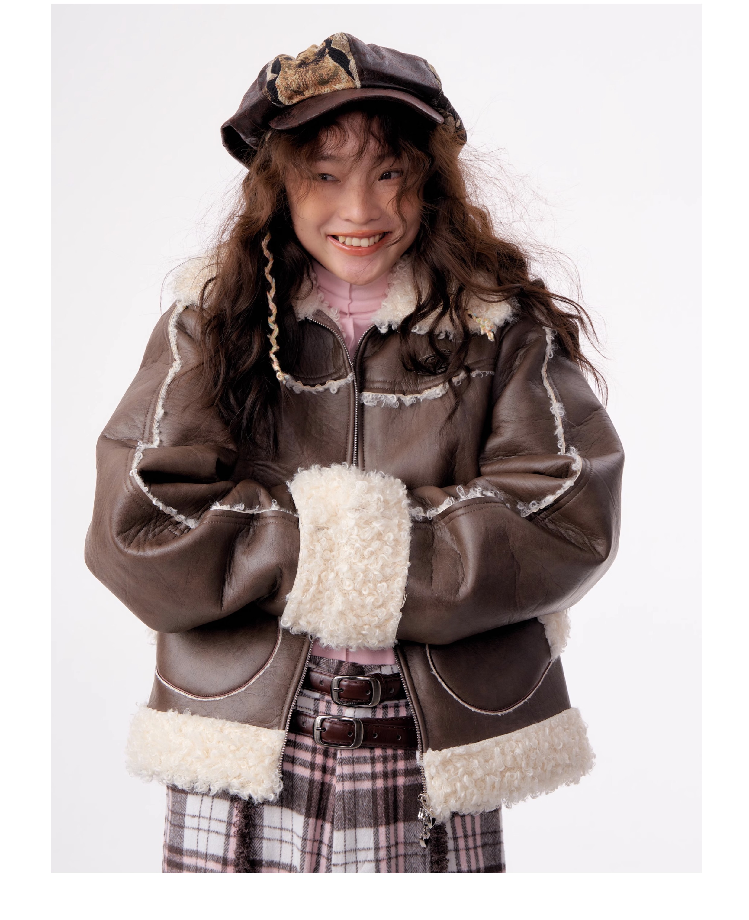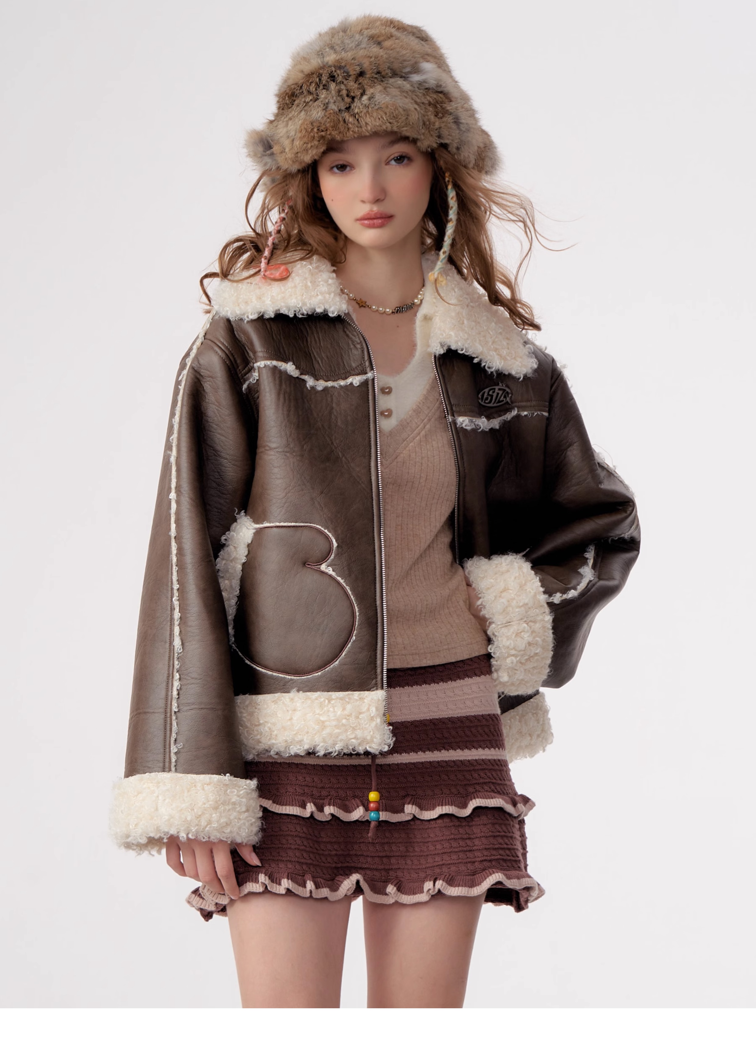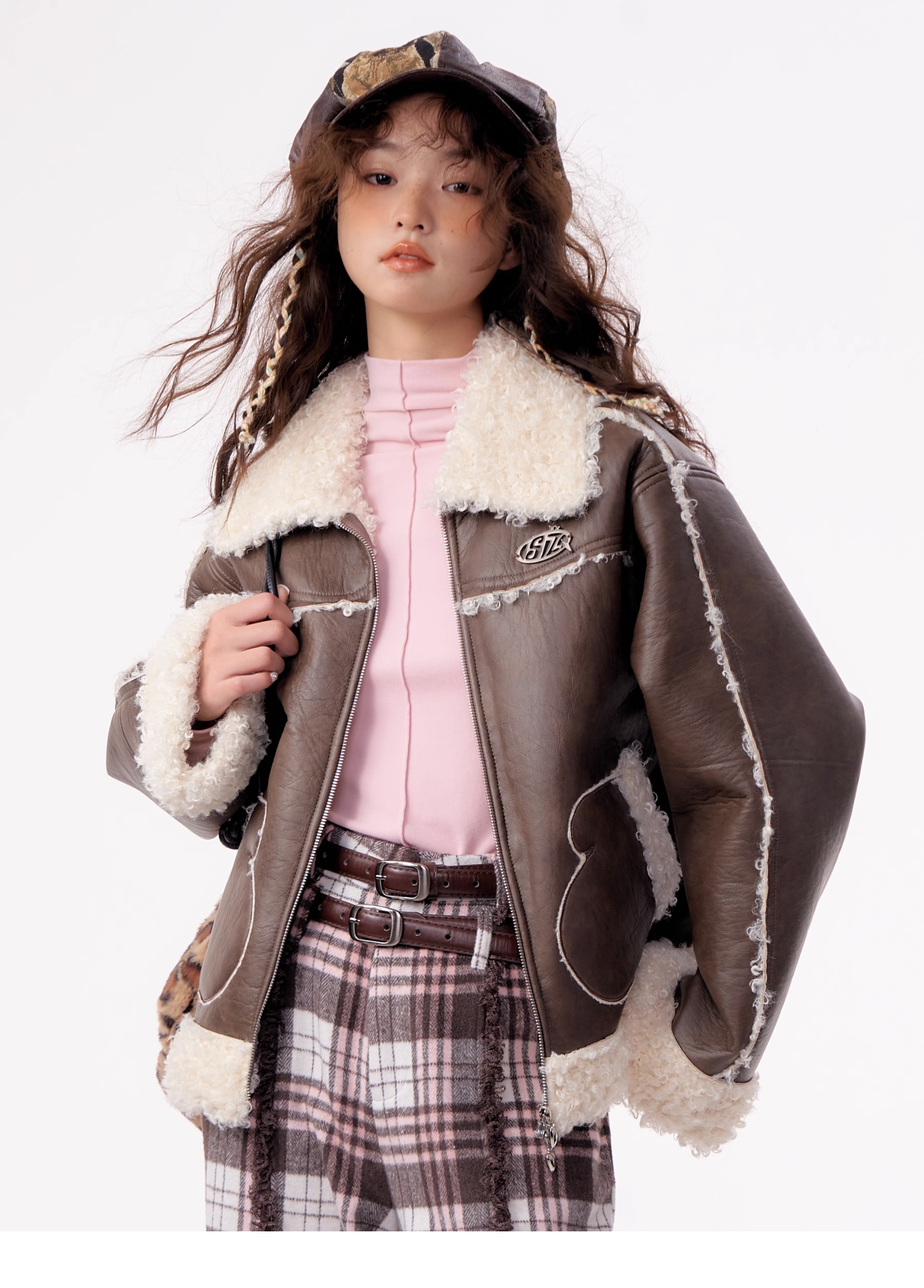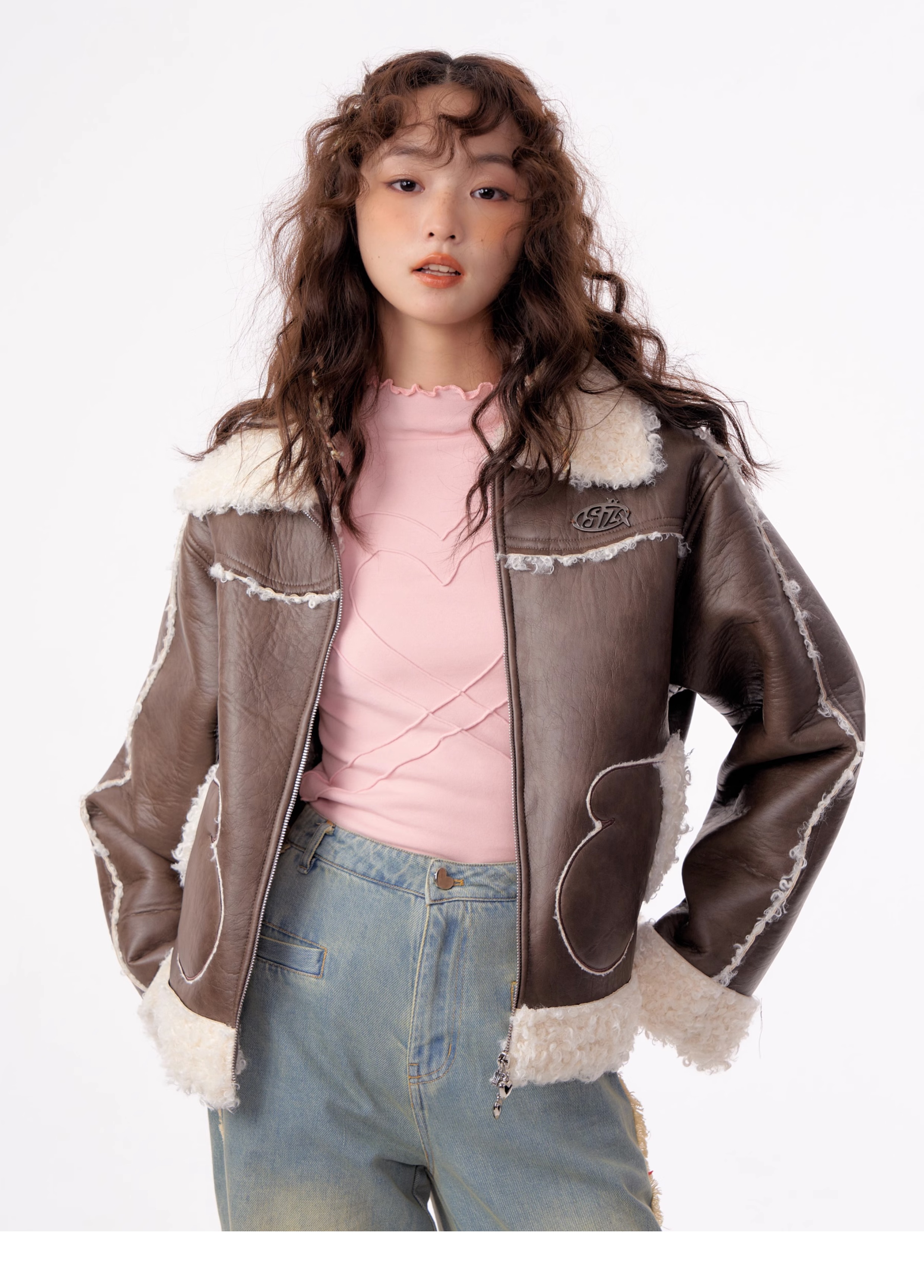 Мотоциклетная куртка из меха ягненка | Толстая ретро-дизайн для осени/зимы