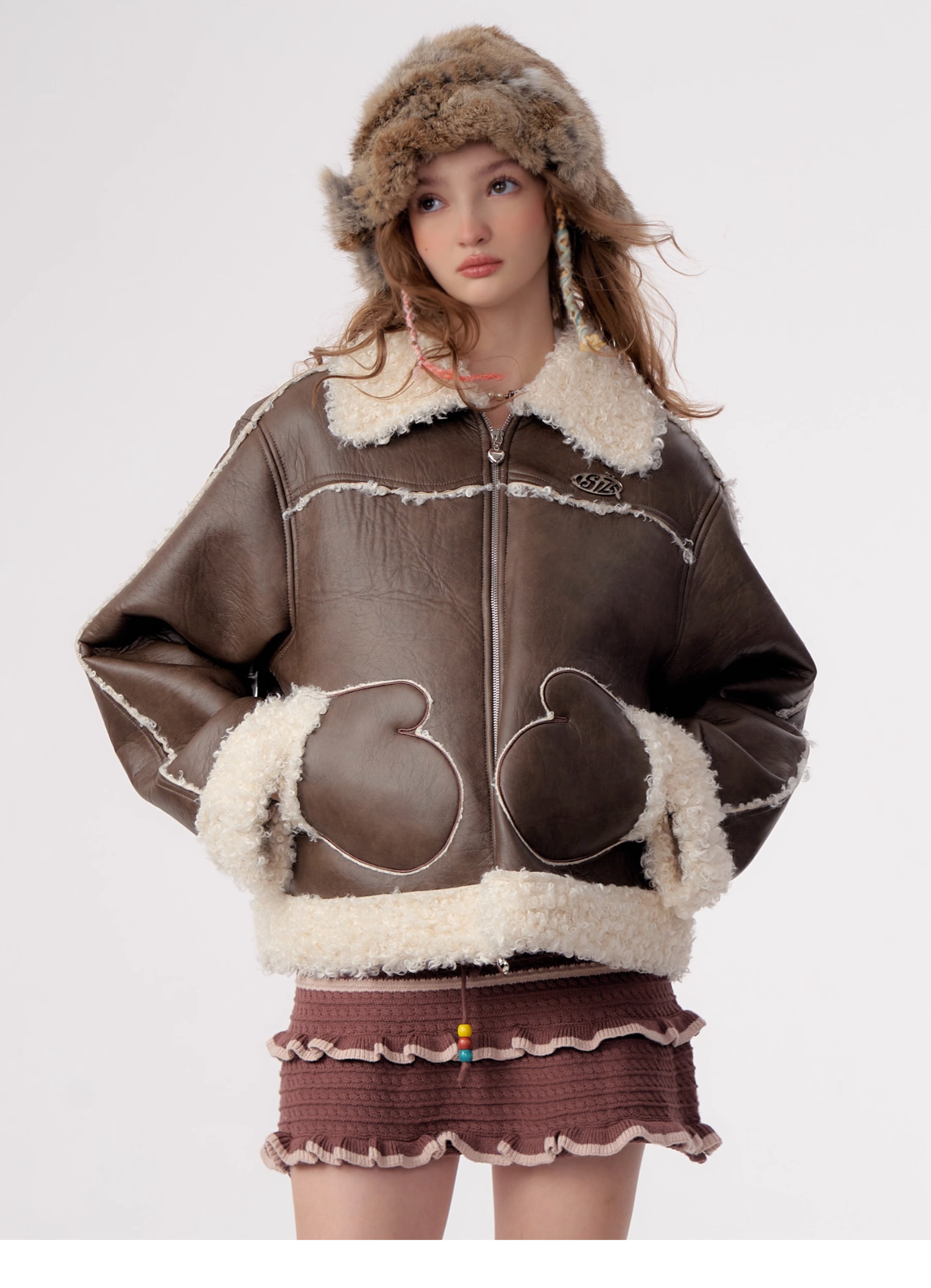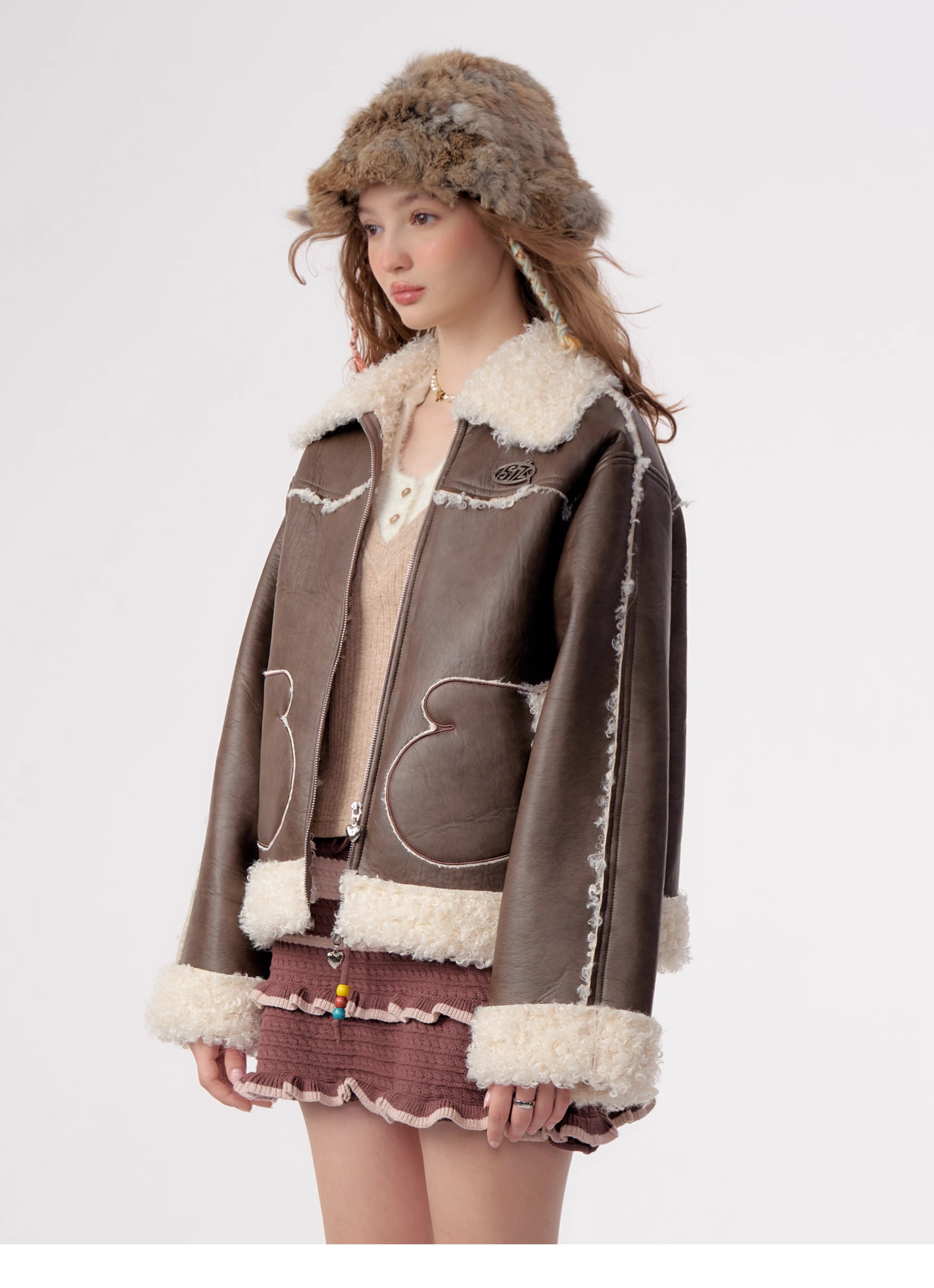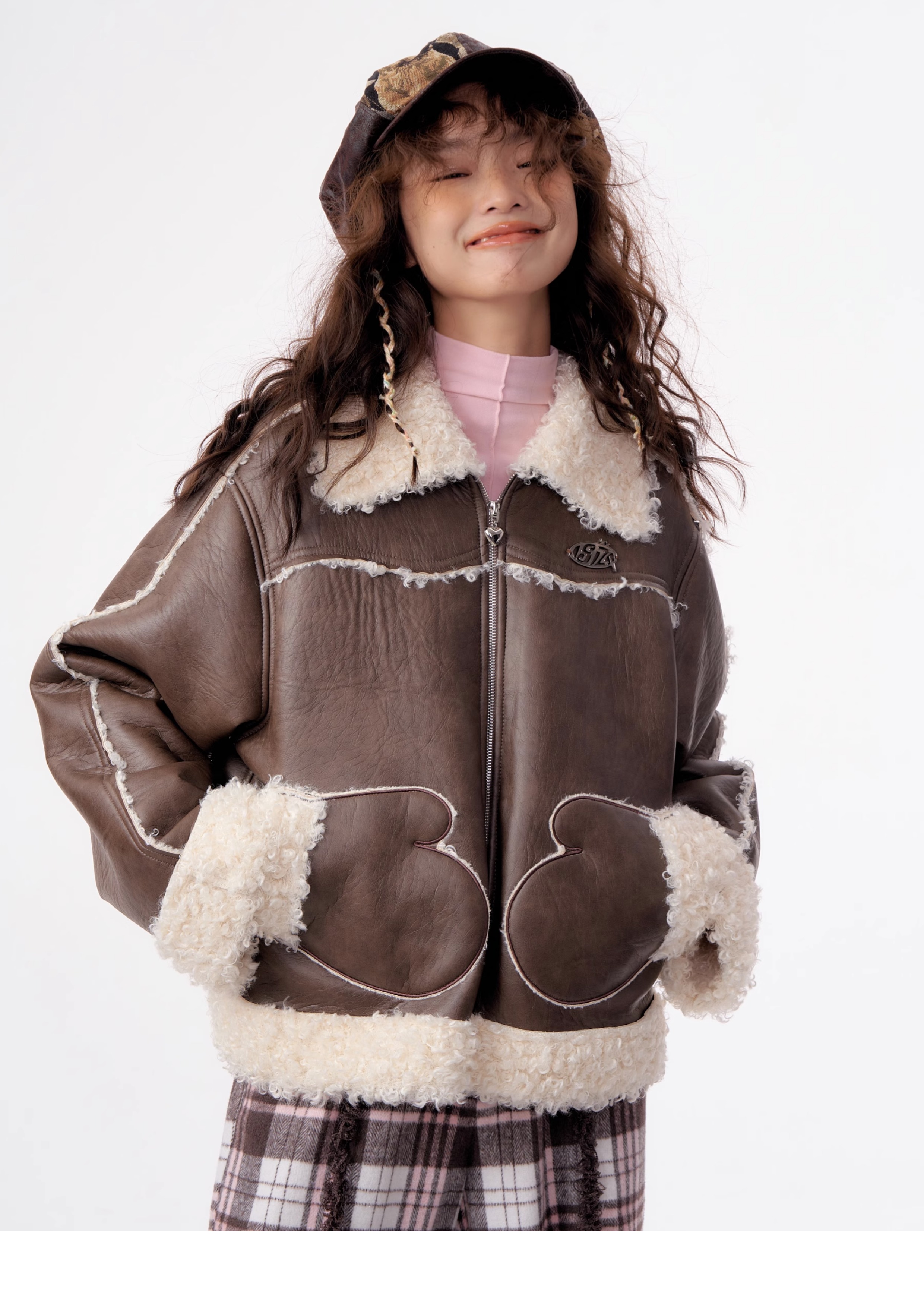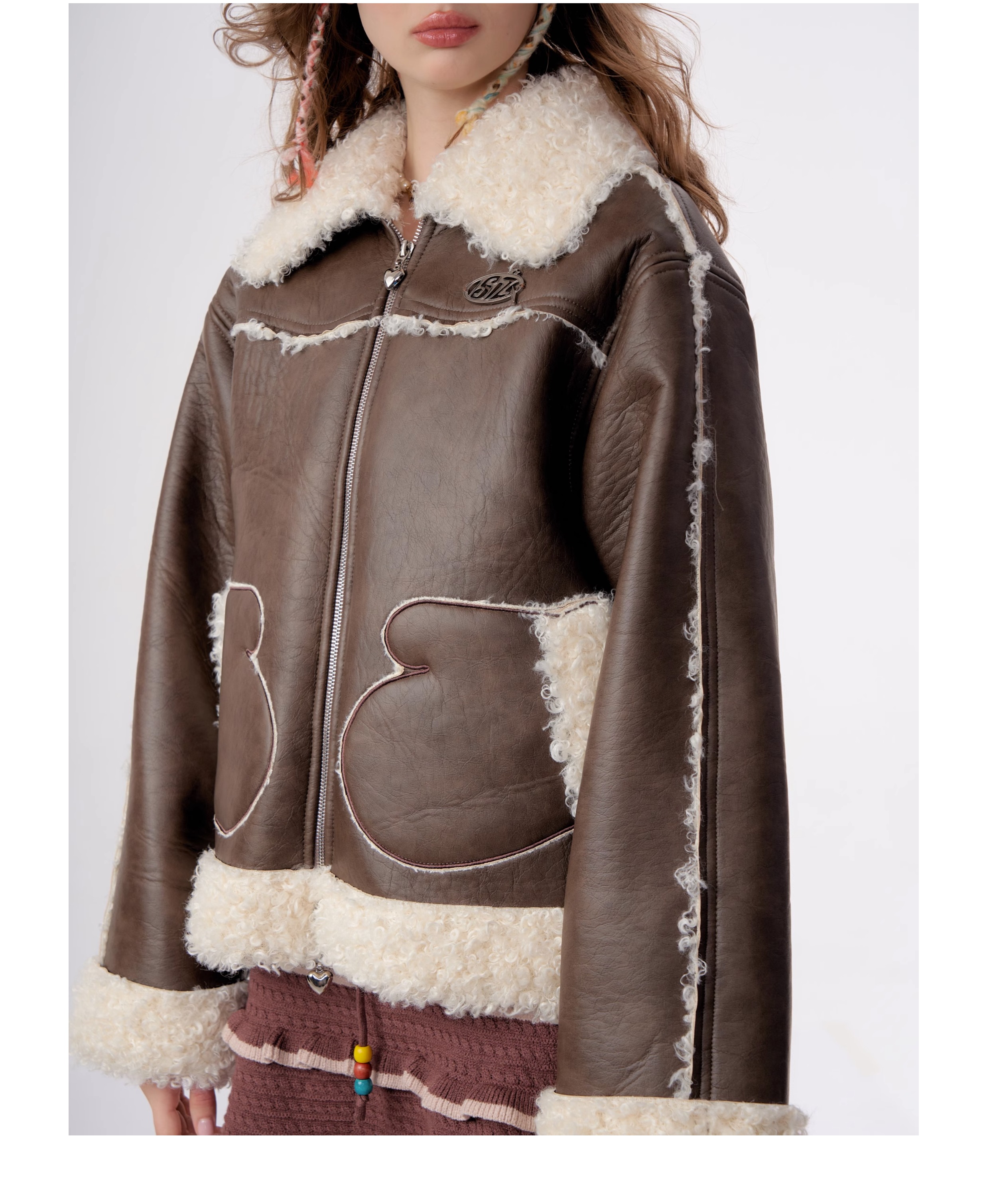 Мотоциклетная куртка из меха ягненка | Толстая ретро-дизайн для осени/зимы