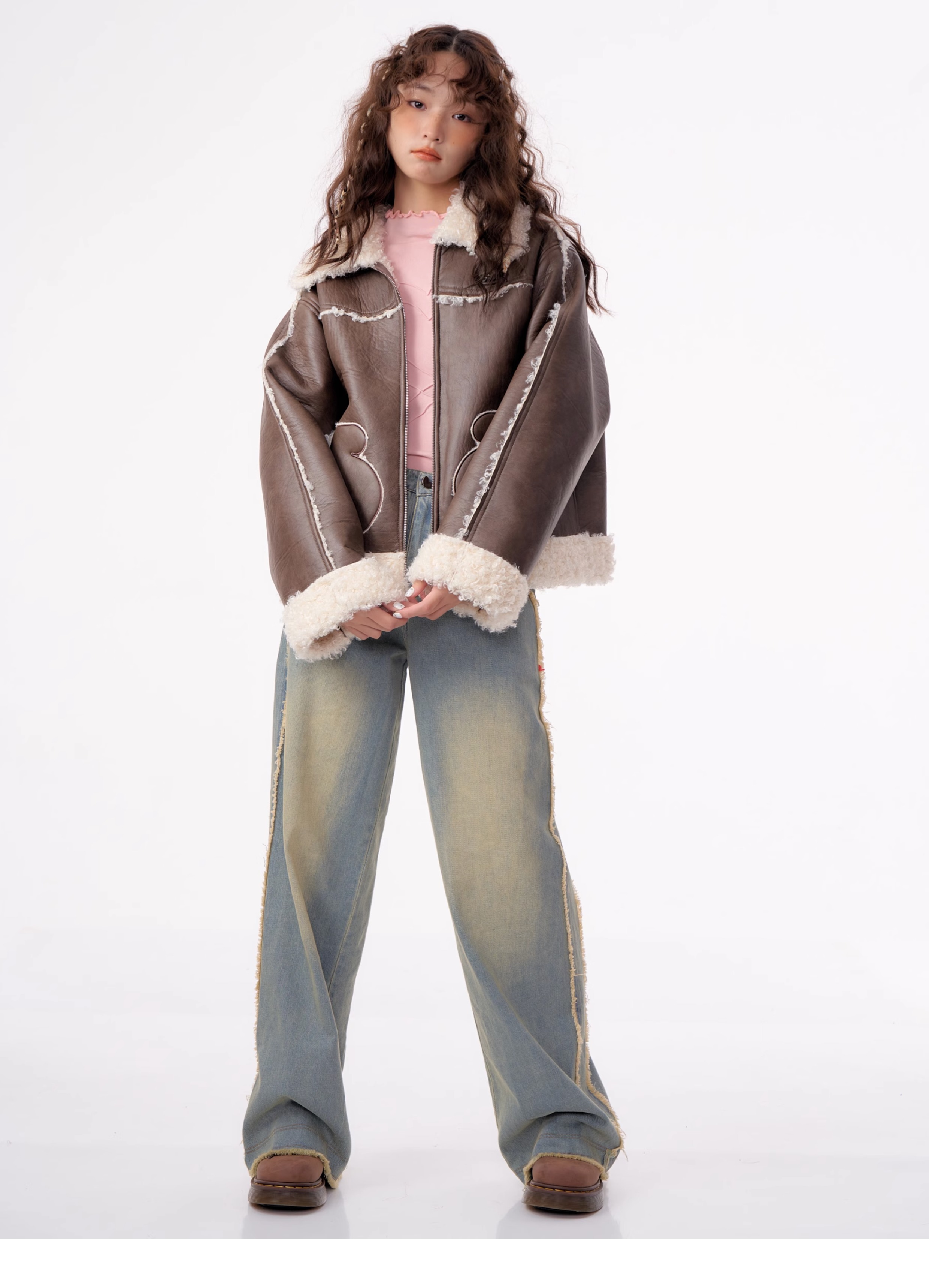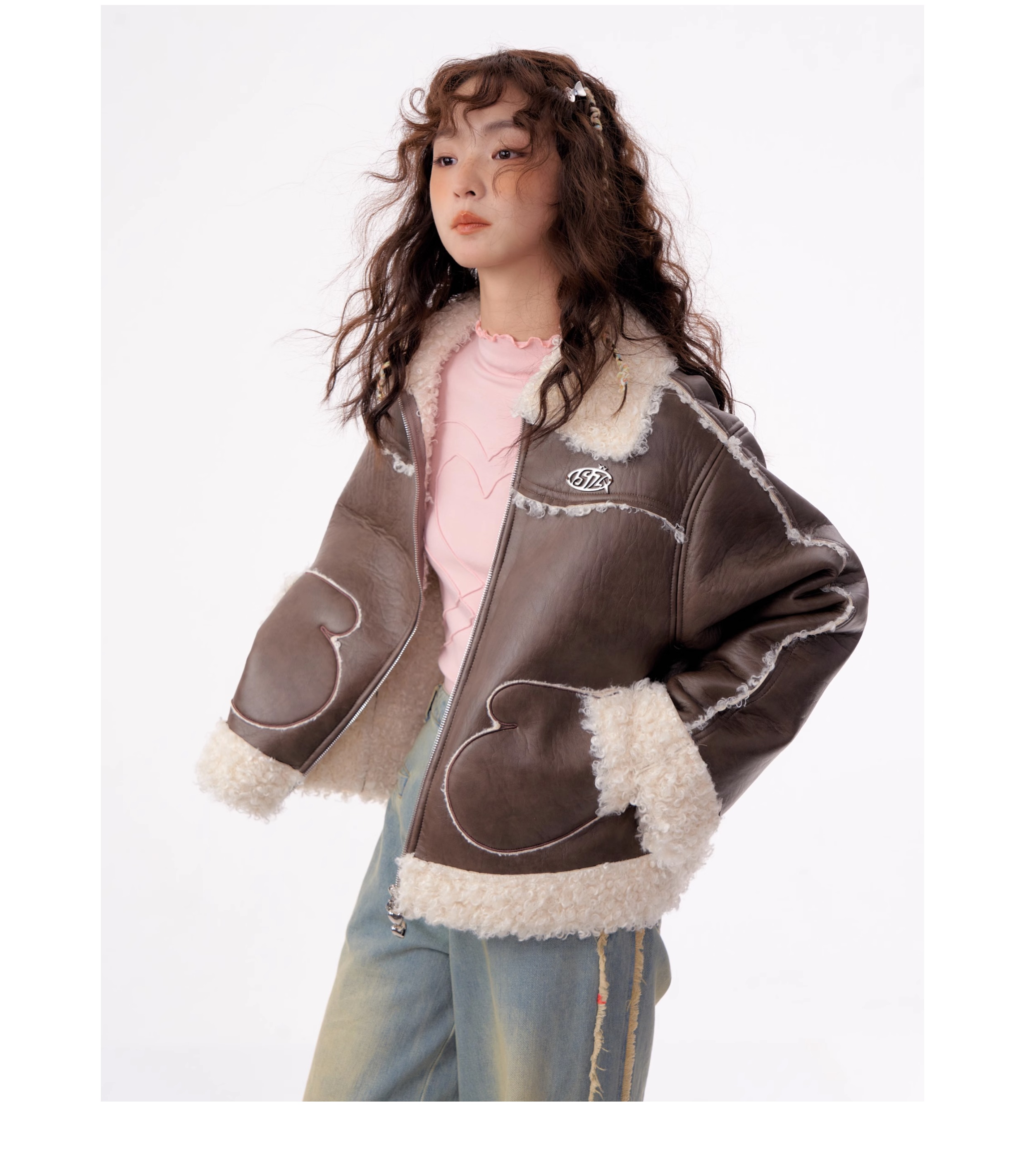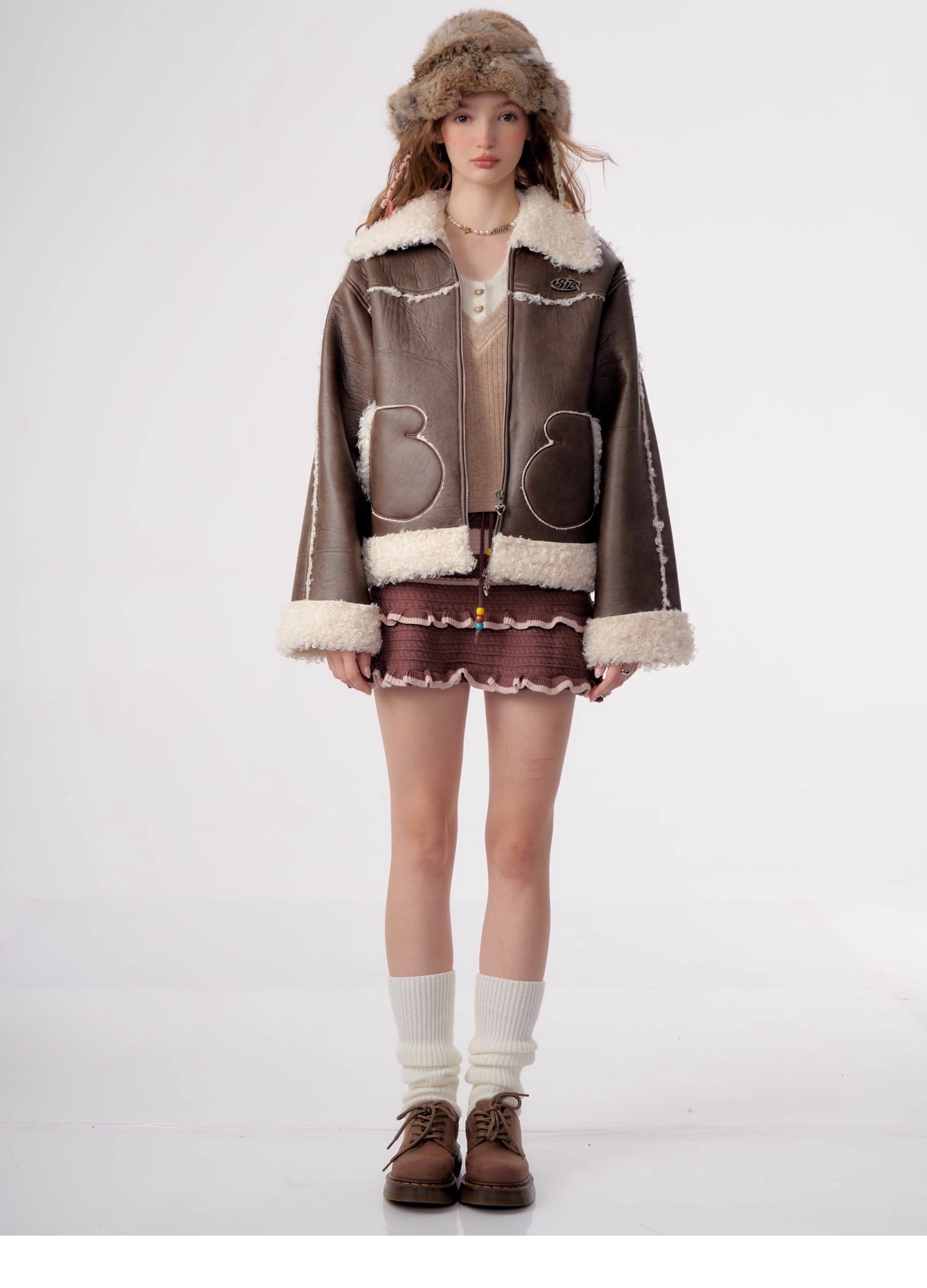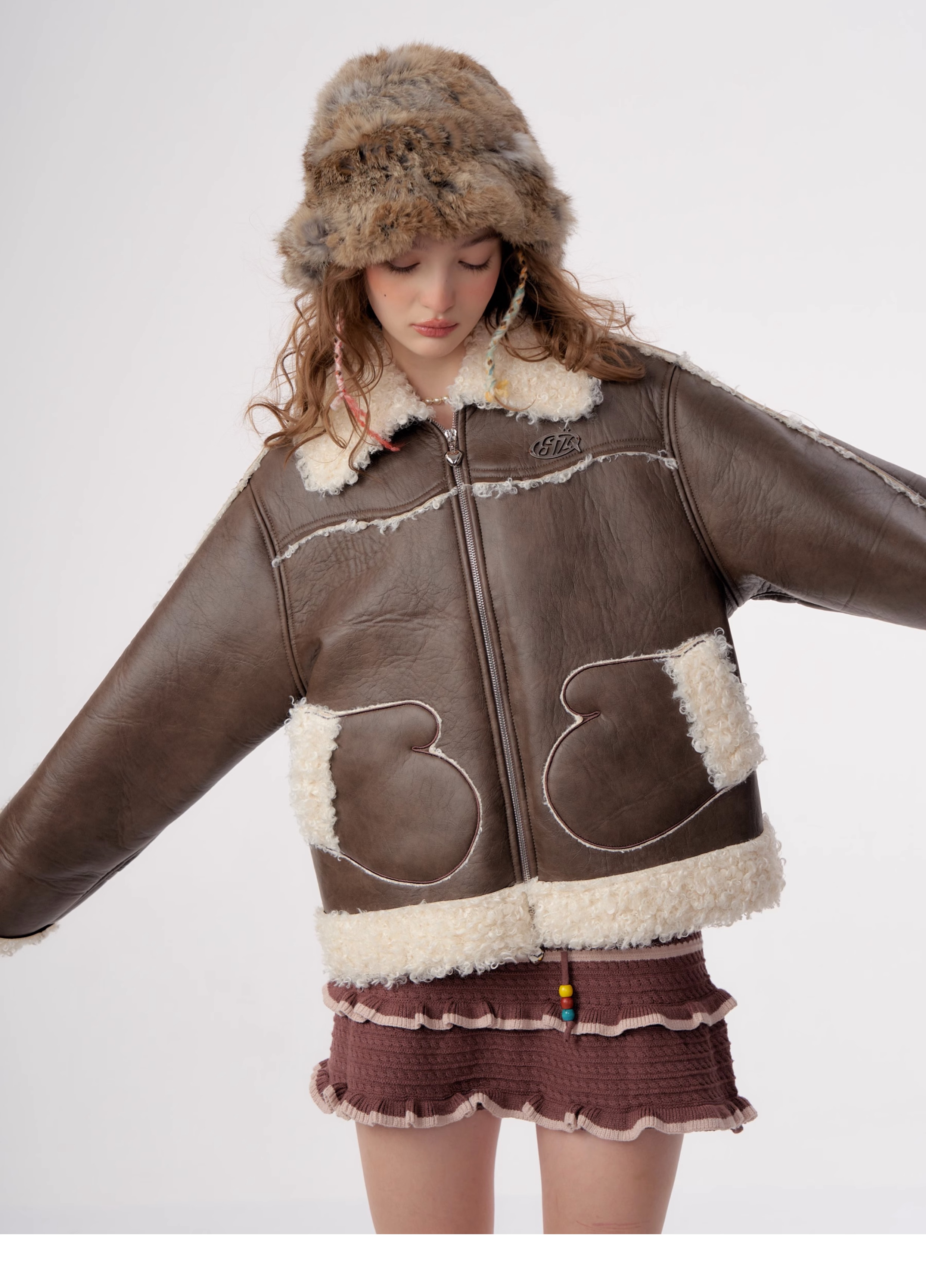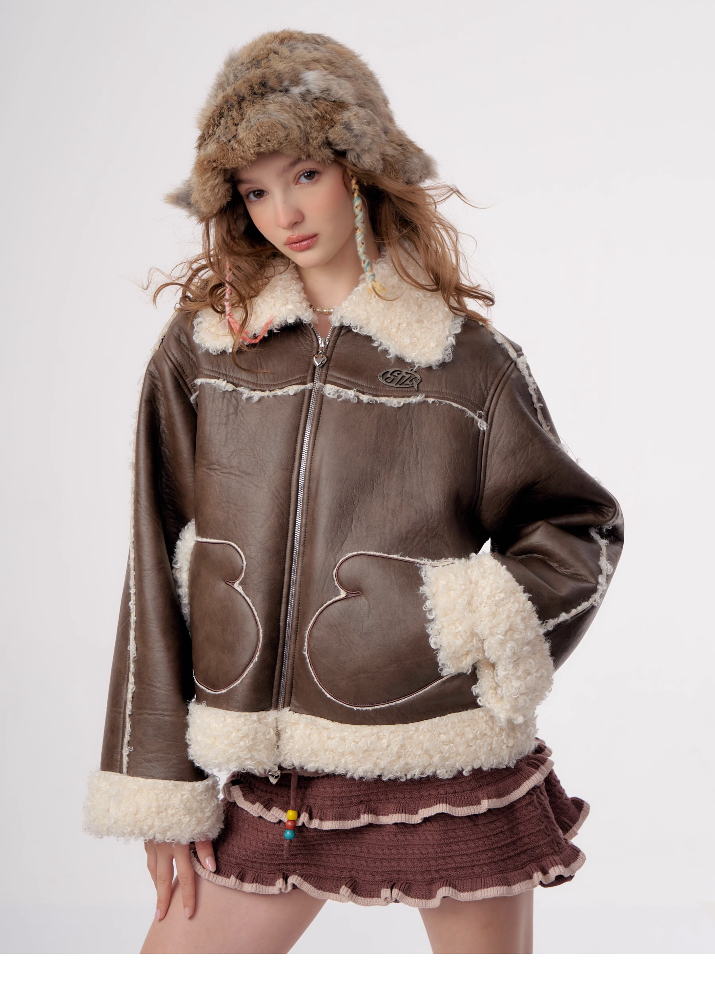 Мотоциклетная куртка из меха ягненка | Толстая ретро-дизайн для осени/зимы