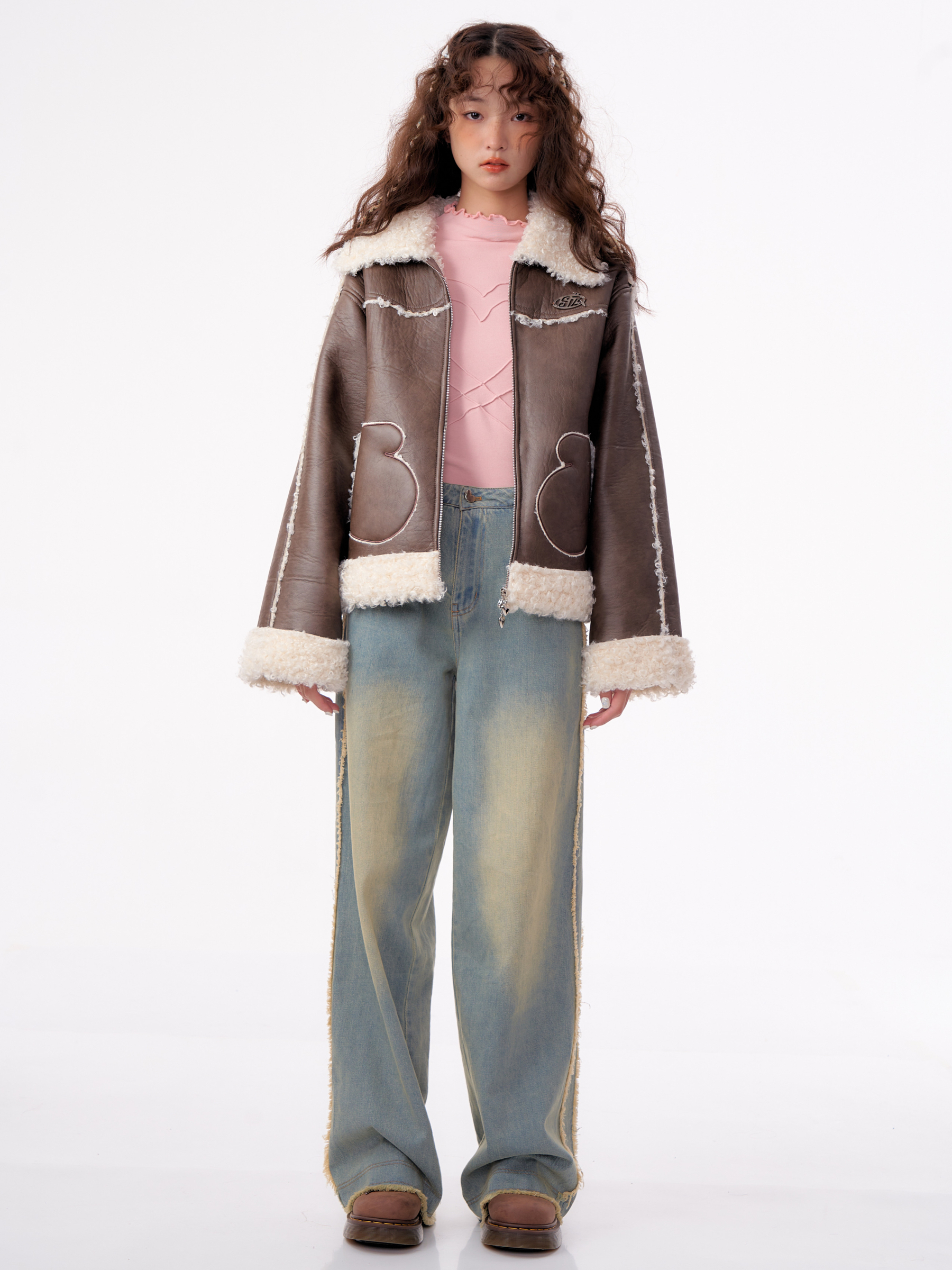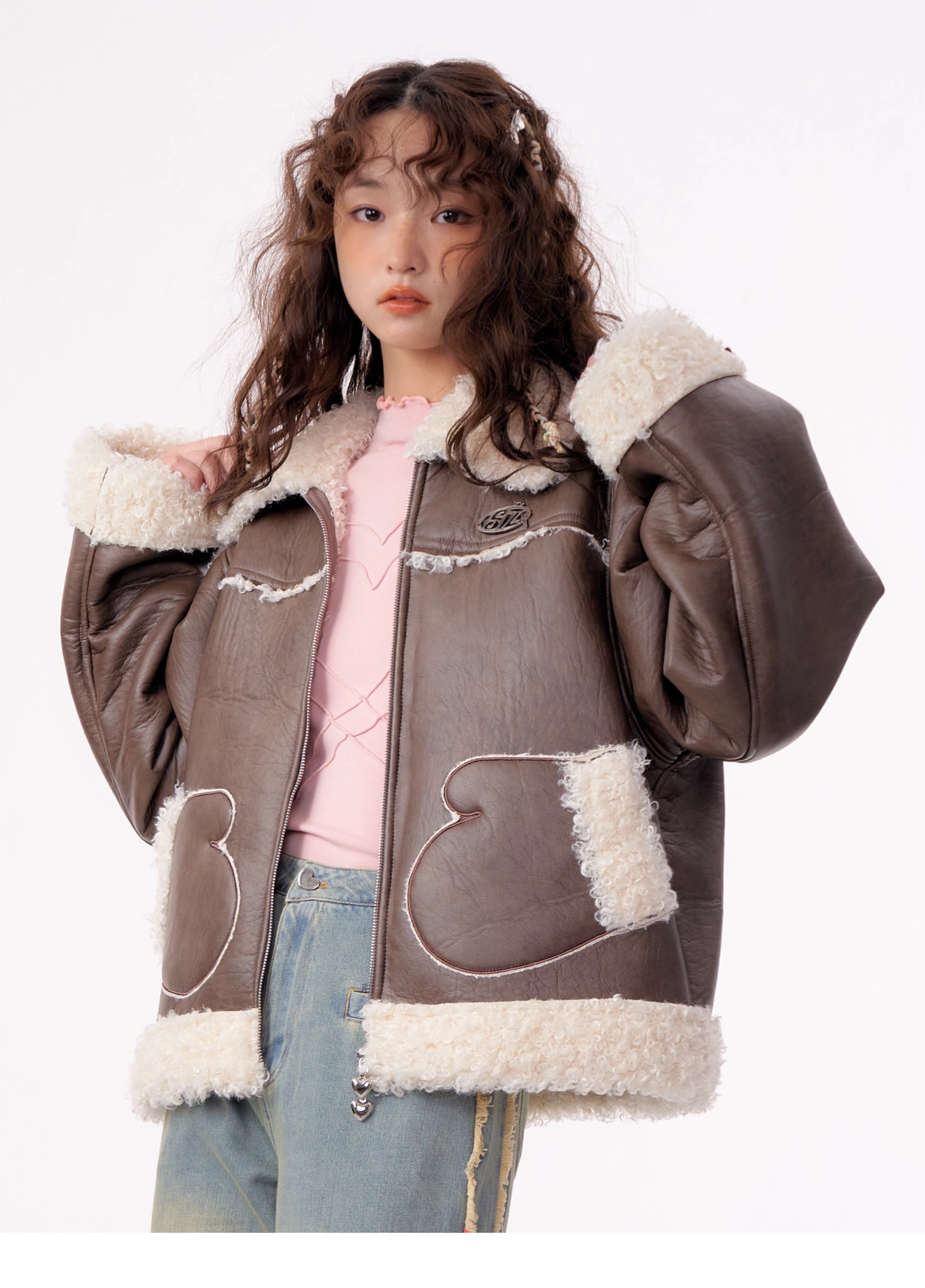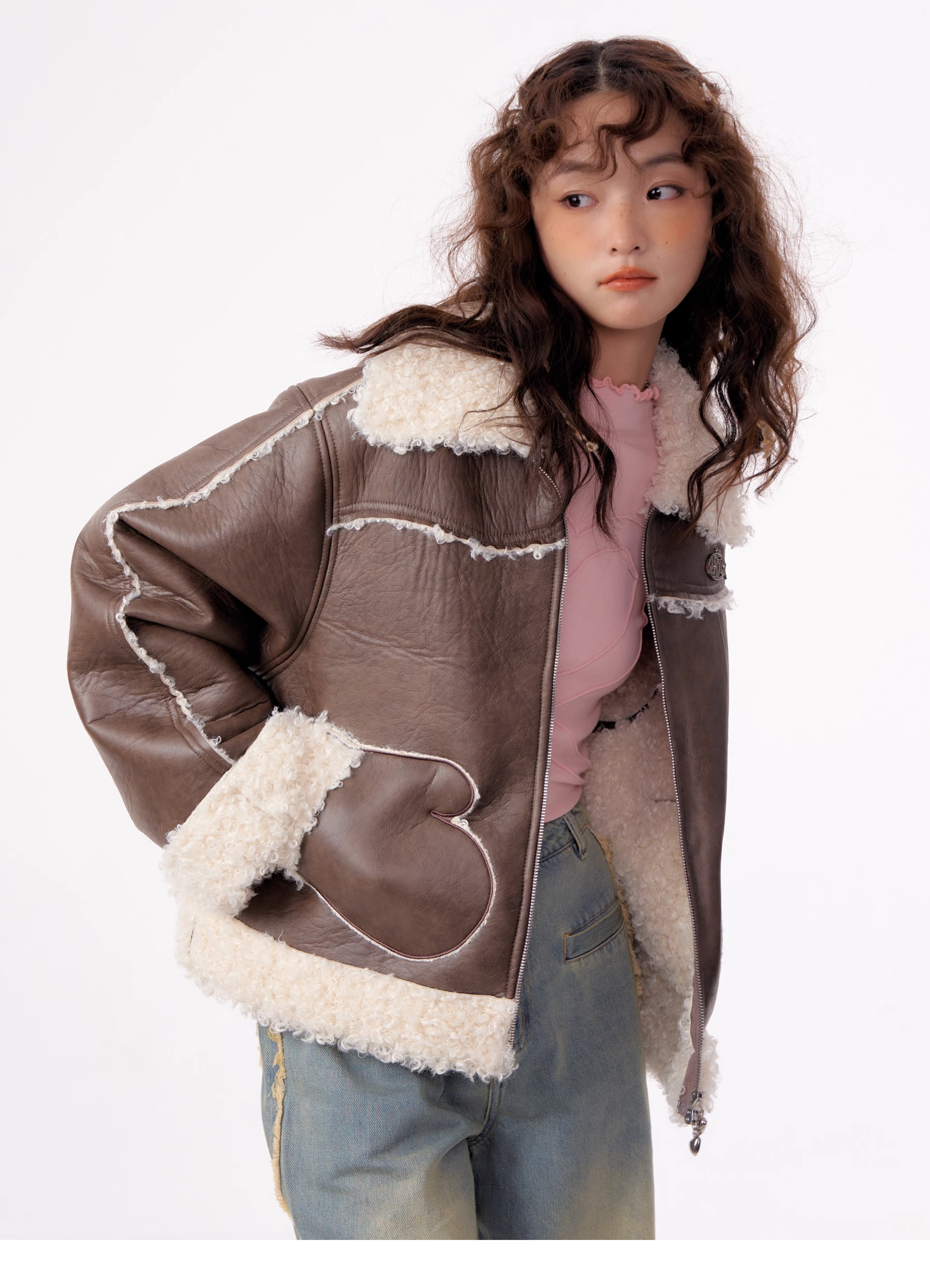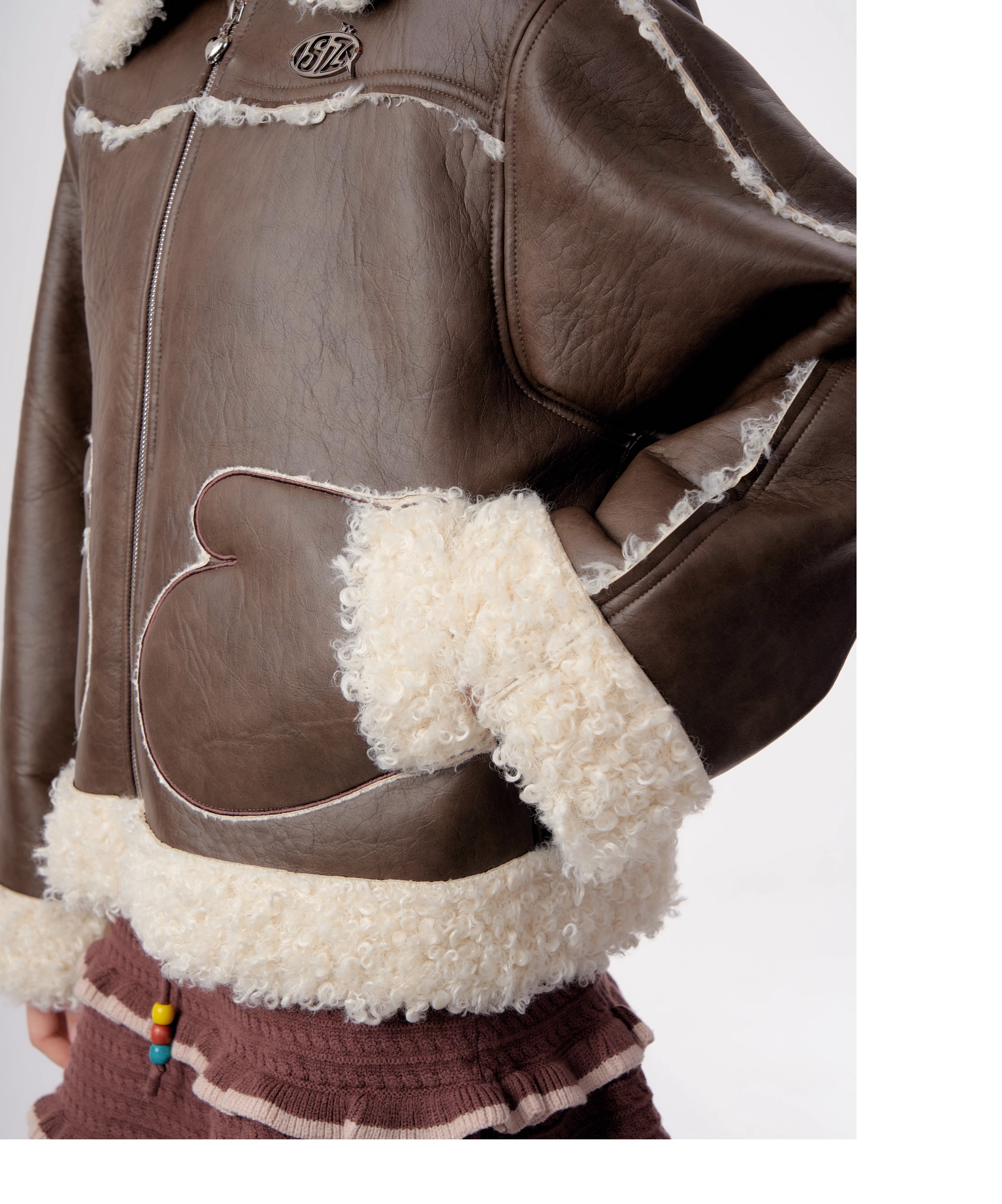 Мотоциклетная куртка из меха ягненка | Толстая ретро-дизайн для осени/зимы