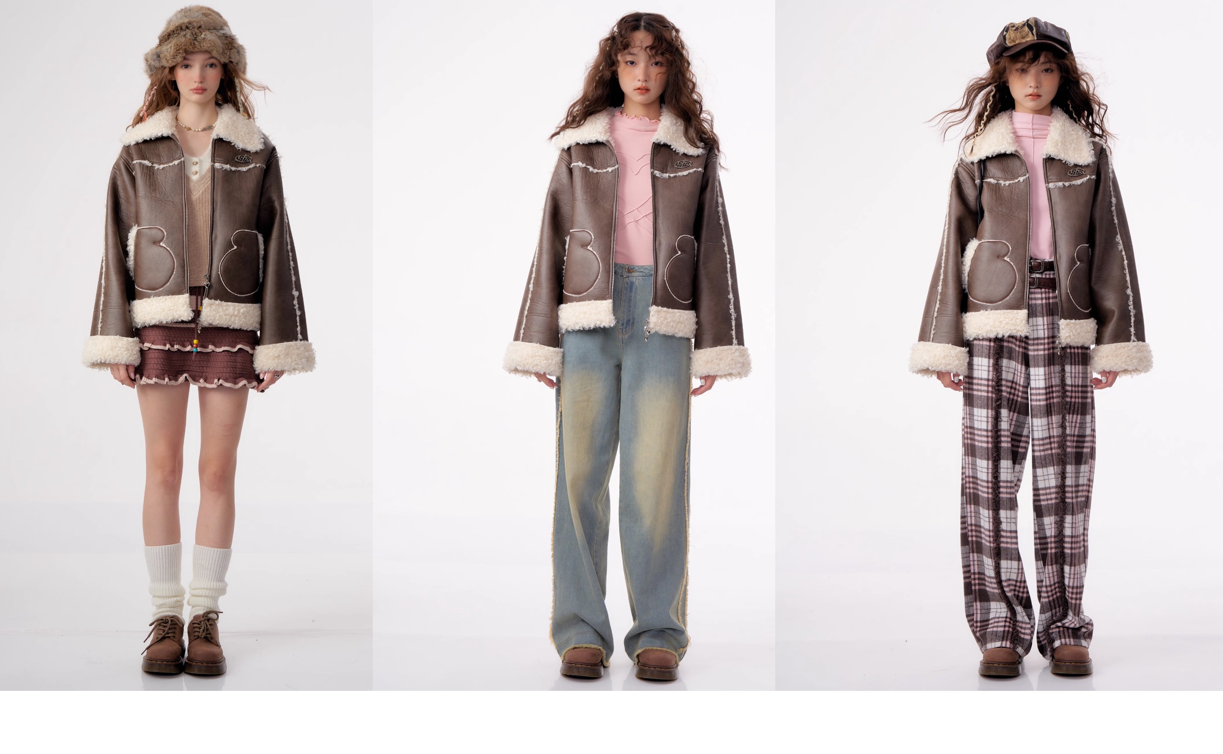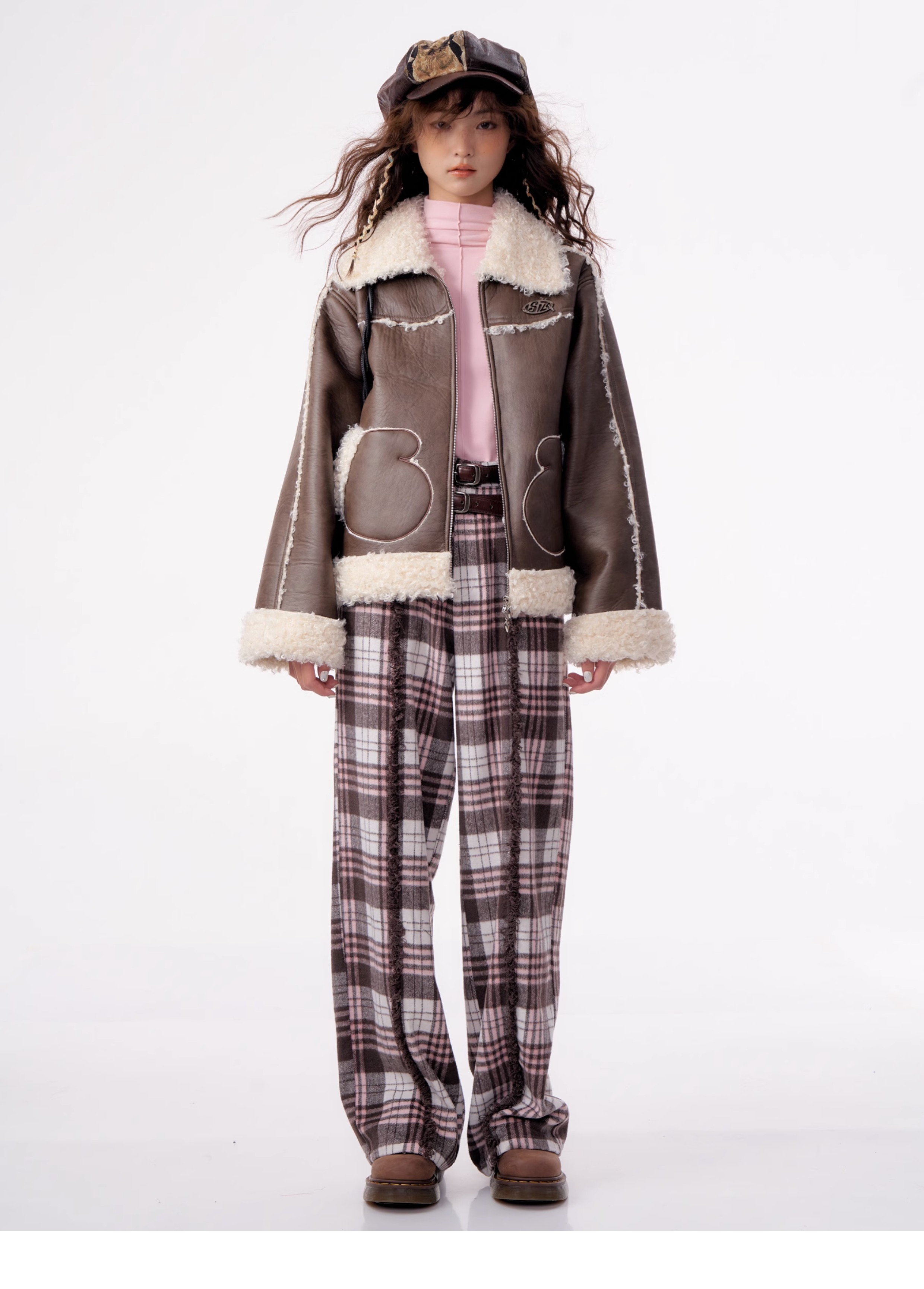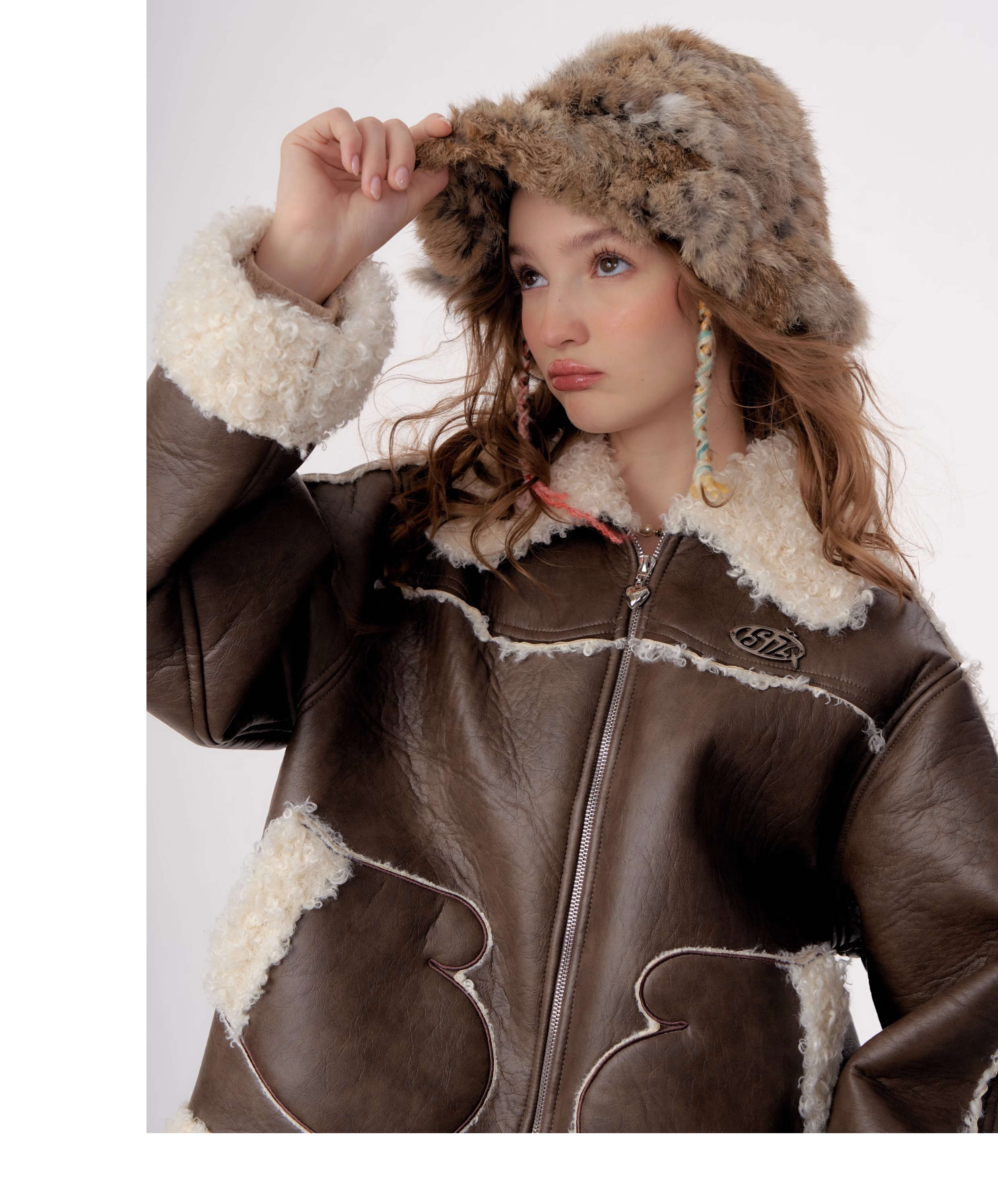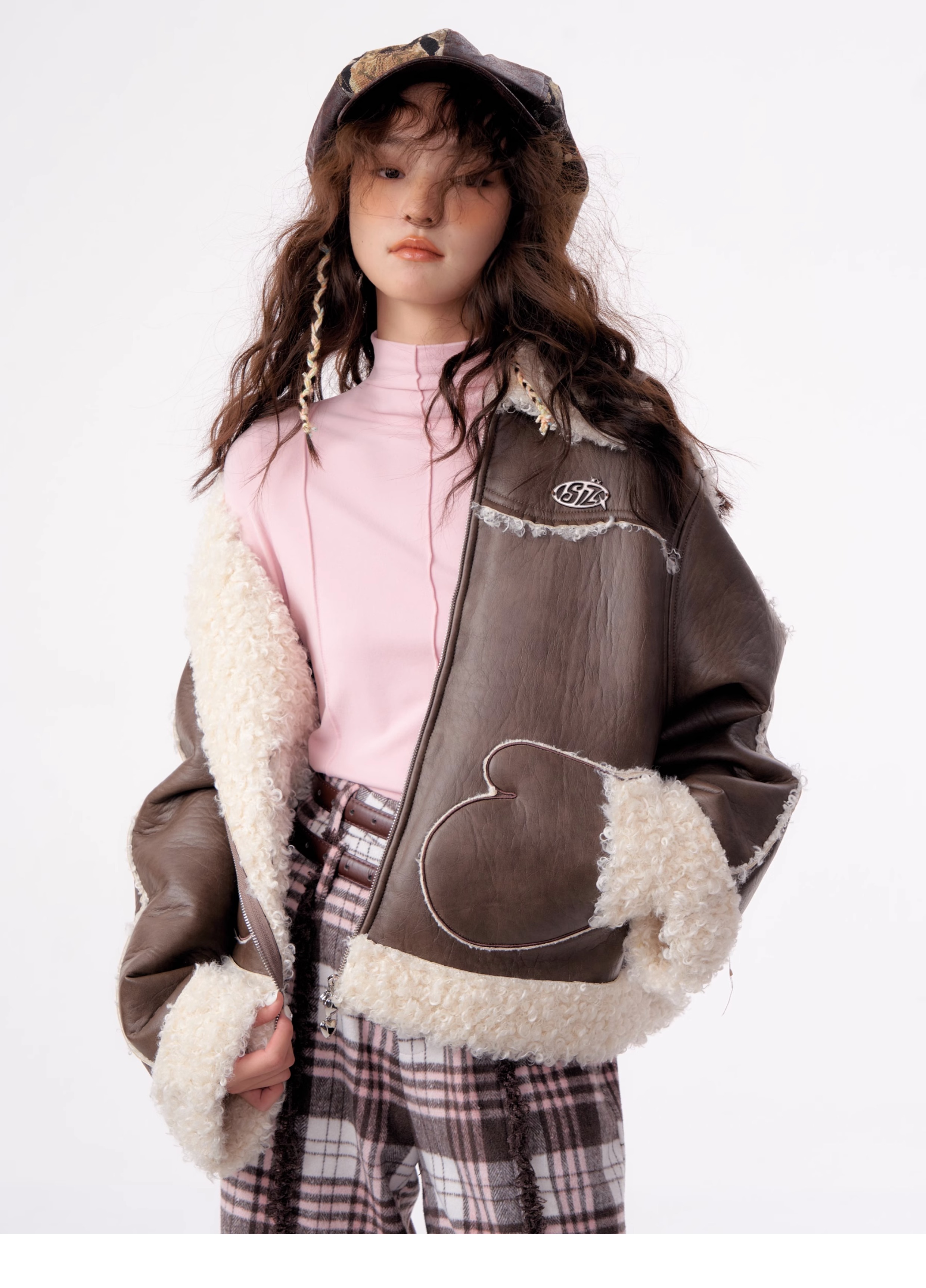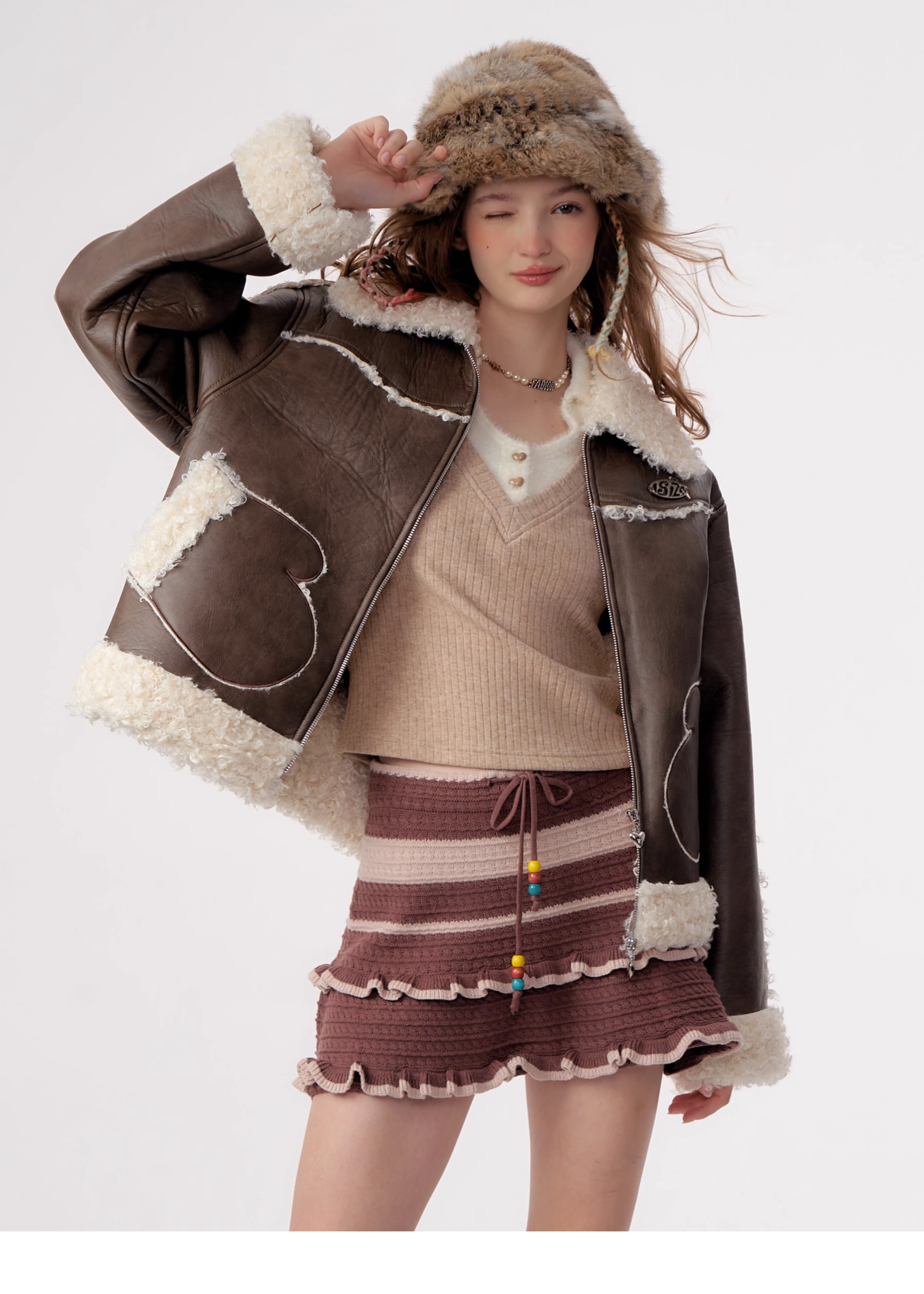 Мотоциклетная куртка из меха ягненка | Толстая ретро-дизайн для осени/зимы