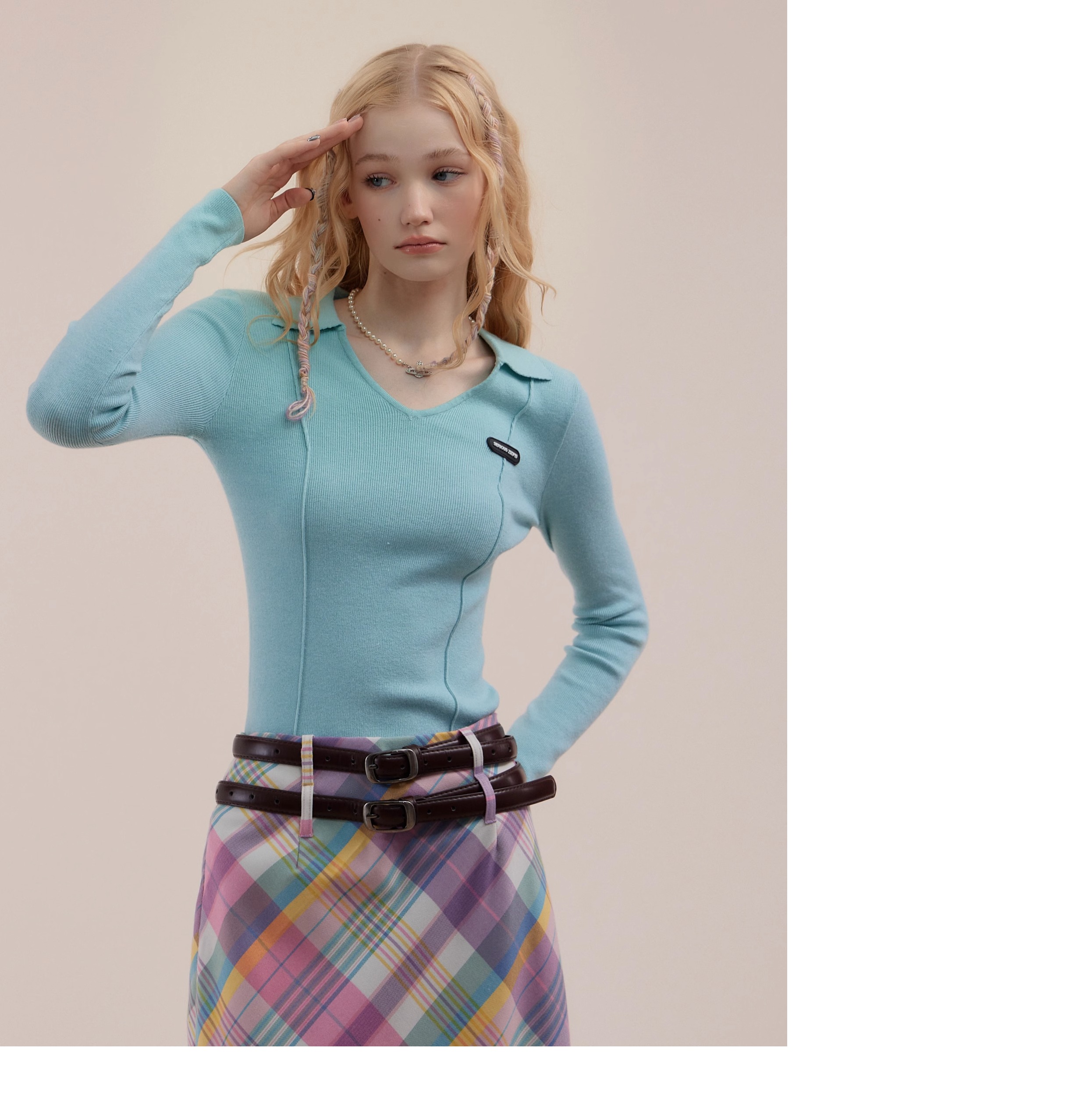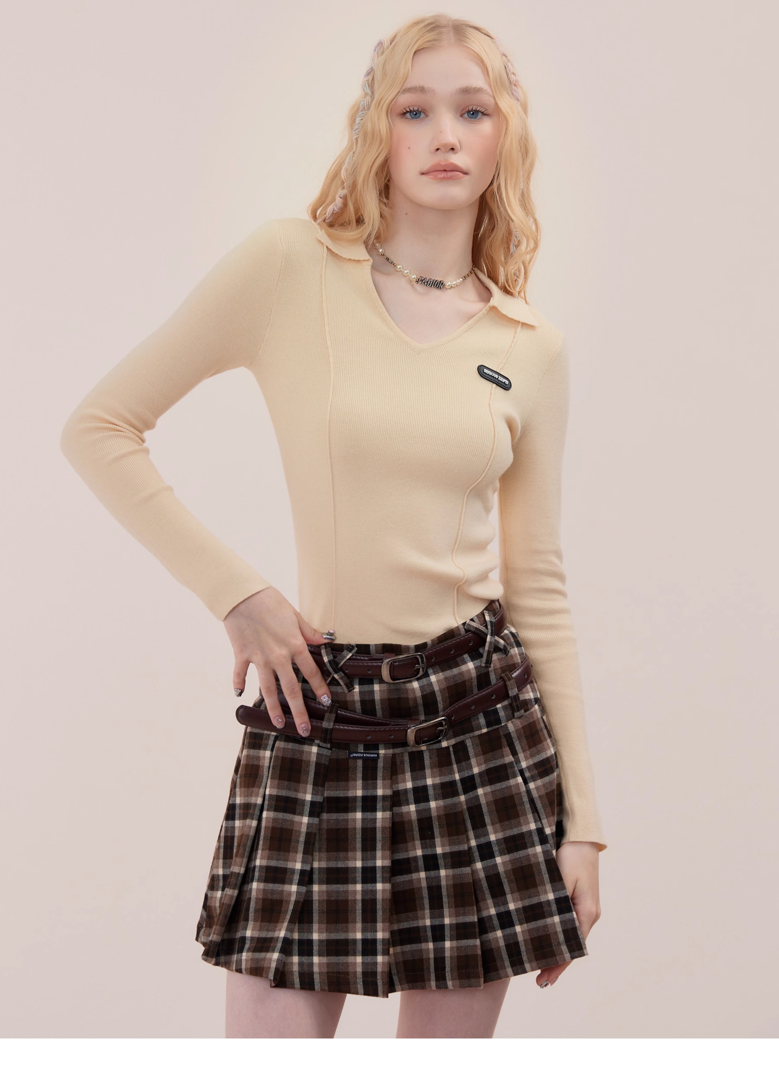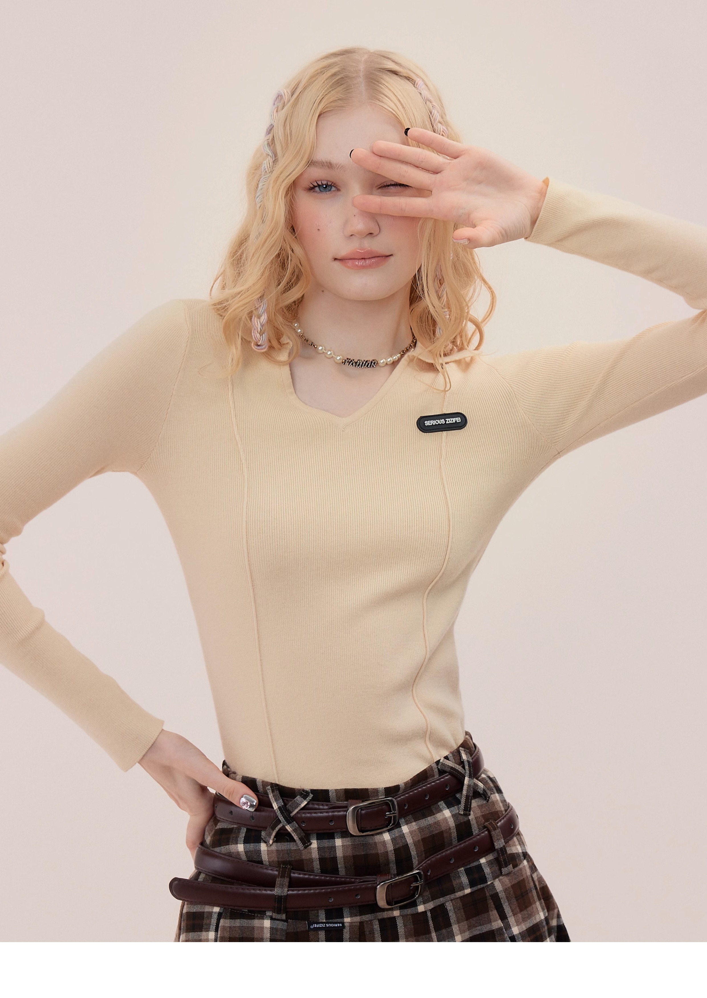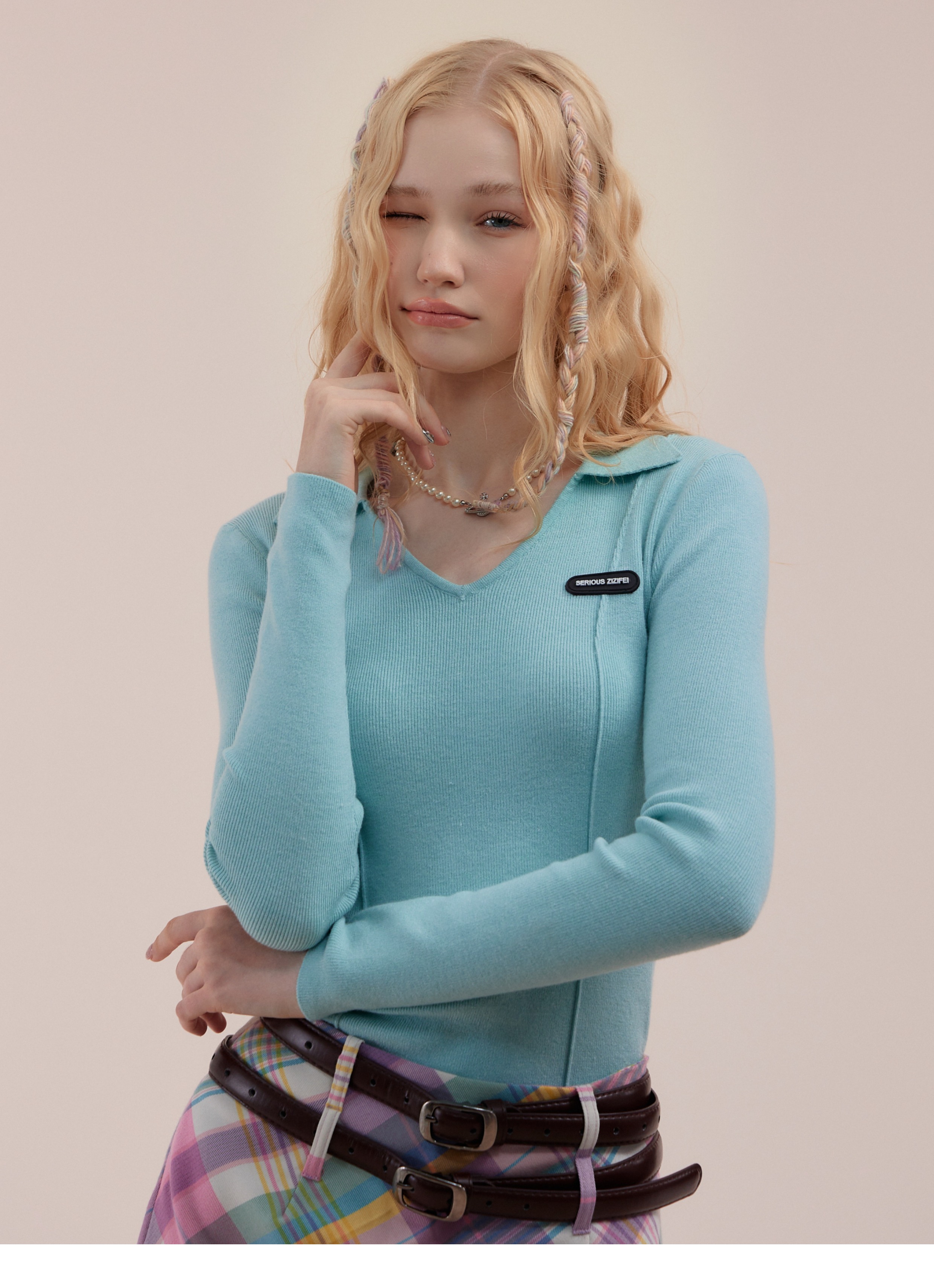 Облегающая футболка-поло с v-образным вырезом | Трикотажная базовая рубашка в стиле ретро с длинными рукавами на осень/зиму