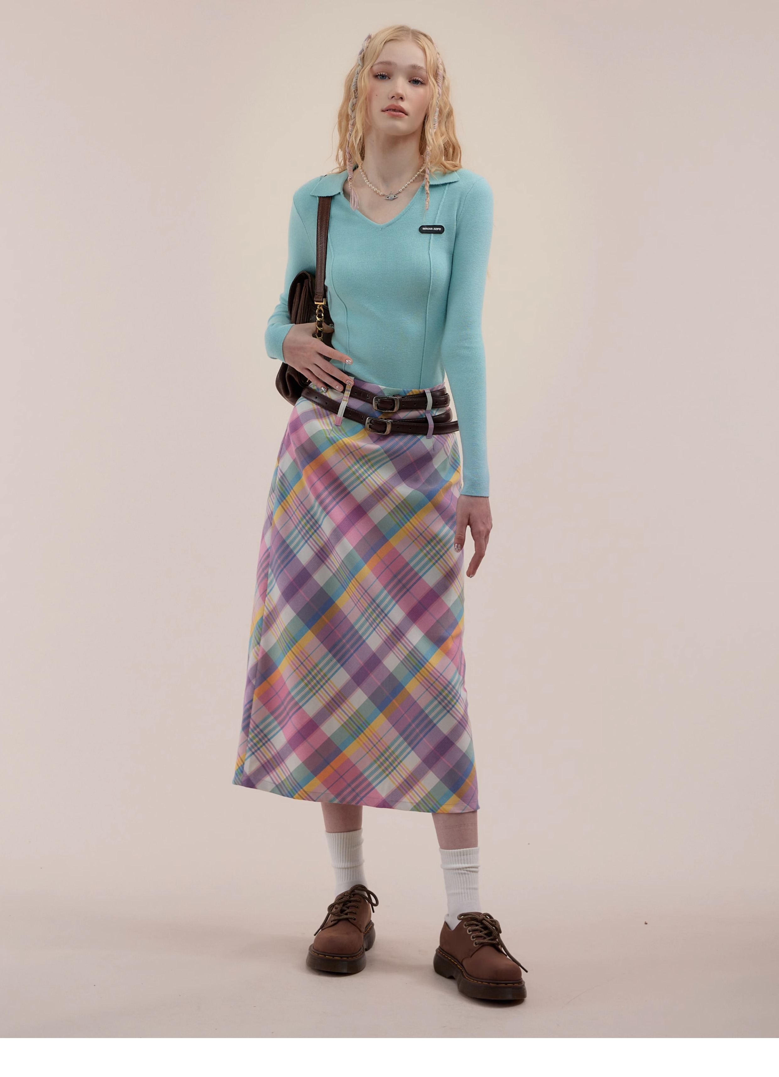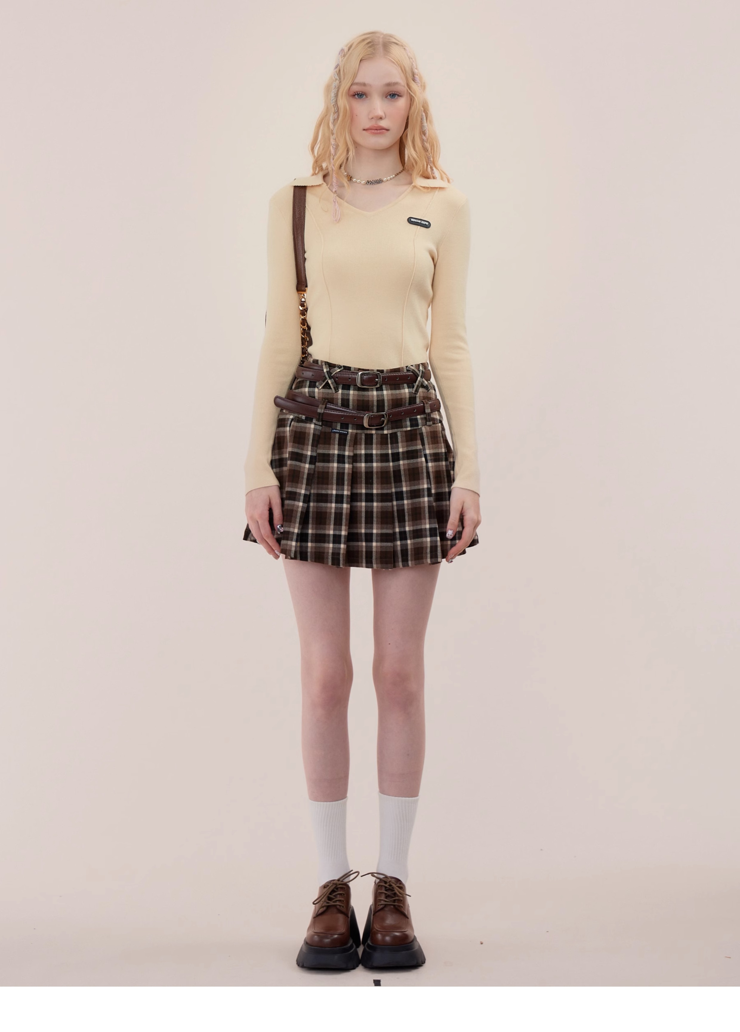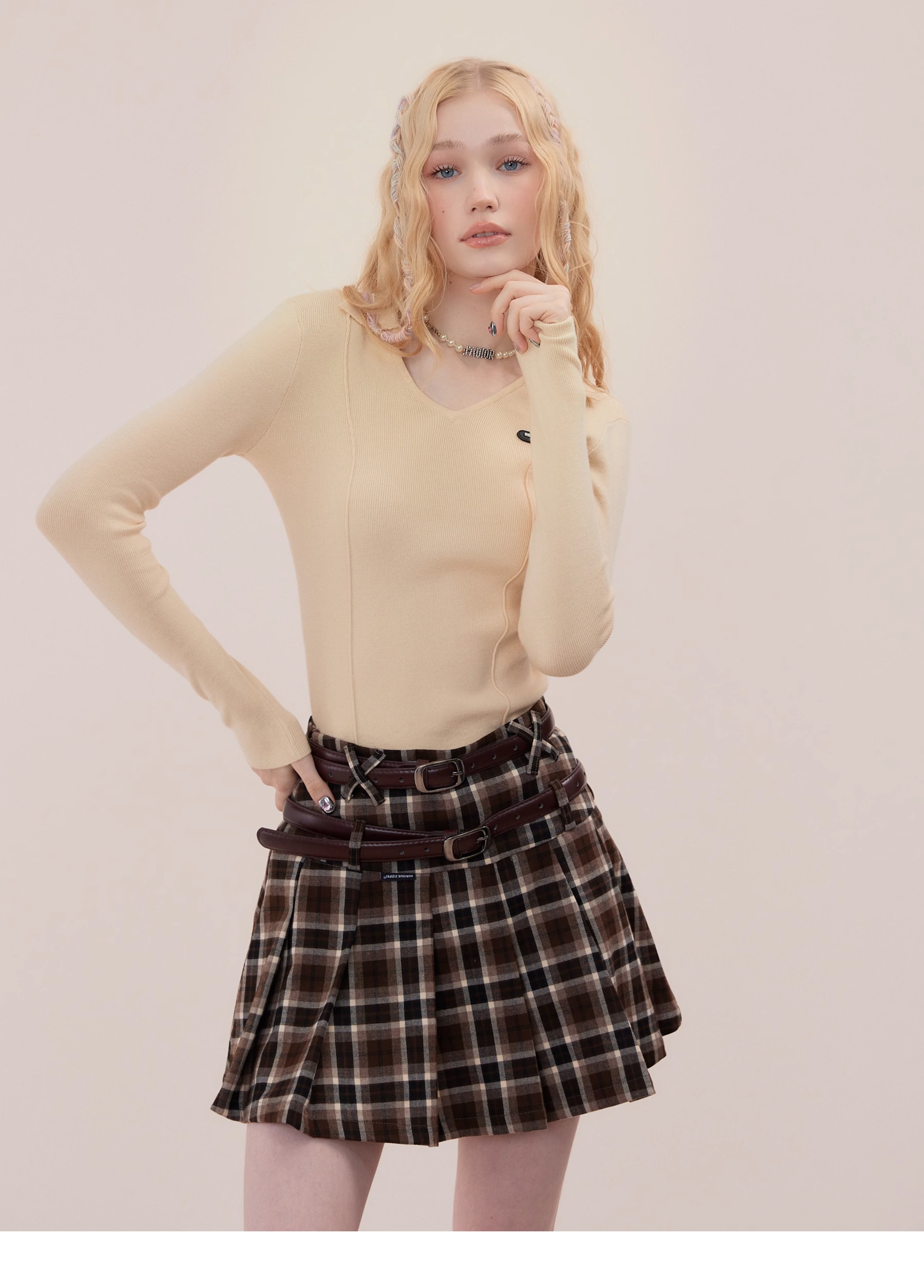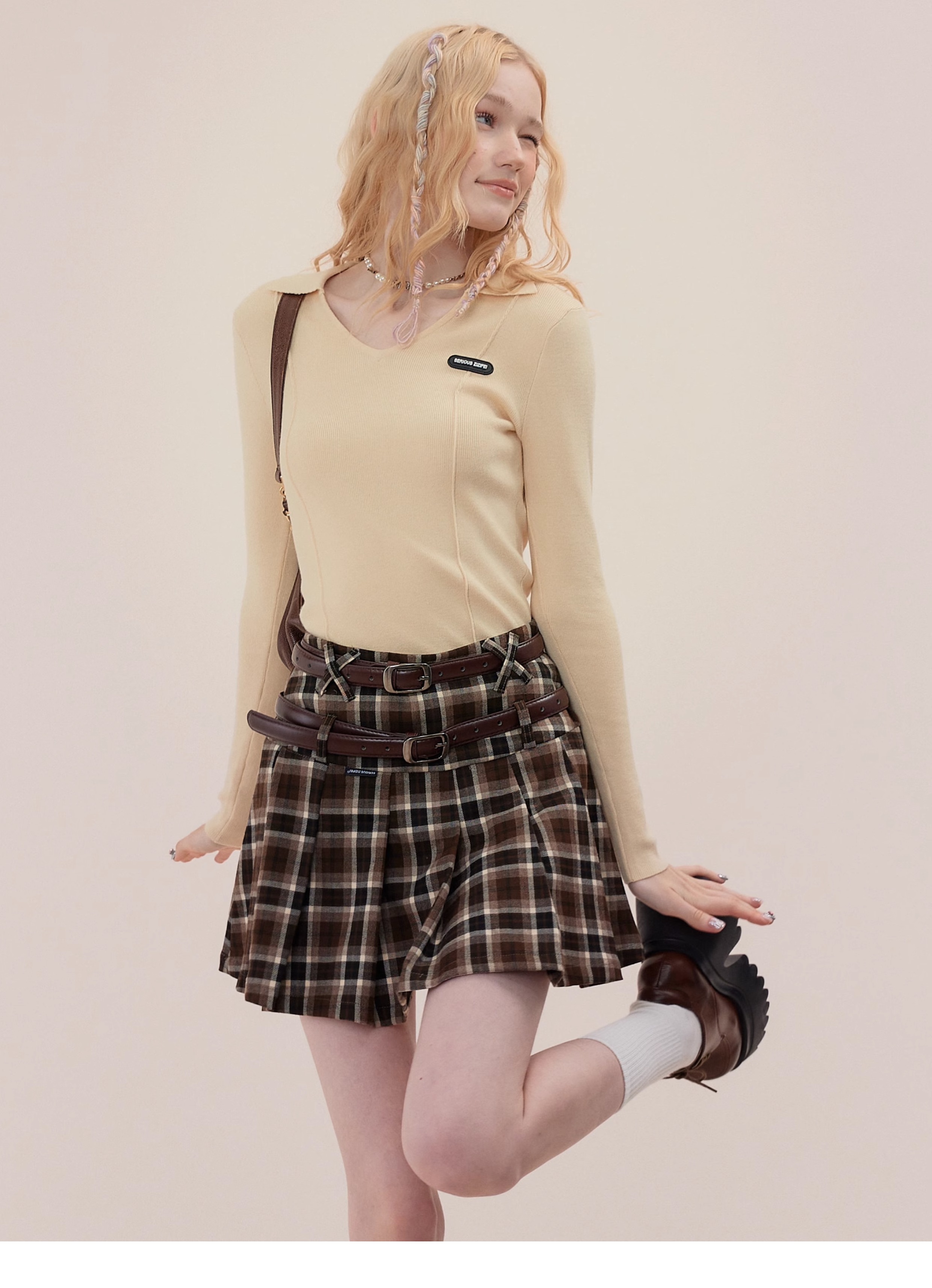 Облегающая футболка-поло с v-образным вырезом | Трикотажная базовая рубашка в стиле ретро с длинными рукавами на осень/зиму