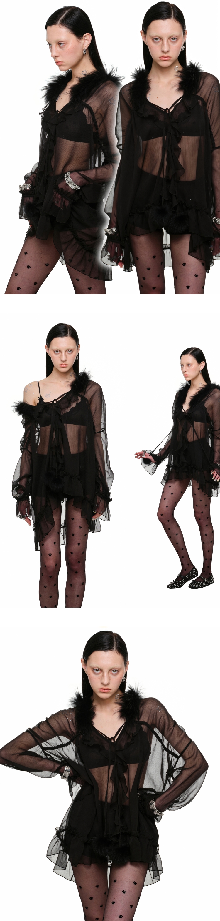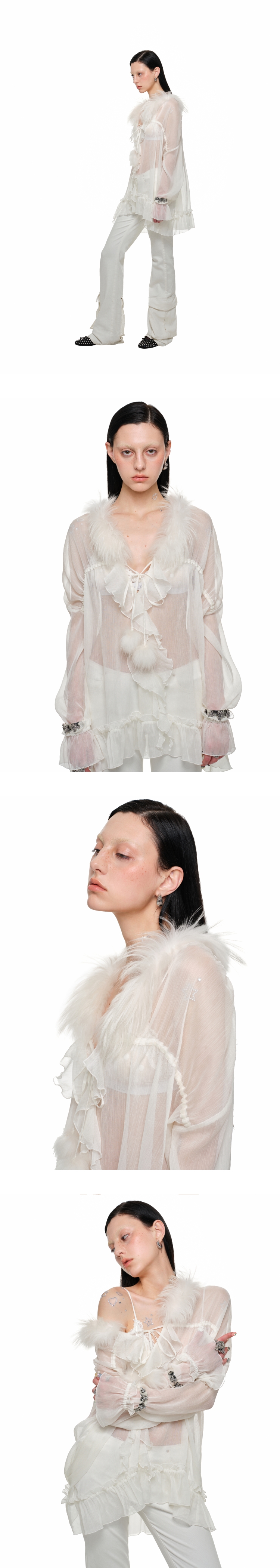 Chiffon Shirred V-Neck Blouse – Sheer & Flowy Loose Fit Shirt