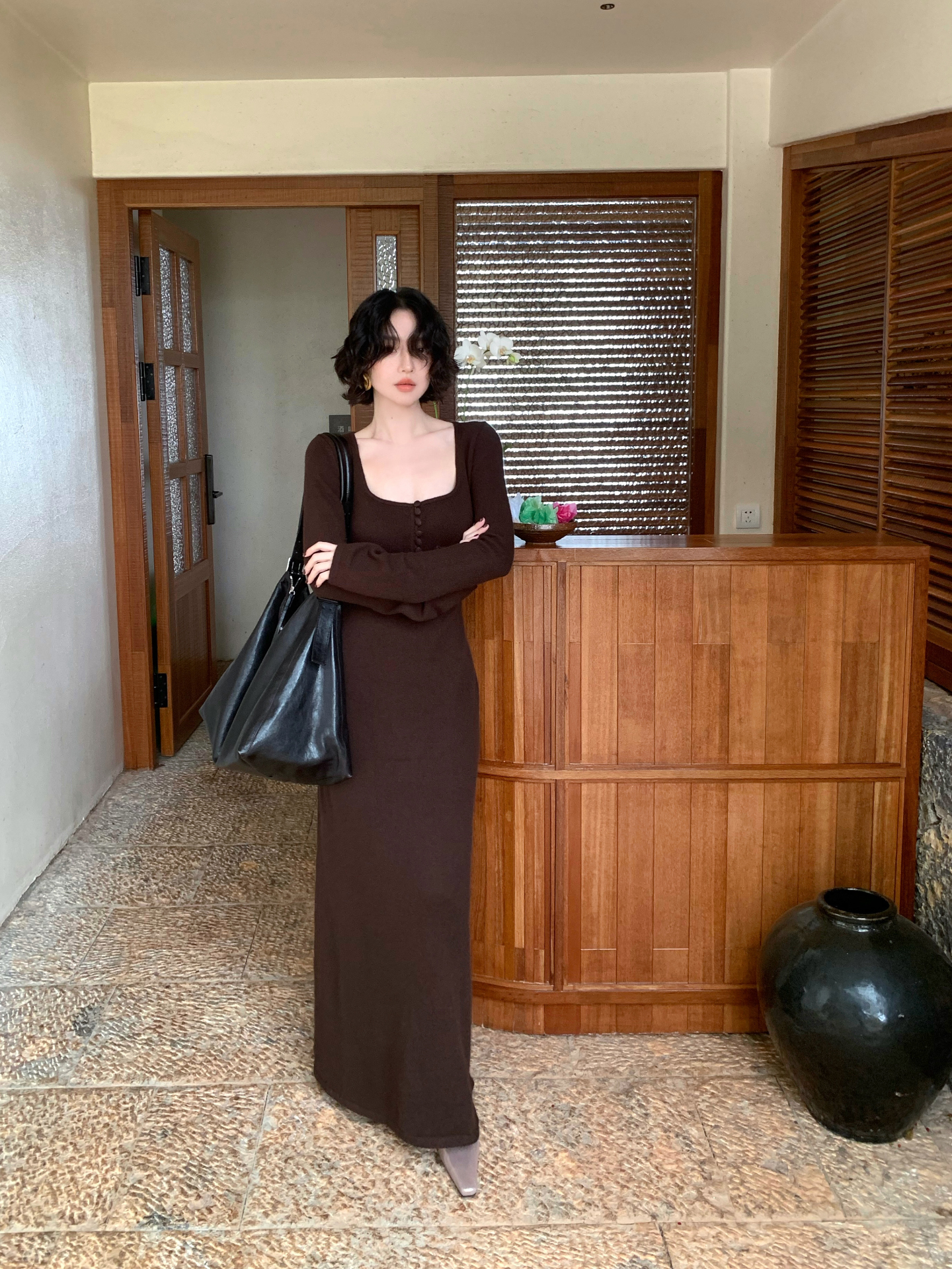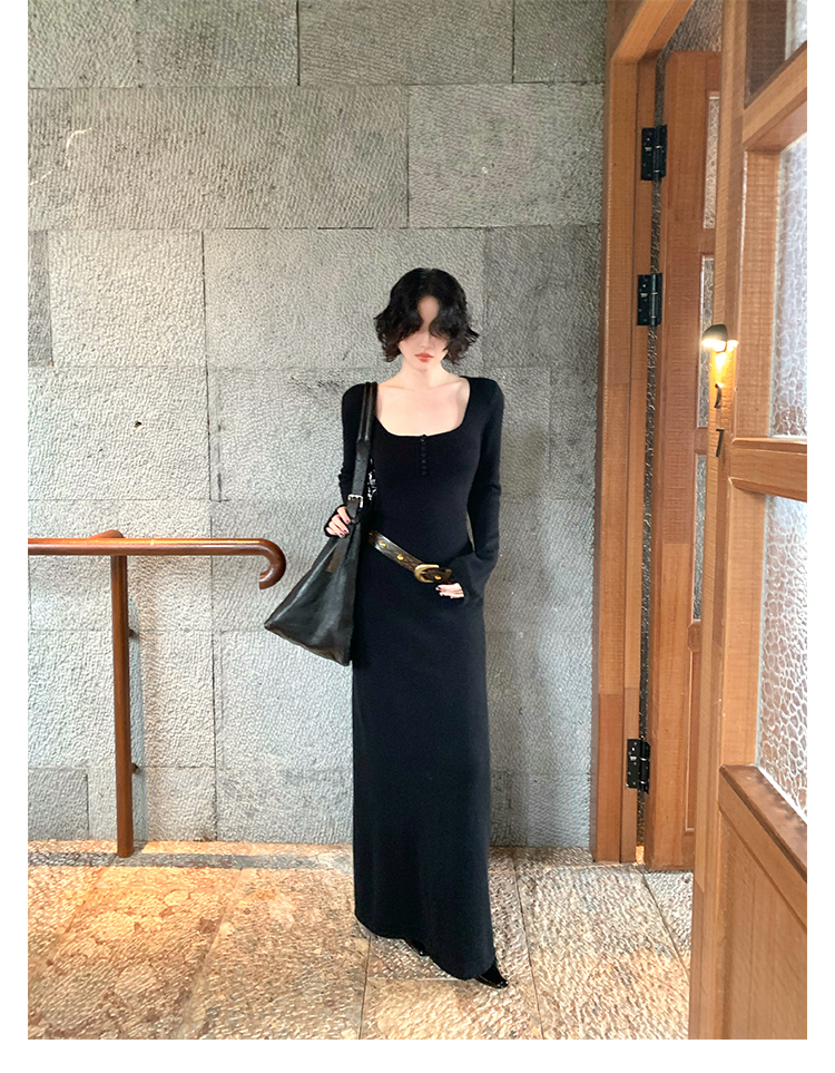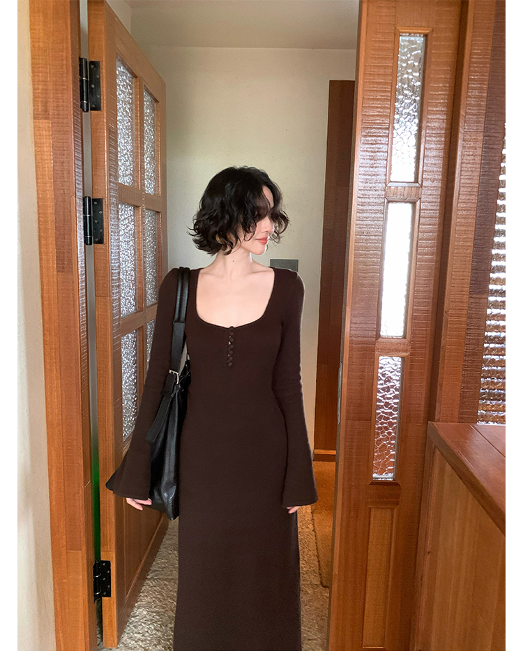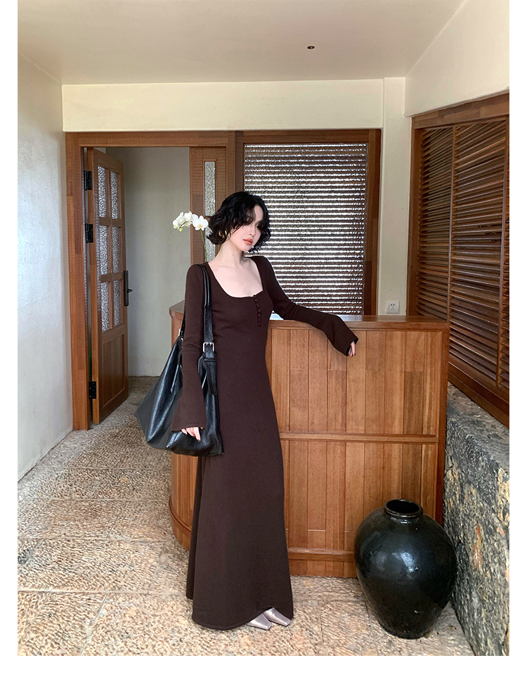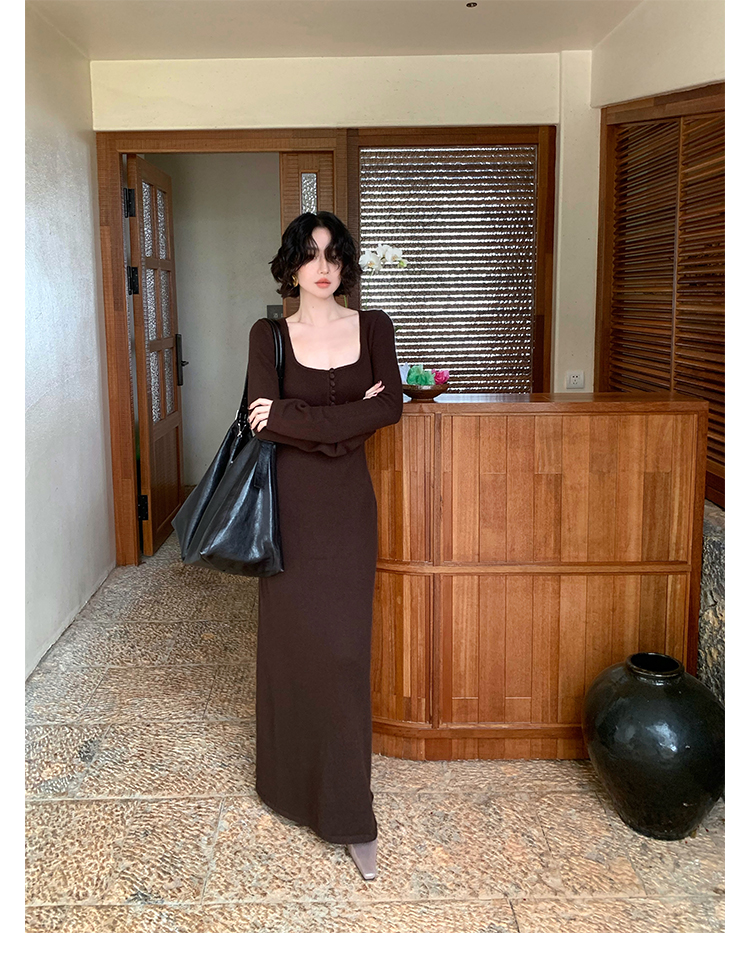 Raccoon Fleece Wool-Blend Square-Neck Long Dress – Hong Kong Retro Winter