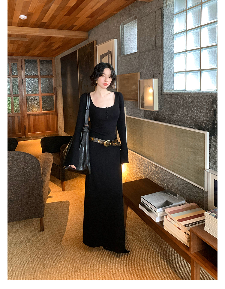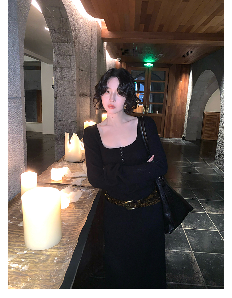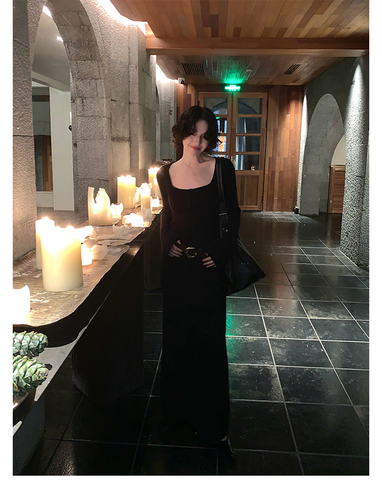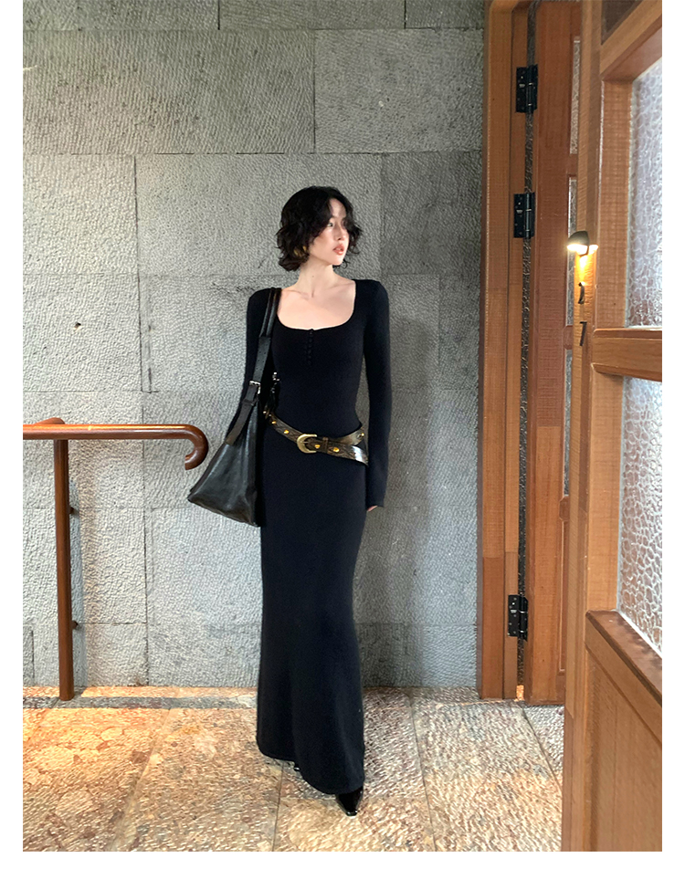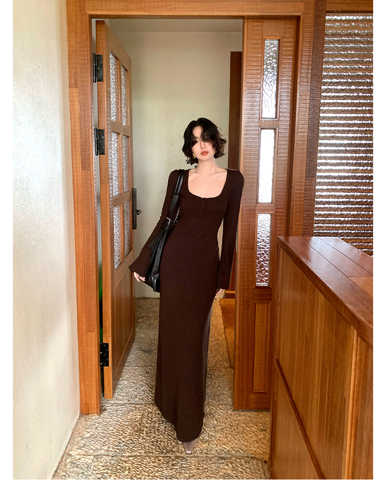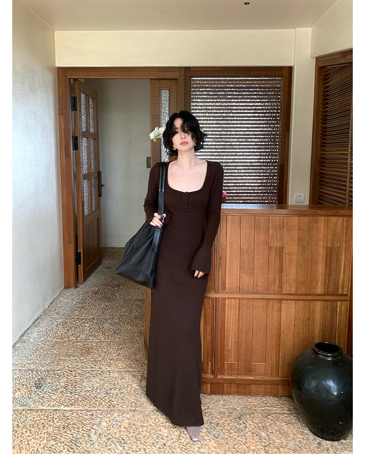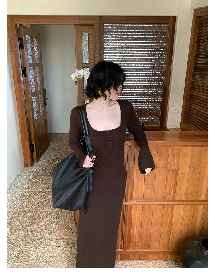 Raccoon Fleece Wool-Blend Square-Neck Long Dress – Hong Kong Retro Winter
