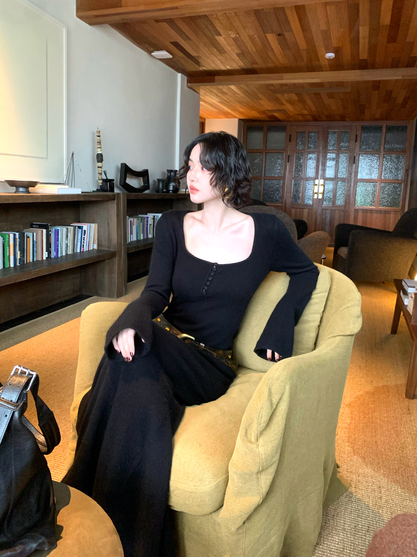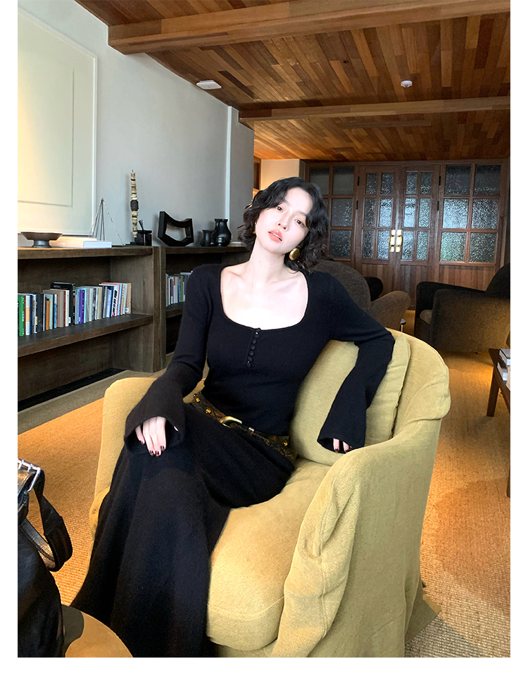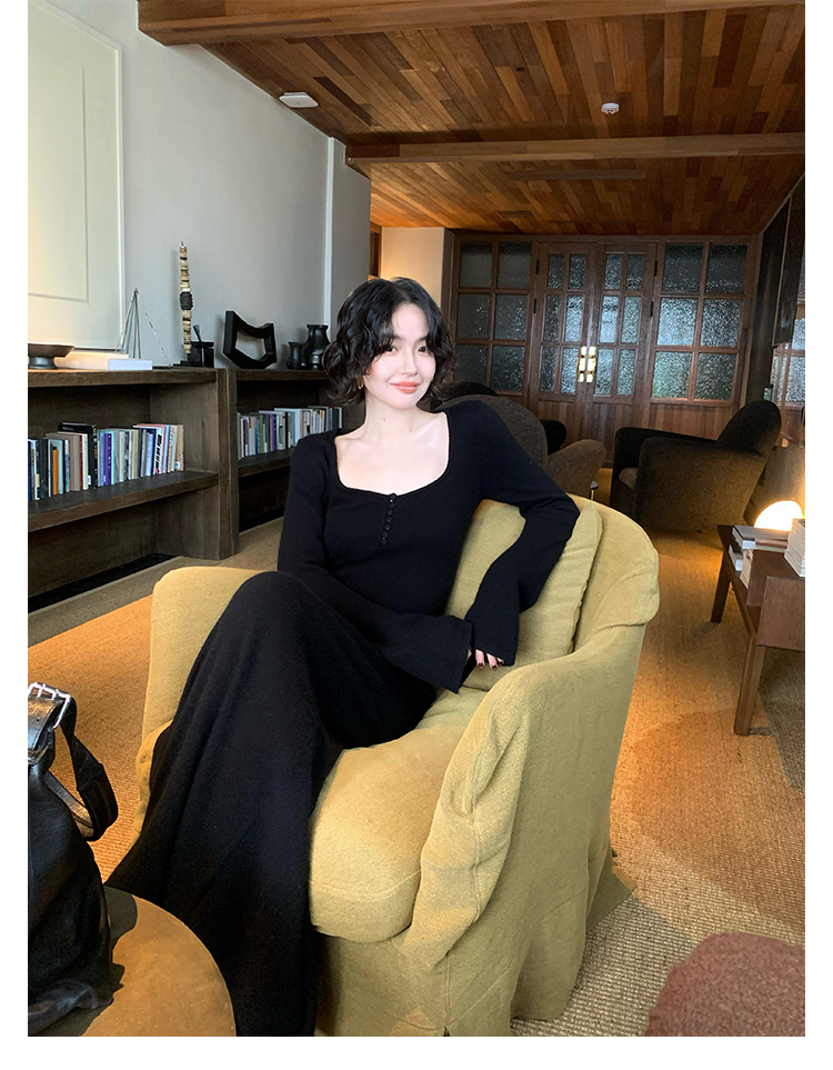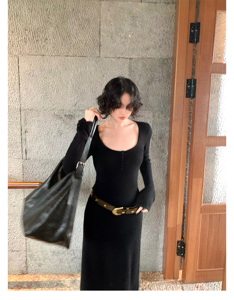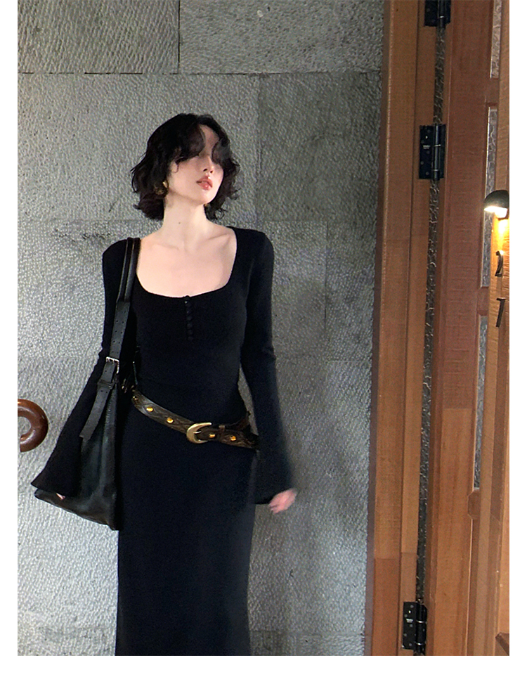 Raccoon Fleece Wool-Blend Square-Neck Long Dress – Hong Kong Retro Winter