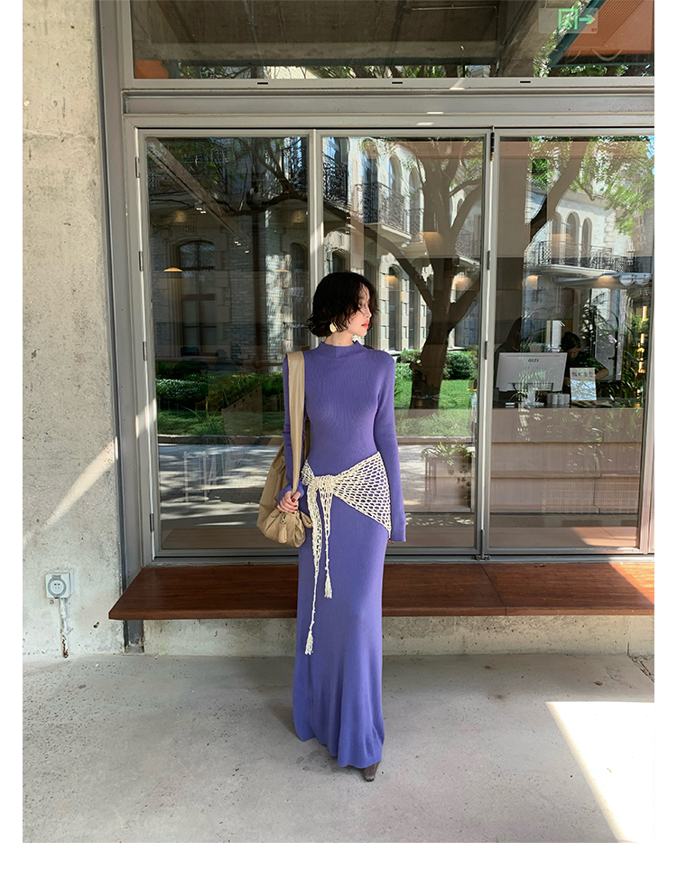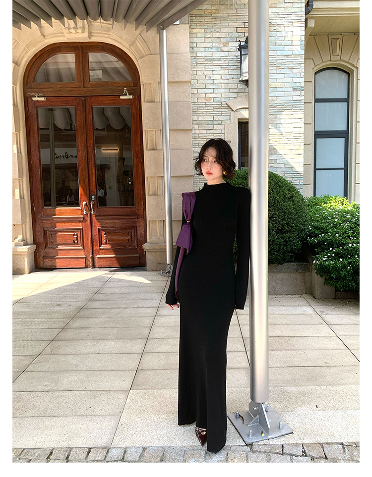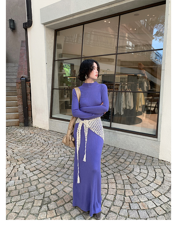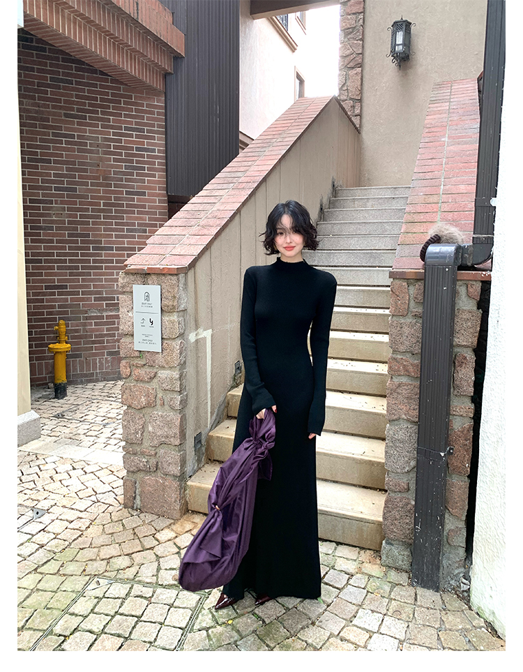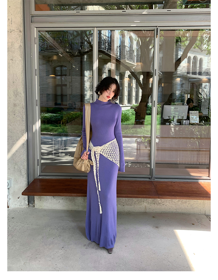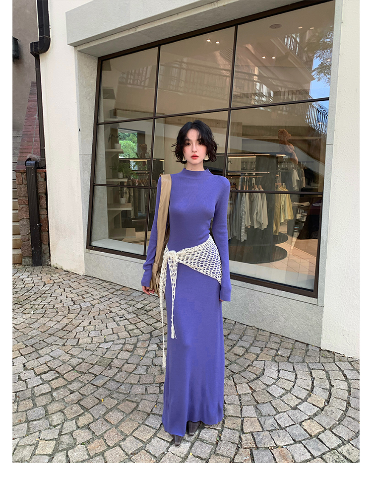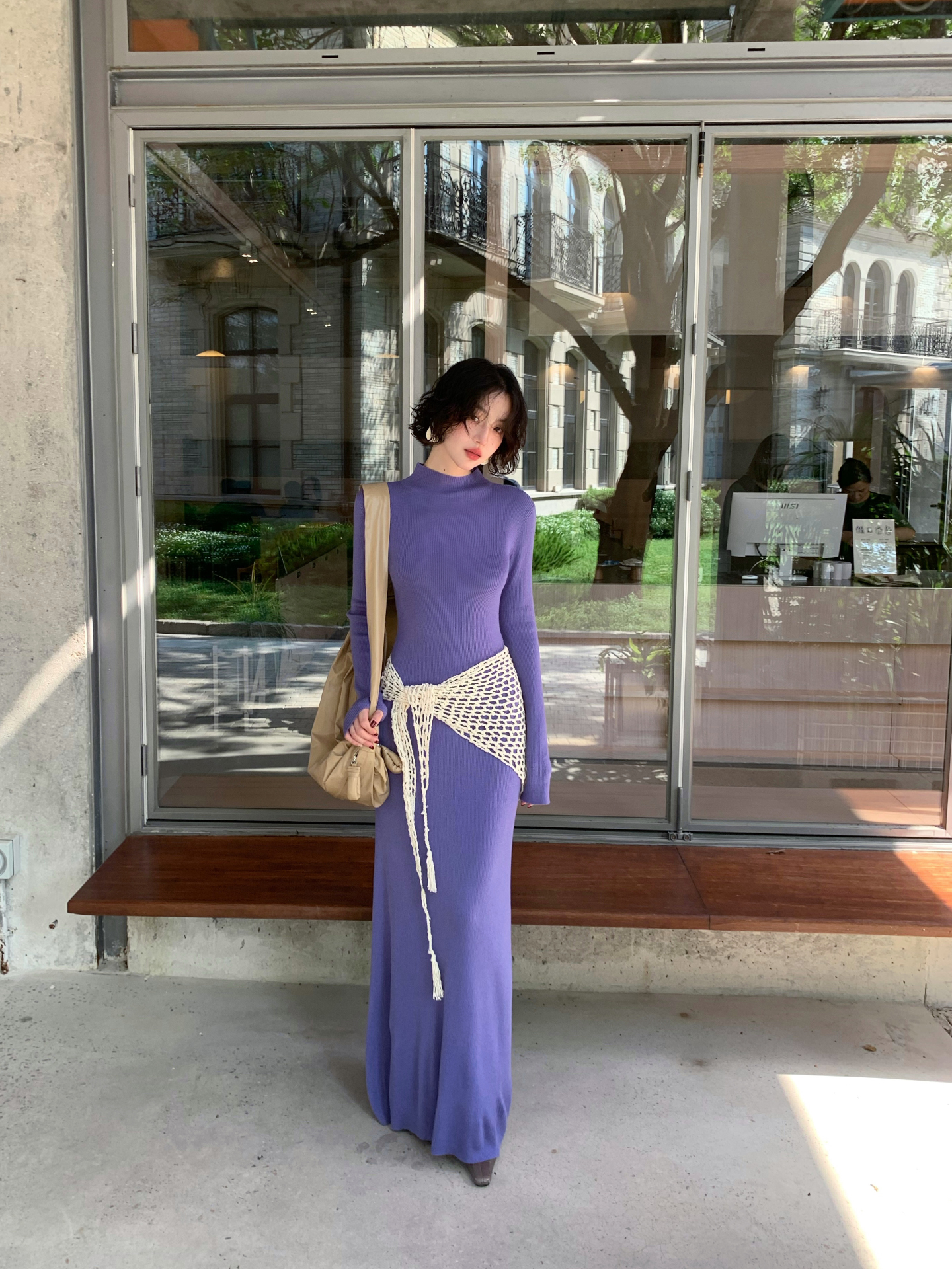 Blue Quiet Drape Knit Dress – Wine Noon Retro Autumn/Winter 2025 Edition