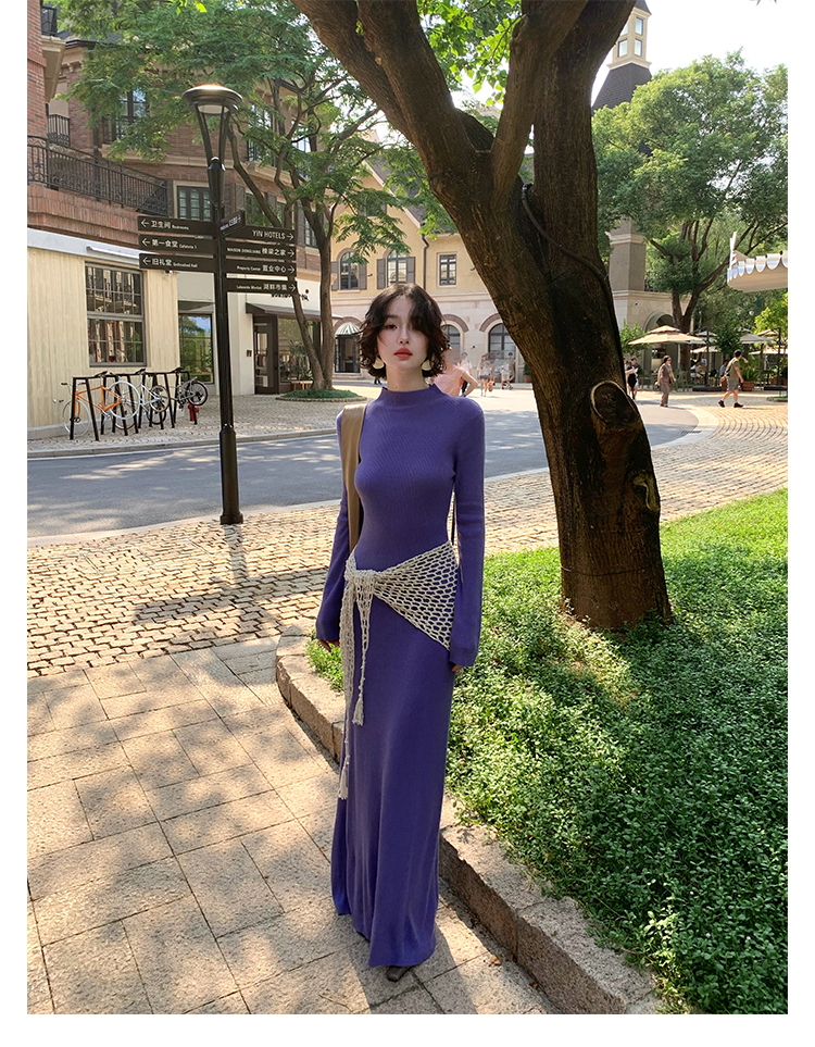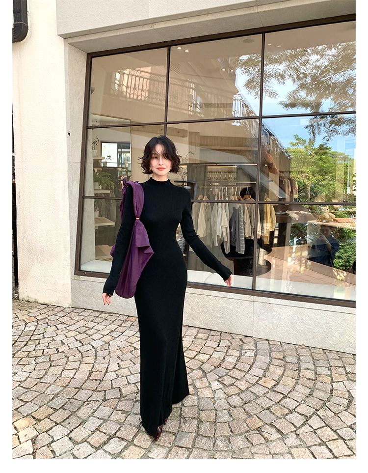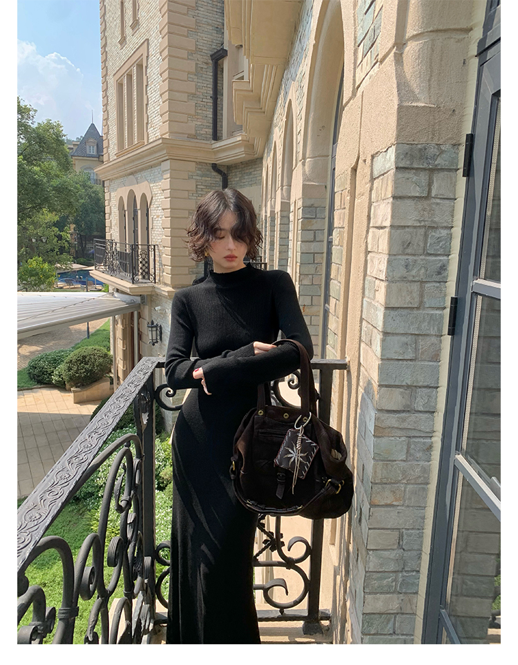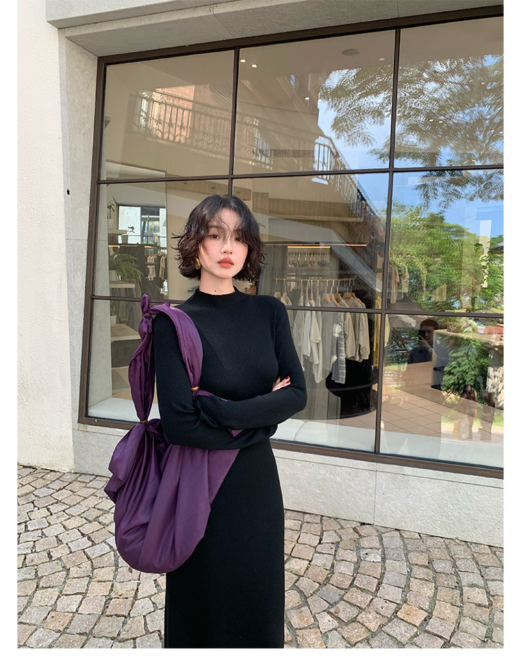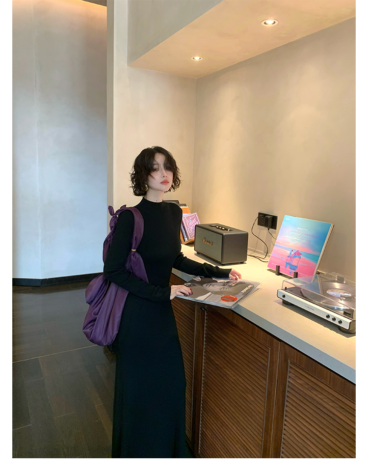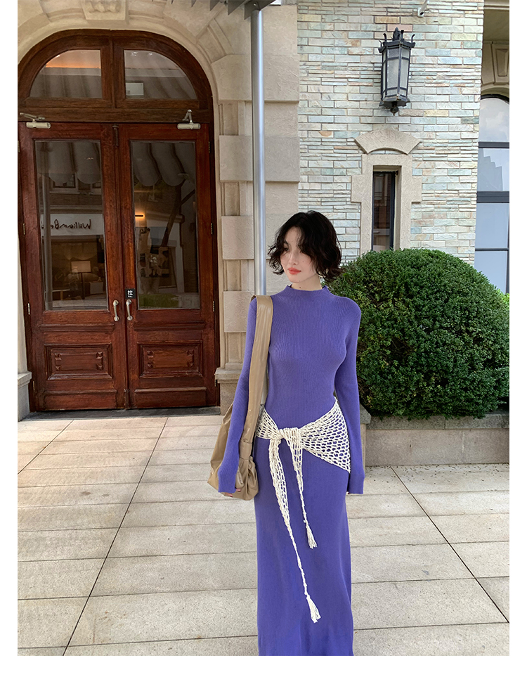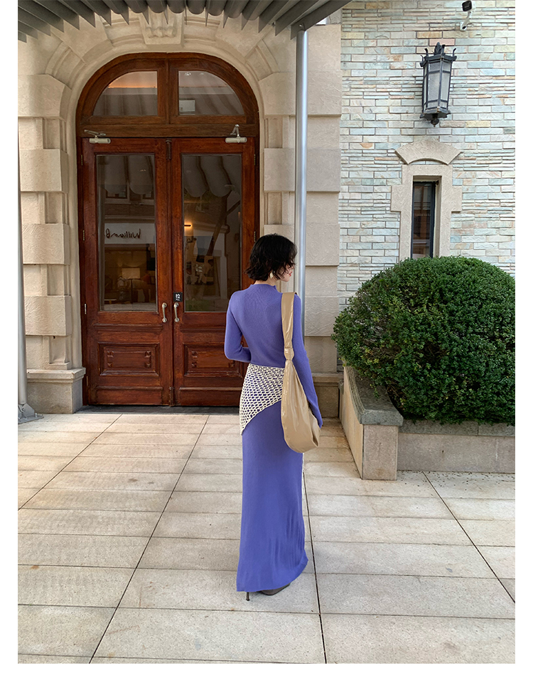 Blue Quiet Drape Knit Dress – Wine Noon Retro Autumn/Winter 2025 Edition