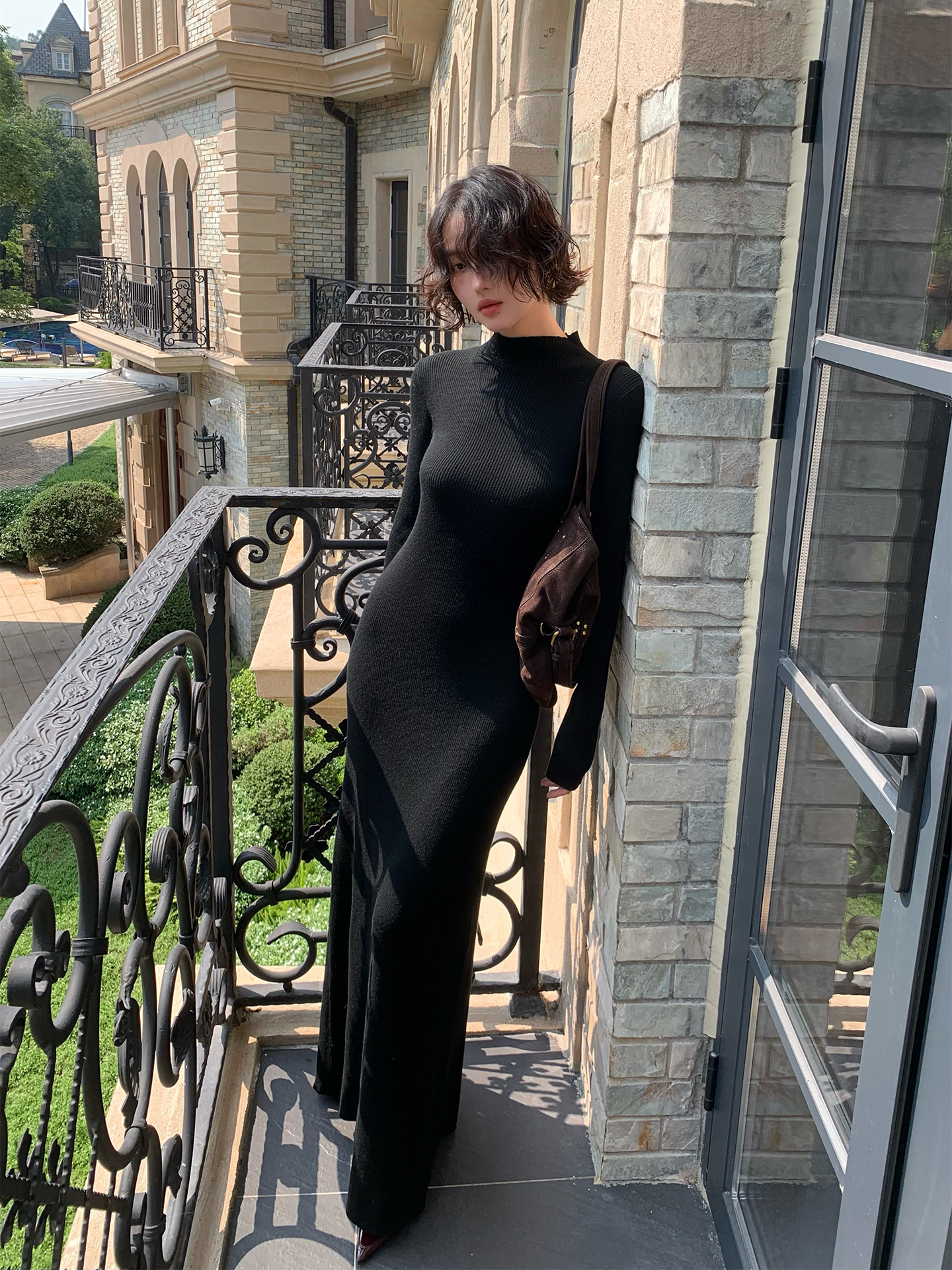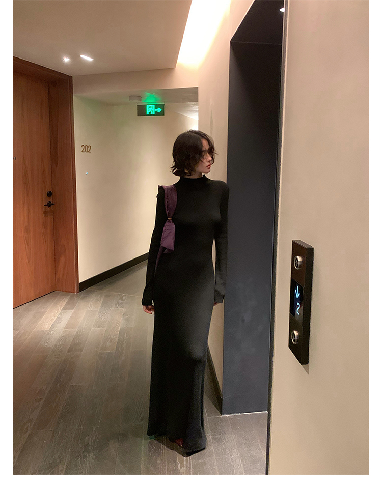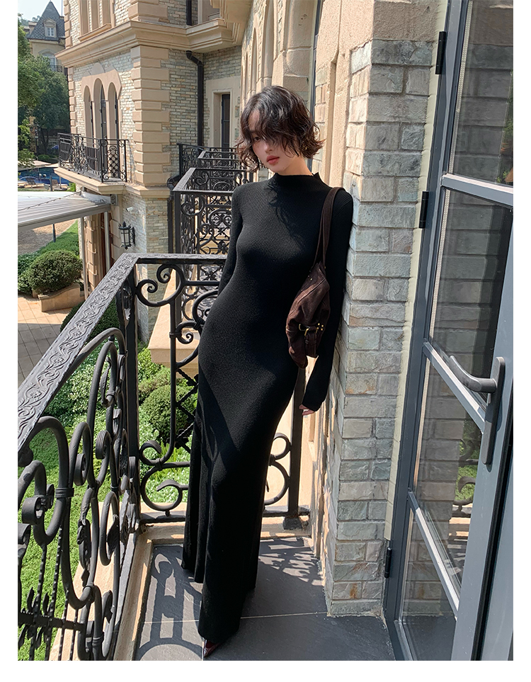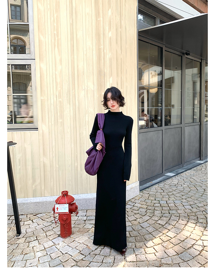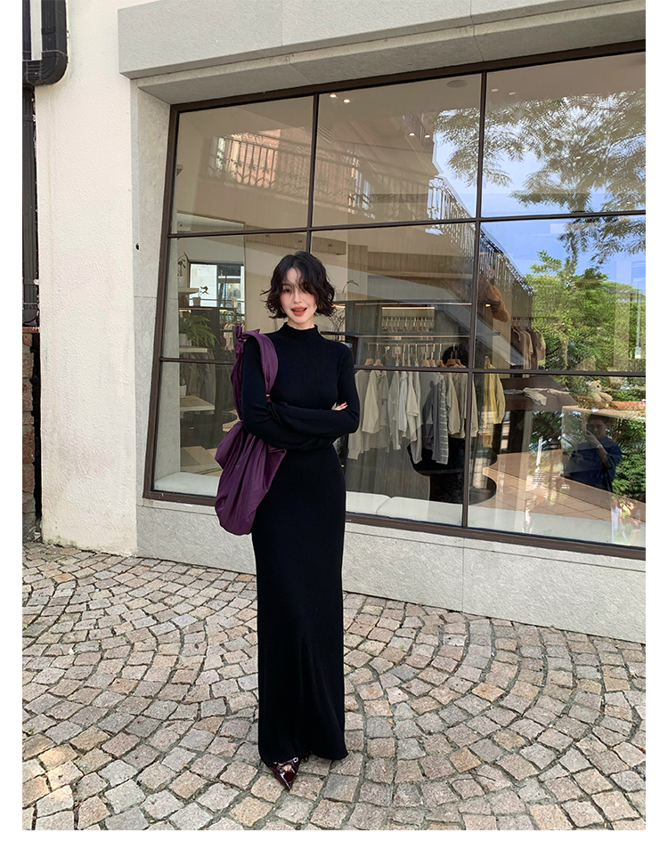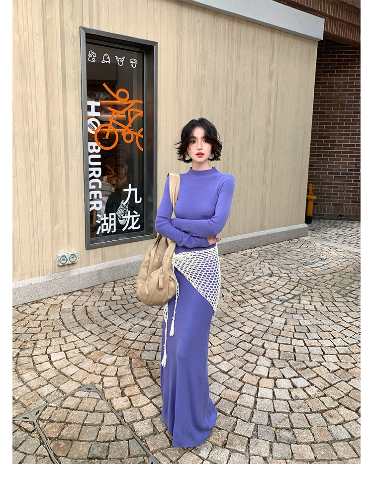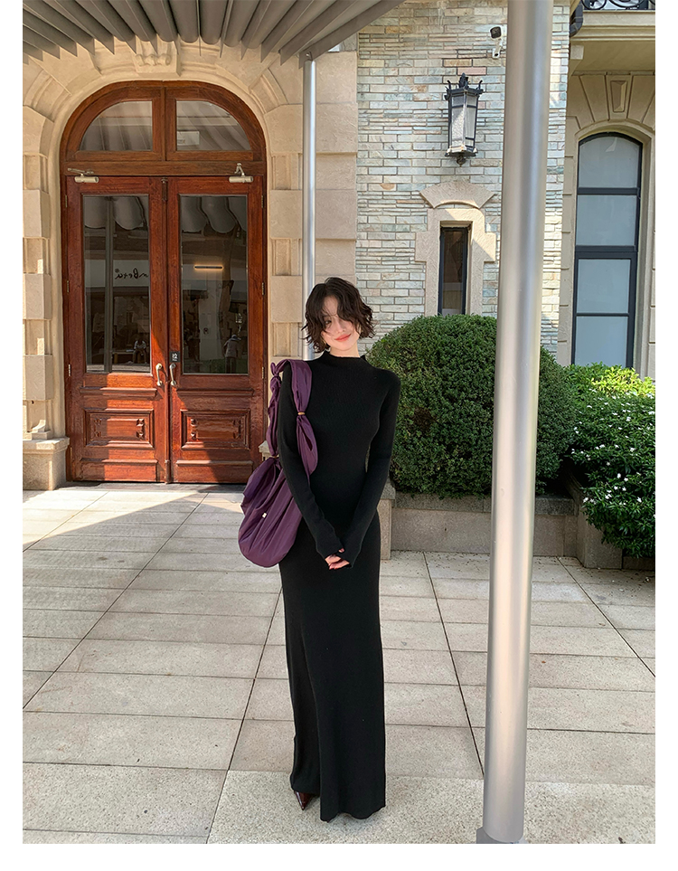 Blue Quiet Drape Knit Dress – Wine Noon Retro Autumn/Winter 2025 Edition